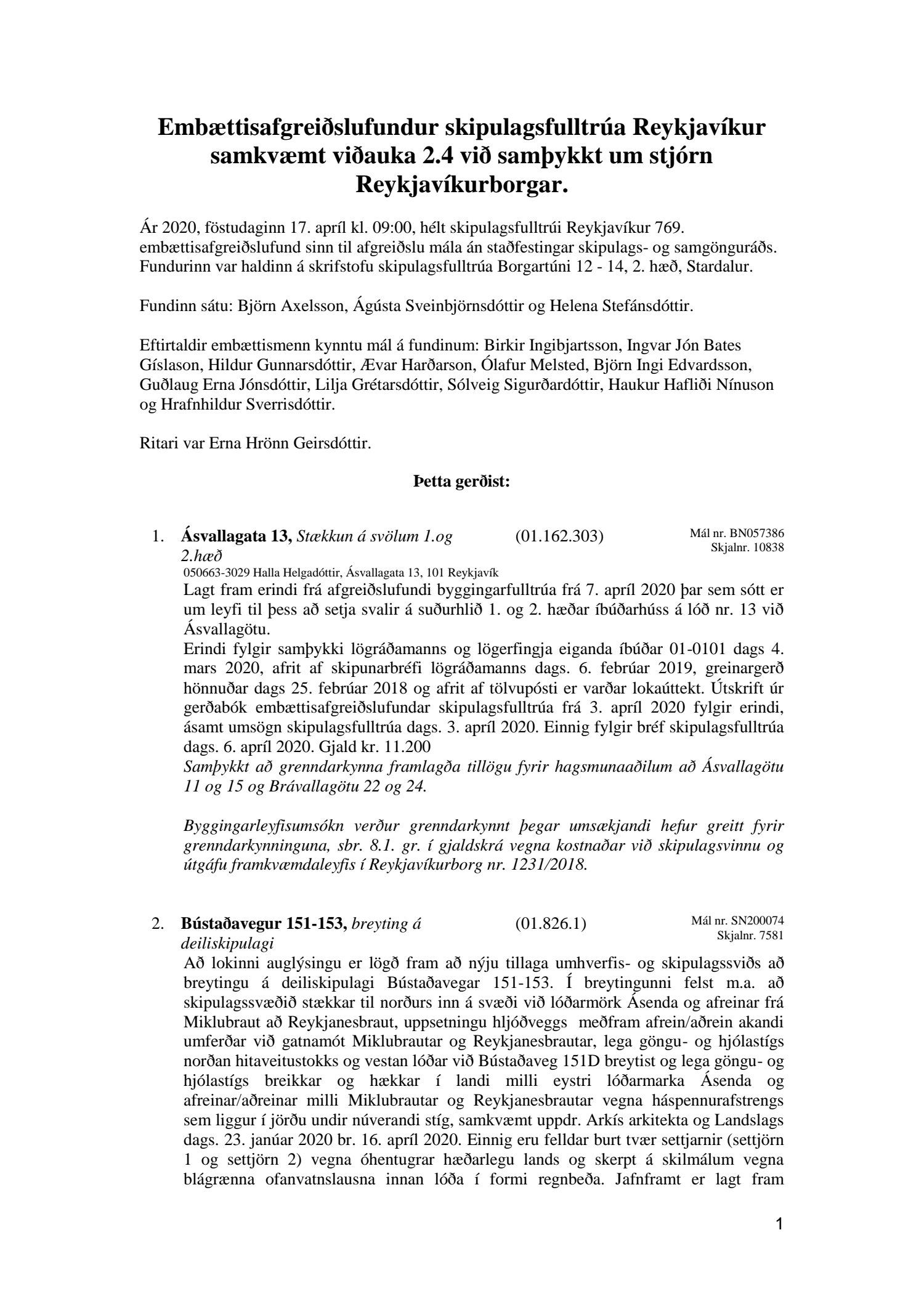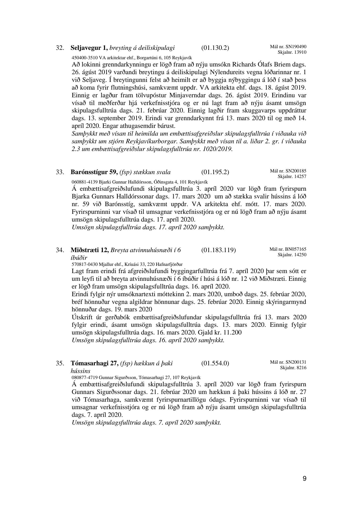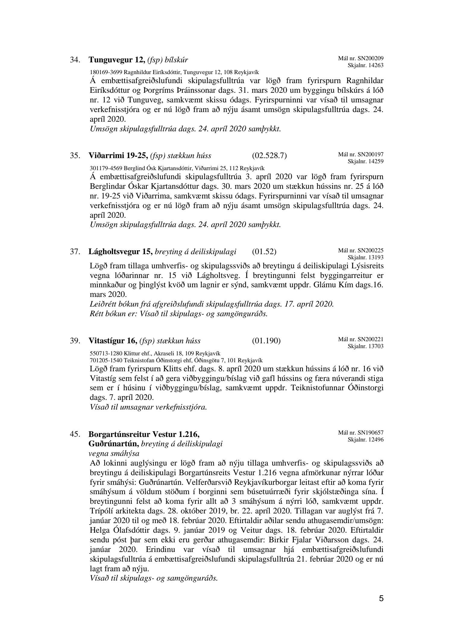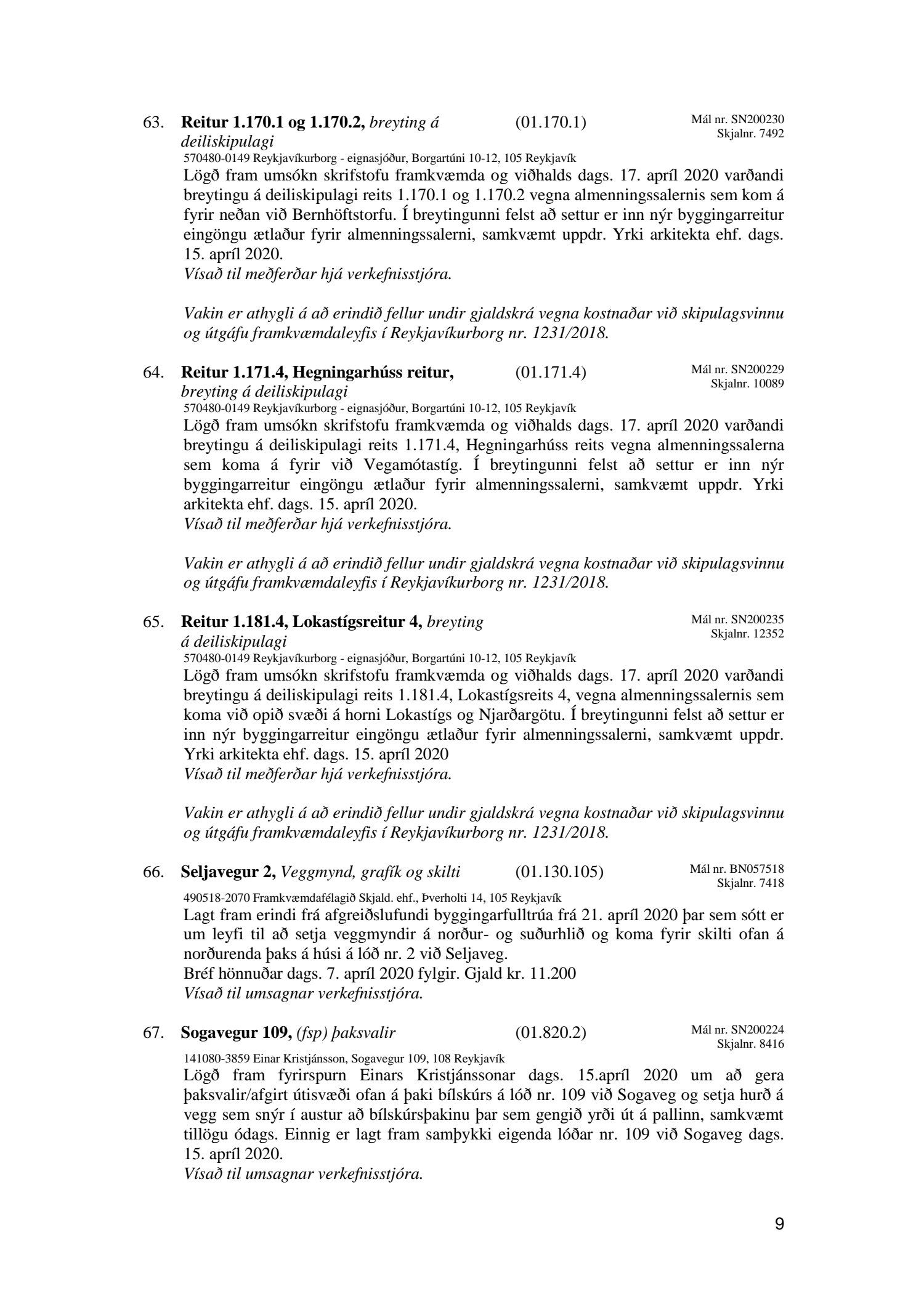 Afgreiðslufundur skipulagsfulltrúa dags 17. apríl 2020