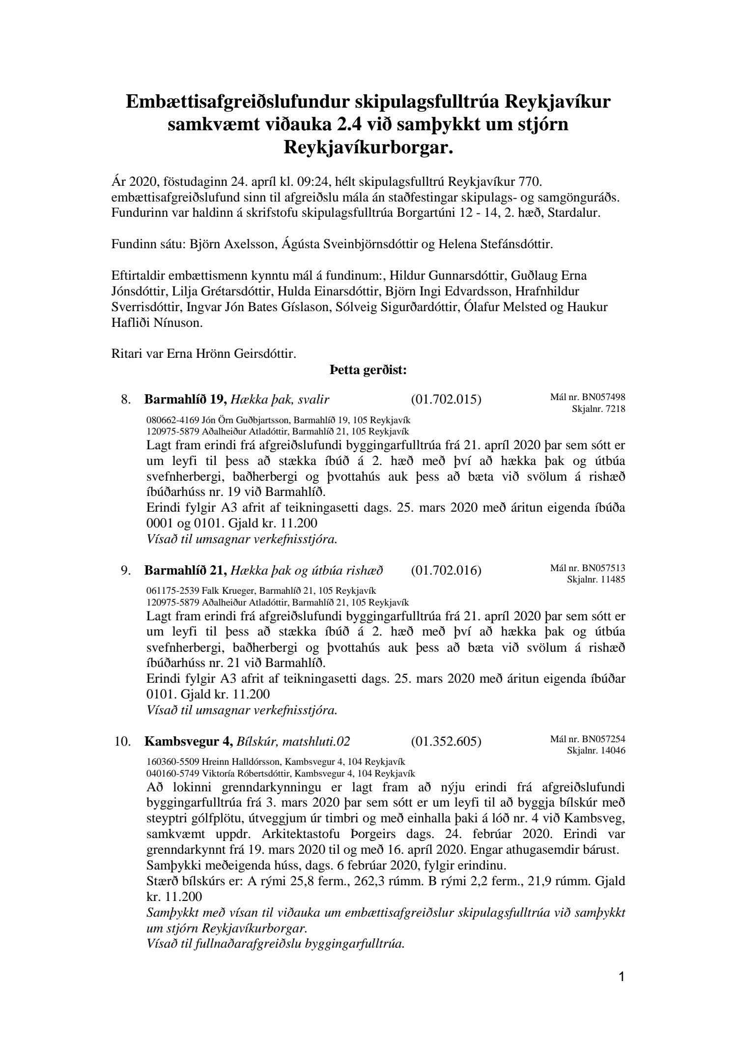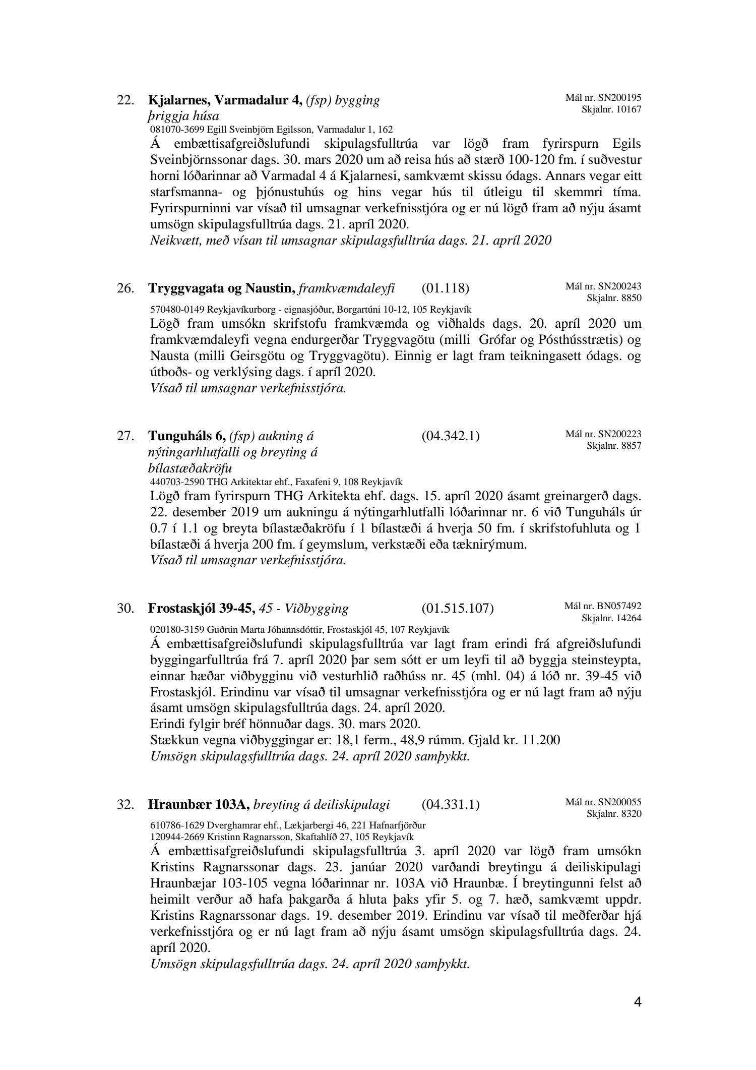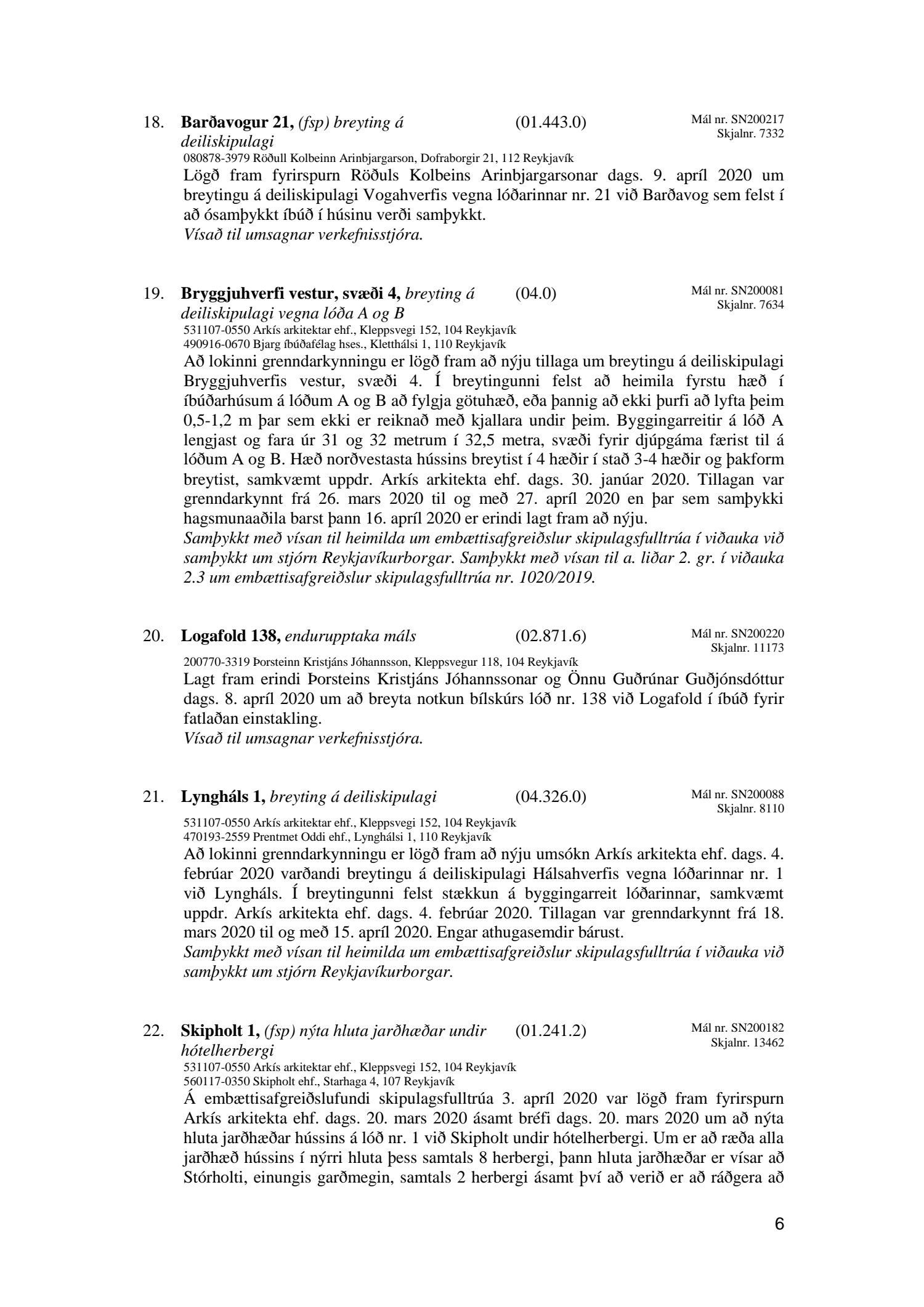 Afgreiðslufundur skipulagsfulltrúa dags 24. apríl 2020