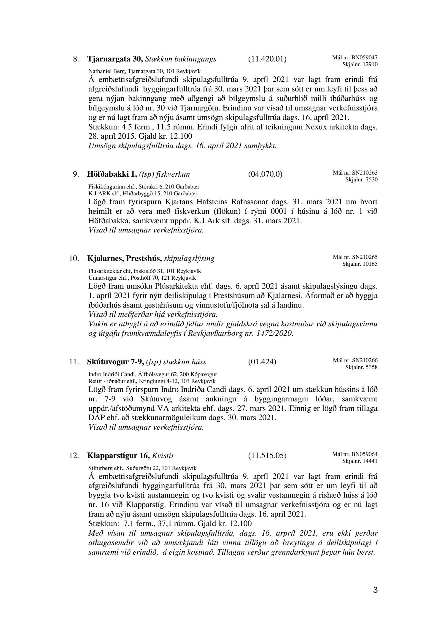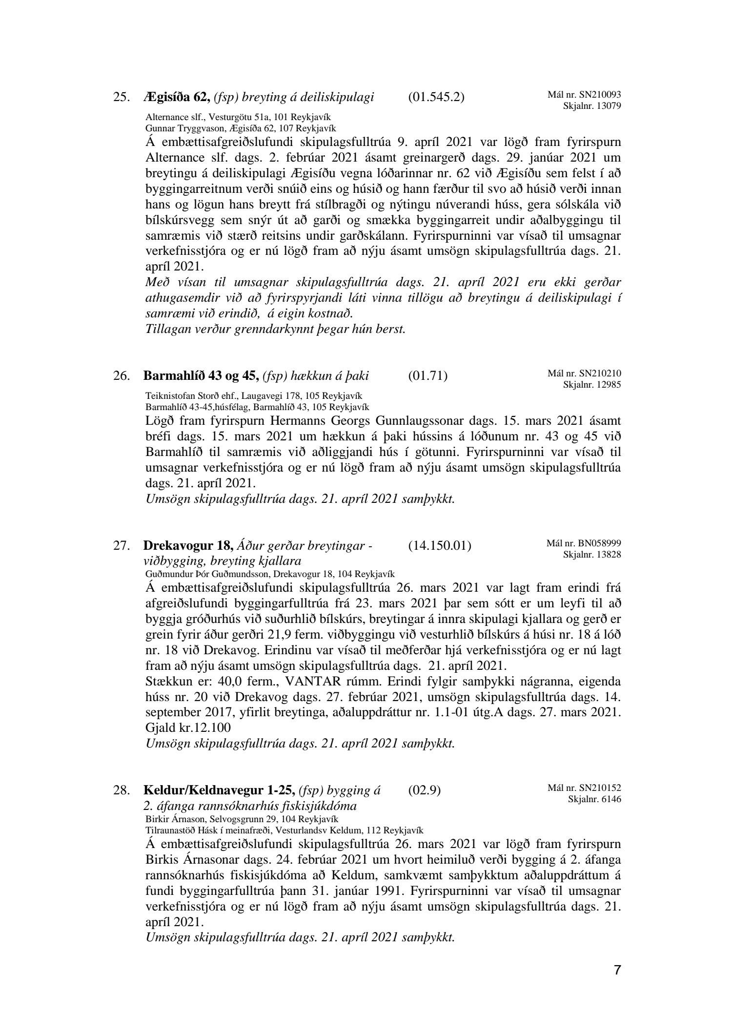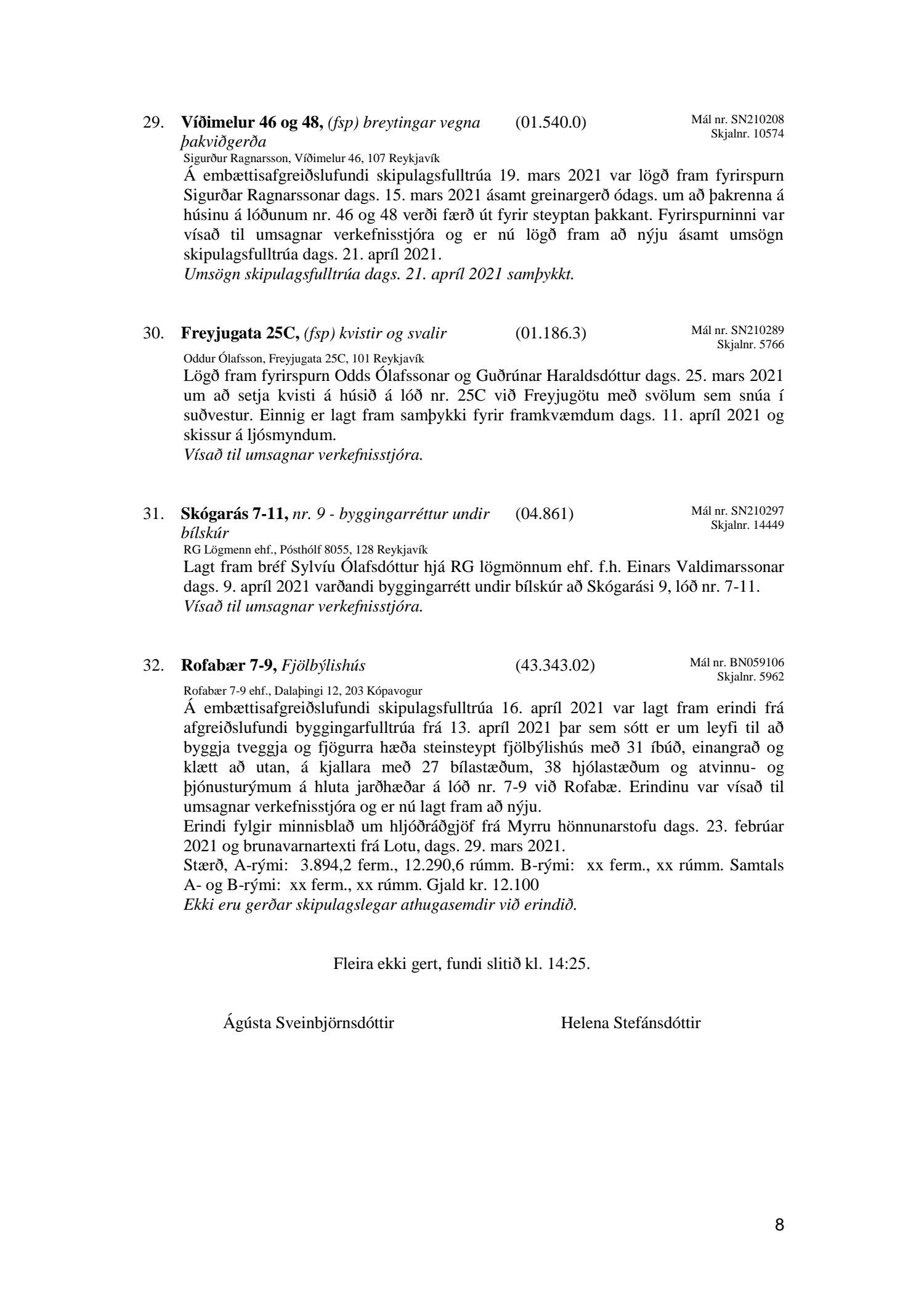 Afgreiðslufundir skipulagsfulltrúa Reykjavíkur, fundargerð