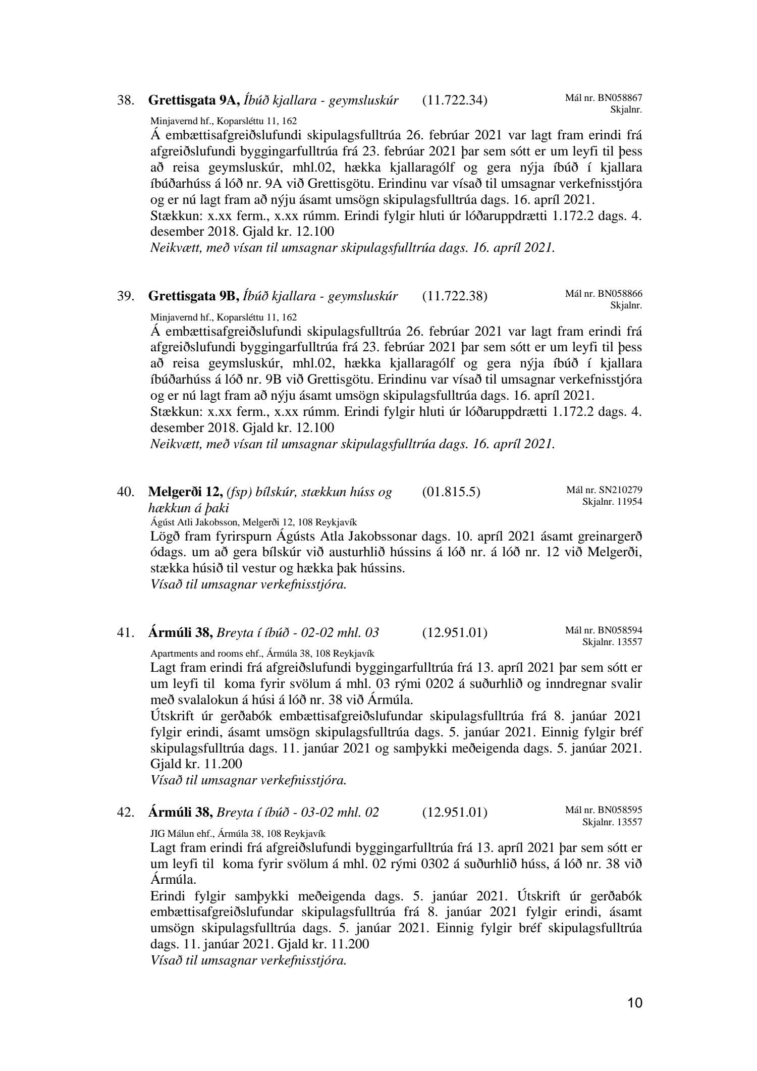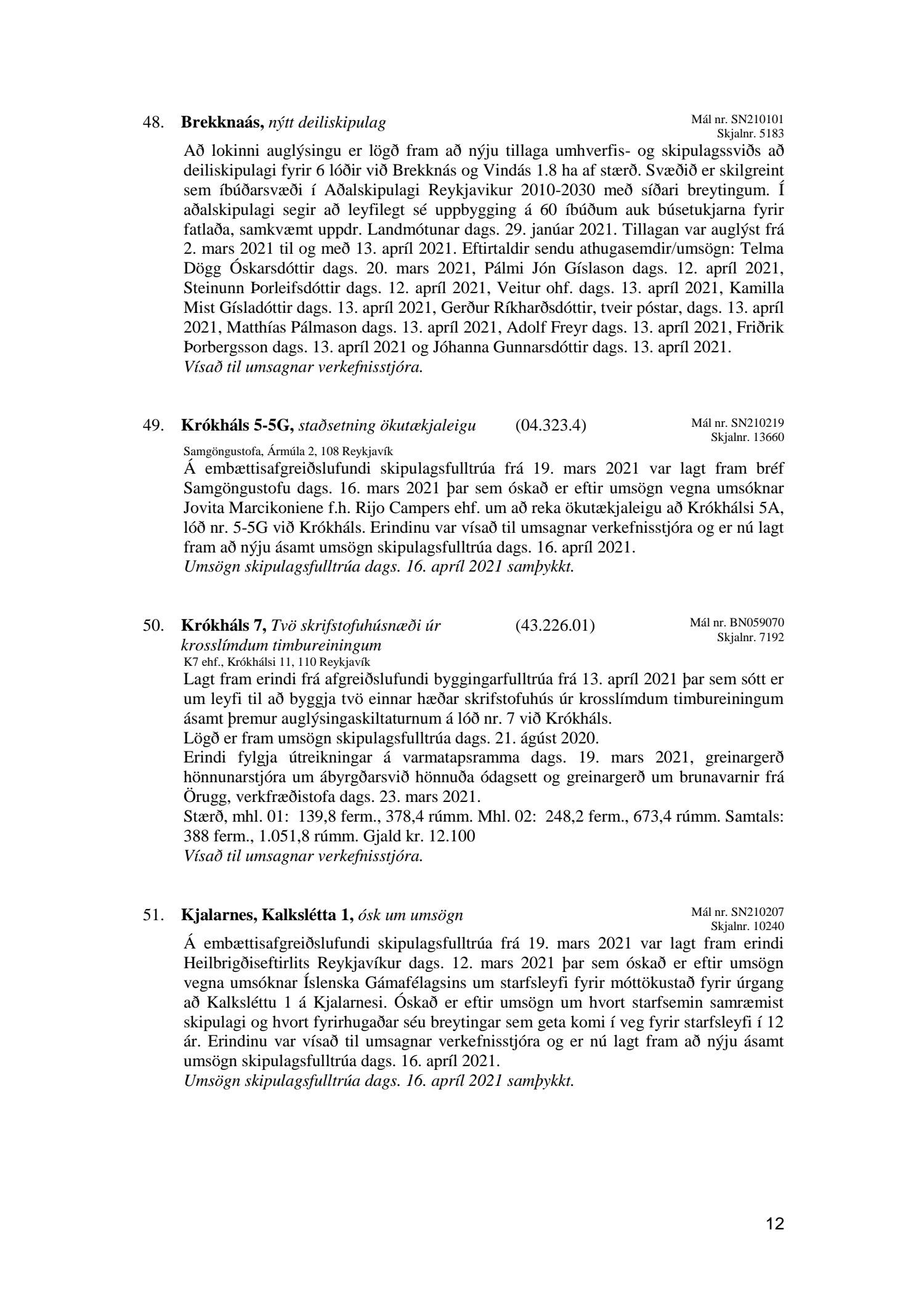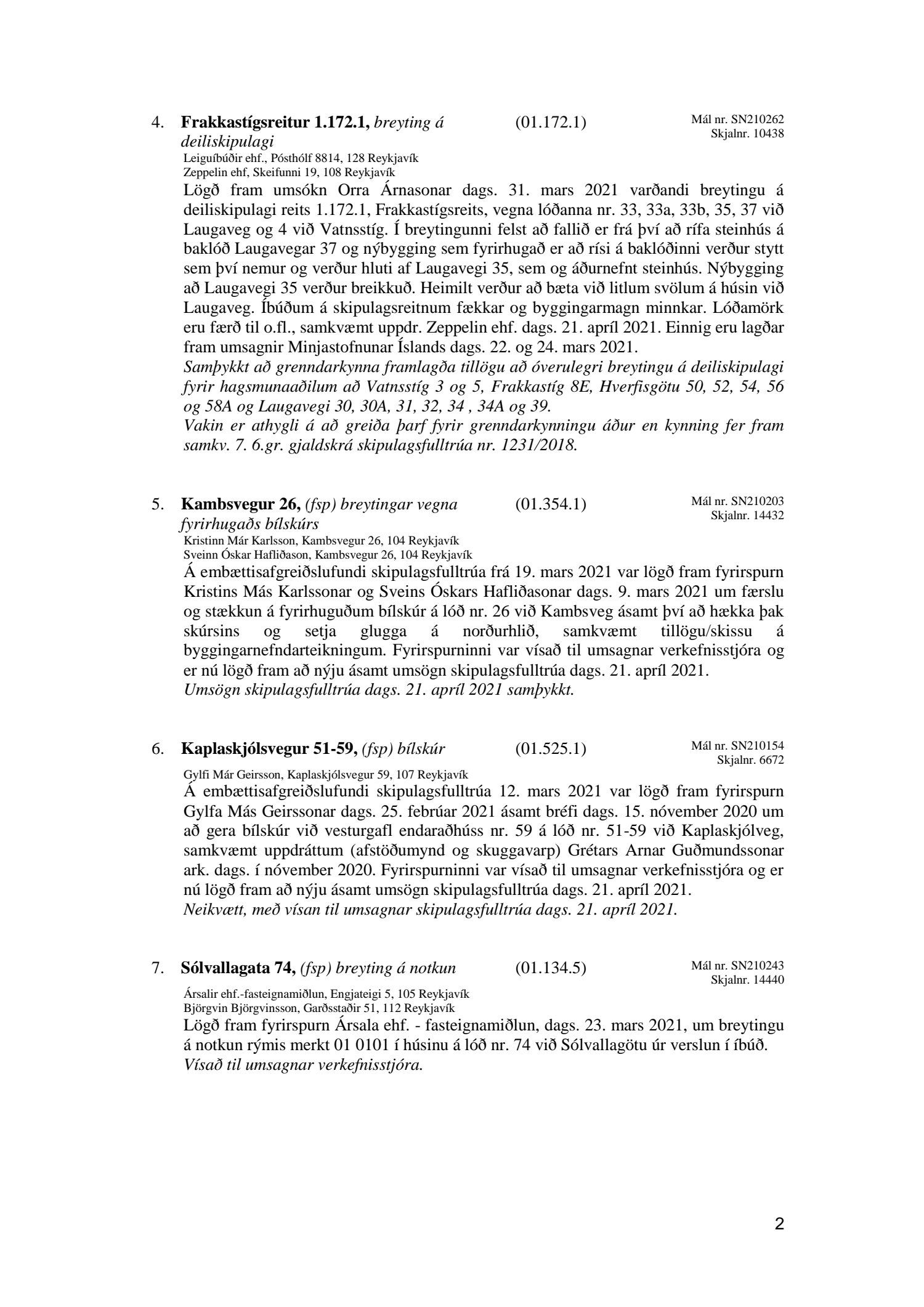 Afgreiðslufundir skipulagsfulltrúa Reykjavíkur, fundargerð