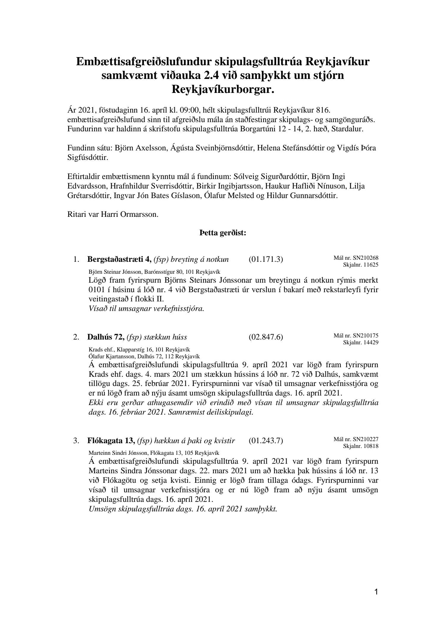 Afgreiðslufundur skipulagsfulltrúa nr. 816