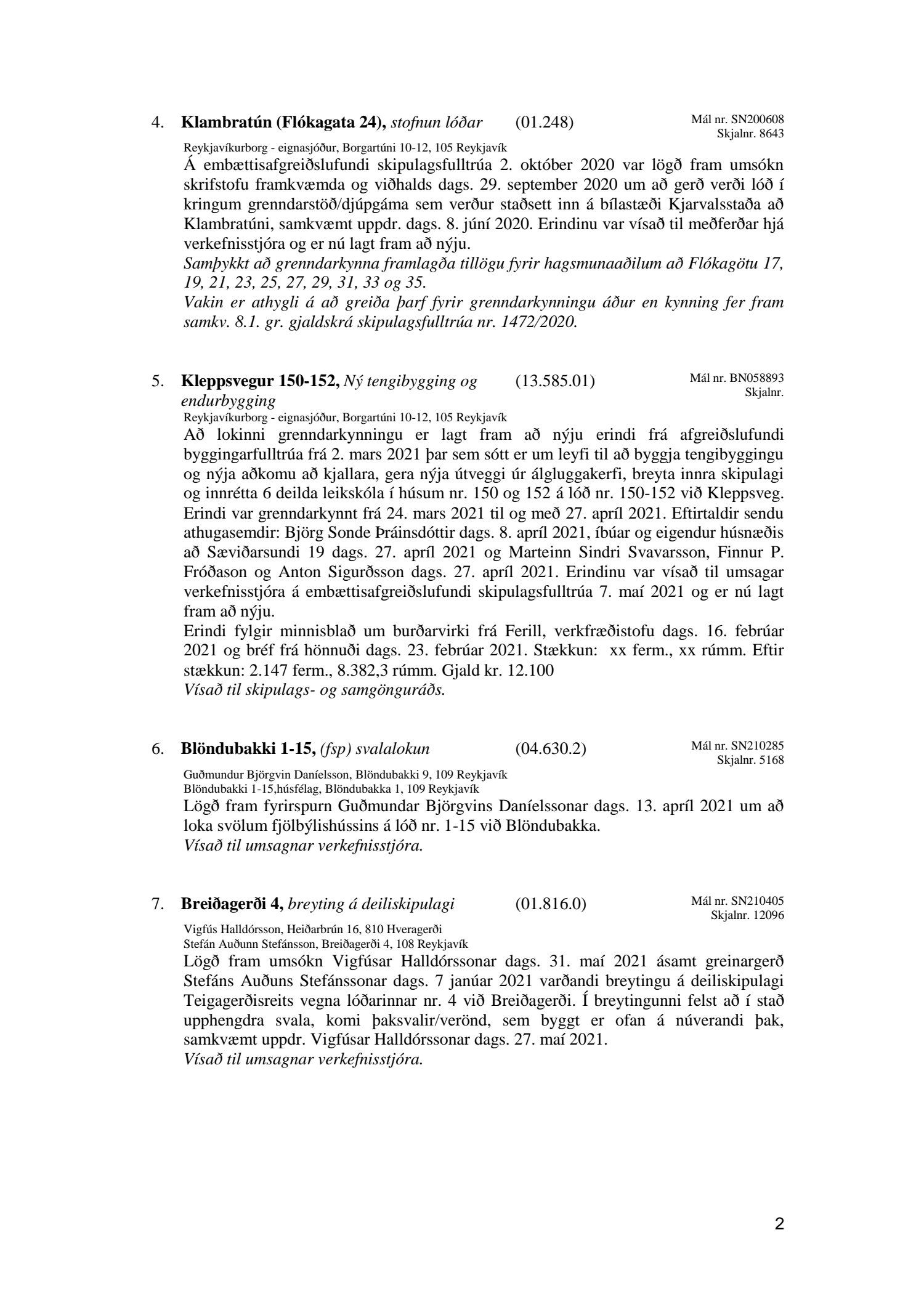 Afgreiðslufundir skipulagsfulltrúa Reykjavíkur, fundargerð