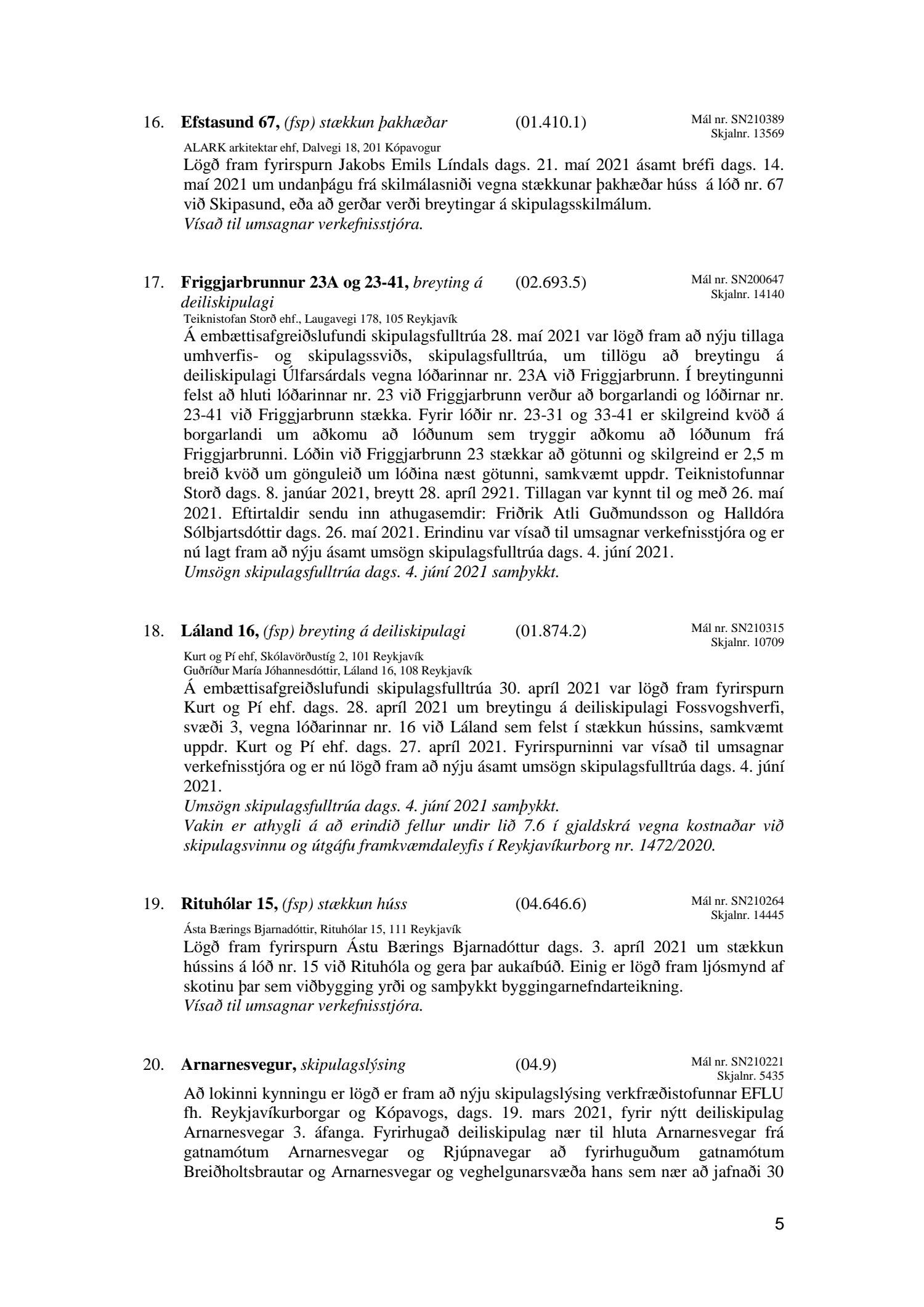 Umhverfis- og skipulagsráð nr. 21