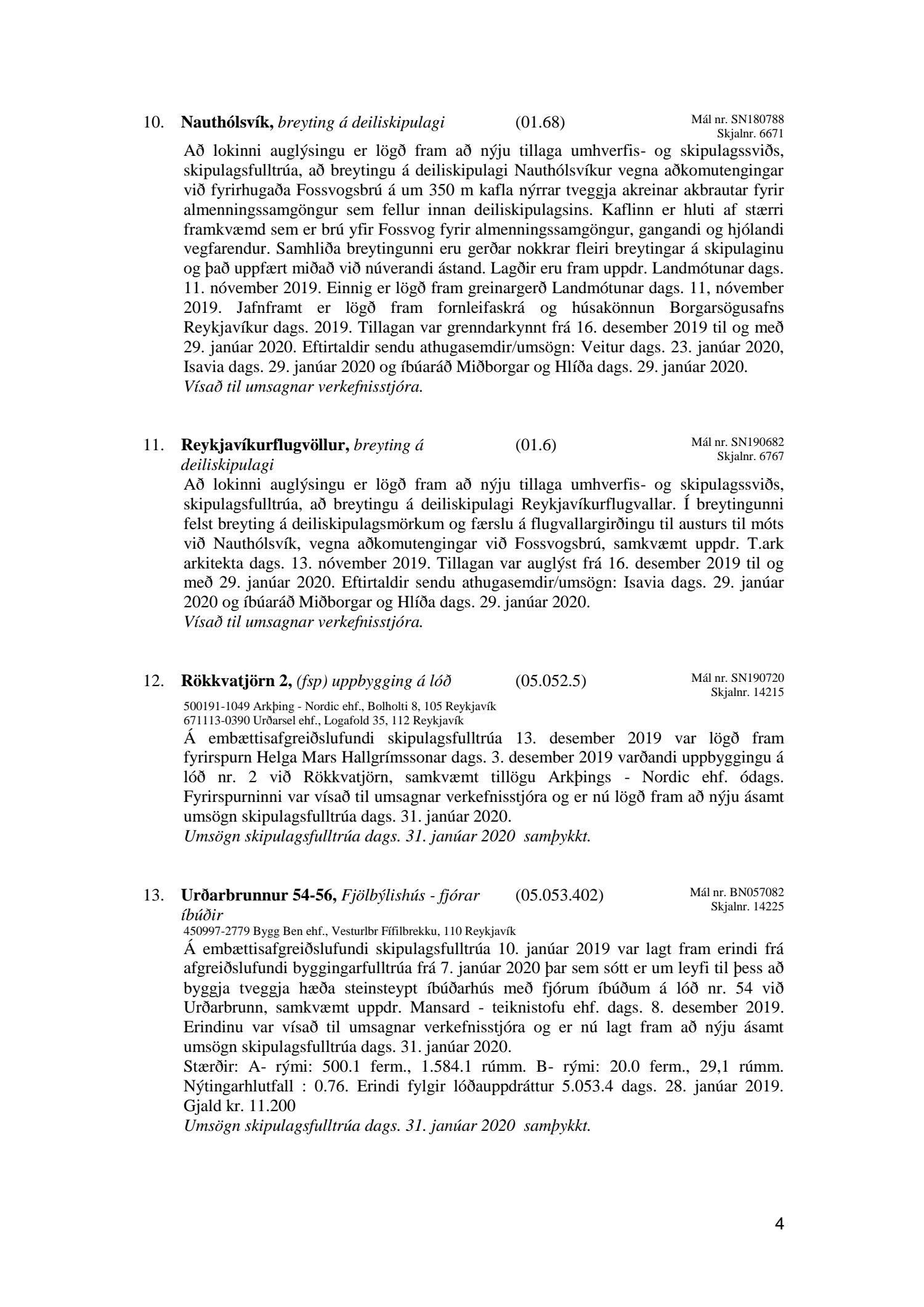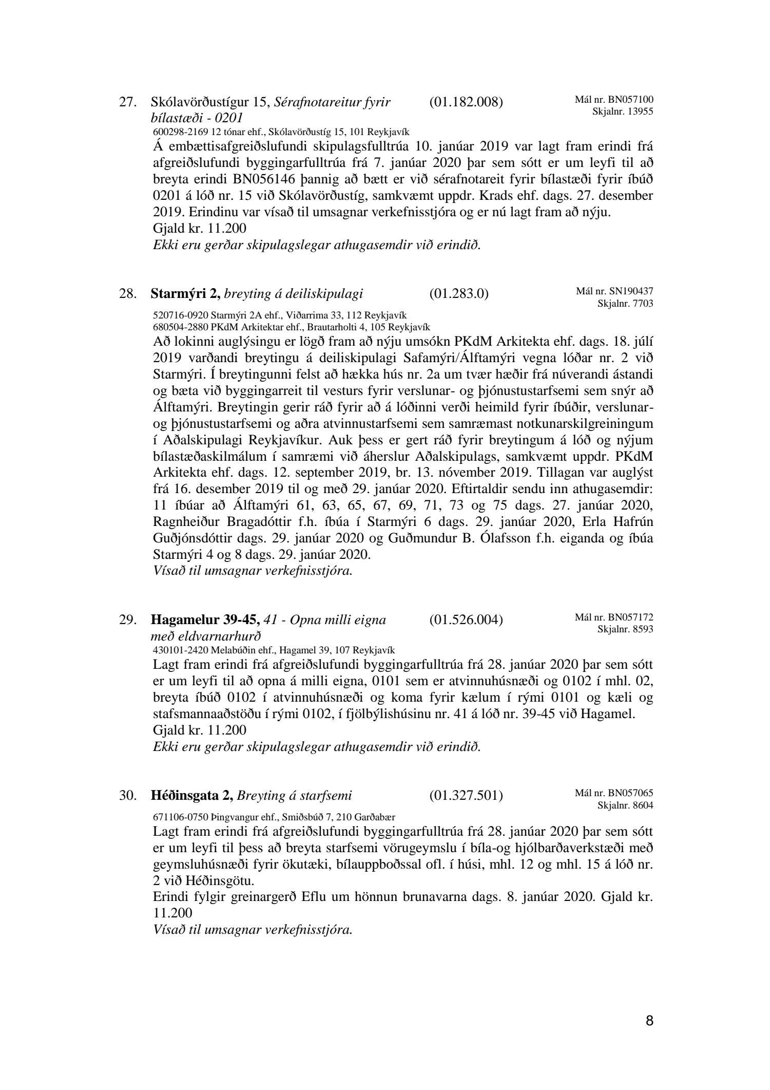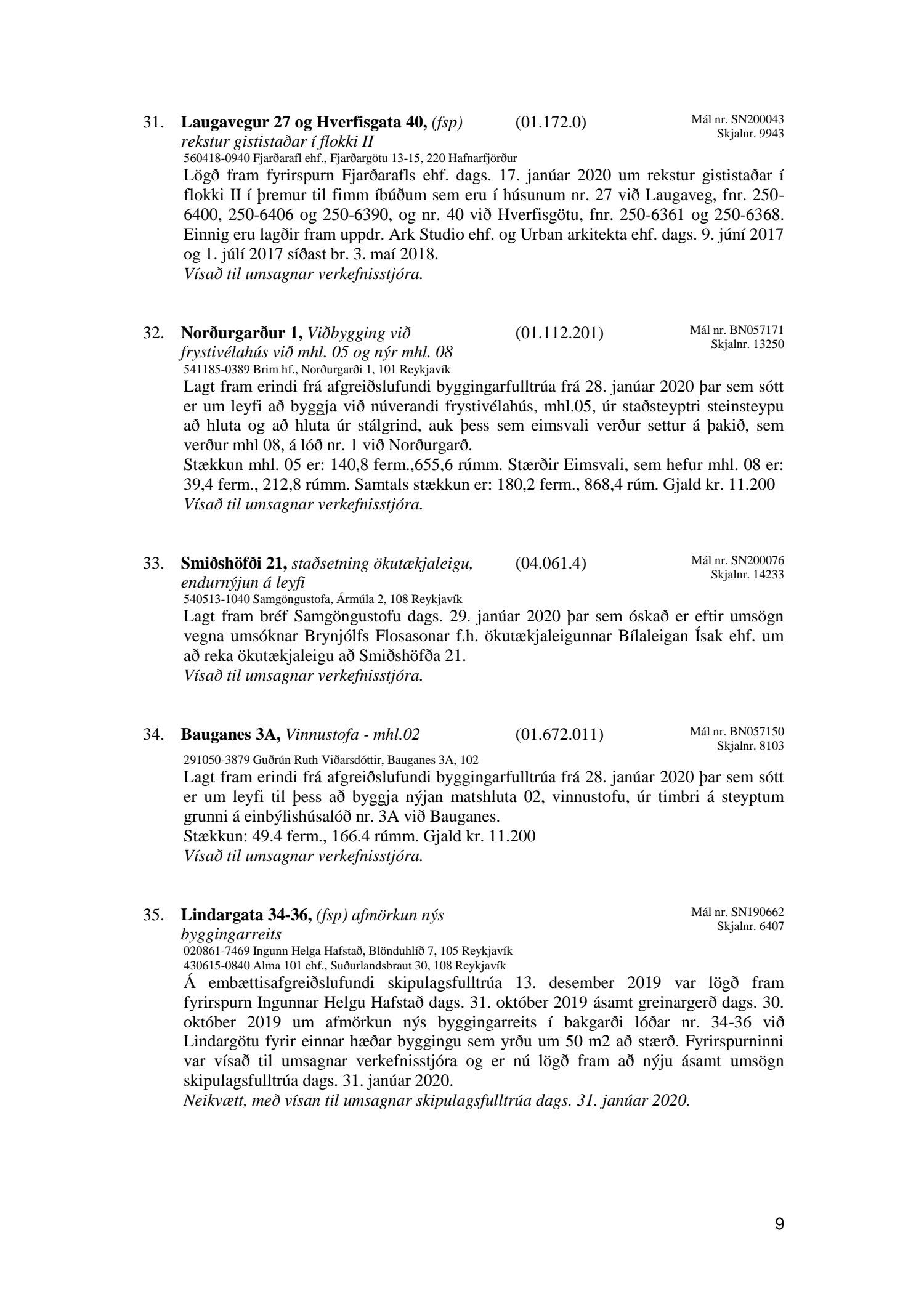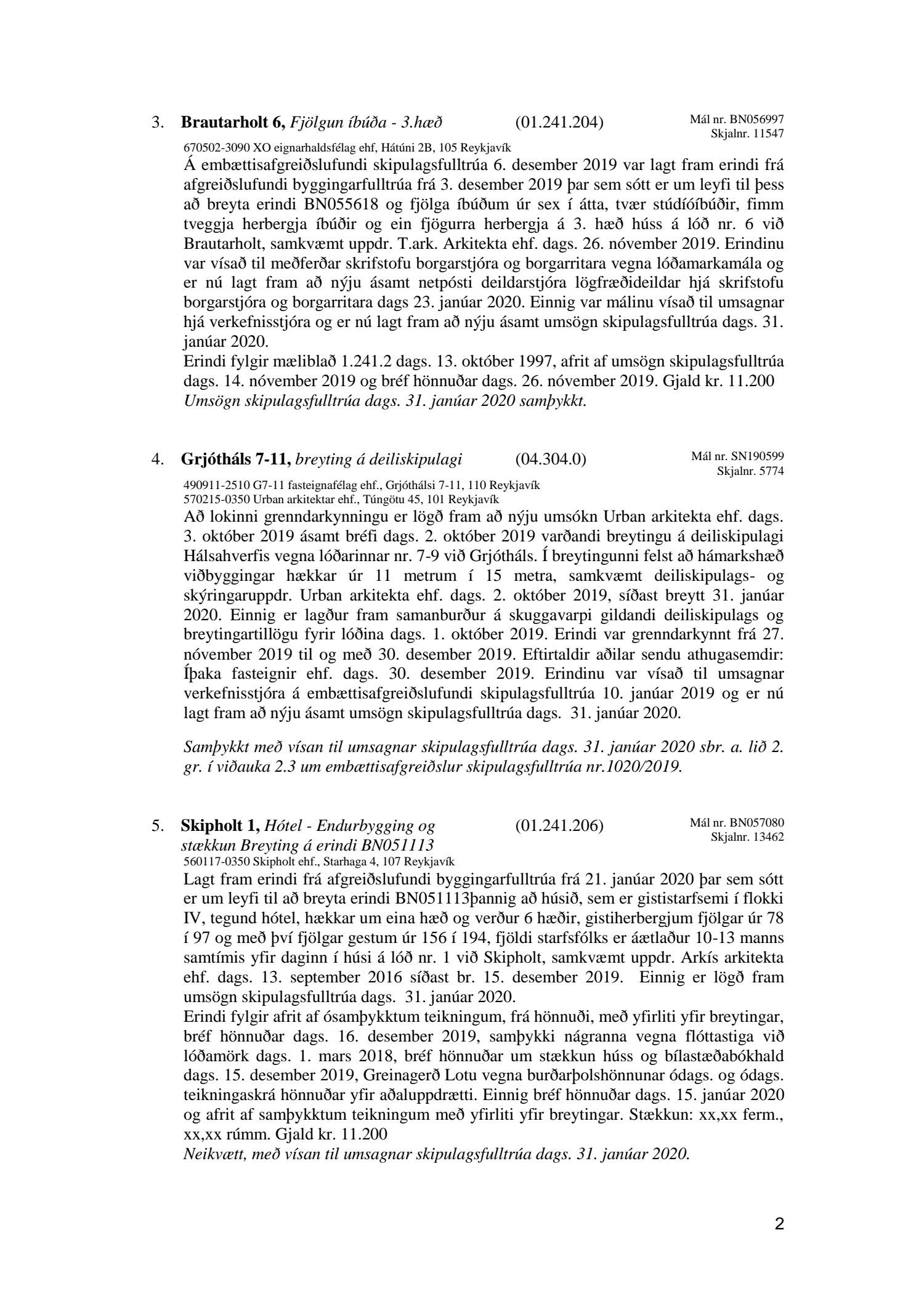 Afgreiðslufundir skipulagsfulltrúa 31. janúar 2020