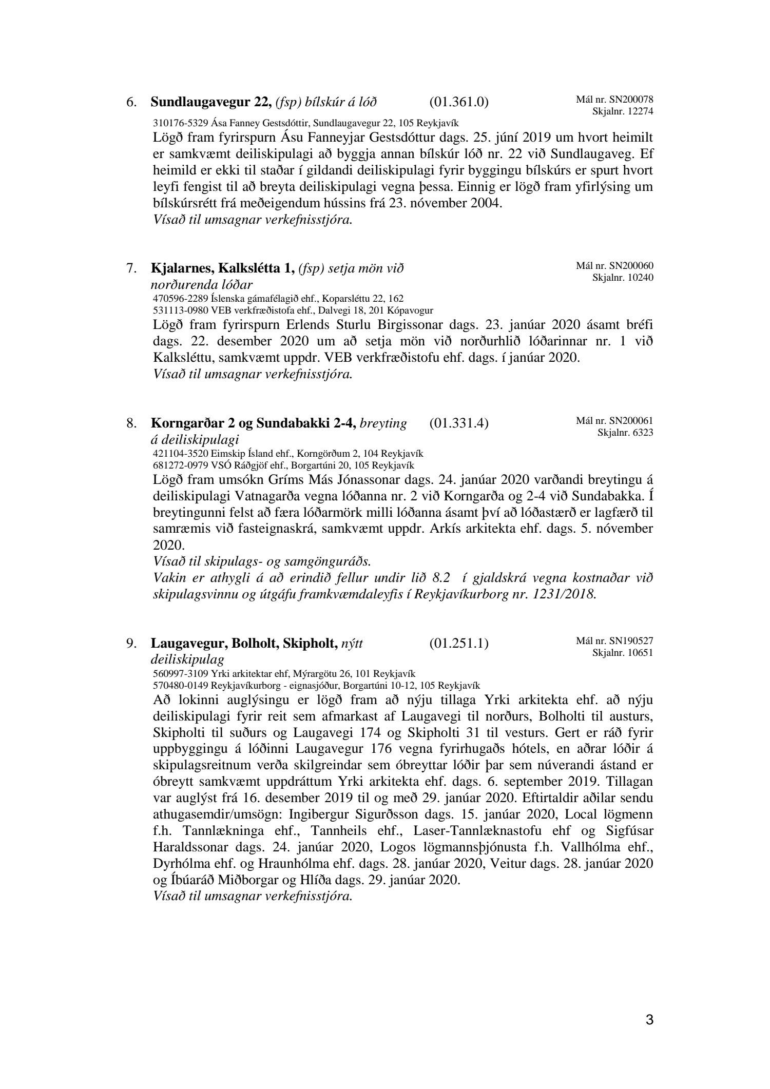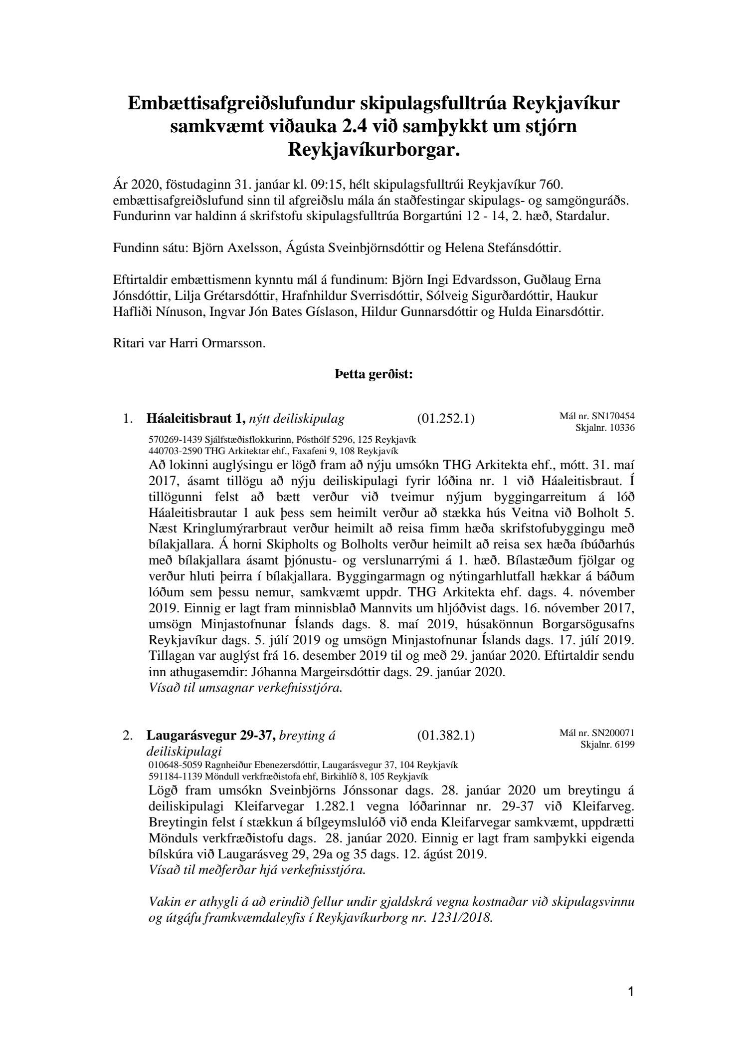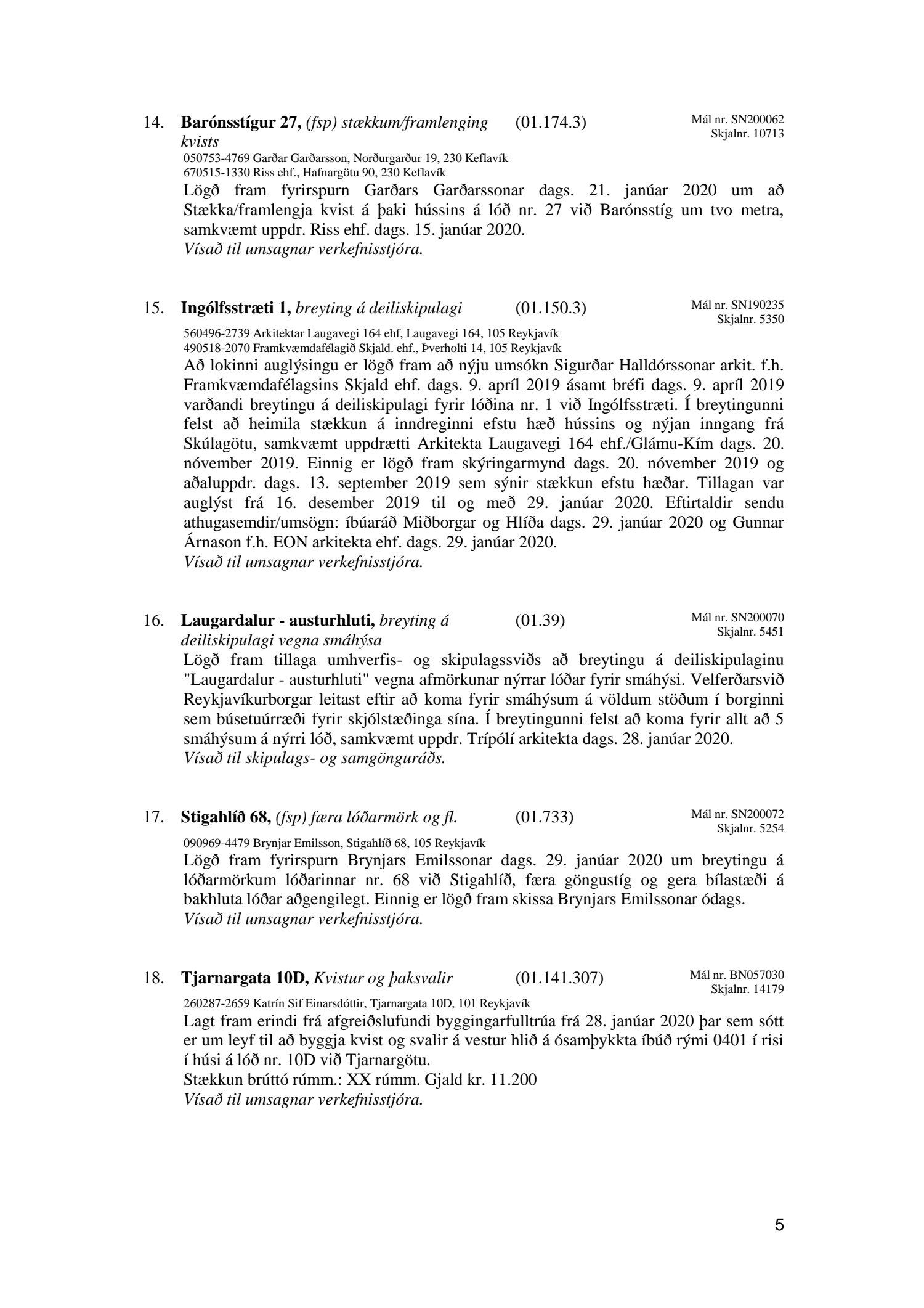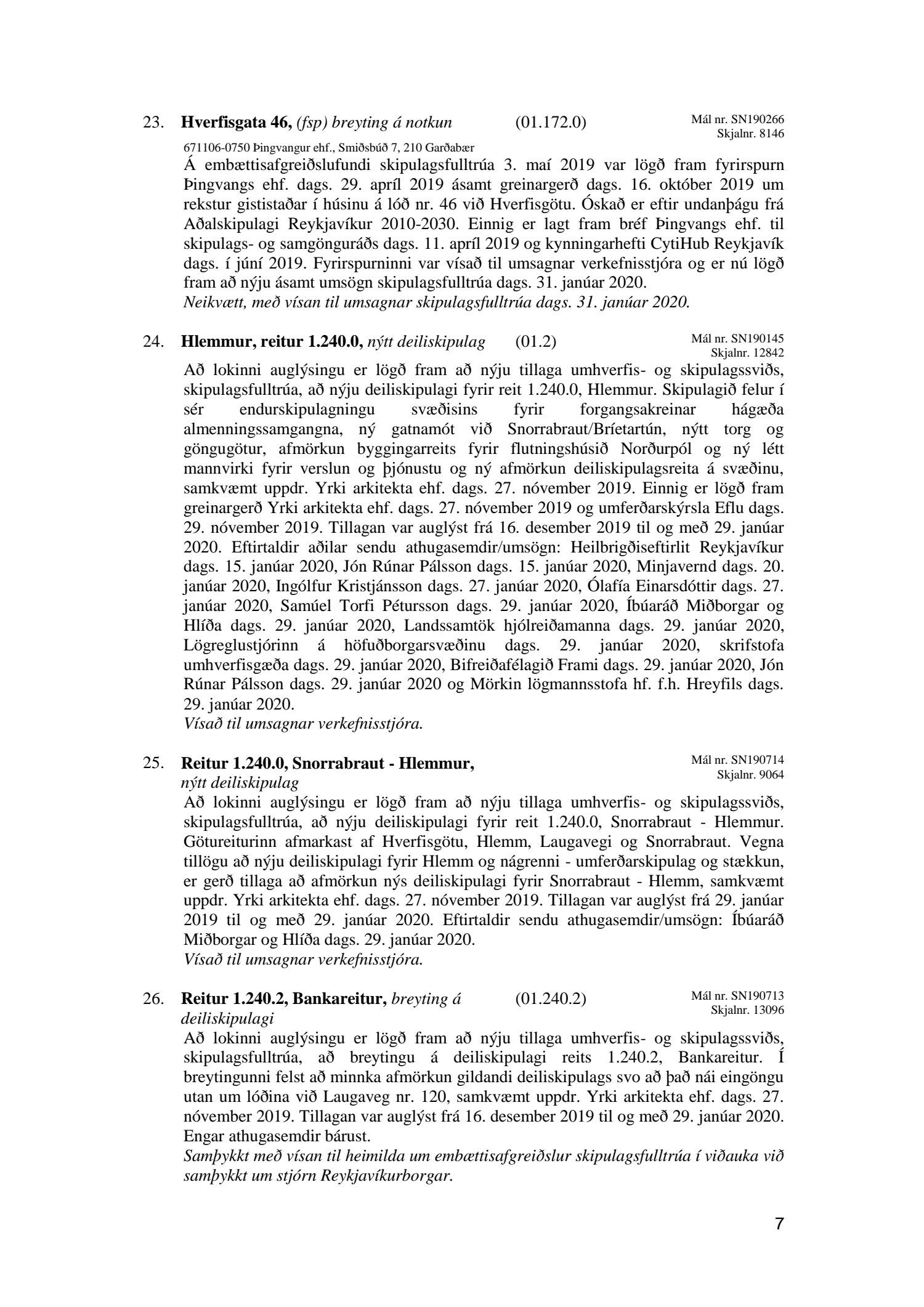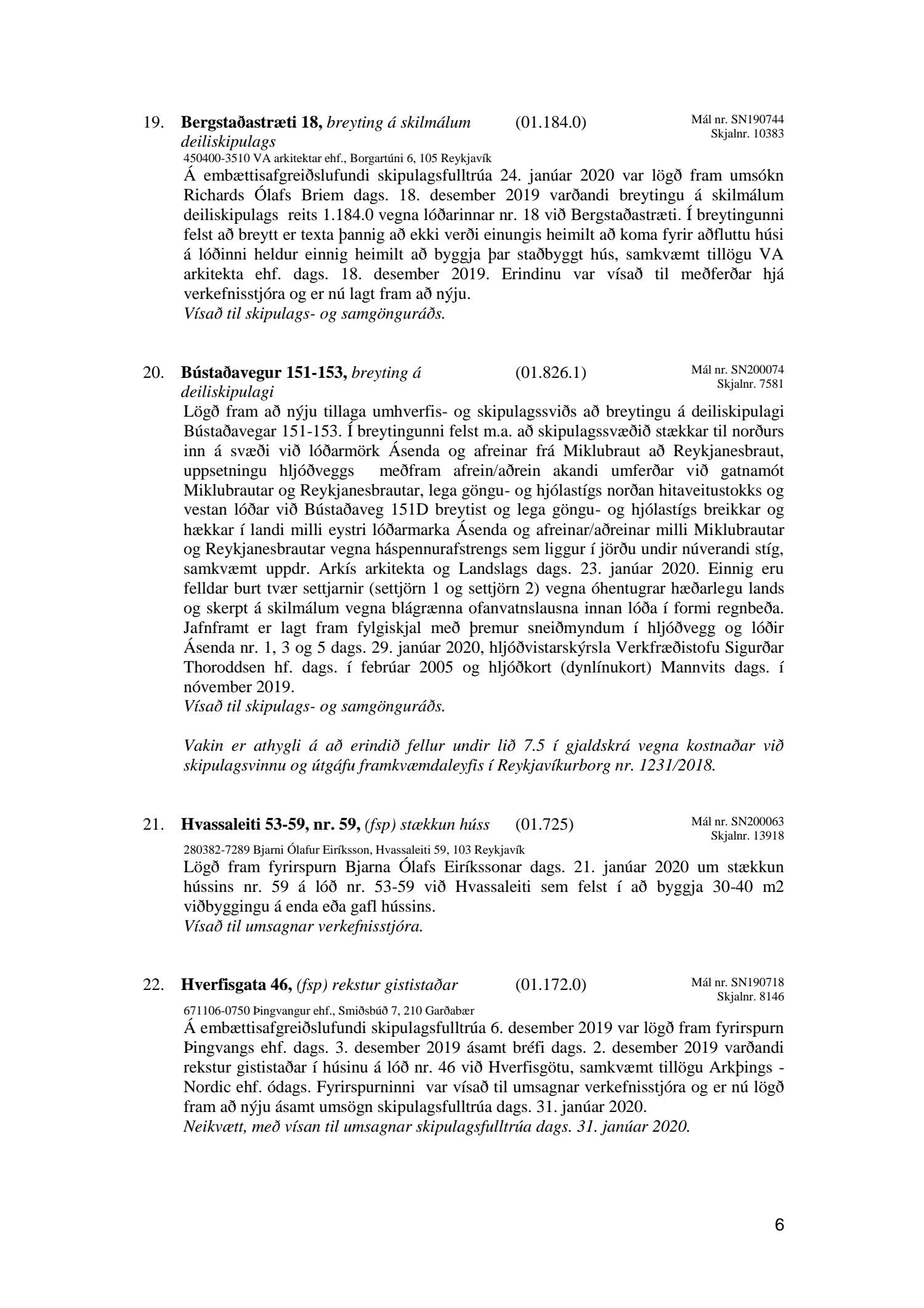 Afgreiðslufundir skipulagsfulltrúa 31. janúar 2020