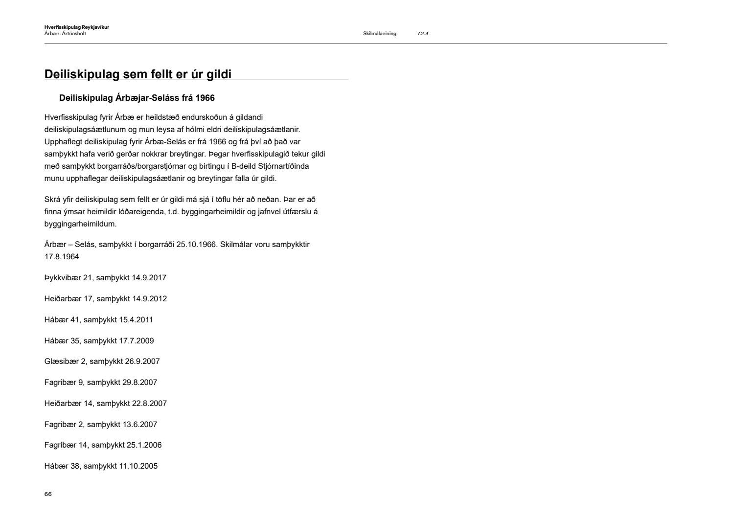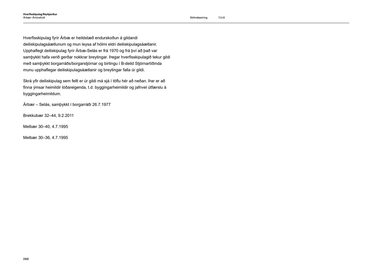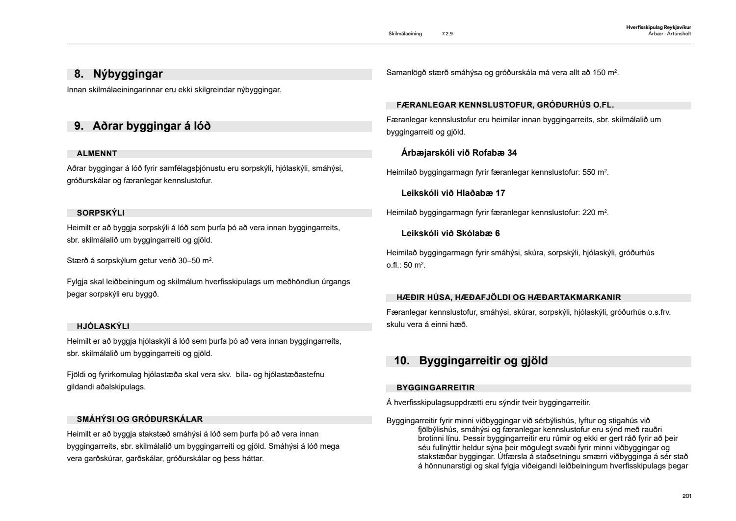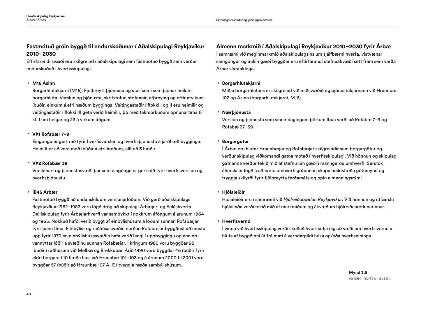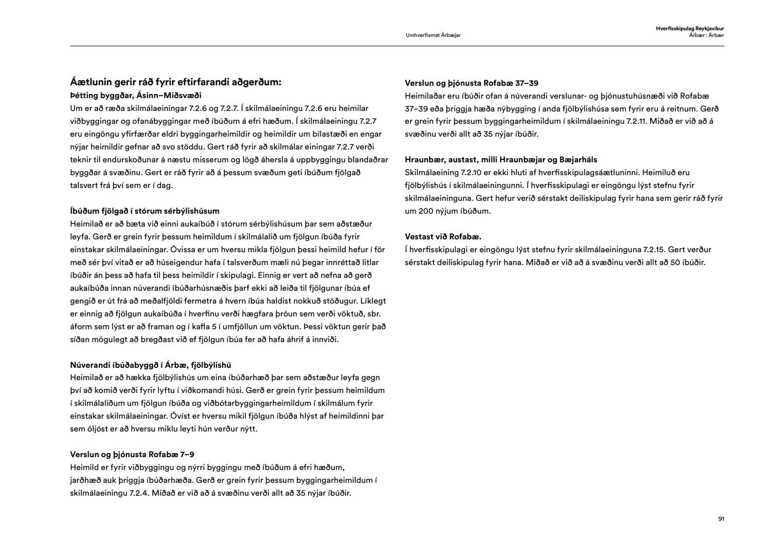 Að lokinni auglýsingu er lögð fram að nýju tillaga að hverfisskipulagi Árbæjar, hverfi 7.2 Árbær dags. 14. desember 2018, br. 12. september 2019 ásamt almennri greinargerð og stefnu dags. 14. desember 2018, br. 12. september 2019 og skipulagsskilmálum dags. 14. desember 2018, br. 12. september 2019. Tillagan var auglýst frá 2. febrúar 2019 til og með 17. mars 2019. Eftirtaldir aðilar sendu athugasemdir: Guðmundur H. Einarsson mótt 17. mars 2019. Einnig sendu eftirtaldar stofnanir inn umsagnir: Heilbrigðiseftirlit Reykjavíkur dags. 20. mars 2019, Skipulagsstofnun dags. 29. mars 2019 og Veitur dags. 22. mars 2019. Einnig er lögð fram umsögn skipulagsfulltrúa dags. 22. september 2019.