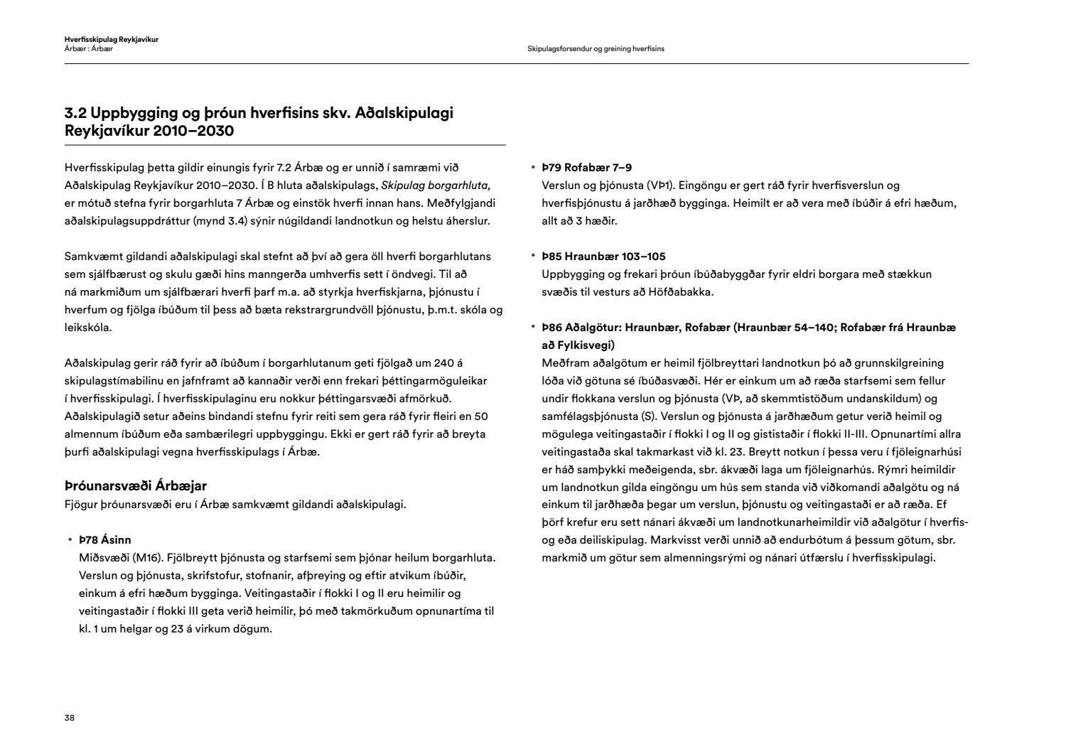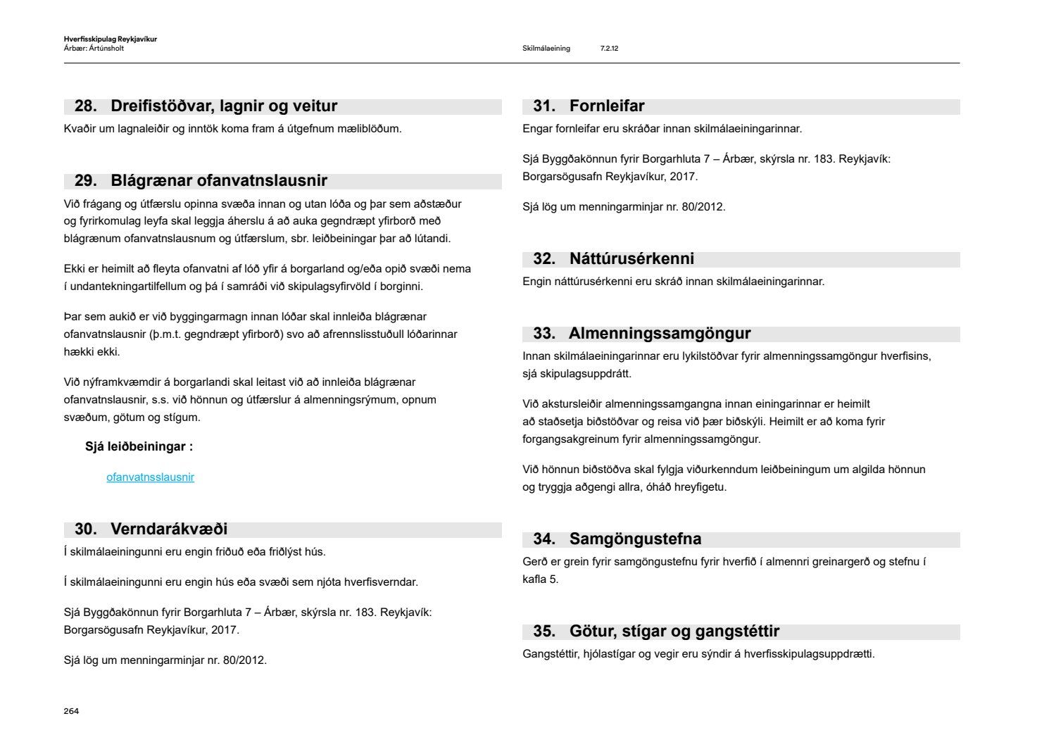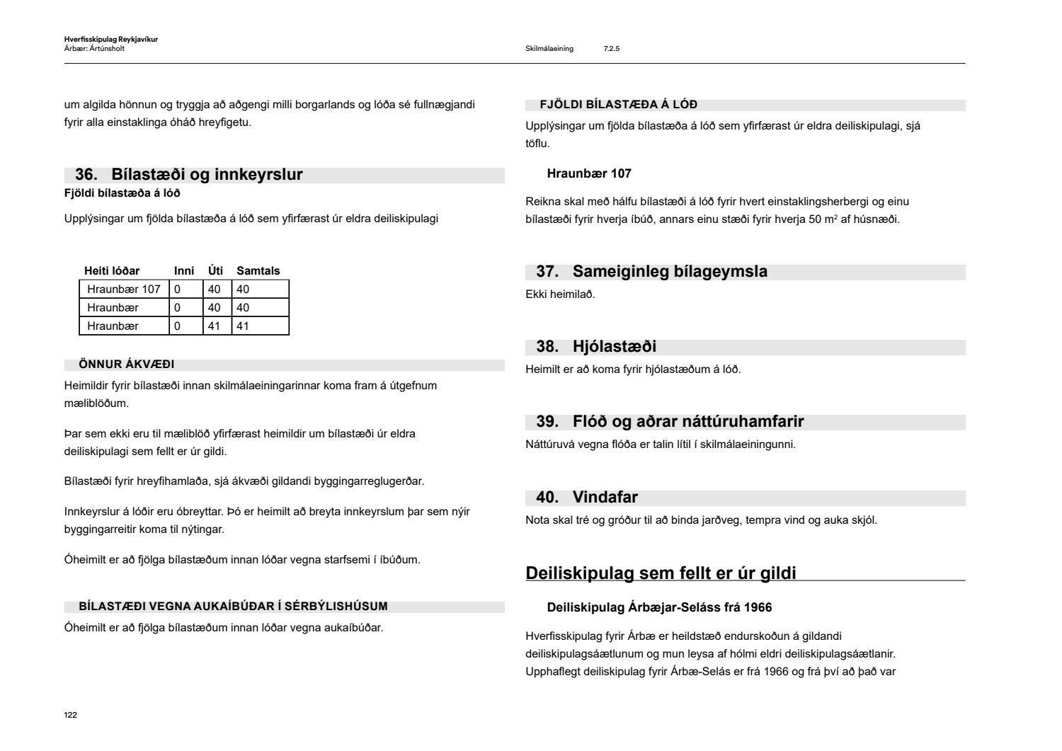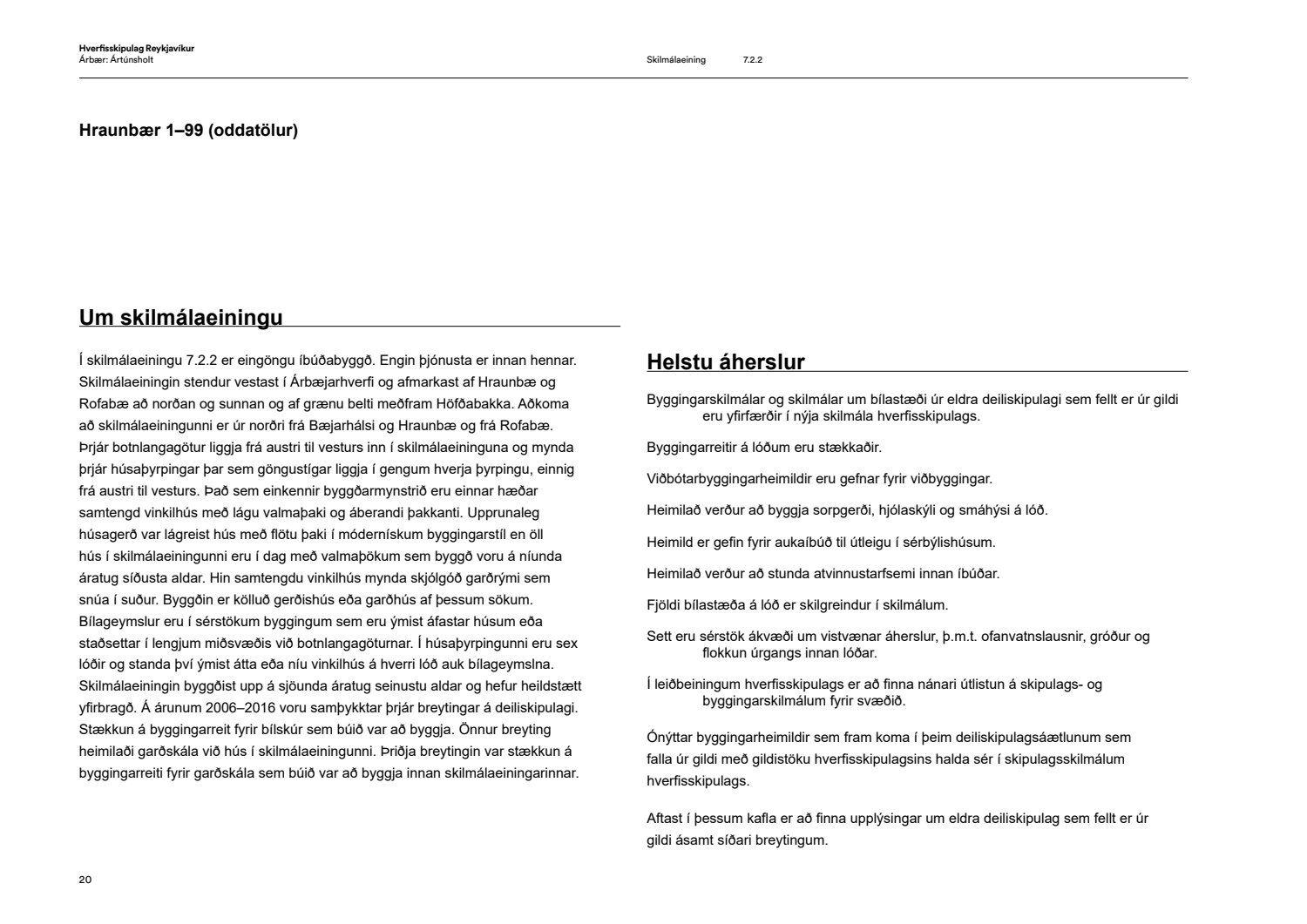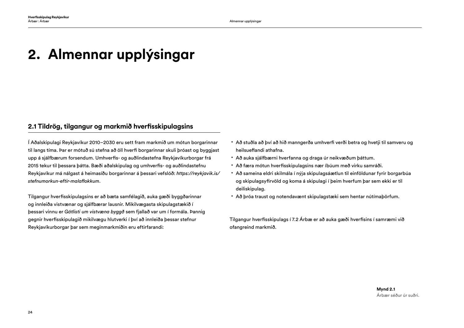 Að lokinni auglýsingu er lögð fram að nýju tillaga að hverfisskipulagi Árbæjar, hverfi 7.2 Árbær dags. 14. desember 2018, br. 12. september 2019 ásamt almennri greinargerð og stefnu dags. 14. desember 2018, br. 12. september 2019 og skipulagsskilmálum dags. 14. desember 2018, br. 12. september 2019. Tillagan var auglýst frá 2. febrúar 2019 til og með 17. mars 2019. Eftirtaldir aðilar sendu athugasemdir: Guðmundur H. Einarsson mótt 17. mars 2019. Einnig sendu eftirtaldar stofnanir inn umsagnir: Heilbrigðiseftirlit Reykjavíkur dags. 20. mars 2019, Skipulagsstofnun dags. 29. mars 2019 og Veitur dags. 22. mars 2019. Einnig er lögð fram umsögn skipulagsfulltrúa dags. 22. september 2019.