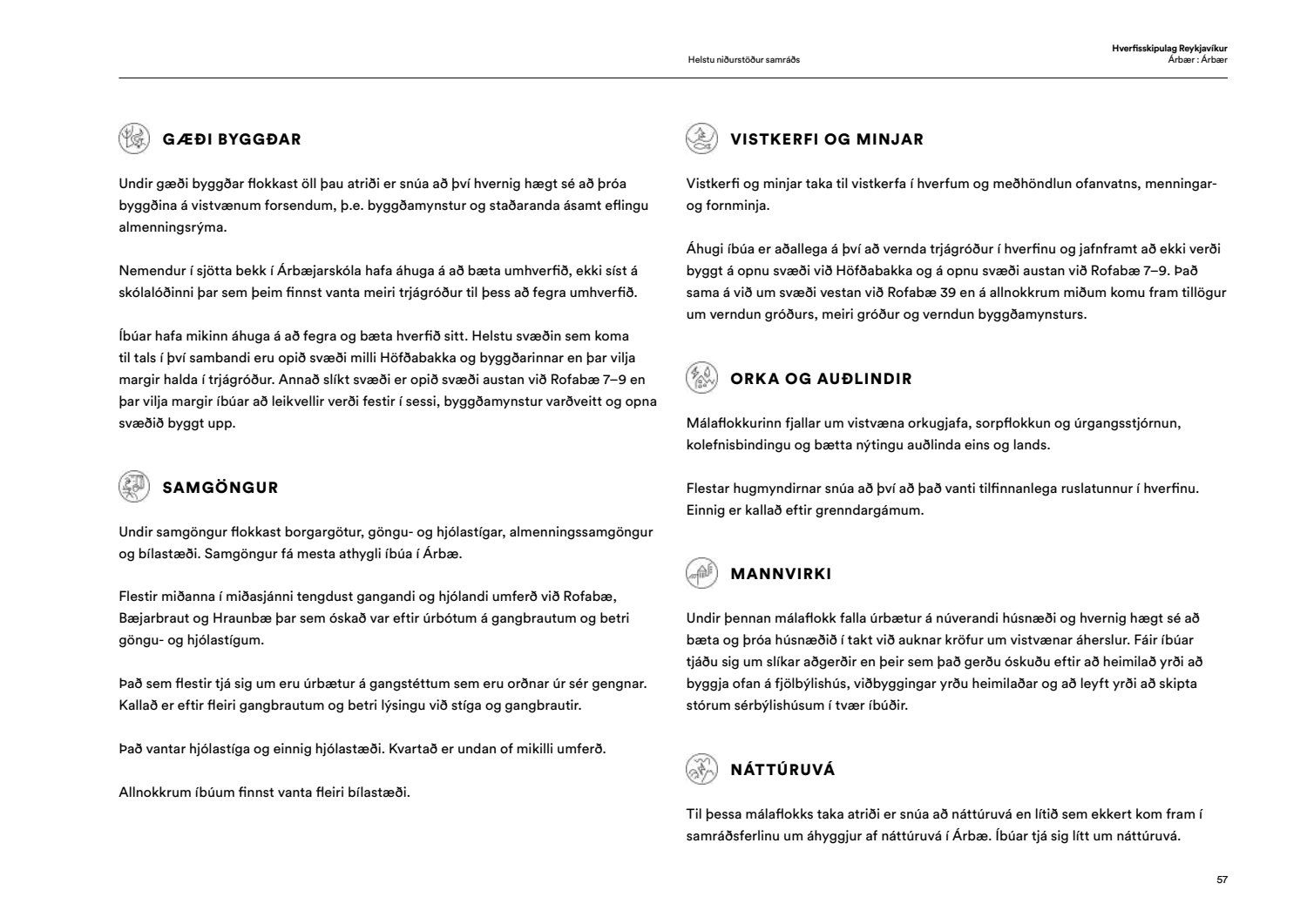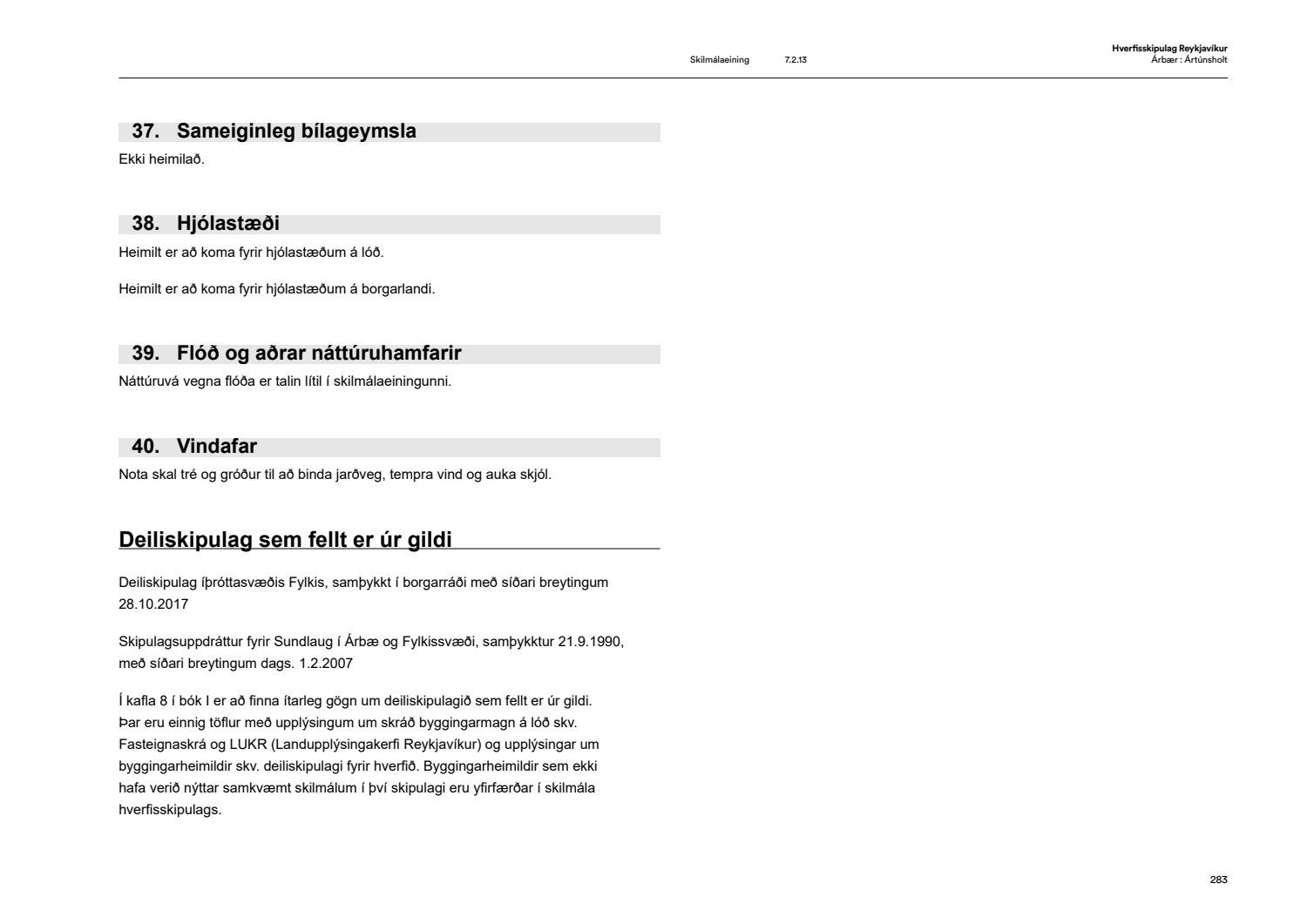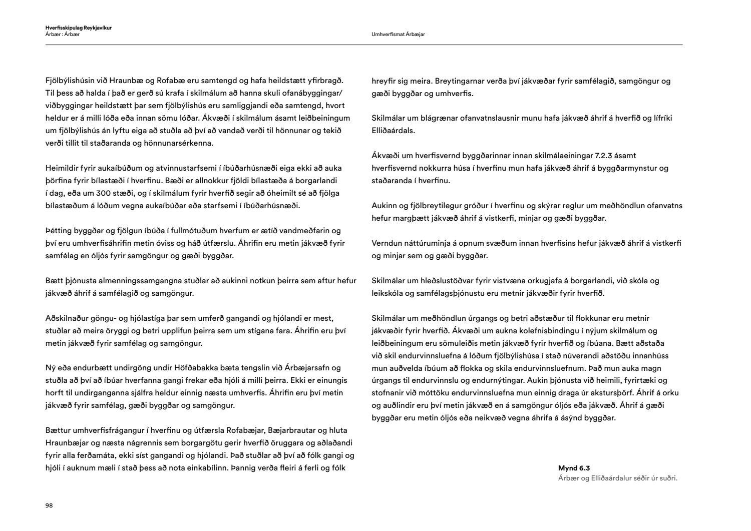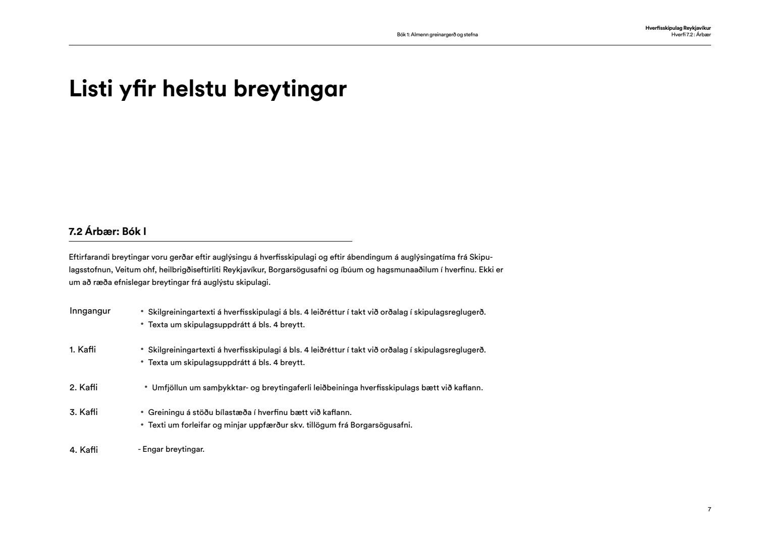 Að lokinni auglýsingu er lögð fram að nýju tillaga að hverfisskipulagi Árbæjar, hverfi 7.2 Árbær dags. 14. desember 2018, br. 12. september 2019 ásamt almennri greinargerð og stefnu dags. 14. desember 2018, br. 12. september 2019 og skipulagsskilmálum dags. 14. desember 2018, br. 12. september 2019. Tillagan var auglýst frá 2. febrúar 2019 til og með 17. mars 2019. Eftirtaldir aðilar sendu athugasemdir: Guðmundur H. Einarsson mótt 17. mars 2019. Einnig sendu eftirtaldar stofnanir inn umsagnir: Heilbrigðiseftirlit Reykjavíkur dags. 20. mars 2019, Skipulagsstofnun dags. 29. mars 2019 og Veitur dags. 22. mars 2019. Einnig er lögð fram umsögn skipulagsfulltrúa dags. 22. september 2019.