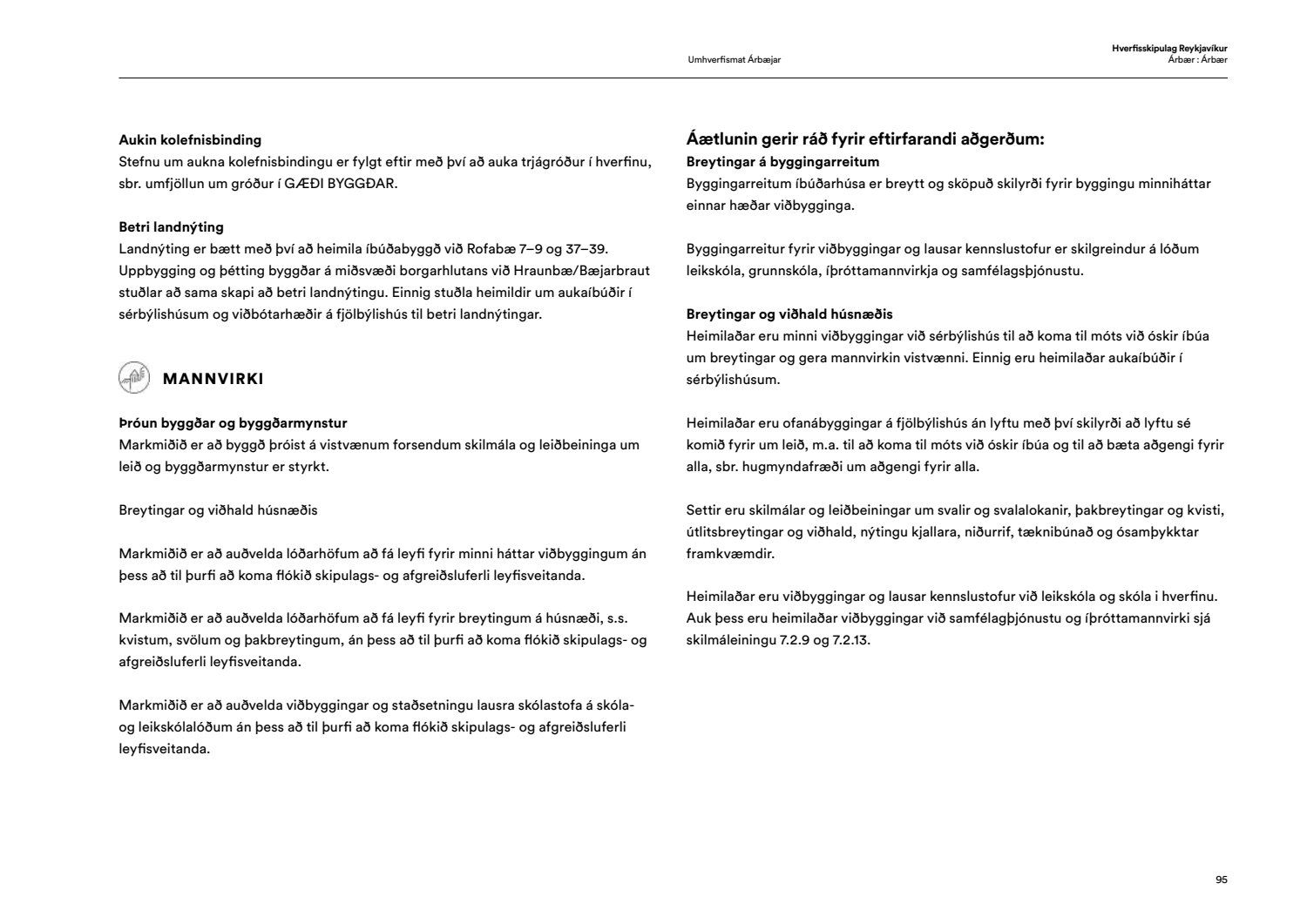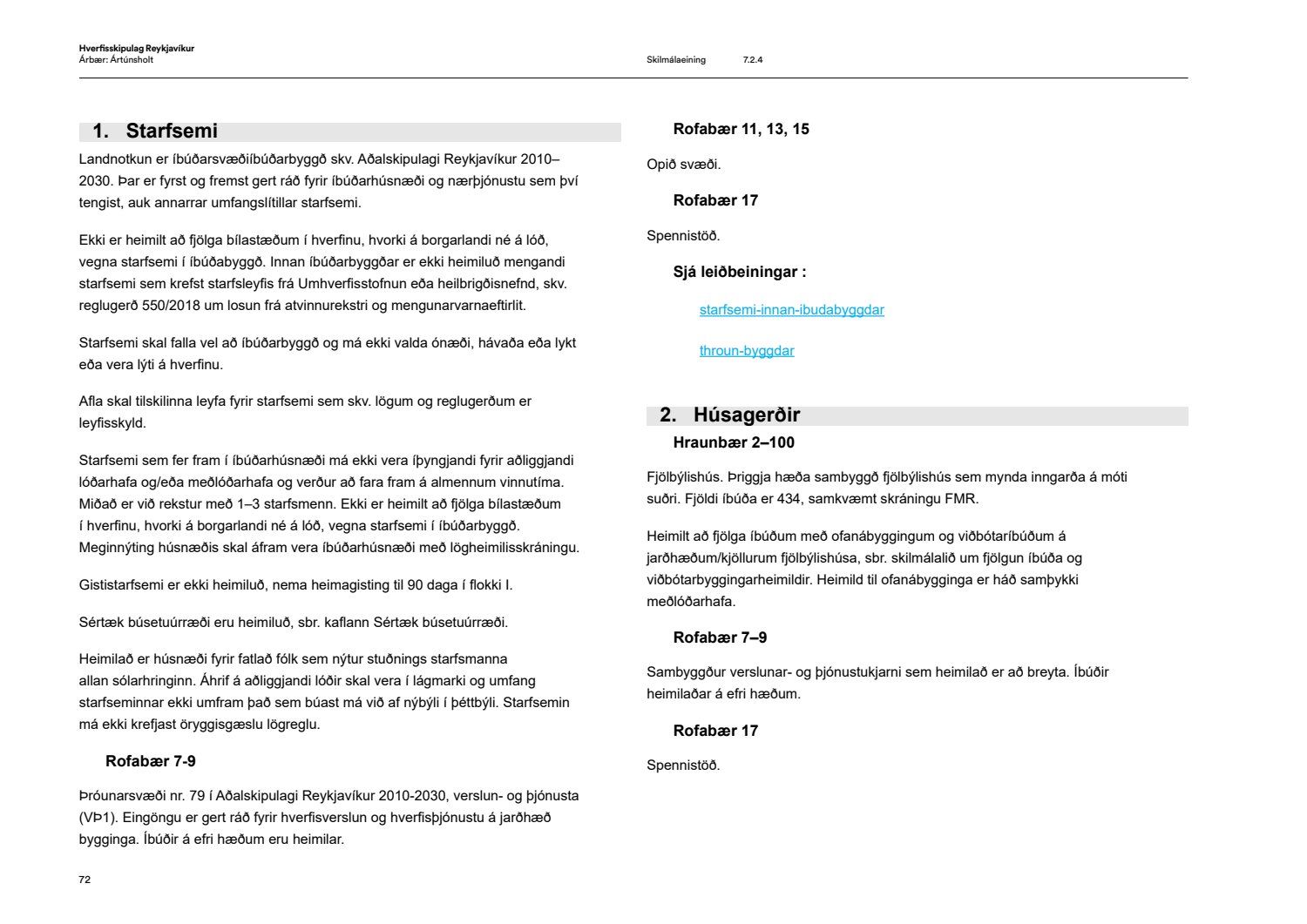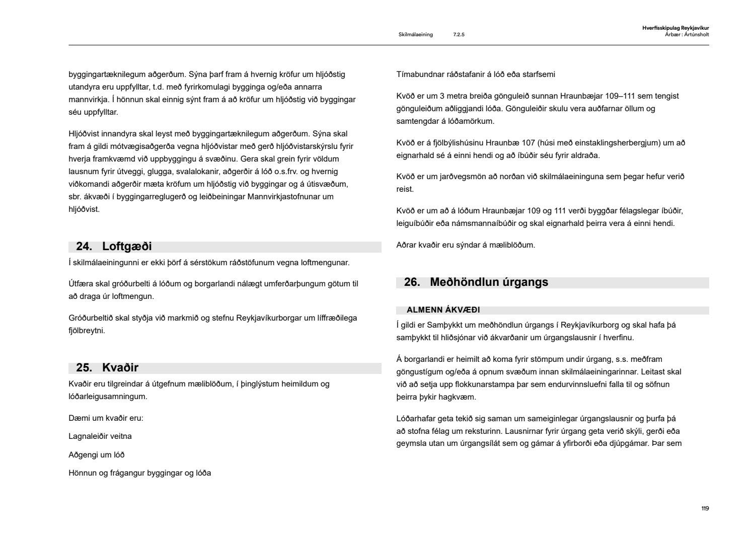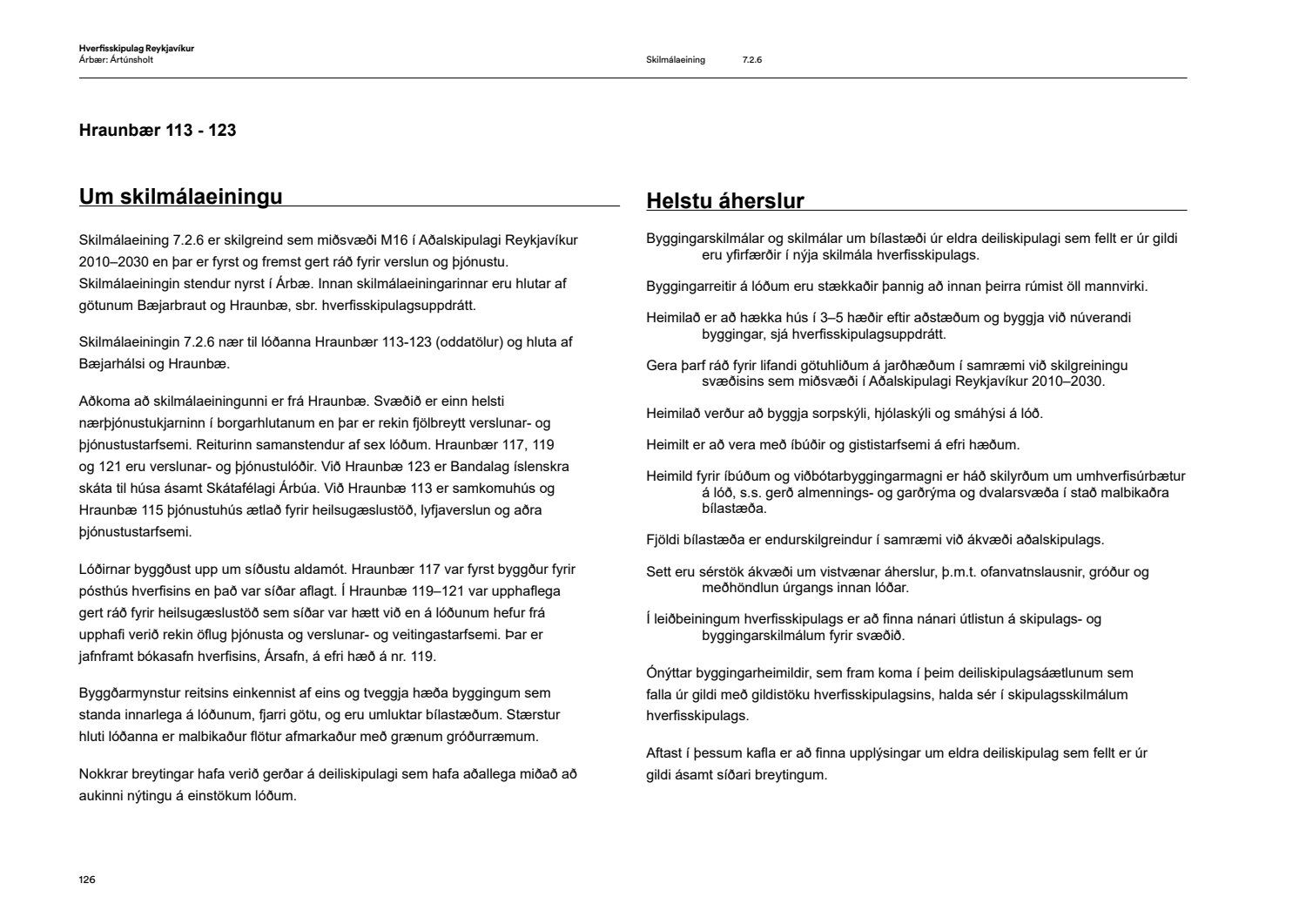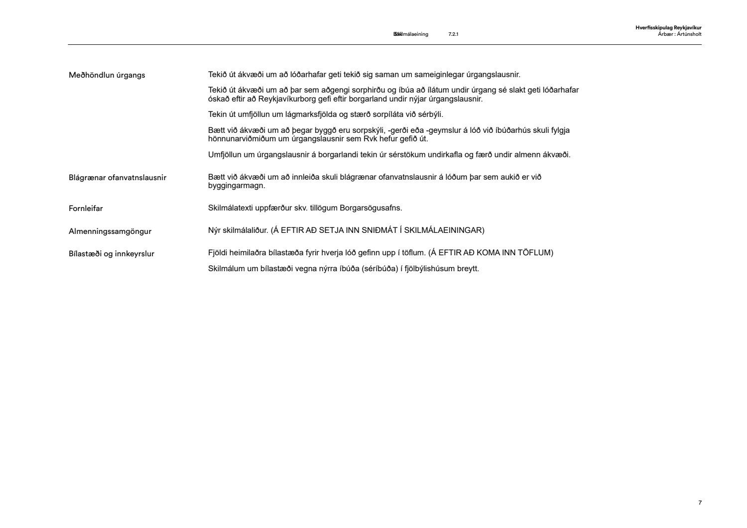 Að lokinni auglýsingu er lögð fram að nýju tillaga að hverfisskipulagi Árbæjar, hverfi 7.2 Árbær dags. 14. desember 2018, br. 12. september 2019 ásamt almennri greinargerð og stefnu dags. 14. desember 2018, br. 12. september 2019 og skipulagsskilmálum dags. 14. desember 2018, br. 12. september 2019. Tillagan var auglýst frá 2. febrúar 2019 til og með 17. mars 2019. Eftirtaldir aðilar sendu athugasemdir: Guðmundur H. Einarsson mótt 17. mars 2019. Einnig sendu eftirtaldar stofnanir inn umsagnir: Heilbrigðiseftirlit Reykjavíkur dags. 20. mars 2019, Skipulagsstofnun dags. 29. mars 2019 og Veitur dags. 22. mars 2019. Einnig er lögð fram umsögn skipulagsfulltrúa dags. 22. september 2019.