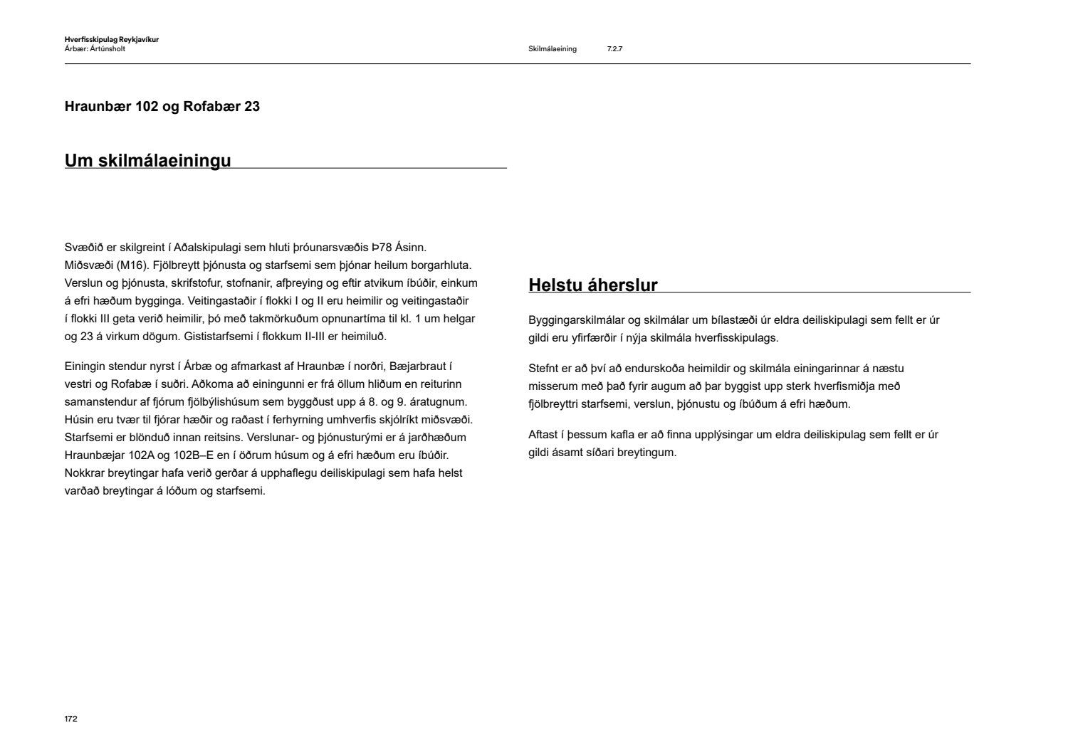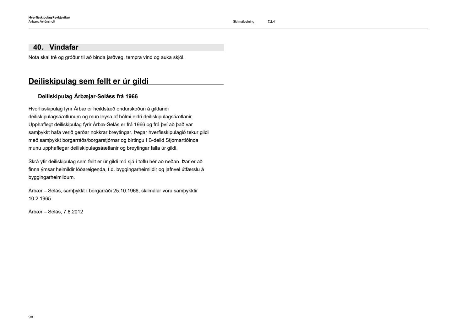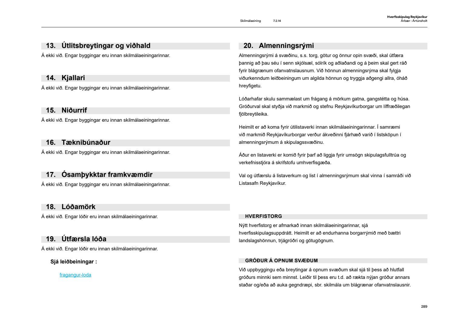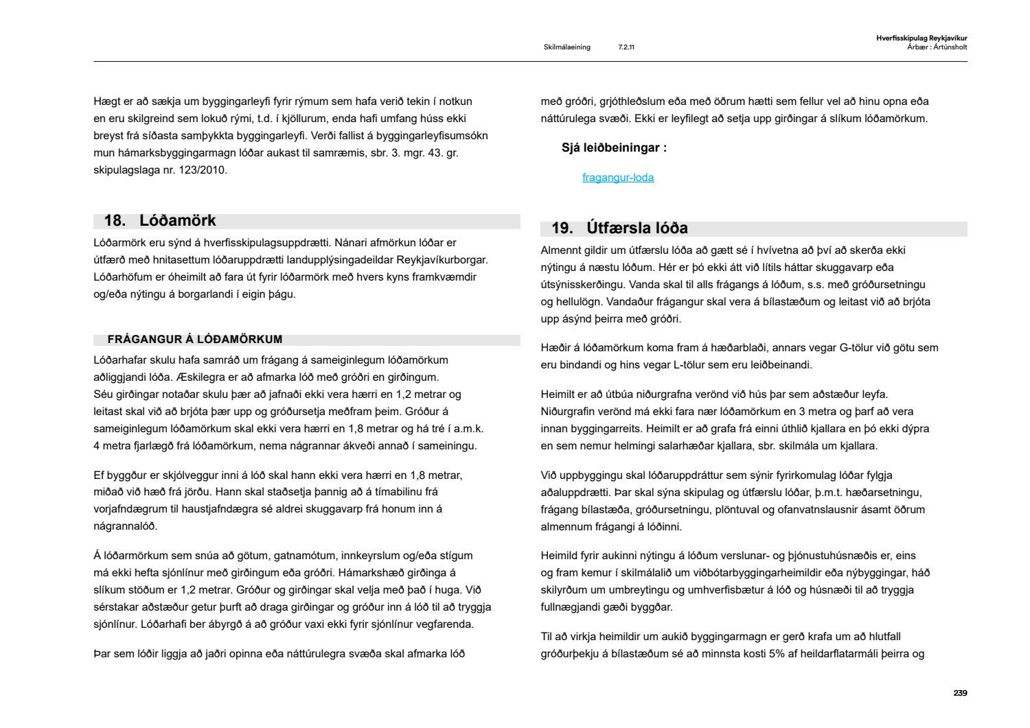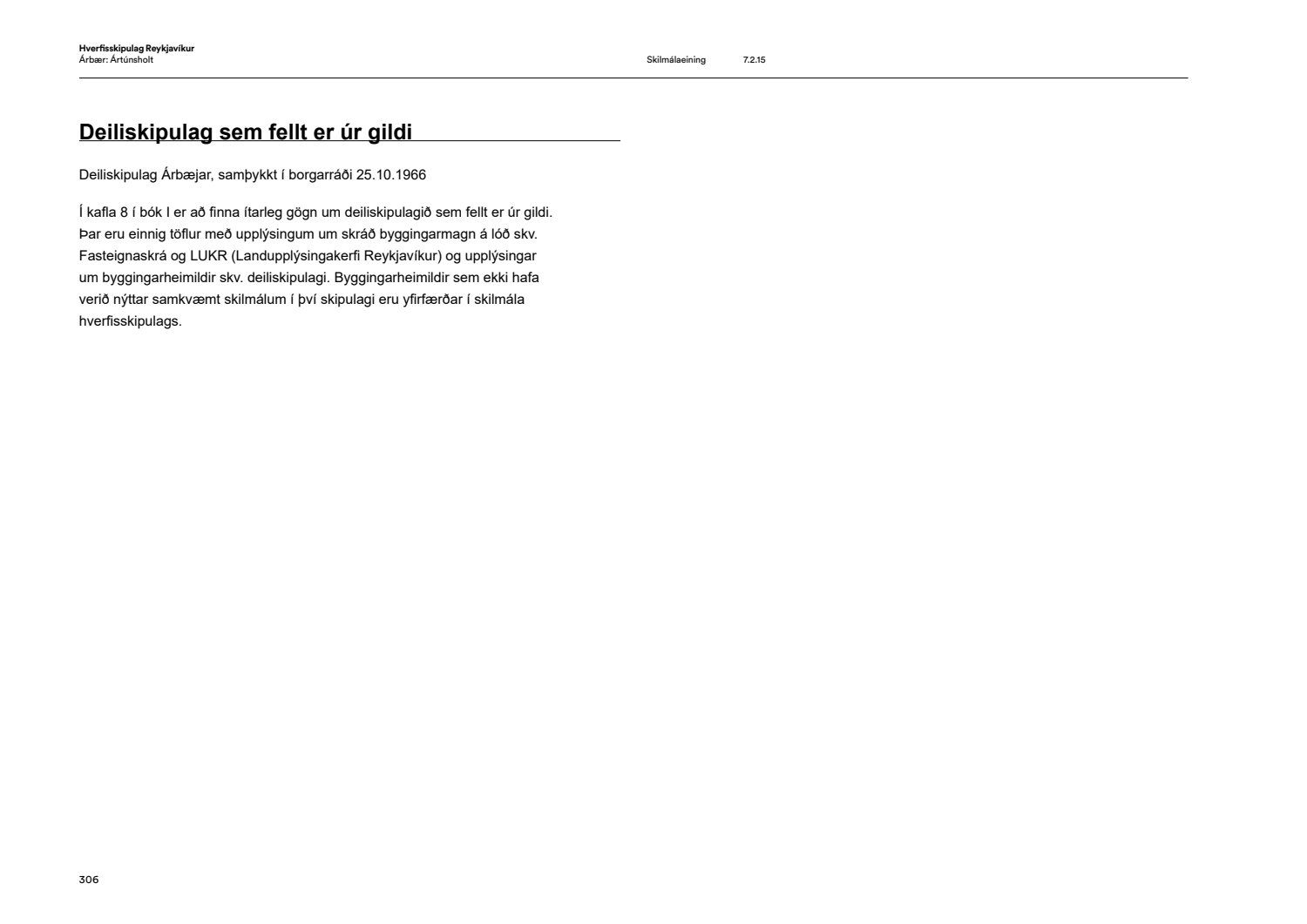 Að lokinni auglýsingu er lögð fram að nýju tillaga að hverfisskipulagi Árbæjar, hverfi 7.2 Árbær dags. 14. desember 2018, br. 12. september 2019 ásamt almennri greinargerð og stefnu dags. 14. desember 2018, br. 12. september 2019 og skipulagsskilmálum dags. 14. desember 2018, br. 12. september 2019. Tillagan var auglýst frá 2. febrúar 2019 til og með 17. mars 2019. Eftirtaldir aðilar sendu athugasemdir: Guðmundur H. Einarsson mótt 17. mars 2019. Einnig sendu eftirtaldar stofnanir inn umsagnir: Heilbrigðiseftirlit Reykjavíkur dags. 20. mars 2019, Skipulagsstofnun dags. 29. mars 2019 og Veitur dags. 22. mars 2019. Einnig er lögð fram umsögn skipulagsfulltrúa dags. 22. september 2019.