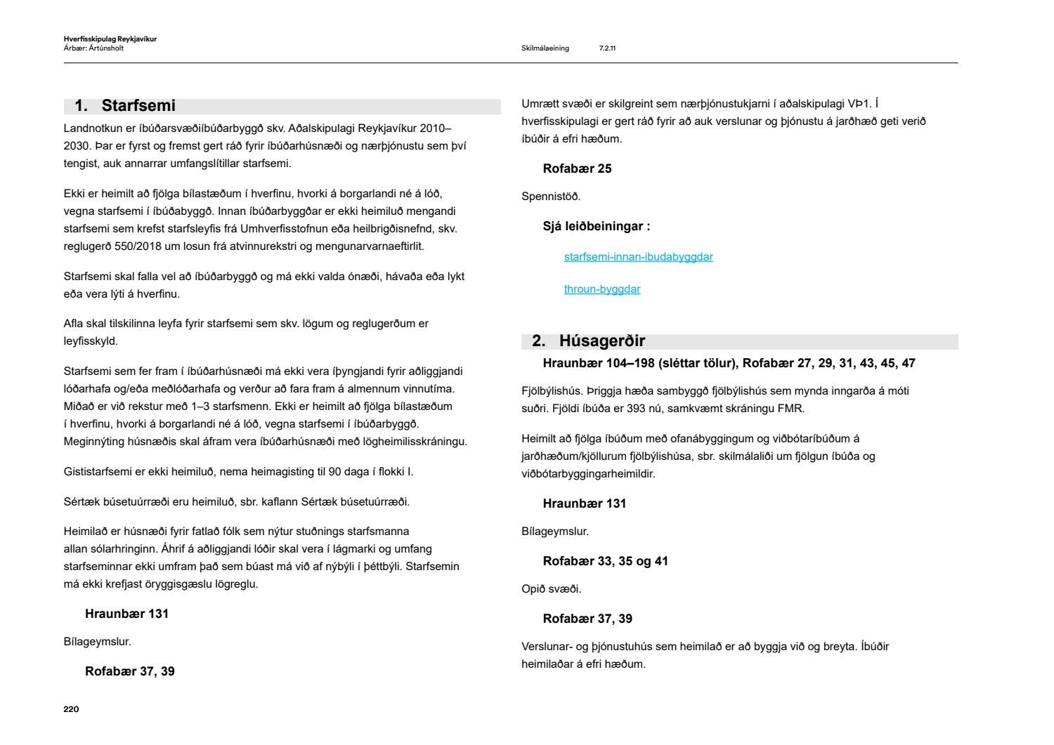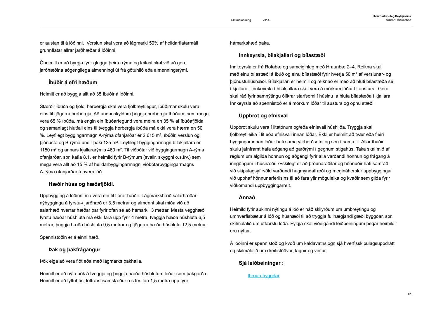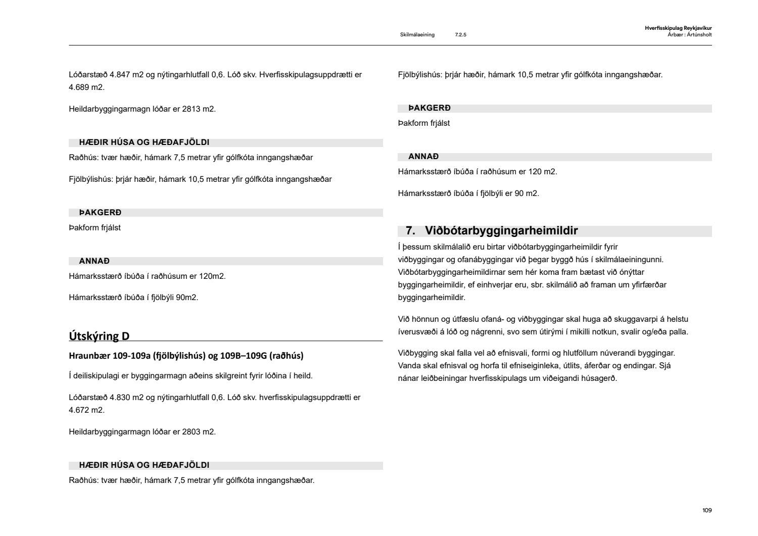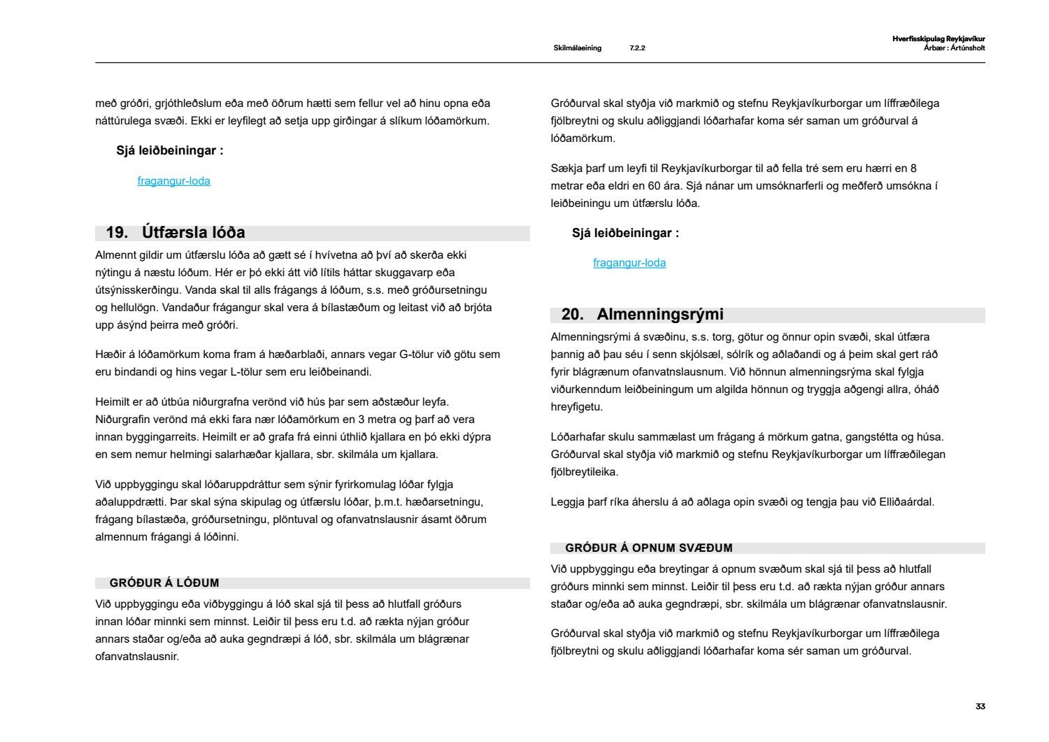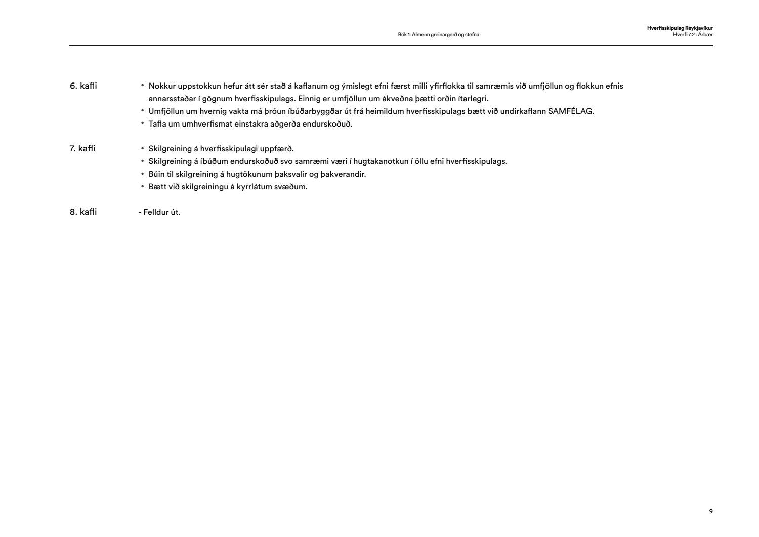 Að lokinni auglýsingu er lögð fram að nýju tillaga að hverfisskipulagi Árbæjar, hverfi 7.2 Árbær dags. 14. desember 2018, br. 12. september 2019 ásamt almennri greinargerð og stefnu dags. 14. desember 2018, br. 12. september 2019 og skipulagsskilmálum dags. 14. desember 2018, br. 12. september 2019. Tillagan var auglýst frá 2. febrúar 2019 til og með 17. mars 2019. Eftirtaldir aðilar sendu athugasemdir: Guðmundur H. Einarsson mótt 17. mars 2019. Einnig sendu eftirtaldar stofnanir inn umsagnir: Heilbrigðiseftirlit Reykjavíkur dags. 20. mars 2019, Skipulagsstofnun dags. 29. mars 2019 og Veitur dags. 22. mars 2019. Einnig er lögð fram umsögn skipulagsfulltrúa dags. 22. september 2019.