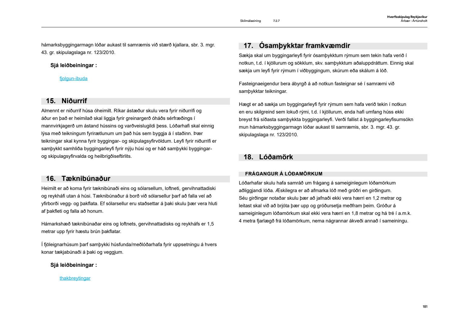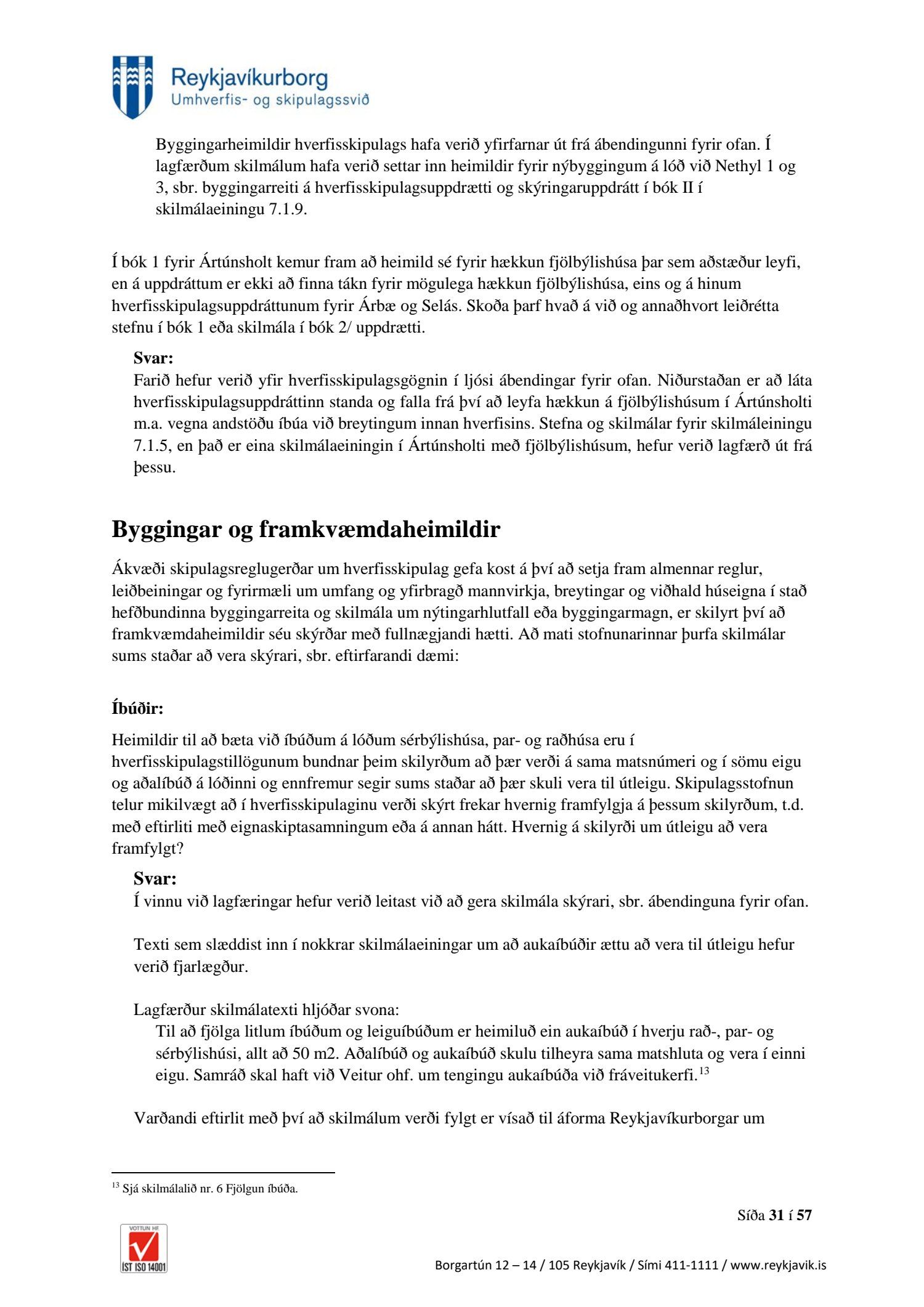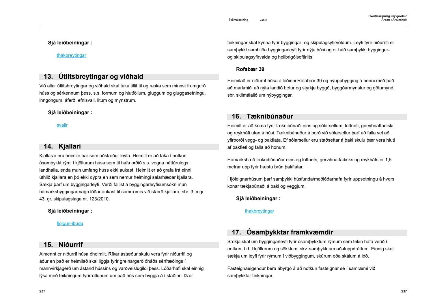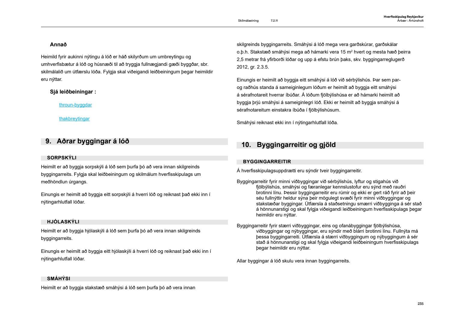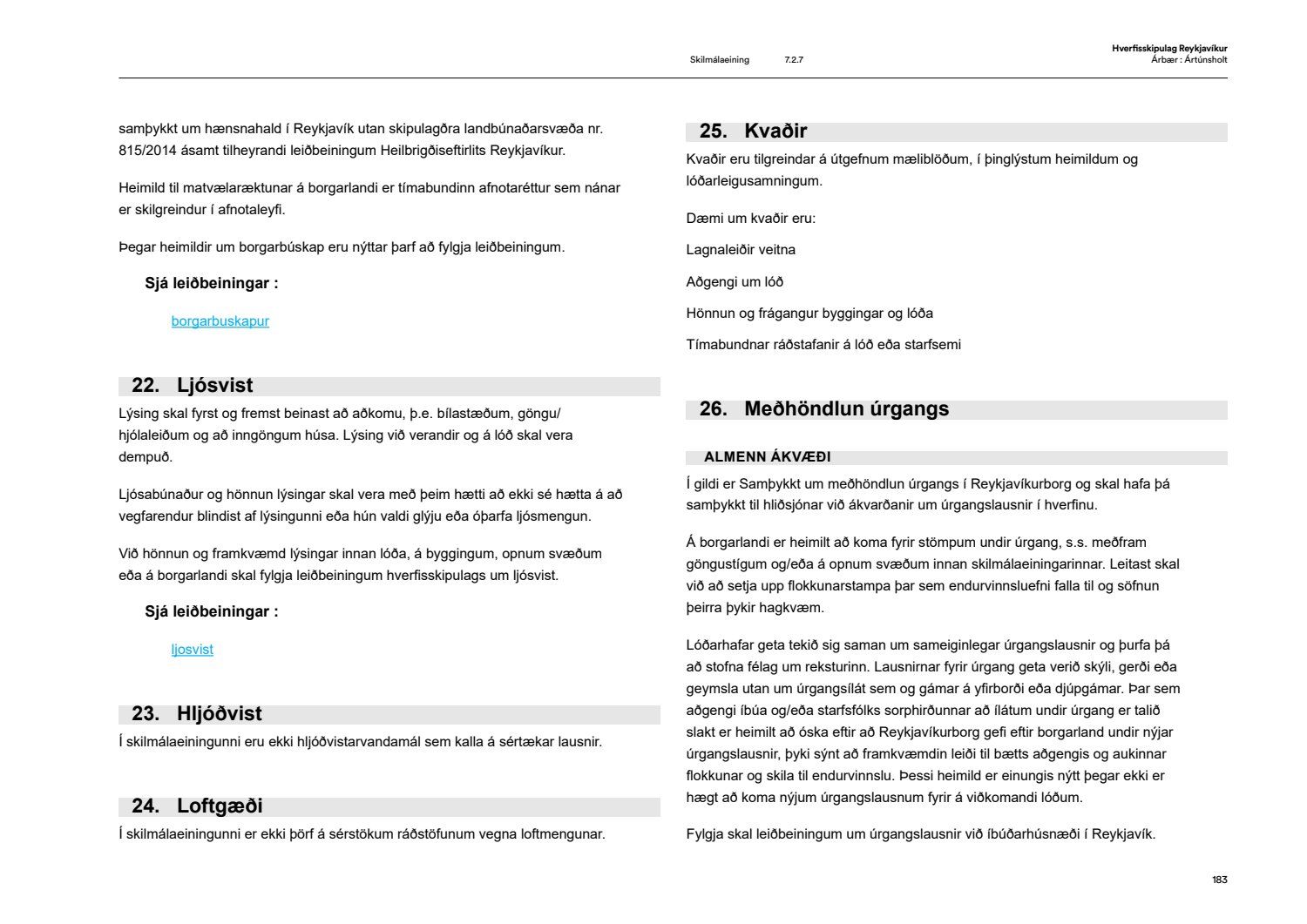 Að lokinni auglýsingu er lögð fram að nýju tillaga að hverfisskipulagi Árbæjar, hverfi 7.2 Árbær dags. 14. desember 2018, br. 12. september 2019 ásamt almennri greinargerð og stefnu dags. 14. desember 2018, br. 12. september 2019 og skipulagsskilmálum dags. 14. desember 2018, br. 12. september 2019. Tillagan var auglýst frá 2. febrúar 2019 til og með 17. mars 2019. Eftirtaldir aðilar sendu athugasemdir: Guðmundur H. Einarsson mótt 17. mars 2019. Einnig sendu eftirtaldar stofnanir inn umsagnir: Heilbrigðiseftirlit Reykjavíkur dags. 20. mars 2019, Skipulagsstofnun dags. 29. mars 2019 og Veitur dags. 22. mars 2019. Einnig er lögð fram umsögn skipulagsfulltrúa dags. 22. september 2019.