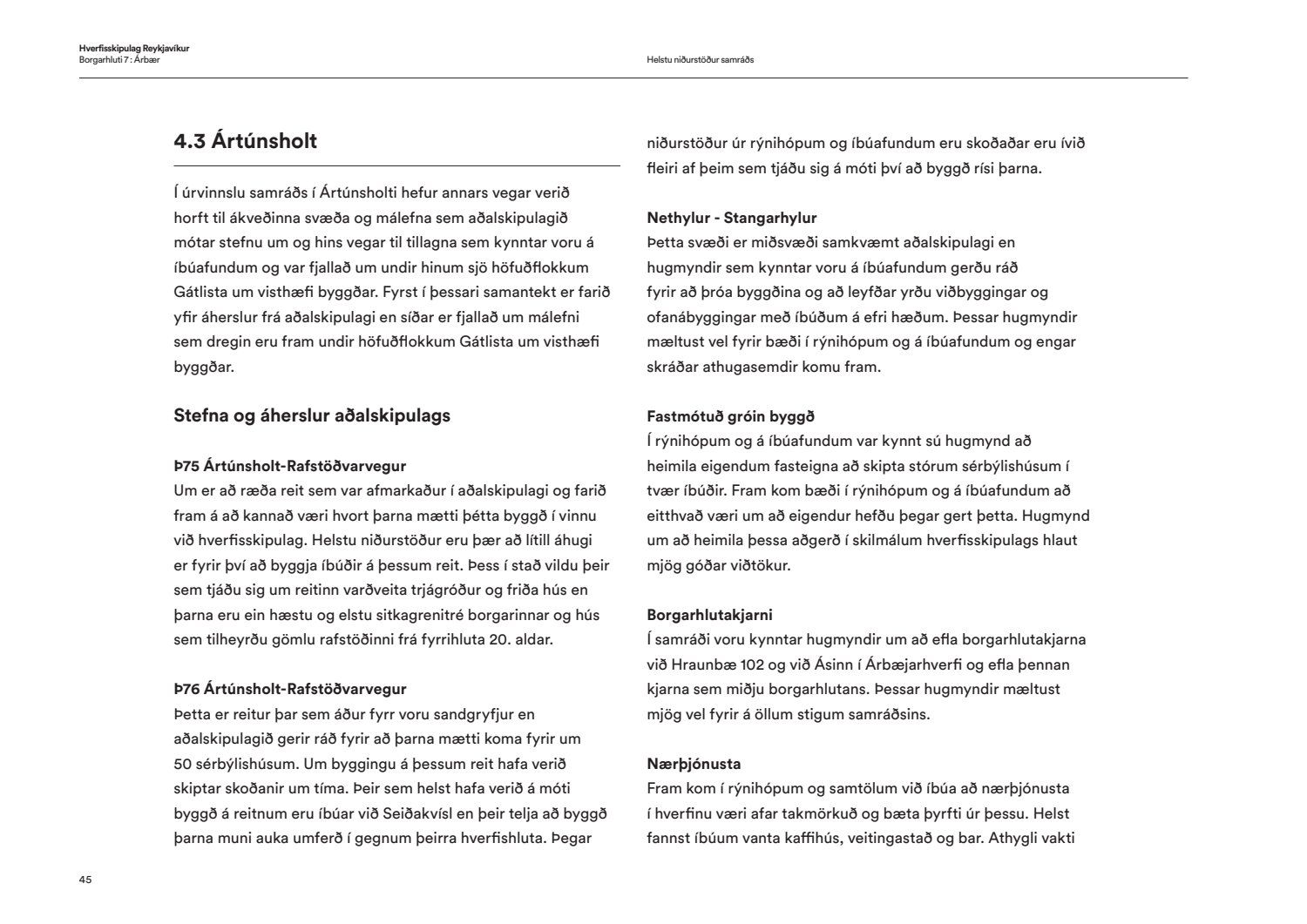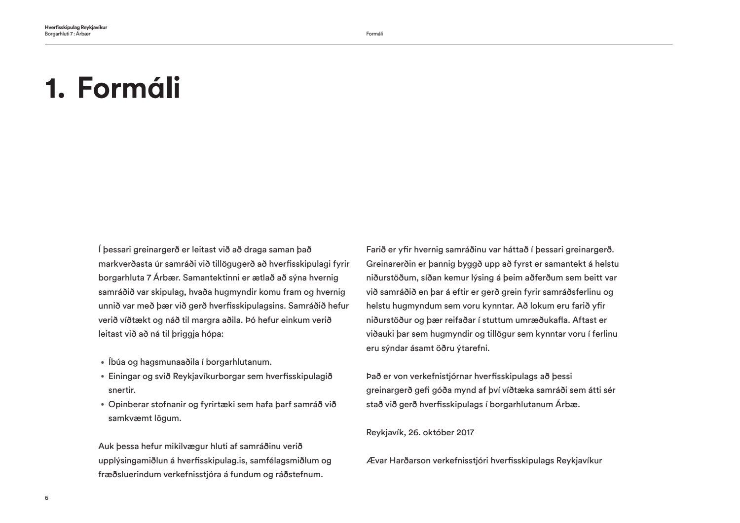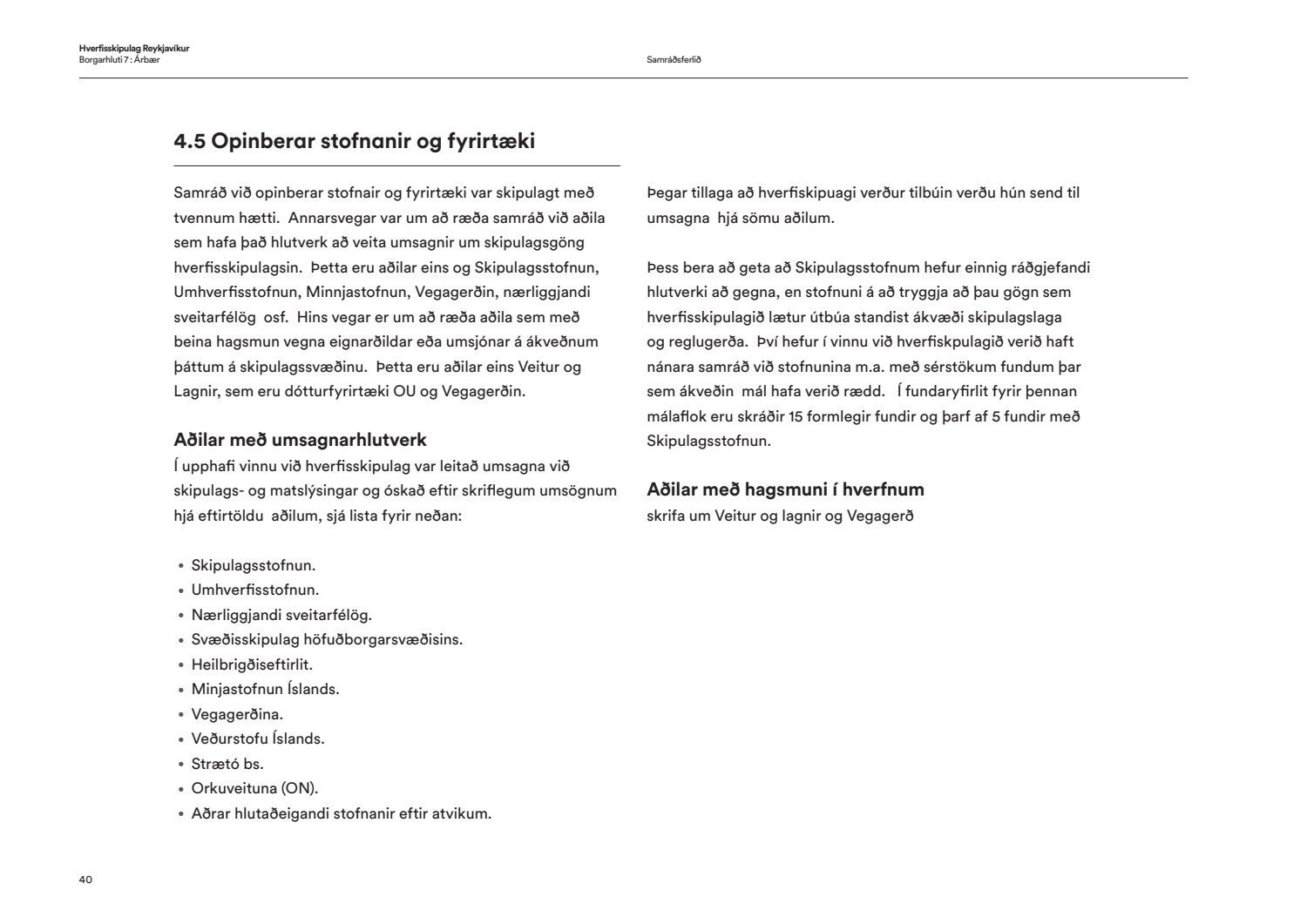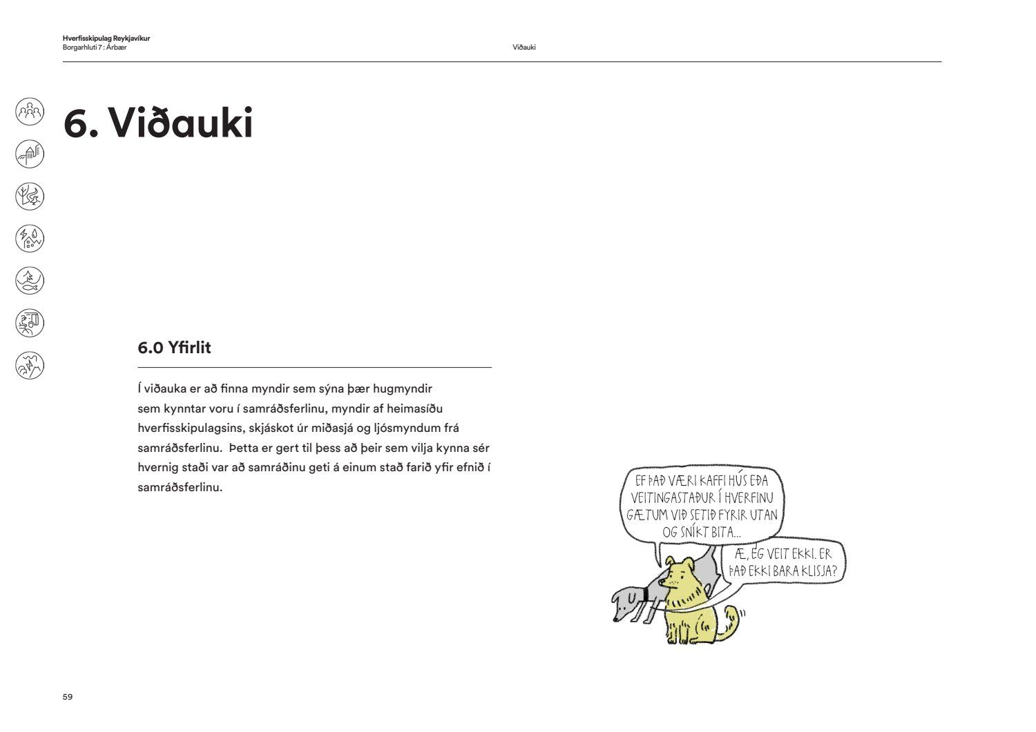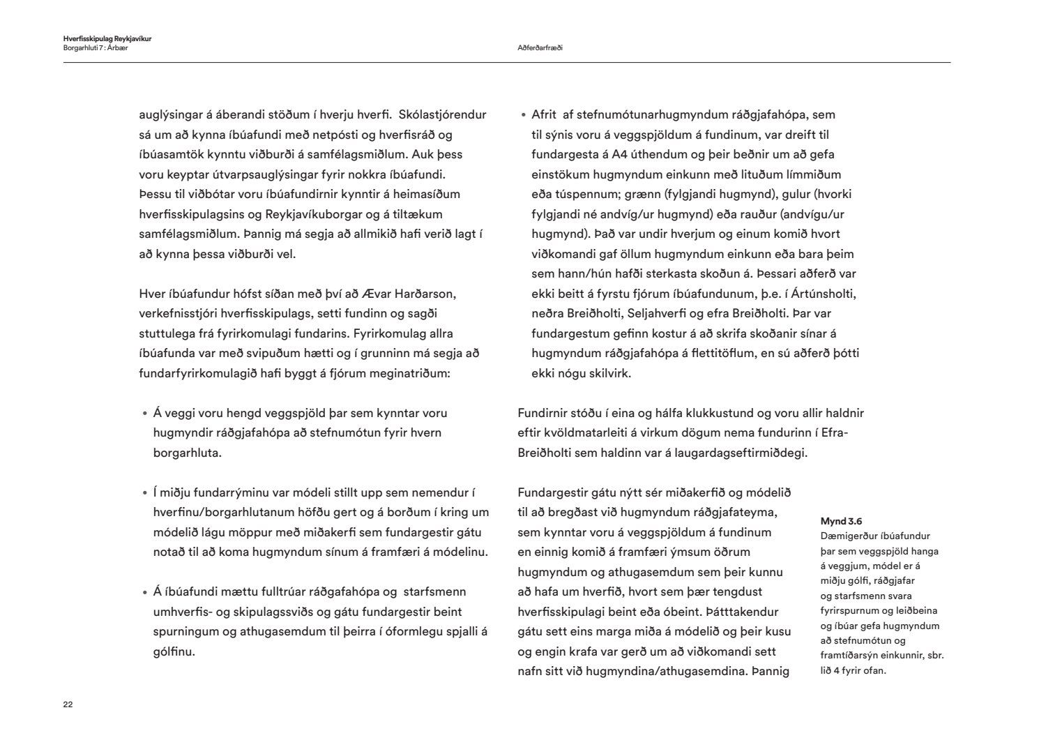 Skipulags- og samgönguráð bókar: “Í hverfisskipulagi birtist framtíðarsýn fyrir gróin hverfi og heimildir til breytinga og minniháttar uppbyggingar verða til. Allt miðaðst að því að hverfin verði sjálfbærari og grænni og að íbúar geti þekkt hverfin sín vel og þær heimildir sem þar er að finna hvort heldur sem það er í verslunarkjörnum eða á einkalóðum. Aldrei hefur verið farið í eins viðamikið samráð við íbúa eins og við gerð hverfisskipulags og hafa þúsundir borgarbúa á öllum aldri komið að vinnunni, allt frá vinnu grunnskólabarna við módel af hverfunum sínum til einstaklinga sem sitja í rýnihópum. Með hverfisskipulaginu fylgja leiðbeiningar til að auðvelda skilning á skipulagi og því hvað sjálfbært hverfi er. Gerð heildstæðs skipulags fyrir hverfi borgarinnar hefur verið lengi í vinnslu enda viðamikið verkefni. Það er því fagnaðarefni að leiðbeiningar og fyrsta hverfisskipulag borgarinnar hafi nú verið samþykkt. Kynningarmynband af hverfisskipulaginu má finna hér: hvsk.is/horfa/hvad-er-hverfisskipulag“
