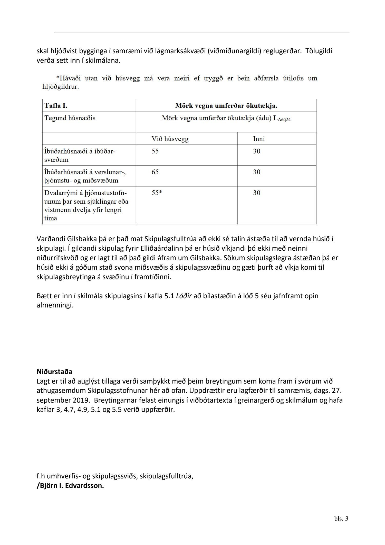 Lagt fram bréf Skipulagsstofnunar dags. 11. september 2019 þar sem bent er á að áður en gengið verður frá auglýsingu um samþykkt deiliskipulagsins í B-deild Stjórnartíðinda þurfi að gera betur grein fyrir eftirfarandi: Skilmálum um heimilað ljósmagn, leitað verði afstöðu Heilbrigðiseftirlits um viðmiðunarmörk vegna umferðarhávaða fyrir þjónustuíbúðir, fyrirkomulag á fráveitulögnum og önnur atriði sbr. bréf stofnunarinnar. Einnig eru lagðir fram uppdrættir Landslags dags. 14. desember 2018, síðast breytt 27. september 2019 ásamt umsögn skipulagsfulltrúa dags. 27. sept. 2019.