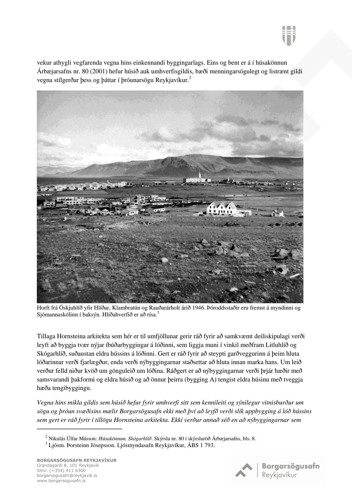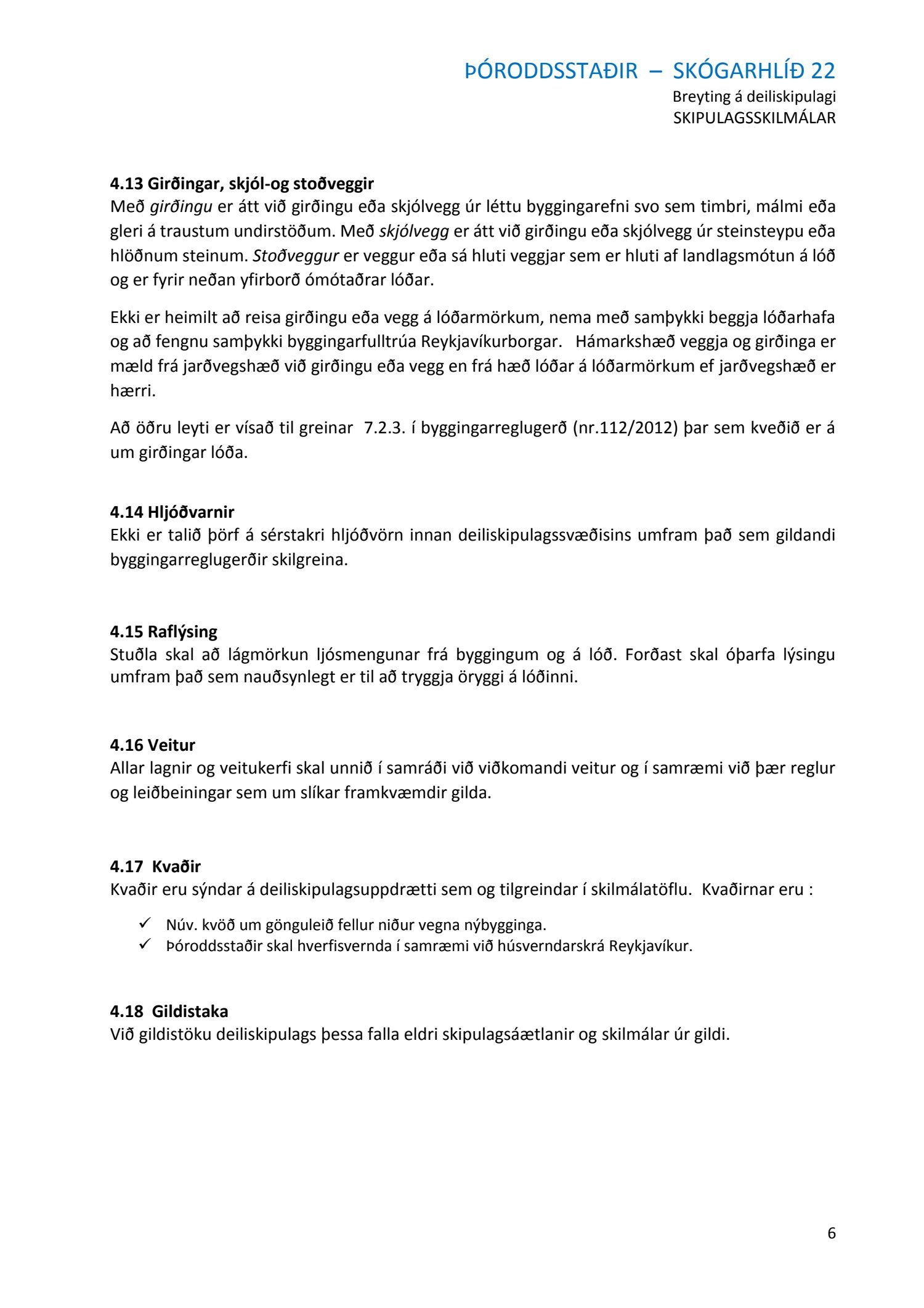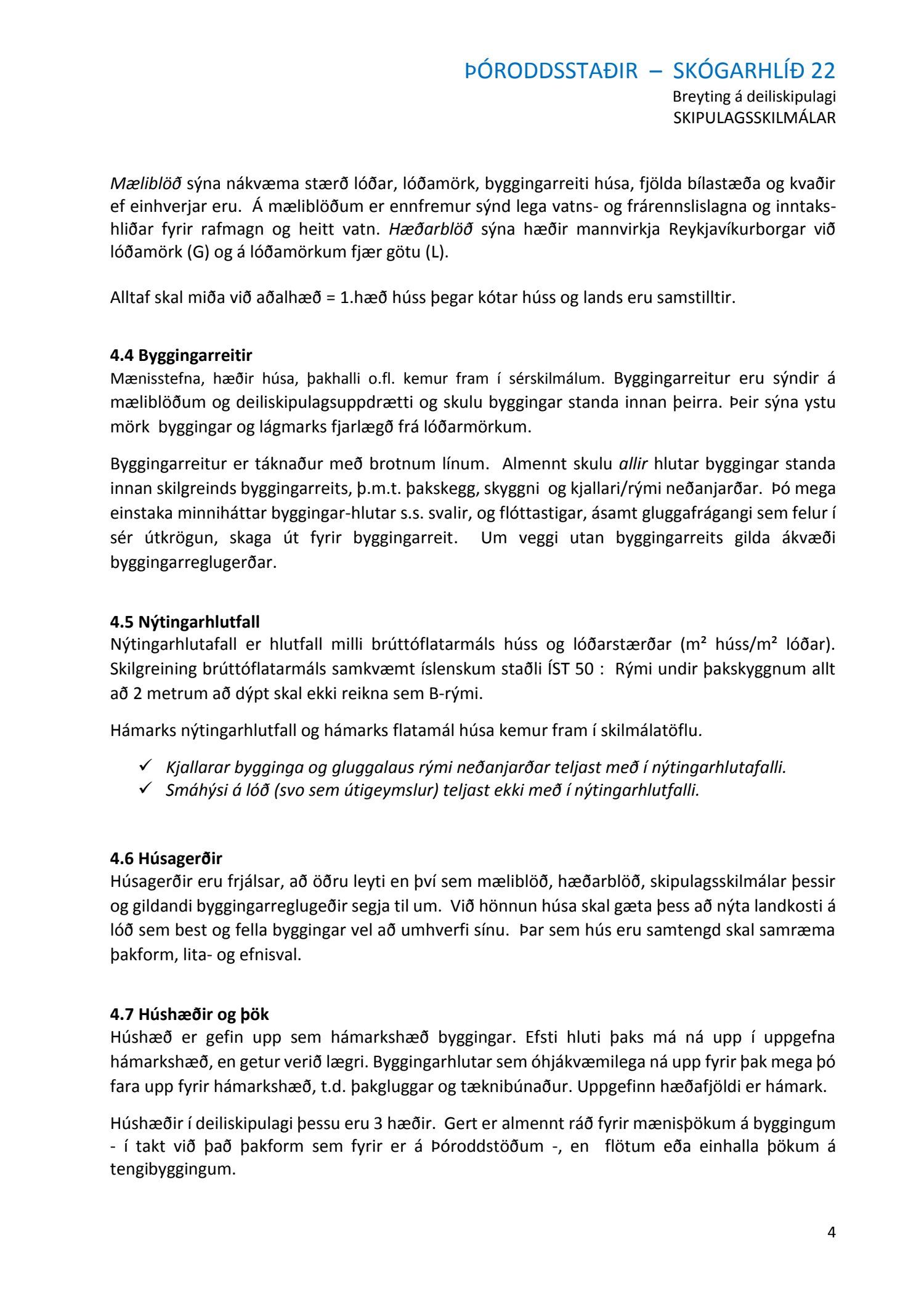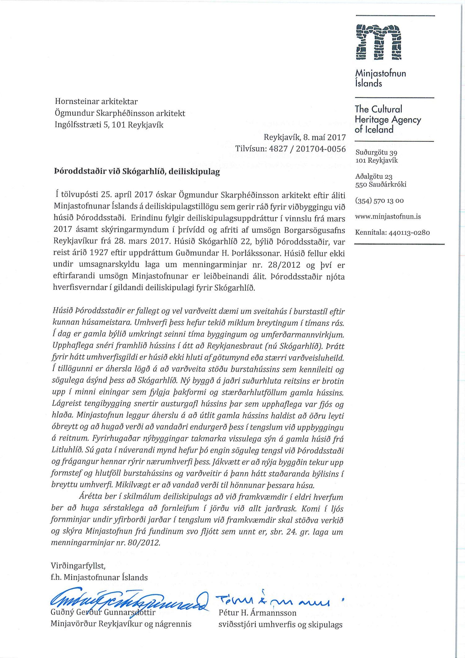 mótt. 1. desember 2016 varðandi breytingu á deiliskipulagi Skógarhlíðar vegna lóðarinnar nr. 22 við Skógarhlíð. Í breytingunni felst að að skilgreina notkun lóðarinnar undir íbúðabyggð og heimila uppbyggingu húsnæðis sem tekur mið af formgerð Þóroddsstaða. Heimilt verði að byggja allt að 18 íbúðir á lóðinni, að hámarki 6 íbúðir í núverandi húsi (Þóroddsstöðum) og að hámarki 12 íbúðir í nýbyggingunni, samkvæmt deiliskipulags- og skýringaruppdr.