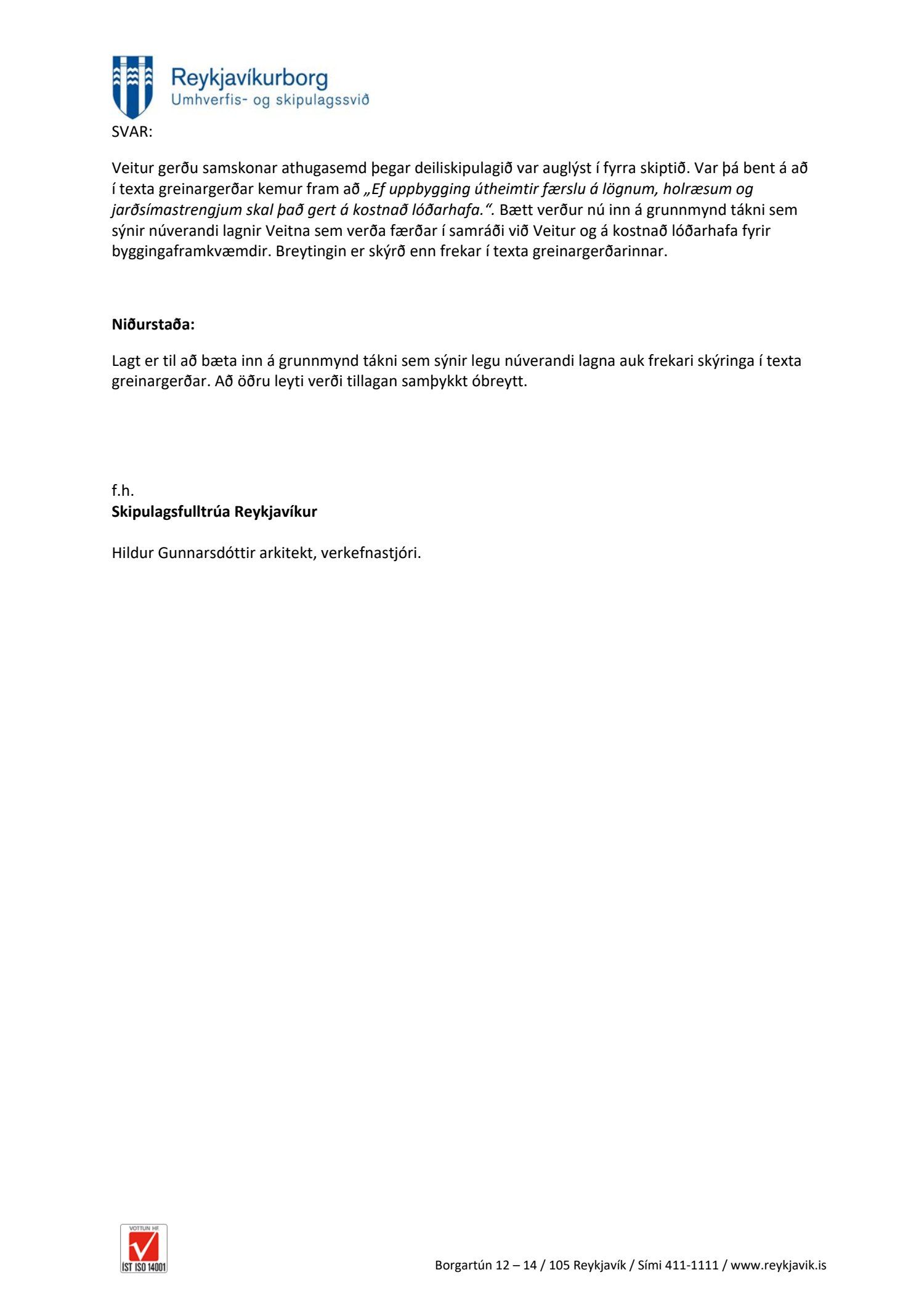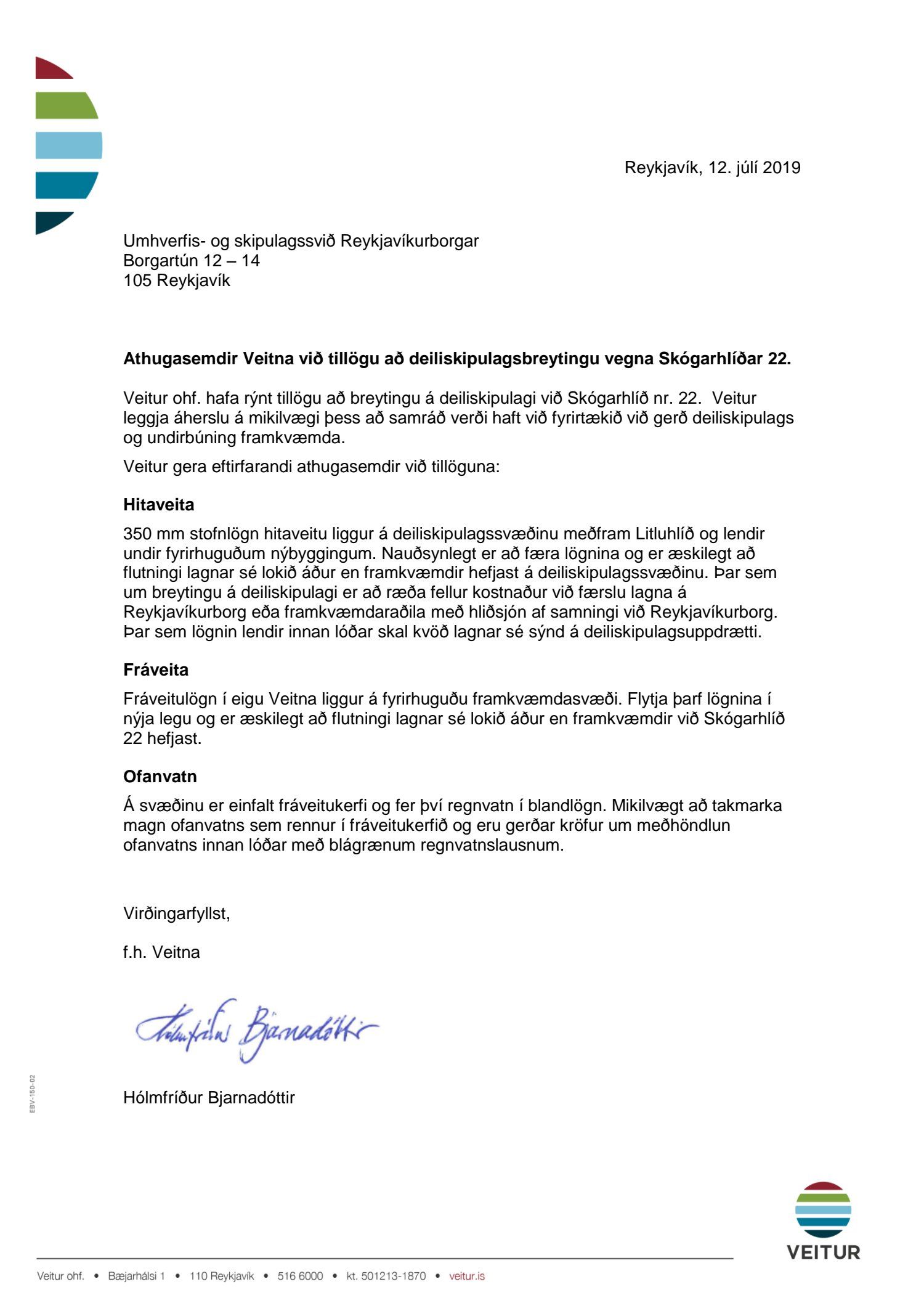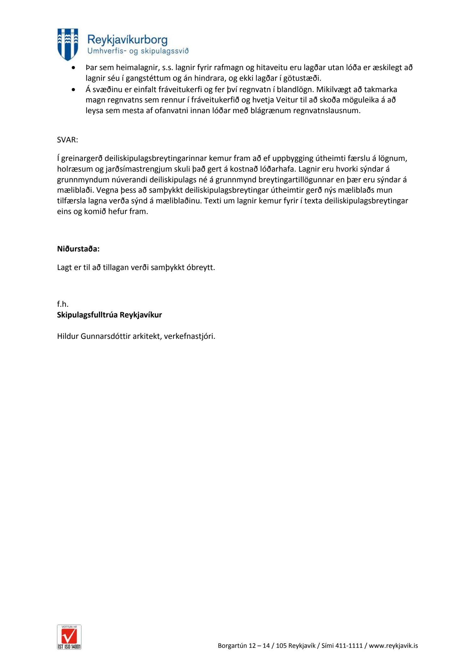 dags. janúar 2018. Einnig er lögð fram drög að greinargerð, ódags., umsögn Borgarsögusafns Reykjavíkur dags. 28. mars 2017 og umsögn Minjastofnunar Íslands dags. 8. maí 2017. Tillagan var auglýst frá 26. mars 2018 til og með 7. maí 2018. Eftirtaldir aðilar sendu athugasemdir: Anna Úrsúla dags. 26. mars 2018, undirskriftarlisti 12 aðila dags. 7. maí 2018 og Veitur dags. 7. maí 2018. Einnig er lagt fram bréf Karim Askari forstjóra stofnunar múslima á Íslandi dags. 6. apríl 2018. Einnig er lögð fram umsögn skipulagsfulltrúa dags. 22. júní 2018. Jafnframt er lagður fram tölvupóstur Skipulagsstofnunar dags. 6. maí 2019 þar sem stofnunin áréttar að þar sem ekki er möguleiki á að birta auglýsingu um gildistöku skipulagsins innan árs frá því að skipulagsfresti lauk (sbr. 2. mgr. 42. gr. Skipulagslaga) þarf það að fara aftur í gegnum samþykktir og auglýsingu sbr. 41. gr. Tillagan var auglýst að nýju frá 31. maí 2019 til og með 12. júlí 2019. Eftirtaldir sendu athugasemd/umsögn: