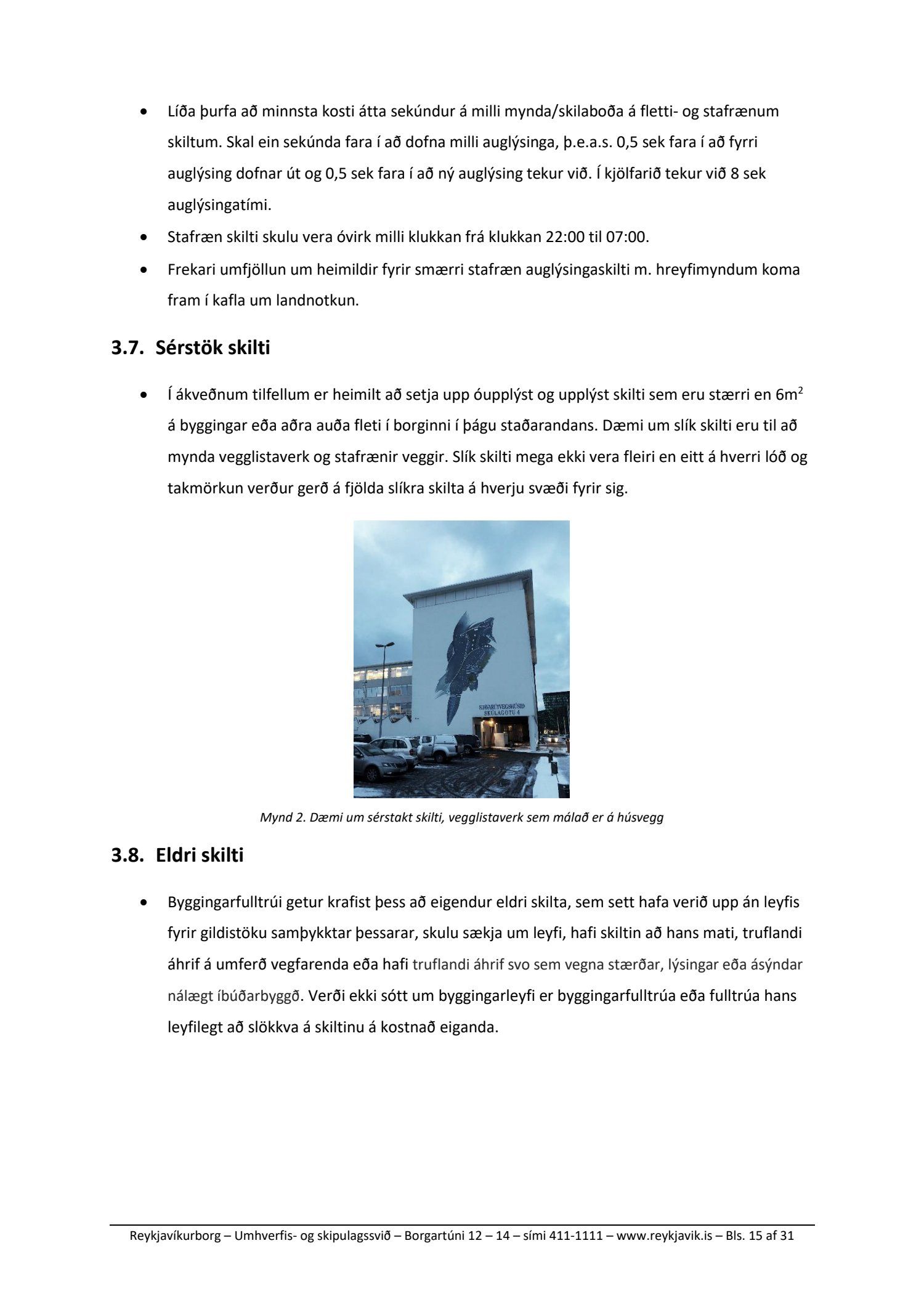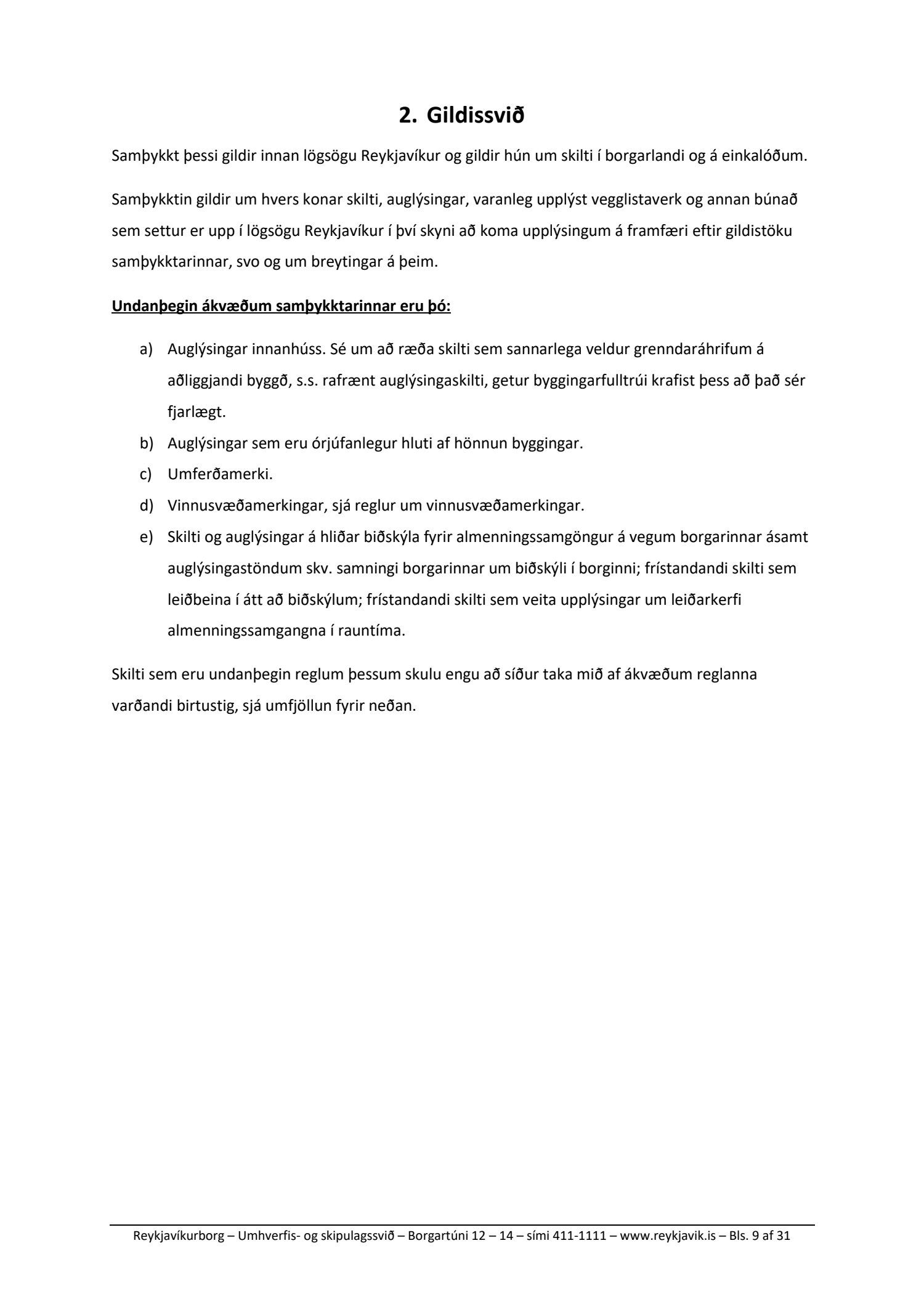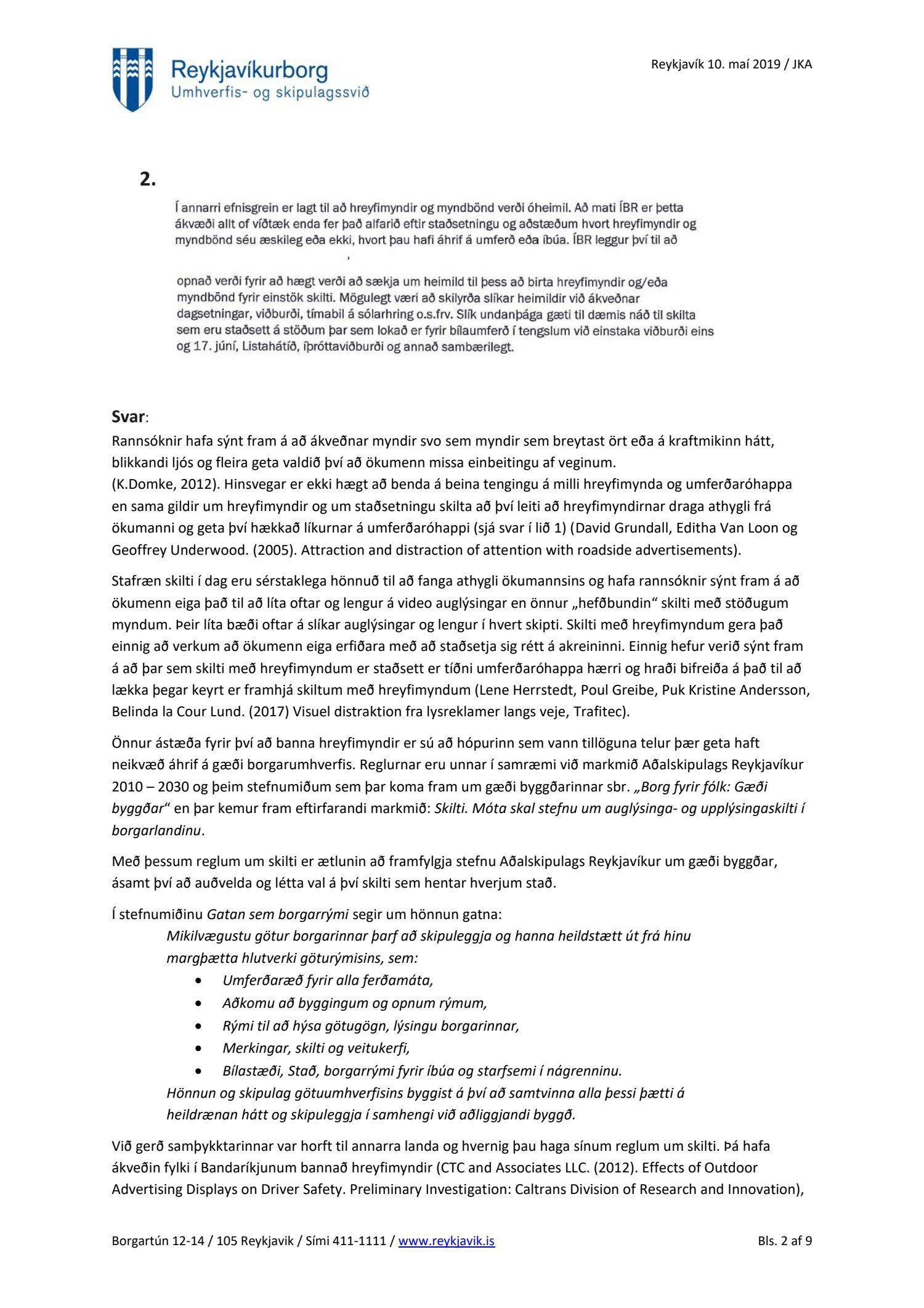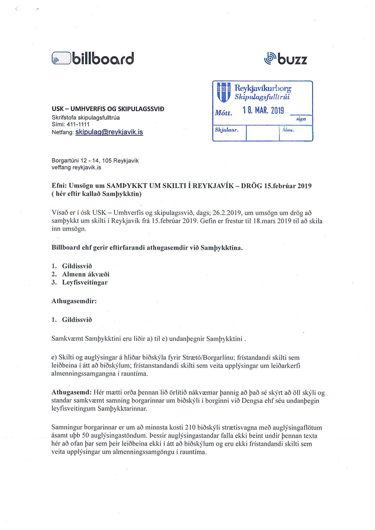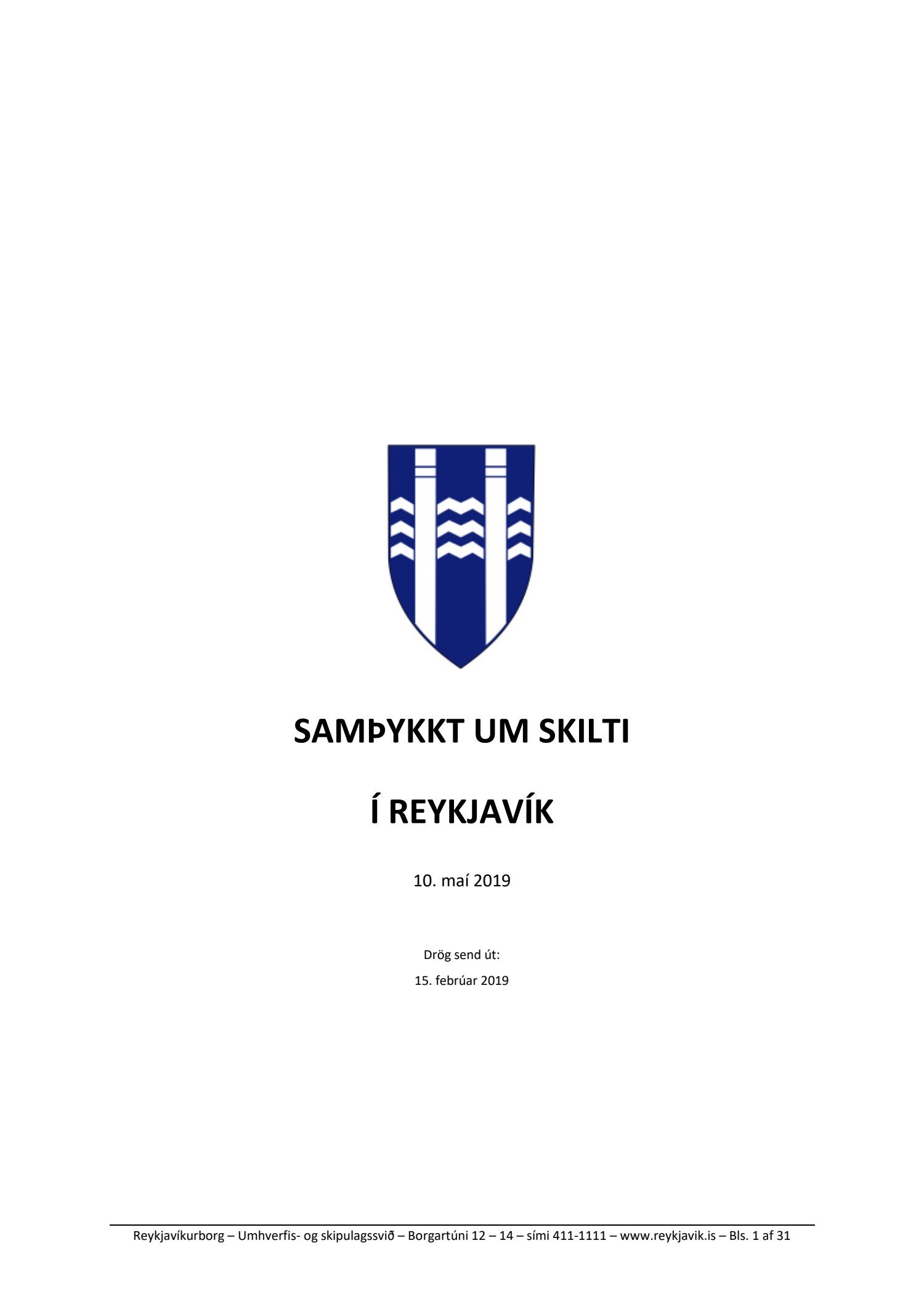 Lagt fram minnisblað umhverfis- og skipulagssviðs dags. 9. mars 2020, varðandi samþykkt um skilti í lögsögu Reykjavíkur dags. 10. maí 2019, ásamt korti, þar sem lagðar eru til breytingar á samþykktinni. Einnig er lögð fram skýrsla Lisku dags. í apríl 2018, umsögn Íþróttabandalags Reykjavíkur mótt. 18. mars 2019 og umsögn Billboard mótt. 18. mars 2019 og umsögn skipulagsfulltrúa dags. 10. maí 2019.