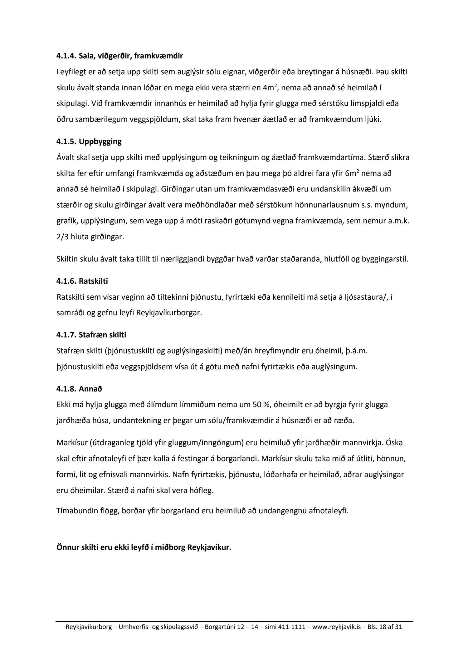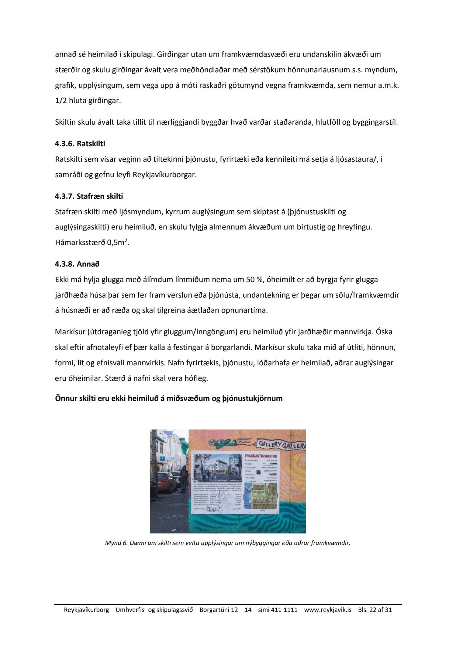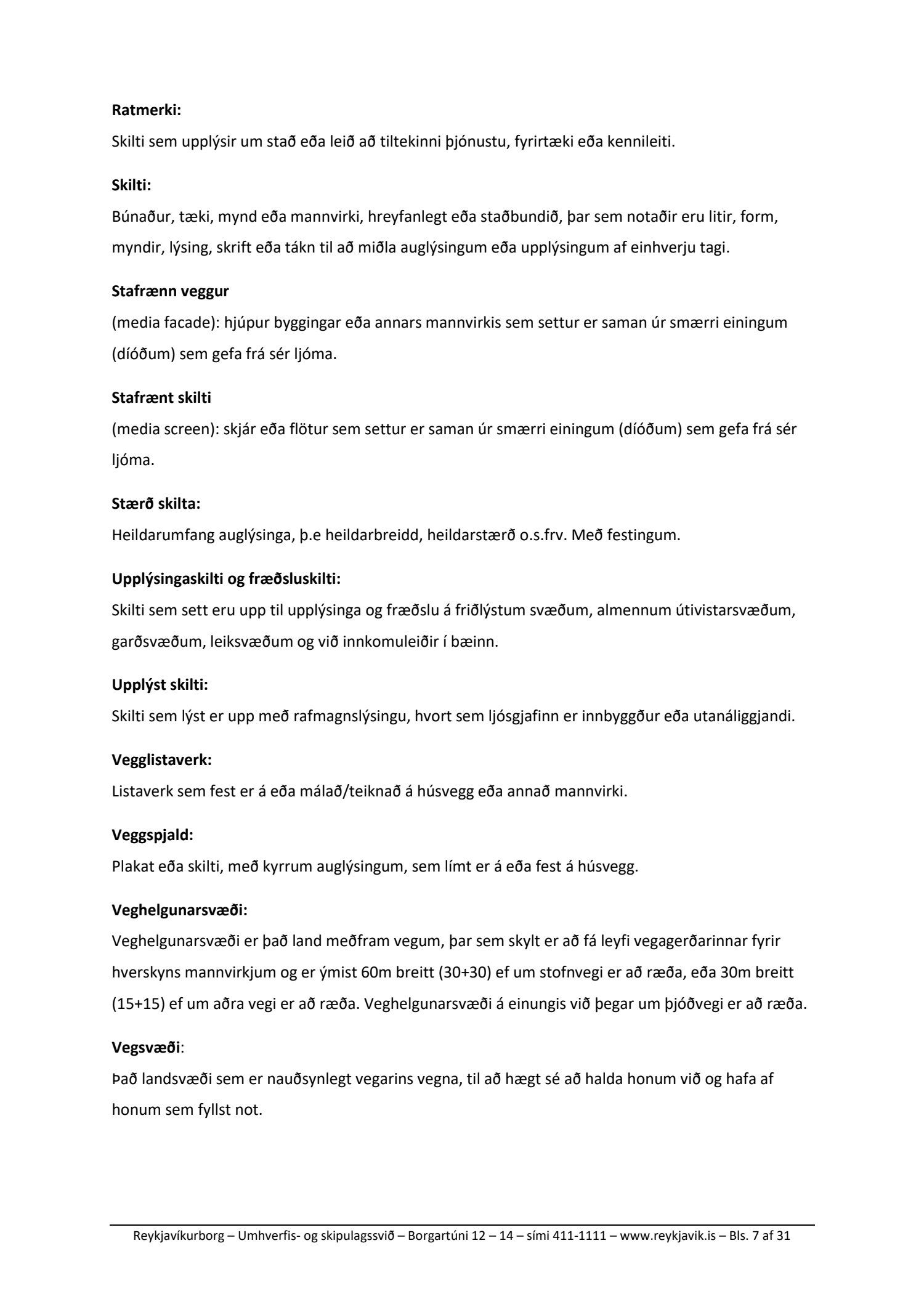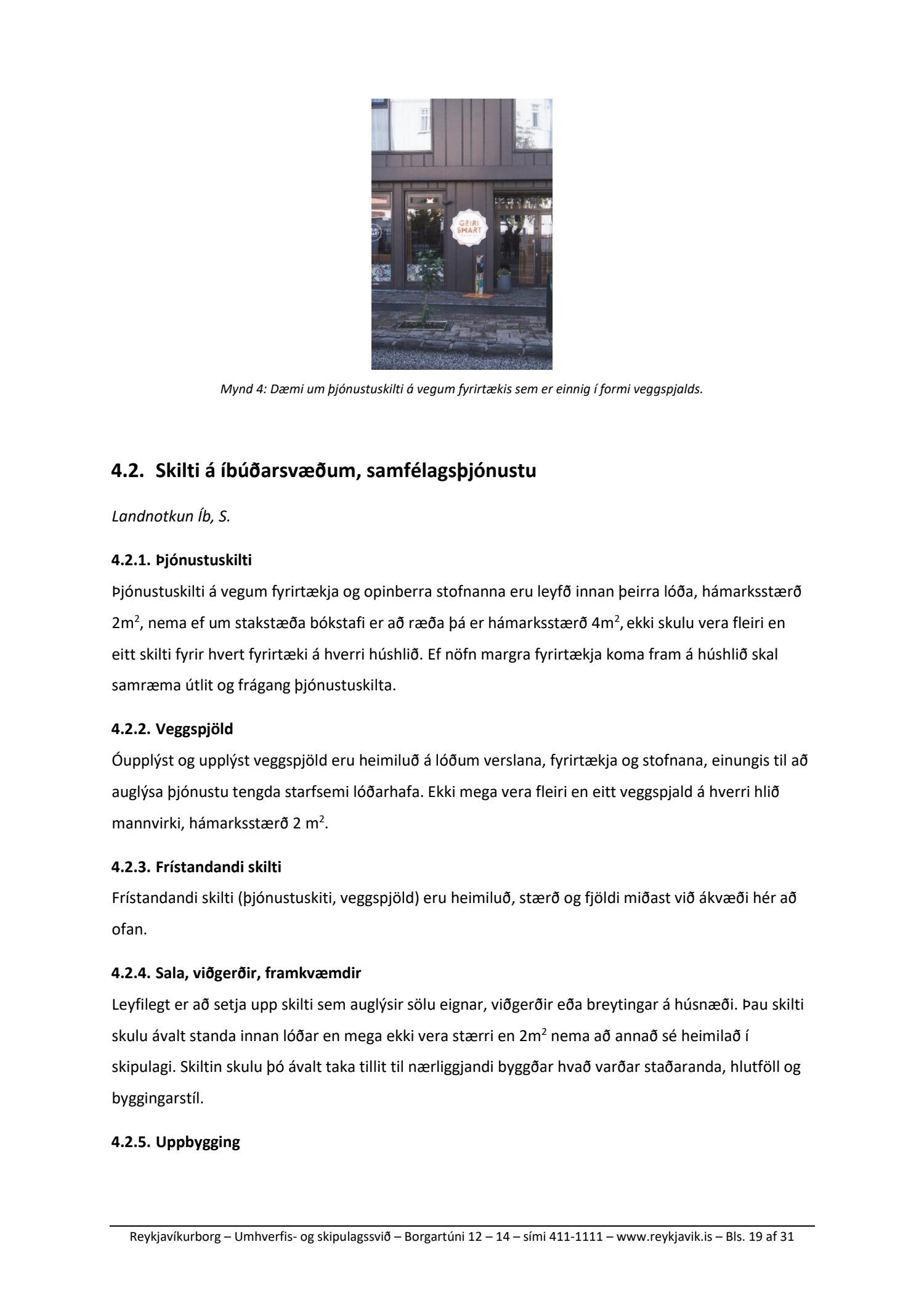 Lagt fram minnisblað umhverfis- og skipulagssviðs dags. 9. mars 2020, varðandi samþykkt um skilti í lögsögu Reykjavíkur dags. 10. maí 2019, ásamt korti, þar sem lagðar eru til breytingar á samþykktinni. Einnig er lögð fram skýrsla Lisku dags. í apríl 2018, umsögn Íþróttabandalags Reykjavíkur mótt. 18. mars 2019 og umsögn Billboard mótt. 18. mars 2019 og umsögn skipulagsfulltrúa dags. 10. maí 2019.
