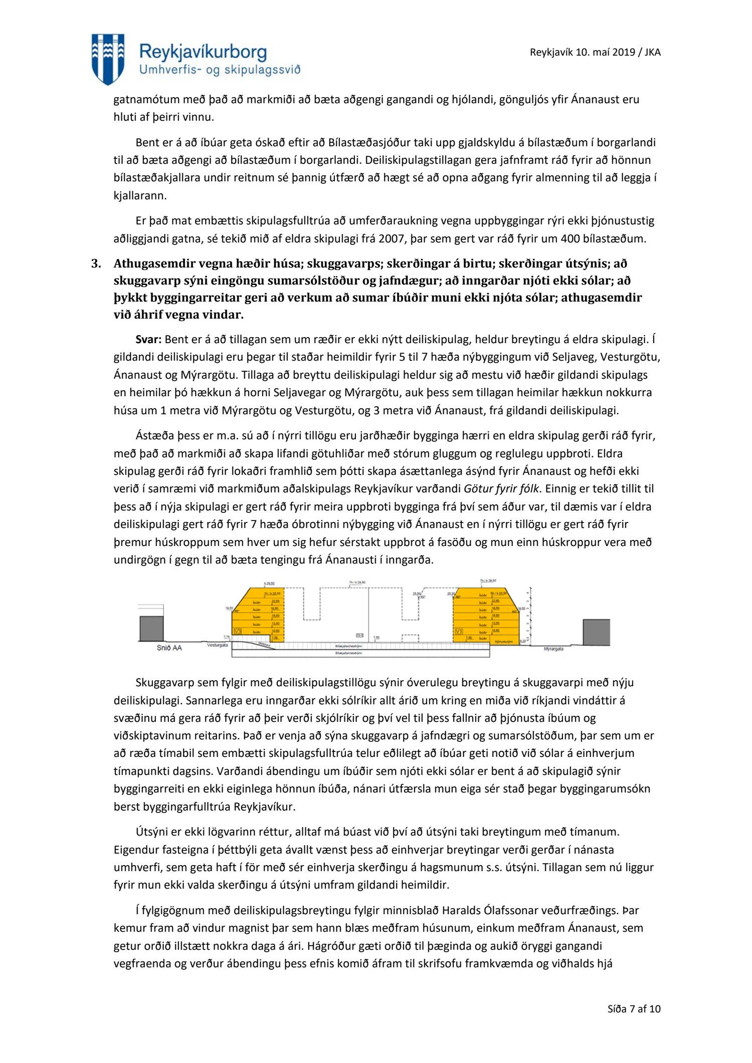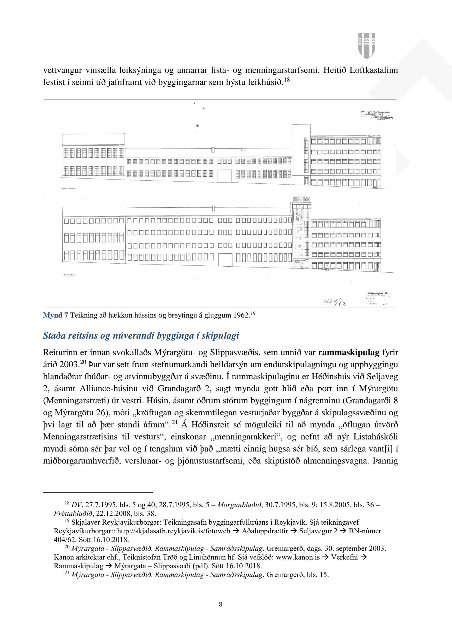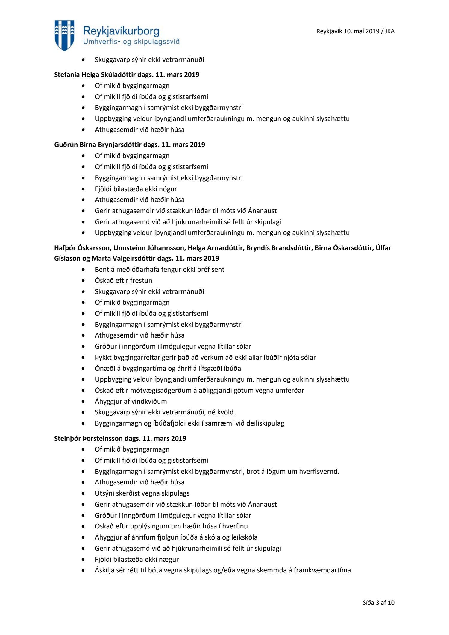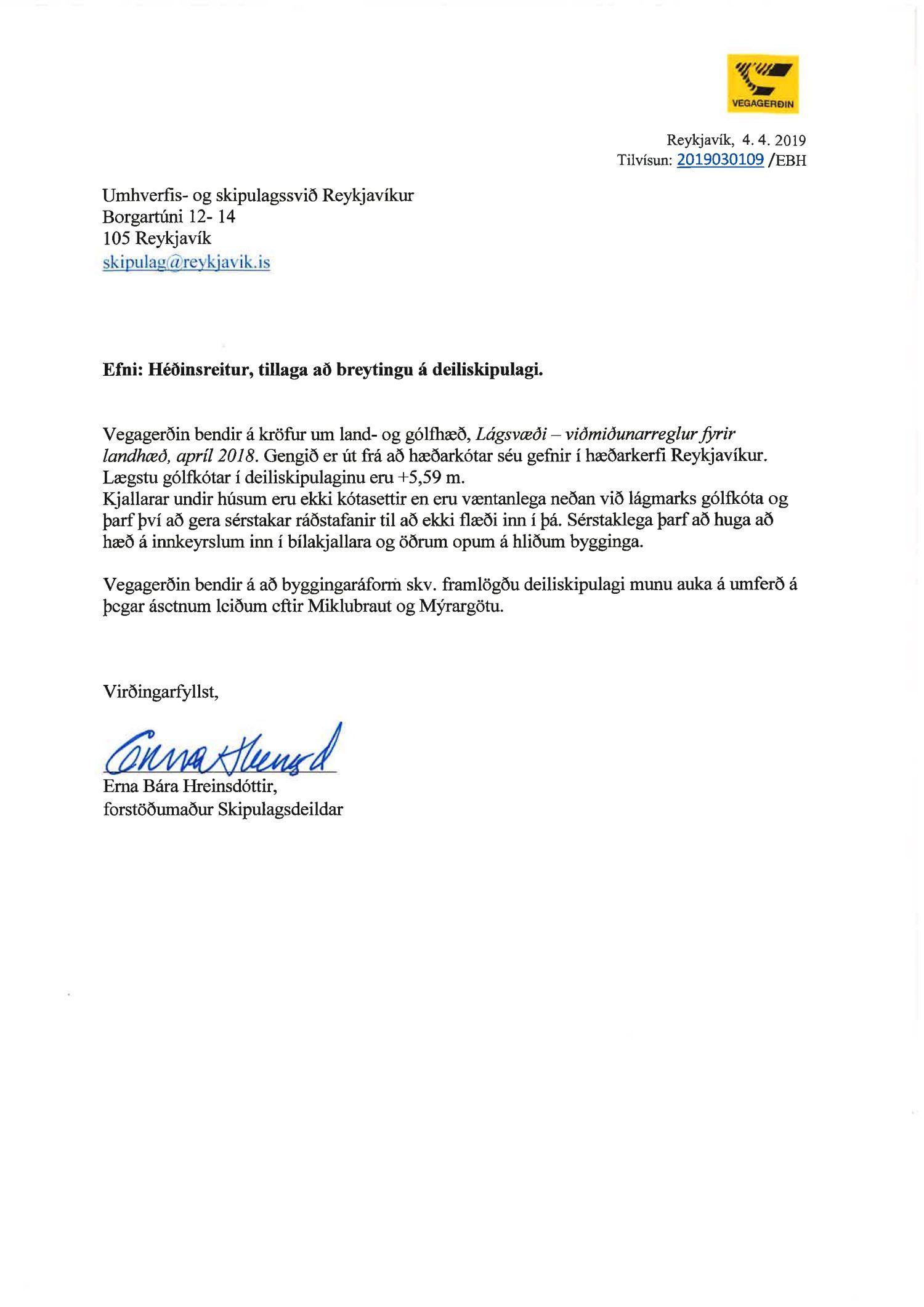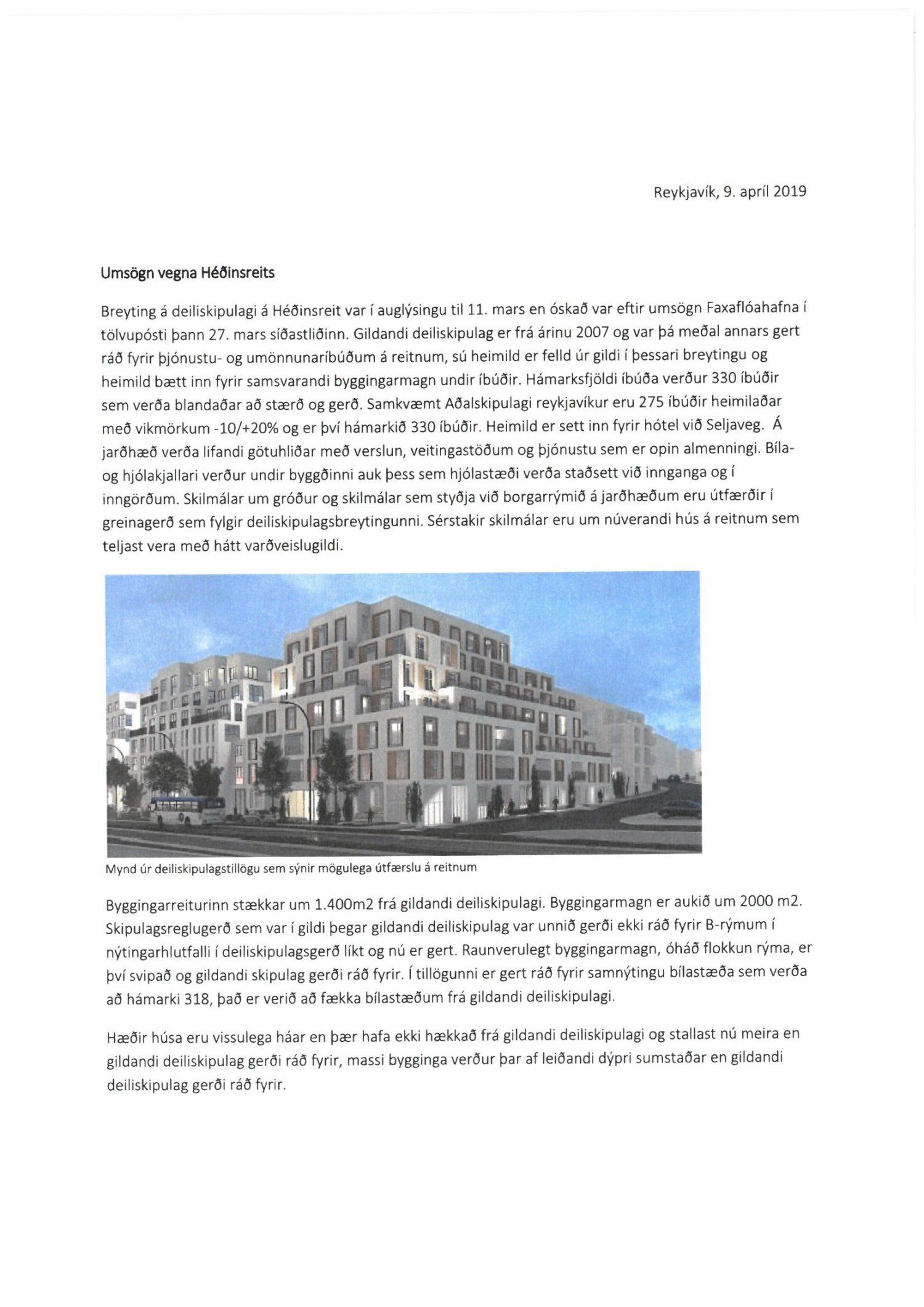 Að lokinni auglýsingu er lögð fram að nýju tillaga að breytingu á deiliskipulagi fyrir Héðinsreit. Breytingin nær til byggingarreita, byggðamynsturs, lóðamarka, hæða húsa og starfsemi á jarðhæðum. Felld er úr gildi byggingarheimild fyrir hjúkrunarrými og heimild bætt inn fyrir samsvarandi byggingarmagn undir íbúðir og heimild er sett inn fyrir hótel við Seljaveg, samkvæmt uppdr., greinagerð og hönnunarhandbók dags. 20. desember 2018. Einnig er lögð fram húsakönnun Borgarsögusafns Reykjavíkur dags. 17. desember 2018. Tillagan var auglýst frá 28. janúar 2019 til og með 11. mars 2019. Eftirtaldir aðilar sendu athugasemdir: Björgólfur Thorsteinsson f.h. Húsfélagsins Vesturgata 69-75 dags. 8. mars 2019, Sif Jónsdóttir dags. 10. mars 2019, Árný E. Sveinbjörnsdóttir f.h. íbúa í 301, Vesturgötu 73, dags. 10. mars 2019, Stefanía Helga Skúladóttir dags. 11. mars 2019, Guðrún Birna Brynjarsdóttir dags. 11. mars 2019, Hafþór Óskarsson, Unnsteinn Jóhannsson, Helga Arnardóttir, Bryndís Brandsdóttir, Birna Óskarsdóttir, Úlfar Gíslason og Marta Valgeirsdóttir dags. 11. mars 2019, Steinþór Þorsteinsson dags. 11. mars 2019, Íbúasamtök Vesturbæjar dags. 11. mars 2019 og Sveinn Sigurður Kjartansson dags. 12. mars 2019. Einnig er lögð fram umsögn Veitna dags. 29. mars 2019, umögn Vegagerðarinnar dags. 4. apríl 2019, umsögn Heilbirgðiseftirlits Reykjavíkur dags. 4. apríl 2019 og umsögn Faxaflóahafna dags. 9. apríl 2019. Jafnframt eru lagðir fram lagfærðir uppdrættir Jvantspijker og Teikn arkitektaþjónustu dags. 20. desember 2018, síðast breytt 10. maí 2019 og lagfærð greinargerð Jvantspijker og Teikn arkitektaþjónustu dags. 20. desember 2018 síðast breytt 10, maí 2019. Einnig er lögð fram umsögn skipulagsfulltrúa dags. 10. maí 2019.