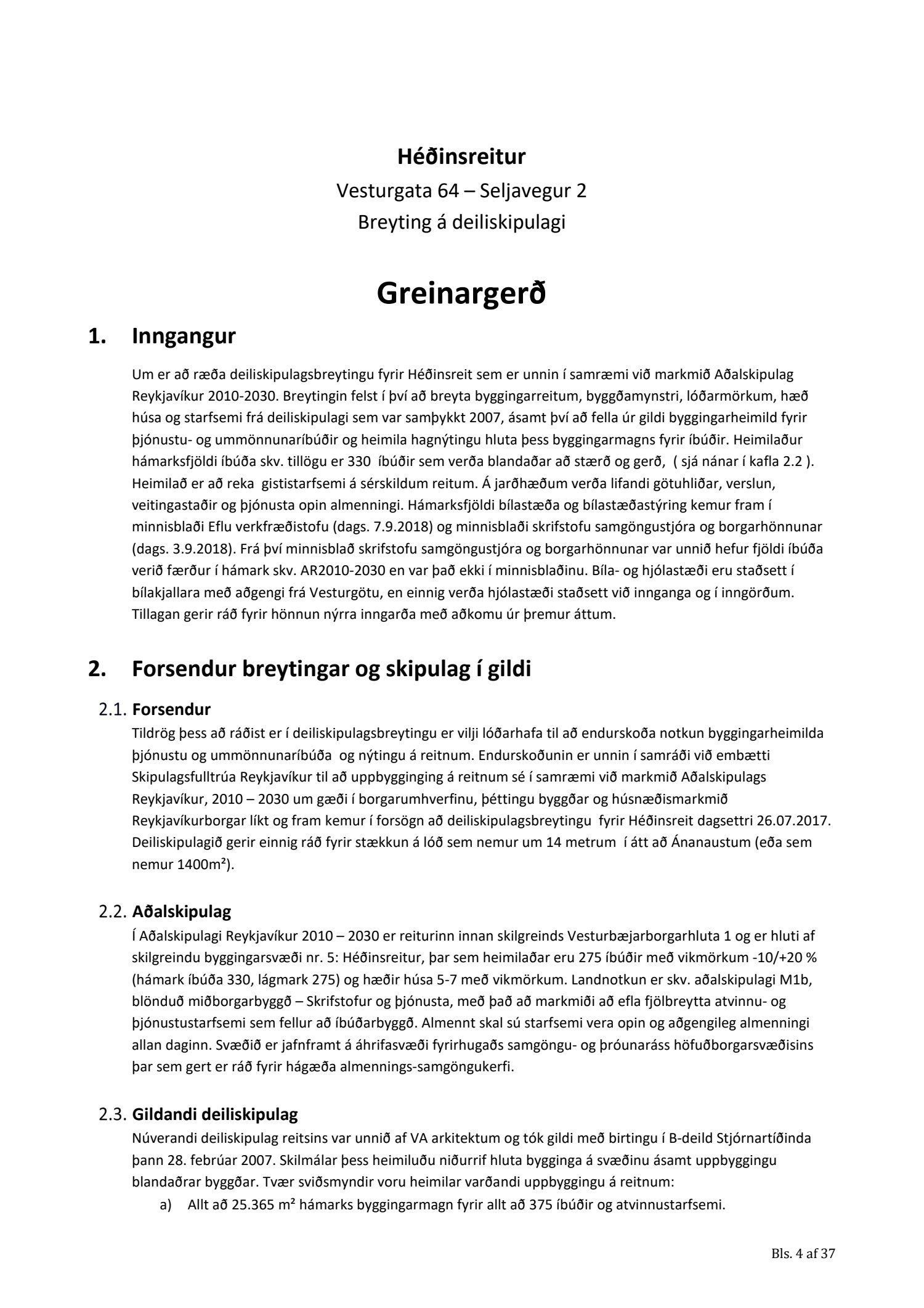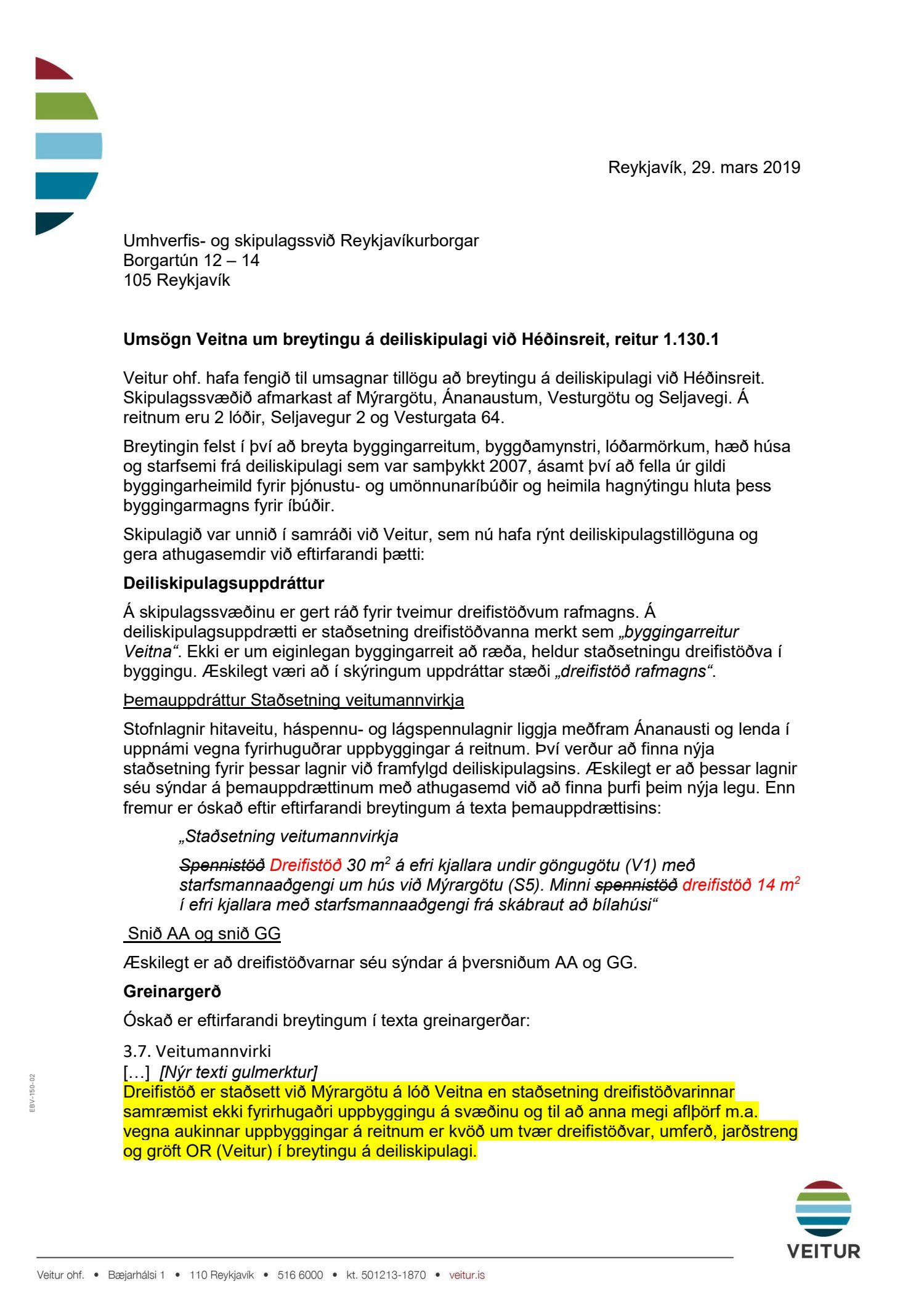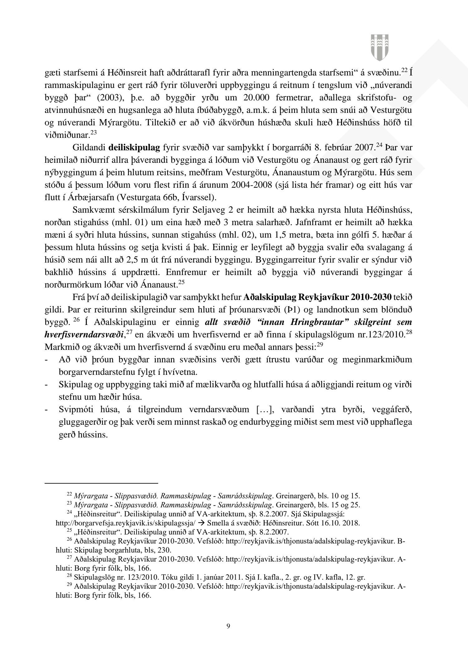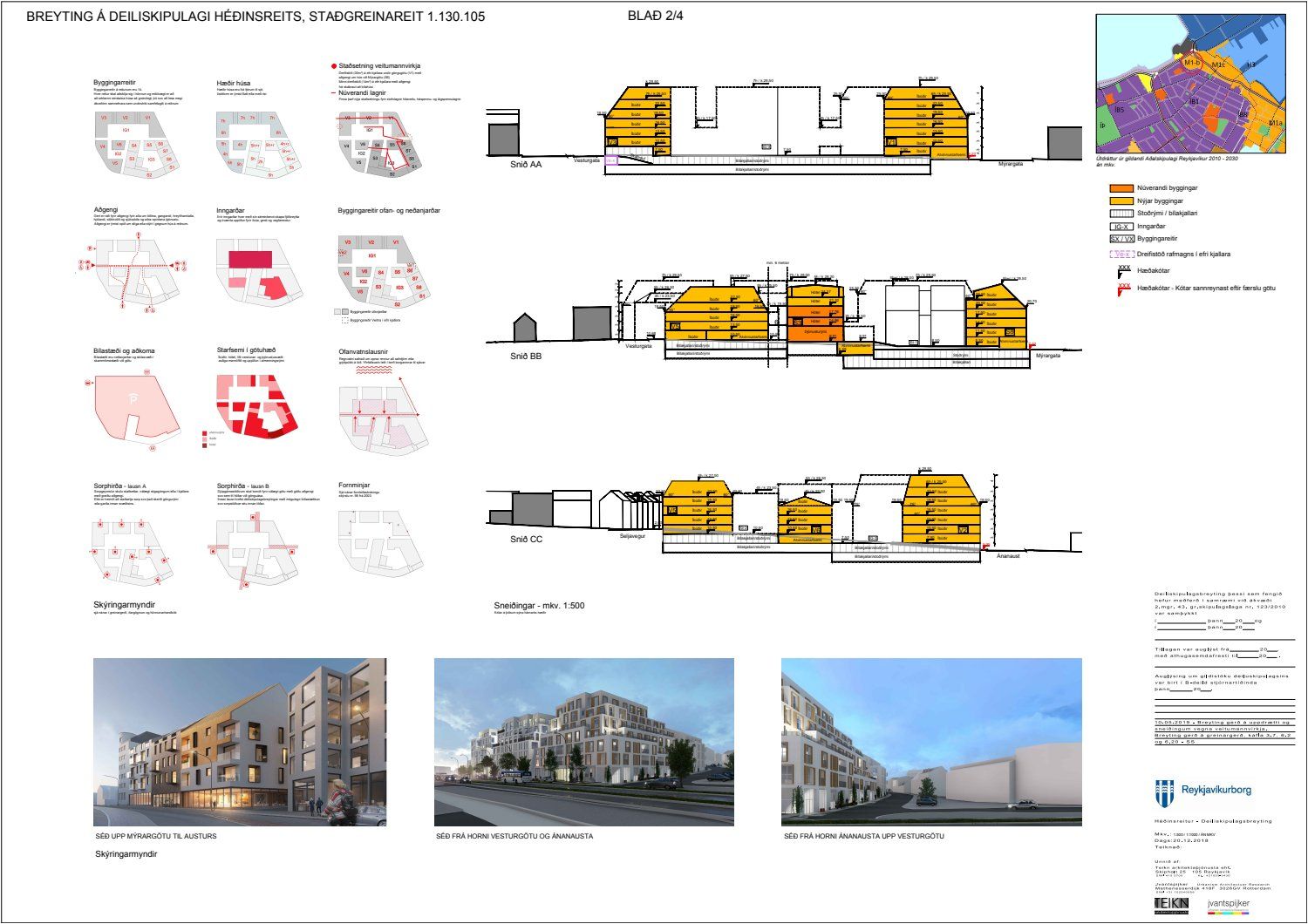 Að lokinni auglýsingu er lögð fram að nýju tillaga að breytingu á deiliskipulagi fyrir Héðinsreit. Breytingin nær til byggingarreita, byggðamynsturs, lóðamarka, hæða húsa og starfsemi á jarðhæðum. Felld er úr gildi byggingarheimild fyrir hjúkrunarrými og heimild bætt inn fyrir samsvarandi byggingarmagn undir íbúðir og heimild er sett inn fyrir hótel við Seljaveg, samkvæmt uppdr., greinagerð og hönnunarhandbók dags. 20. desember 2018. Einnig er lögð fram húsakönnun Borgarsögusafns Reykjavíkur dags. 17. desember 2018. Tillagan var auglýst frá 28. janúar 2019 til og með 11. mars 2019. Eftirtaldir aðilar sendu athugasemdir: Björgólfur Thorsteinsson f.h. Húsfélagsins Vesturgata 69-75 dags. 8. mars 2019, Sif Jónsdóttir dags. 10. mars 2019, Árný E. Sveinbjörnsdóttir f.h. íbúa í 301, Vesturgötu 73, dags. 10. mars 2019, Stefanía Helga Skúladóttir dags. 11. mars 2019, Guðrún Birna Brynjarsdóttir dags. 11. mars 2019, Hafþór Óskarsson, Unnsteinn Jóhannsson, Helga Arnardóttir, Bryndís Brandsdóttir, Birna Óskarsdóttir, Úlfar Gíslason og Marta Valgeirsdóttir dags. 11. mars 2019, Steinþór Þorsteinsson dags. 11. mars 2019, Íbúasamtök Vesturbæjar dags. 11. mars 2019 og Sveinn Sigurður Kjartansson dags. 12. mars 2019. Einnig er lögð fram umsögn Veitna dags. 29. mars 2019, umögn Vegagerðarinnar dags. 4. apríl 2019, umsögn Heilbirgðiseftirlits Reykjavíkur dags. 4. apríl 2019 og umsögn Faxaflóahafna dags. 9. apríl 2019. Jafnframt eru lagðir fram lagfærðir uppdrættir Jvantspijker og Teikn arkitektaþjónustu dags. 20. desember 2018, síðast breytt 10. maí 2019 og lagfærð greinargerð Jvantspijker og Teikn arkitektaþjónustu dags. 20. desember 2018 síðast breytt 10, maí 2019. Einnig er lögð fram umsögn skipulagsfulltrúa dags. 10. maí 2019.