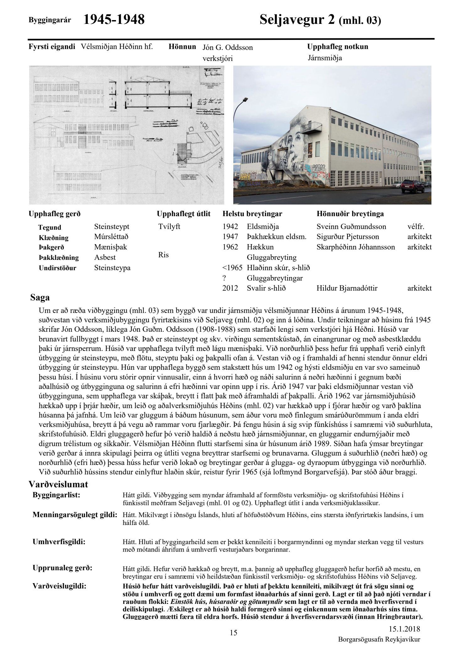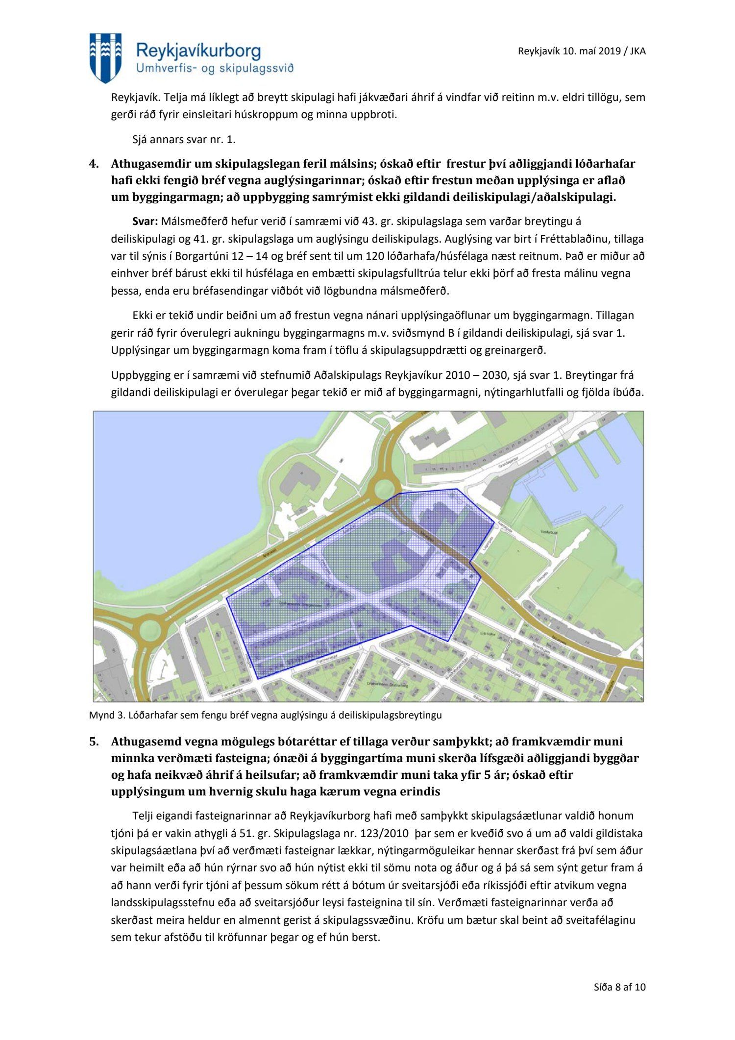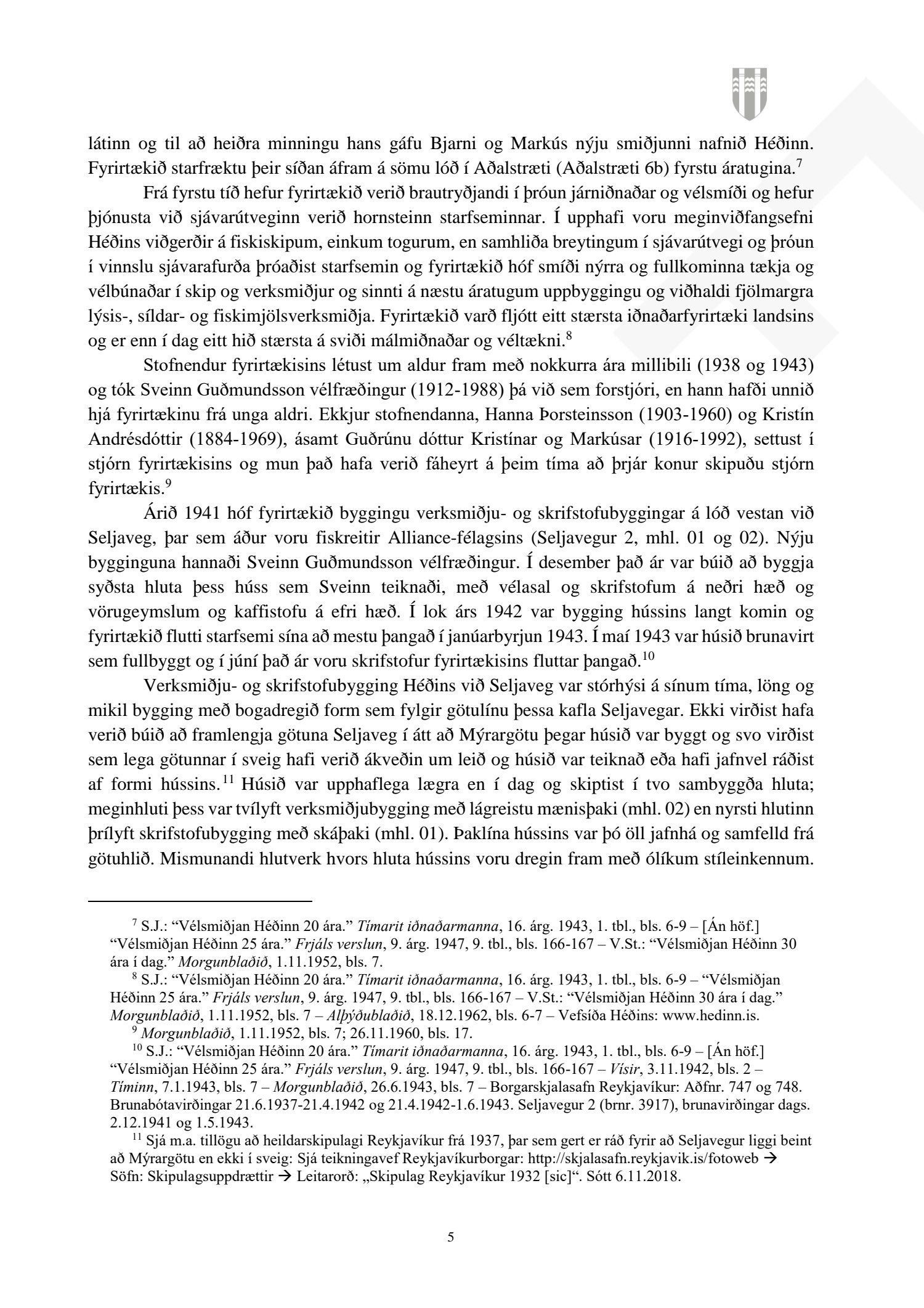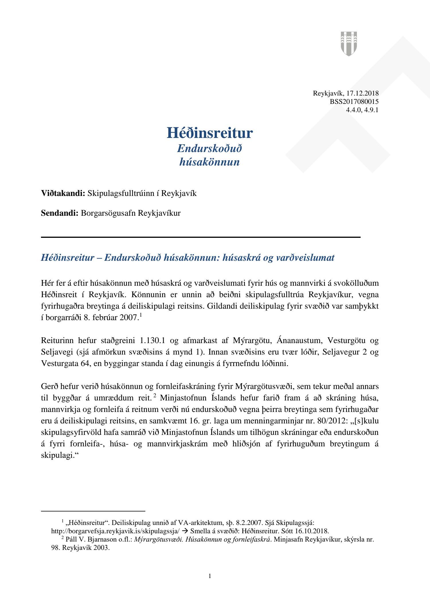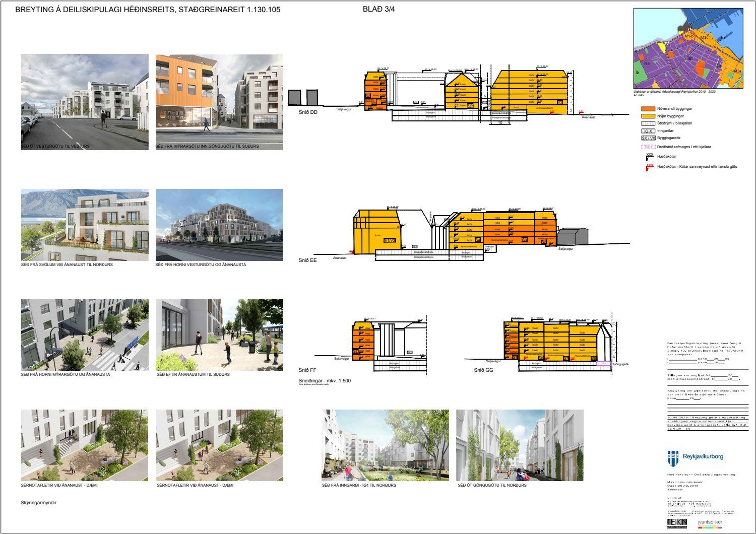 Að lokinni auglýsingu er lögð fram að nýju tillaga að breytingu á deiliskipulagi fyrir Héðinsreit. Breytingin nær til byggingarreita, byggðamynsturs, lóðamarka, hæða húsa og starfsemi á jarðhæðum. Felld er úr gildi byggingarheimild fyrir hjúkrunarrými og heimild bætt inn fyrir samsvarandi byggingarmagn undir íbúðir og heimild er sett inn fyrir hótel við Seljaveg, samkvæmt uppdr., greinagerð og hönnunarhandbók dags. 20. desember 2018. Einnig er lögð fram húsakönnun Borgarsögusafns Reykjavíkur dags. 17. desember 2018. Tillagan var auglýst frá 28. janúar 2019 til og með 11. mars 2019. Eftirtaldir aðilar sendu athugasemdir: Björgólfur Thorsteinsson f.h. Húsfélagsins Vesturgata 69-75 dags. 8. mars 2019, Sif Jónsdóttir dags. 10. mars 2019, Árný E. Sveinbjörnsdóttir f.h. íbúa í 301, Vesturgötu 73, dags. 10. mars 2019, Stefanía Helga Skúladóttir dags. 11. mars 2019, Guðrún Birna Brynjarsdóttir dags. 11. mars 2019, Hafþór Óskarsson, Unnsteinn Jóhannsson, Helga Arnardóttir, Bryndís Brandsdóttir, Birna Óskarsdóttir, Úlfar Gíslason og Marta Valgeirsdóttir dags. 11. mars 2019, Steinþór Þorsteinsson dags. 11. mars 2019, Íbúasamtök Vesturbæjar dags. 11. mars 2019 og Sveinn Sigurður Kjartansson dags. 12. mars 2019. Einnig er lögð fram umsögn Veitna dags. 29. mars 2019, umögn Vegagerðarinnar dags. 4. apríl 2019, umsögn Heilbirgðiseftirlits Reykjavíkur dags. 4. apríl 2019 og umsögn Faxaflóahafna dags. 9. apríl 2019. Jafnframt eru lagðir fram lagfærðir uppdrættir Jvantspijker og Teikn arkitektaþjónustu dags. 20. desember 2018, síðast breytt 10. maí 2019 og lagfærð greinargerð Jvantspijker og Teikn arkitektaþjónustu dags. 20. desember 2018 síðast breytt 10, maí 2019. Einnig er lögð fram umsögn skipulagsfulltrúa dags. 10. maí 2019.