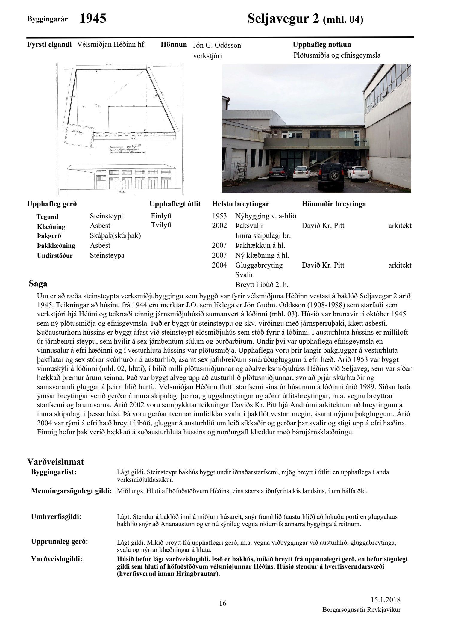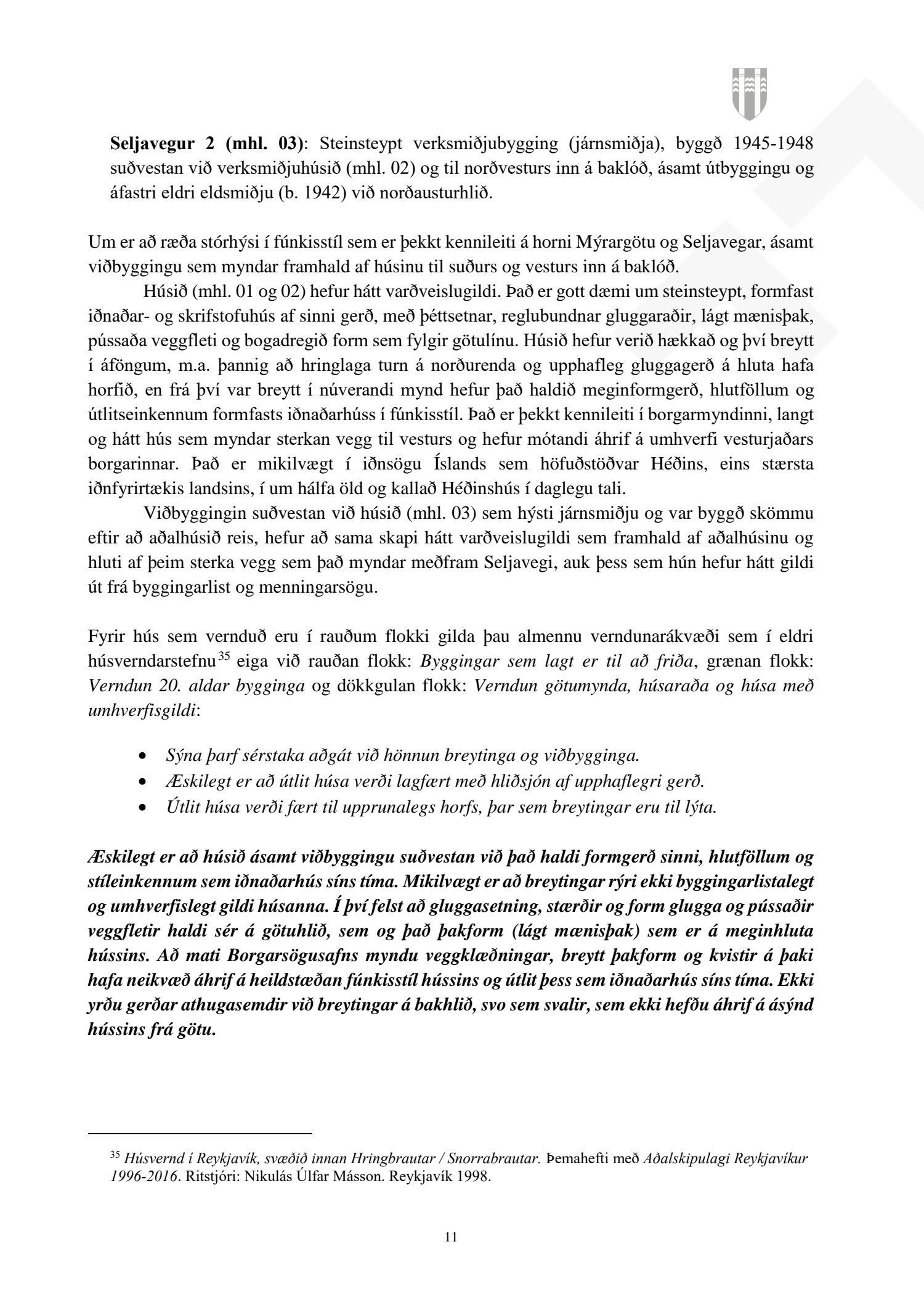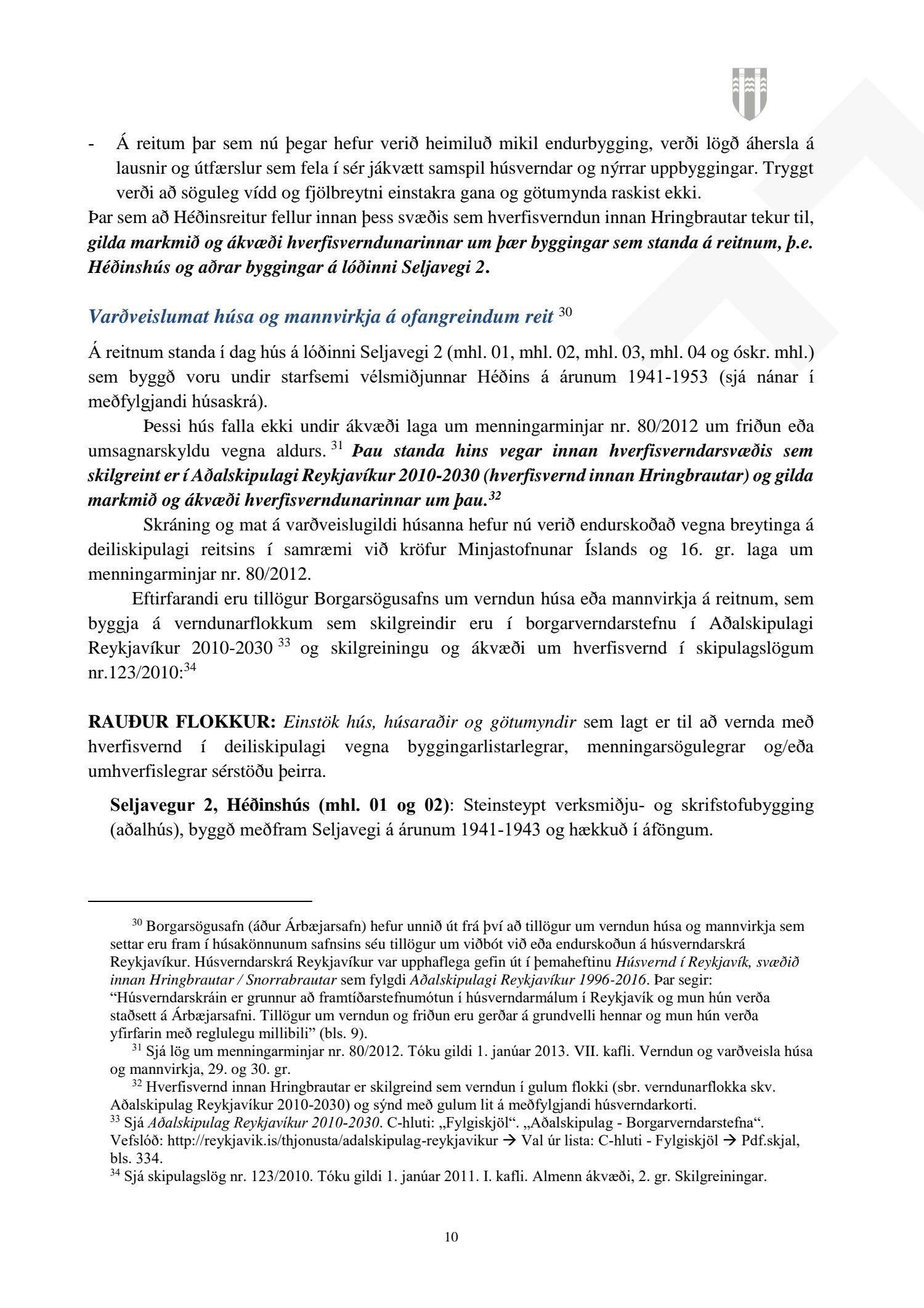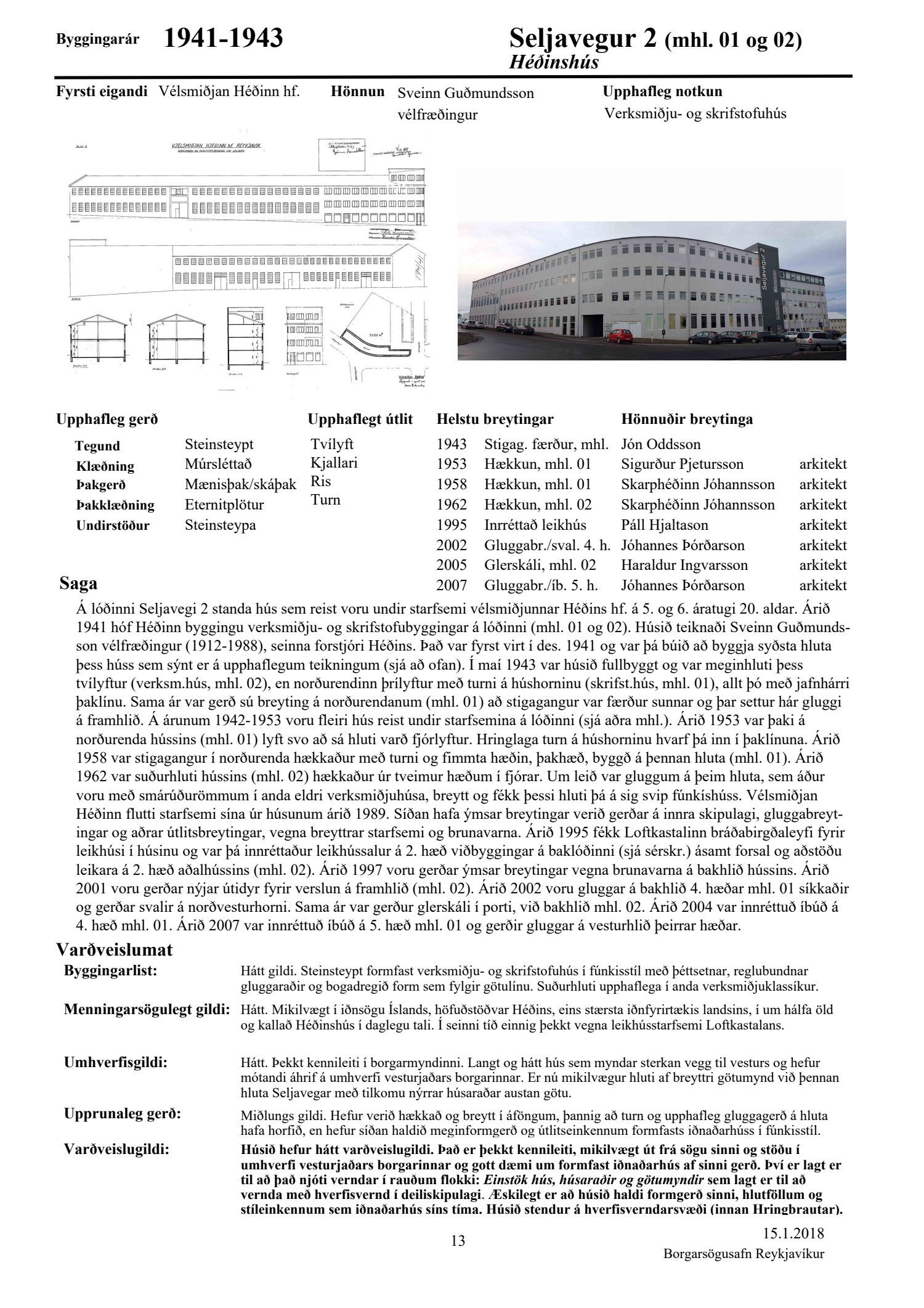 Að lokinni auglýsingu er lögð fram að nýju tillaga að breytingu á deiliskipulagi fyrir Héðinsreit. Breytingin nær til byggingarreita, byggðamynsturs, lóðamarka, hæða húsa og starfsemi á jarðhæðum. Felld er úr gildi byggingarheimild fyrir hjúkrunarrými og heimild bætt inn fyrir samsvarandi byggingarmagn undir íbúðir og heimild er sett inn fyrir hótel við Seljaveg, samkvæmt uppdr., greinagerð og hönnunarhandbók dags. 20. desember 2018. Einnig er lögð fram húsakönnun Borgarsögusafns Reykjavíkur dags. 17. desember 2018. Tillagan var auglýst frá 28. janúar 2019 til og með 11. mars 2019. Eftirtaldir aðilar sendu athugasemdir: Björgólfur Thorsteinsson f.h. Húsfélagsins Vesturgata 69-75 dags. 8. mars 2019, Sif Jónsdóttir dags. 10. mars 2019, Árný E. Sveinbjörnsdóttir f.h. íbúa í 301, Vesturgötu 73, dags. 10. mars 2019, Stefanía Helga Skúladóttir dags. 11. mars 2019, Guðrún Birna Brynjarsdóttir dags. 11. mars 2019, Hafþór Óskarsson, Unnsteinn Jóhannsson, Helga Arnardóttir, Bryndís Brandsdóttir, Birna Óskarsdóttir, Úlfar Gíslason og Marta Valgeirsdóttir dags. 11. mars 2019, Steinþór Þorsteinsson dags. 11. mars 2019, Íbúasamtök Vesturbæjar dags. 11. mars 2019 og Sveinn Sigurður Kjartansson dags. 12. mars 2019. Einnig er lögð fram umsögn Veitna dags. 29. mars 2019, umögn Vegagerðarinnar dags. 4. apríl 2019, umsögn Heilbirgðiseftirlits Reykjavíkur dags. 4. apríl 2019 og umsögn Faxaflóahafna dags. 9. apríl 2019. Jafnframt eru lagðir fram lagfærðir uppdrættir Jvantspijker og Teikn arkitektaþjónustu dags. 20. desember 2018, síðast breytt 10. maí 2019 og lagfærð greinargerð Jvantspijker og Teikn arkitektaþjónustu dags. 20. desember 2018 síðast breytt 10, maí 2019. Einnig er lögð fram umsögn skipulagsfulltrúa dags. 10. maí 2019.