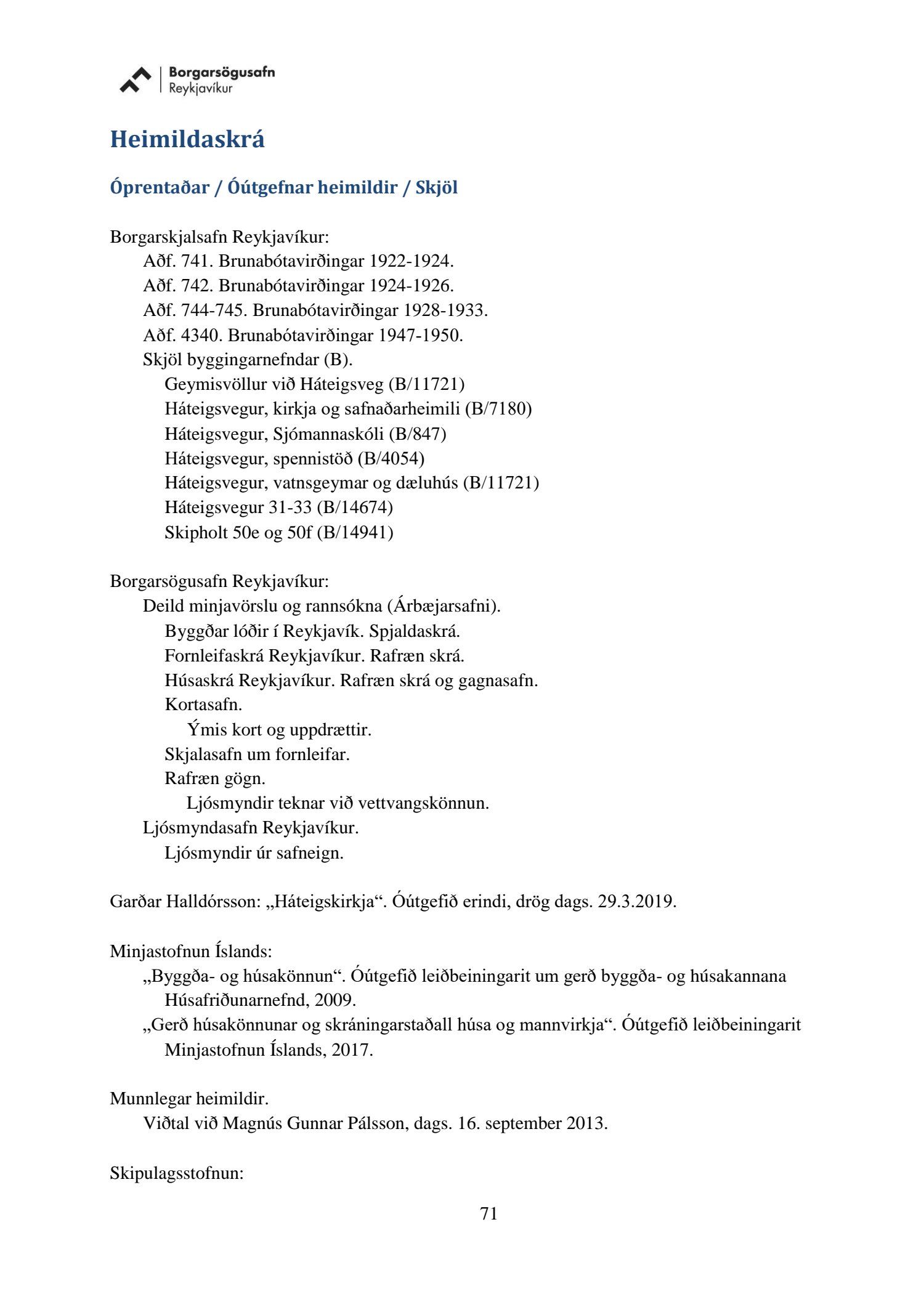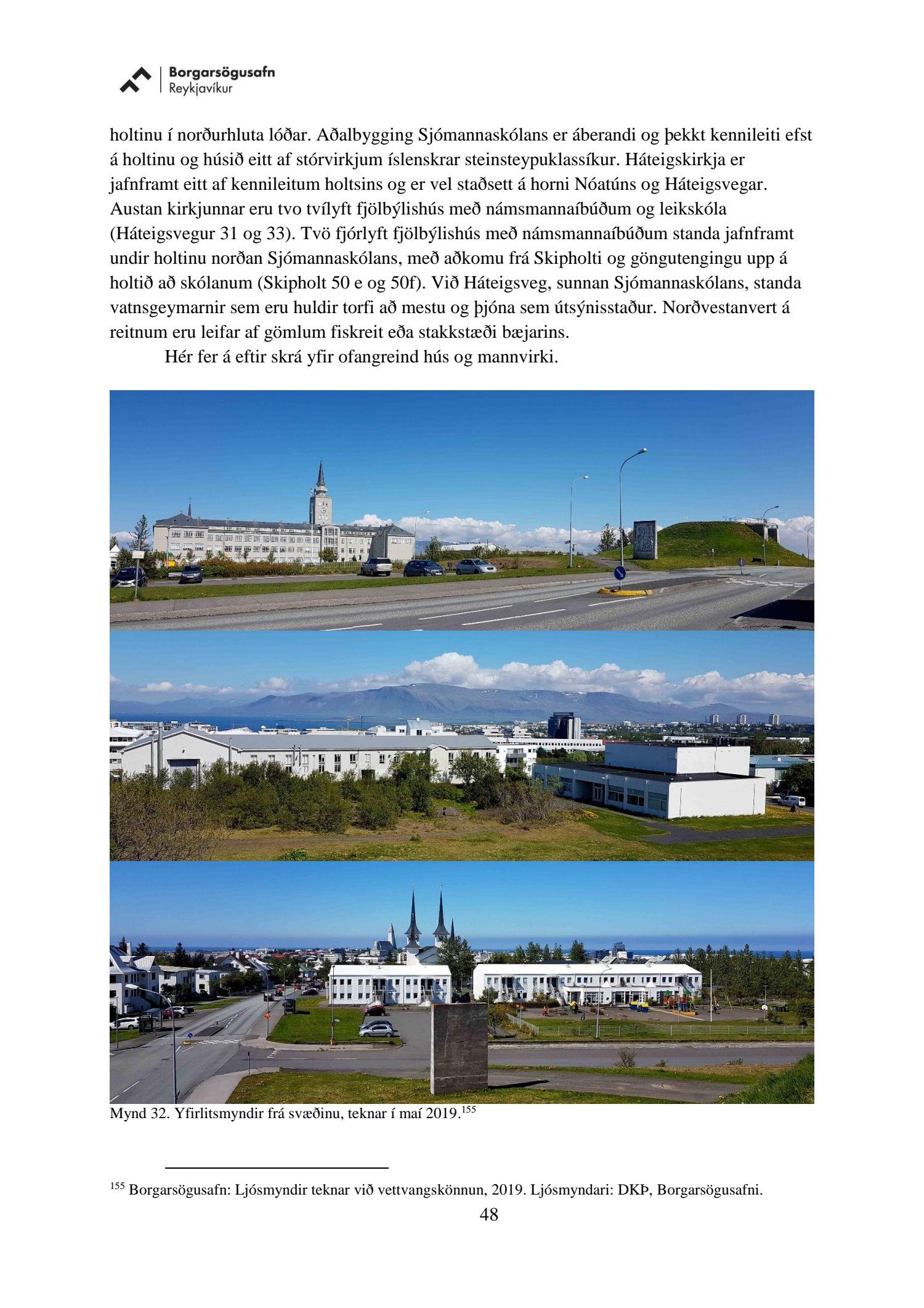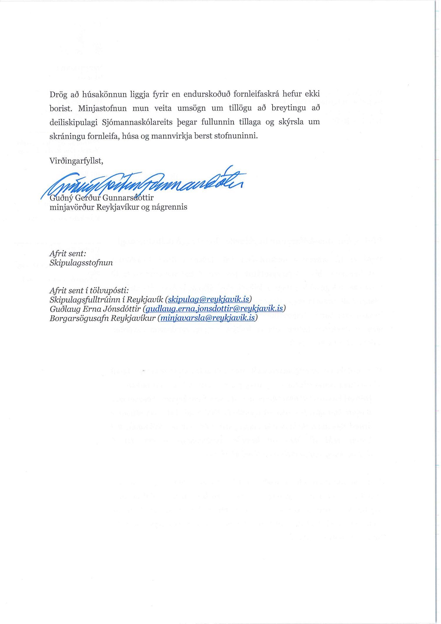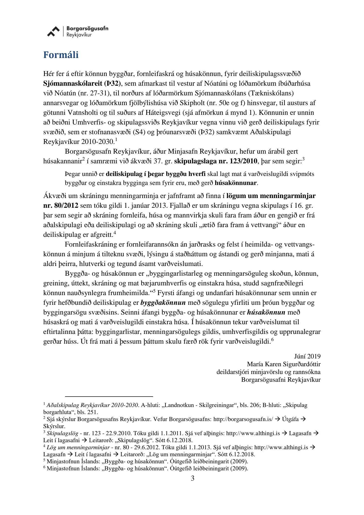 dags. 1. júlí 2019. Einnig er lagt fram bréf Minjastofnunar Íslands dags. 18. apríl 2019 og Húsakönnun Borgarsögusafns móttekin í júní 2019 og samgöngumat EFLU dags. 3. júní 2019.