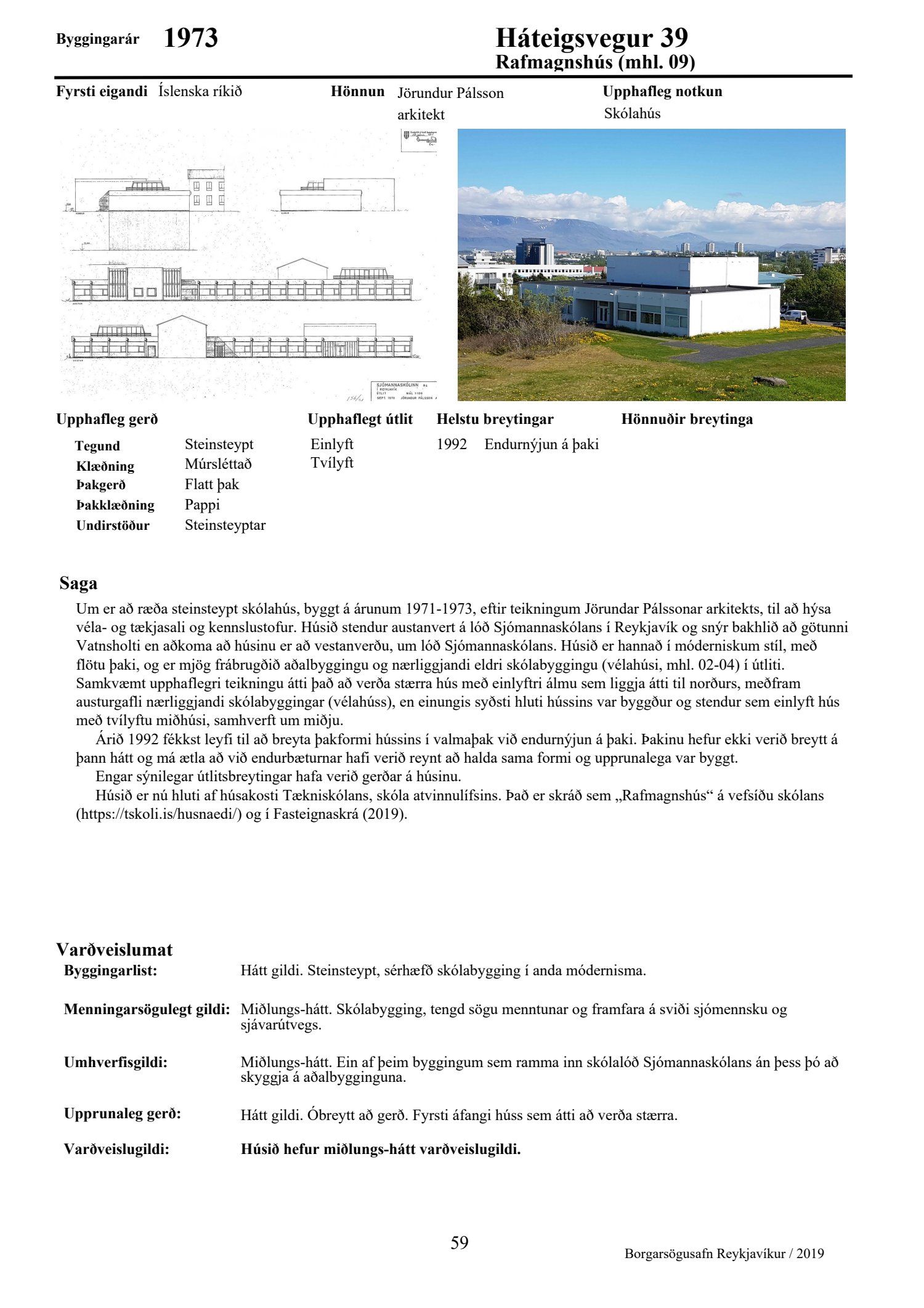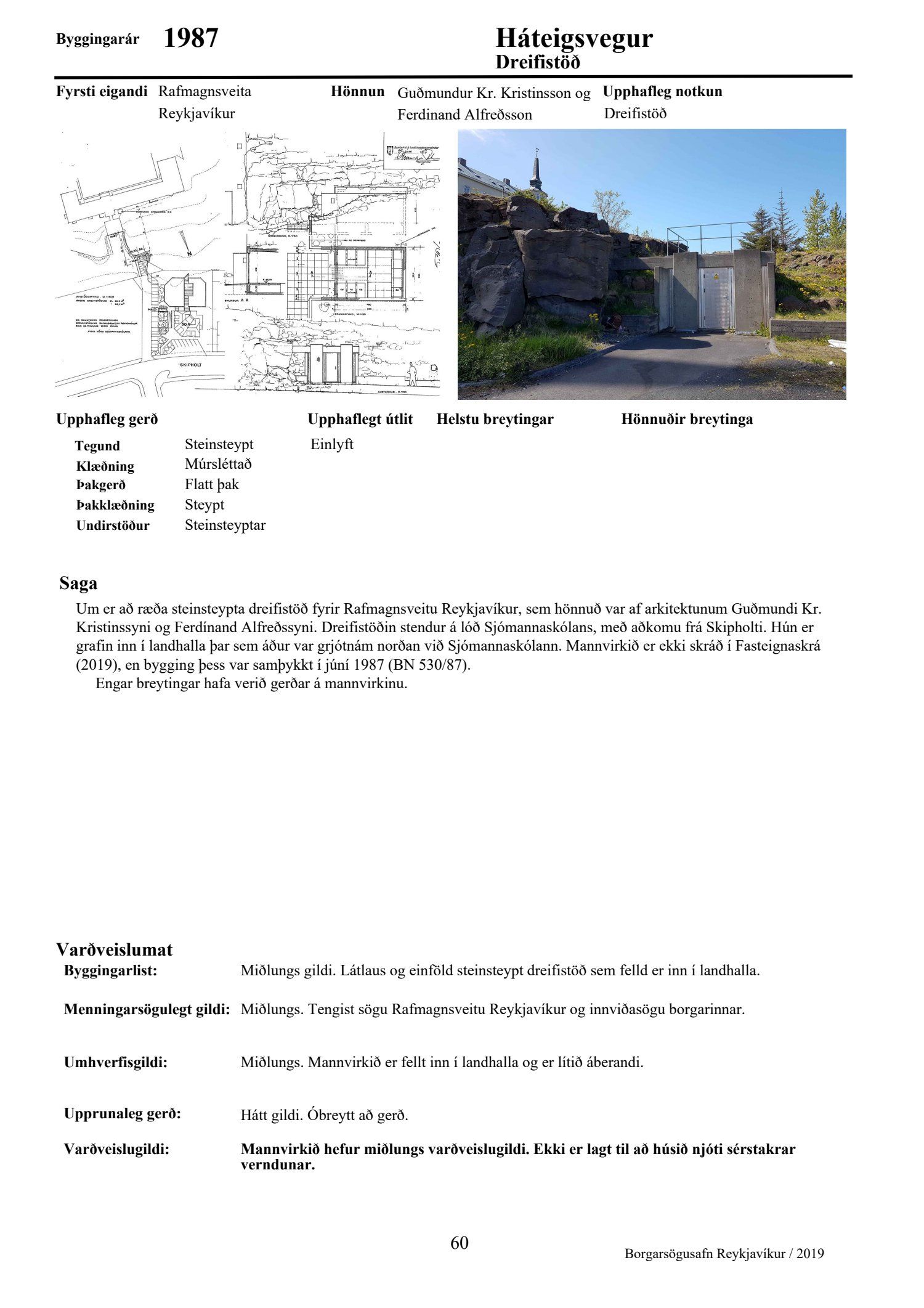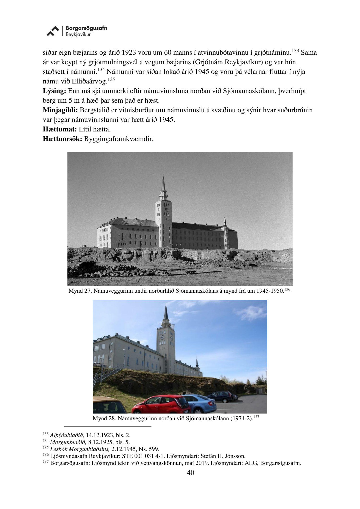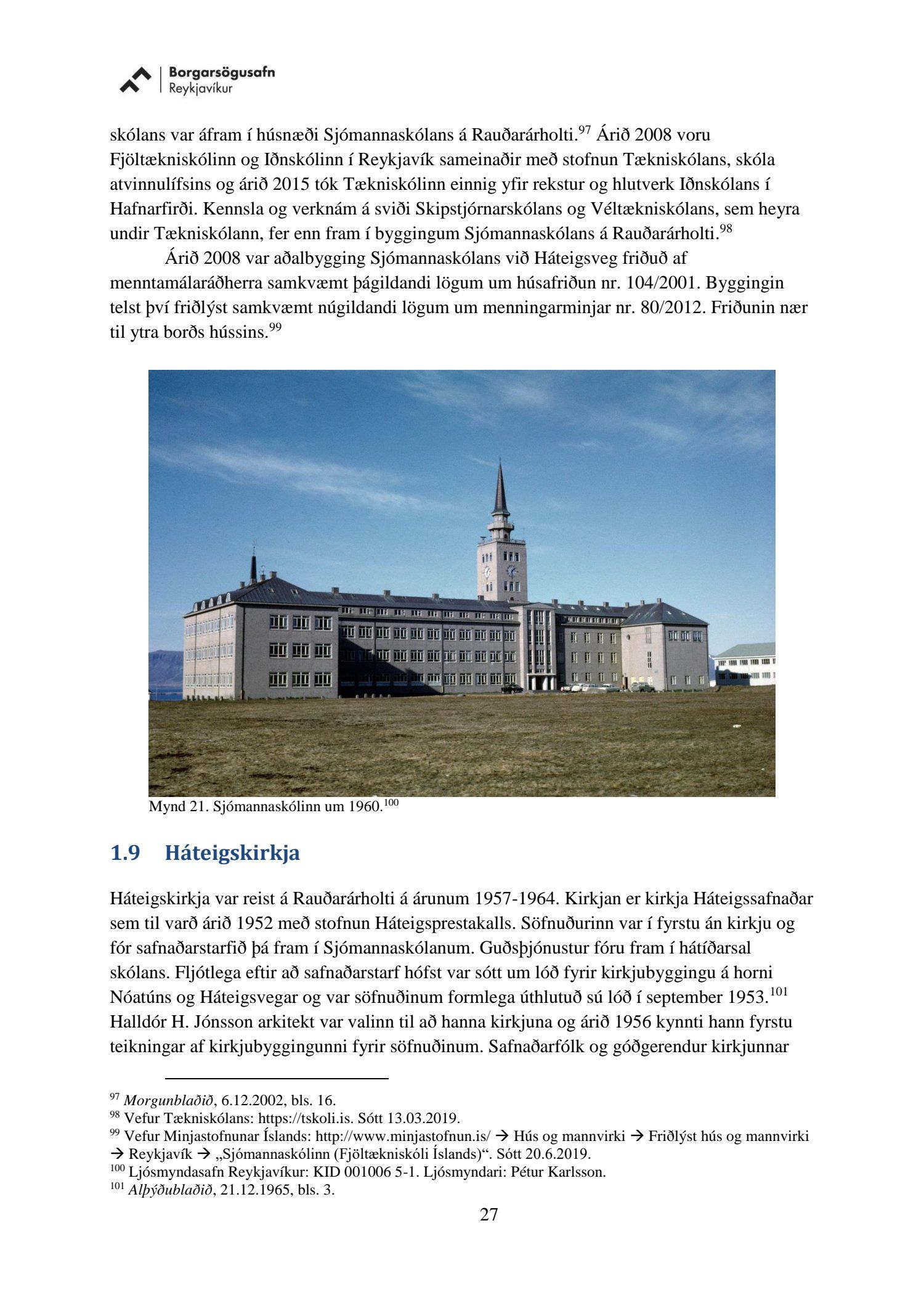 dags. 1. júlí 2019. Einnig er lagt fram bréf Minjastofnunar Íslands dags. 18. apríl 2019 og Húsakönnun Borgarsögusafns móttekin í júní 2019 og samgöngumat EFLU dags. 3. júní 2019.