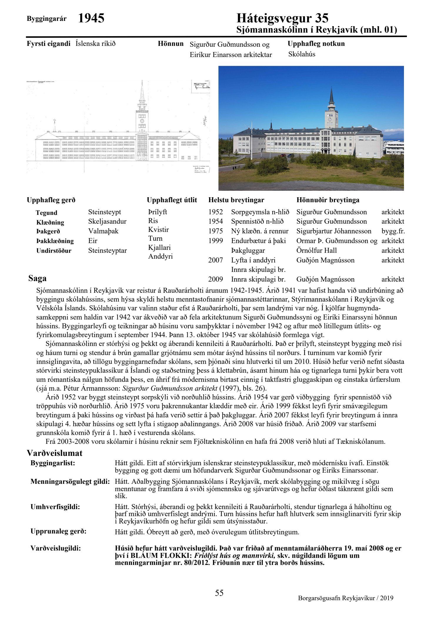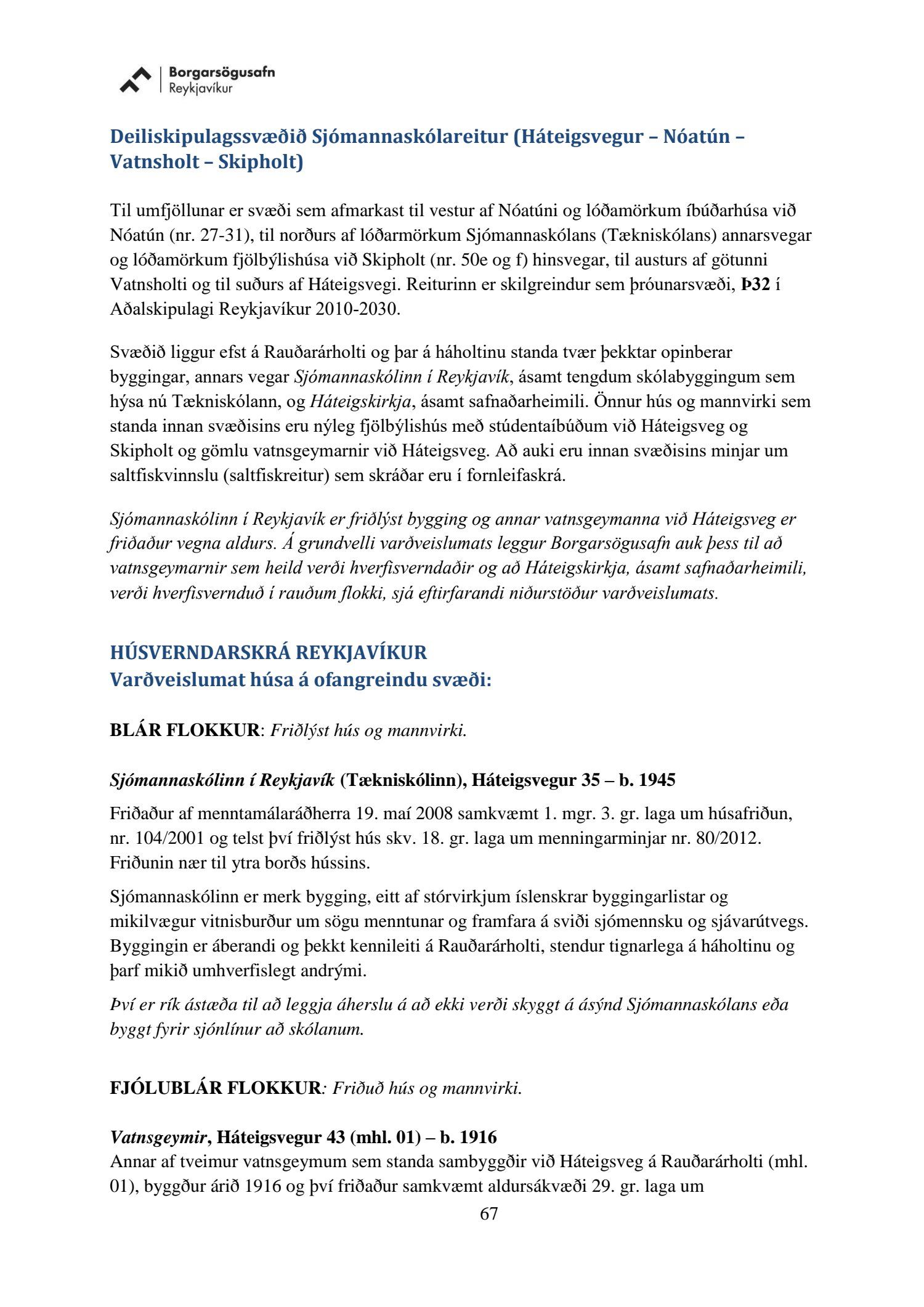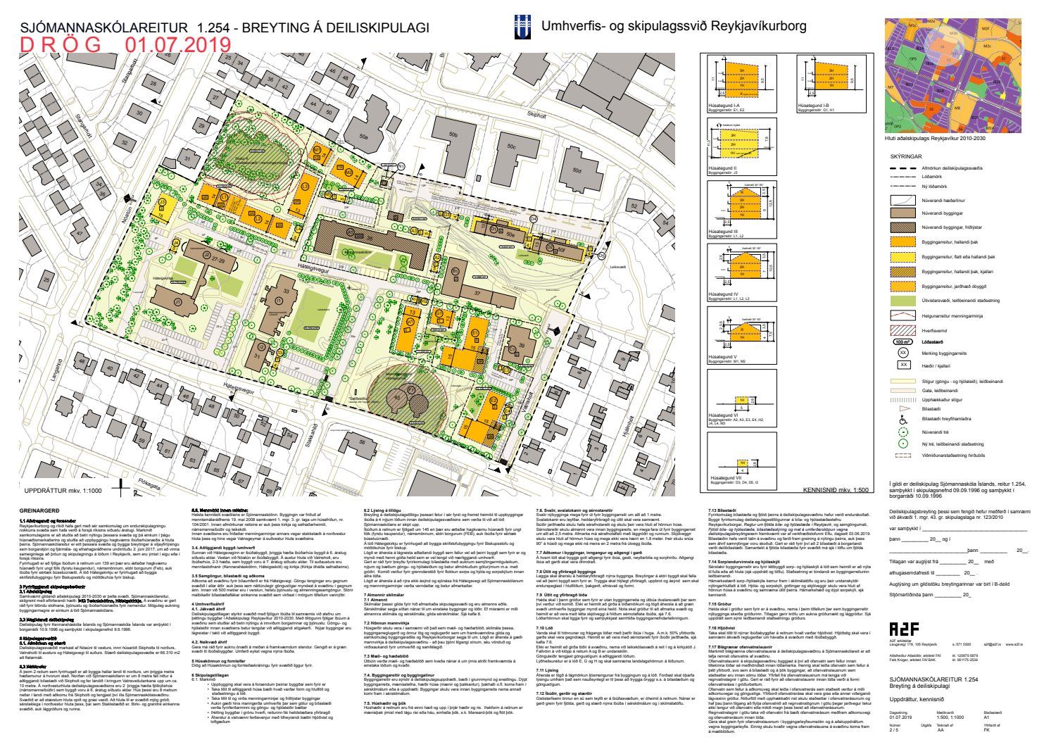 Lögð fram tillaga umhverfis- og skipulagssviðs að breytingu á deiliskipulagi fyrir Sjómannaskólareit 1.254.2. Í tillögunni felst uppbygging á lóð Sjómannaskólans fyrir allt að 150 nýrra íbúða á svæðinu fyrir eldri borgara, námsmenn, félagsbústaði og hagkvæmt húsnæði (almennar íbúðir). Auk þess verður bætt við byggingarheimildum fyrir biskupsstofu á lóð Háteigskirkju. Reiturinn afmarkast af Háteigsvegi til suðurs, Vatnsholti til austurs, Skipholti til norðurs, Nóatúni og lóð Háteigskirkju til suðurs og vesturs, samkvæmt uppdr.