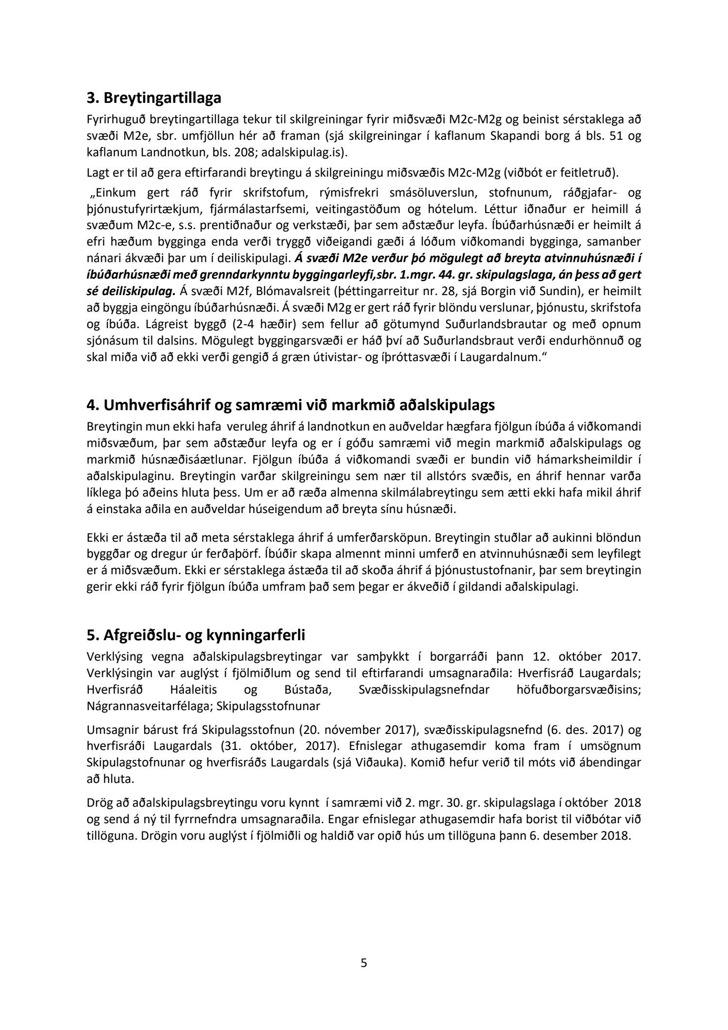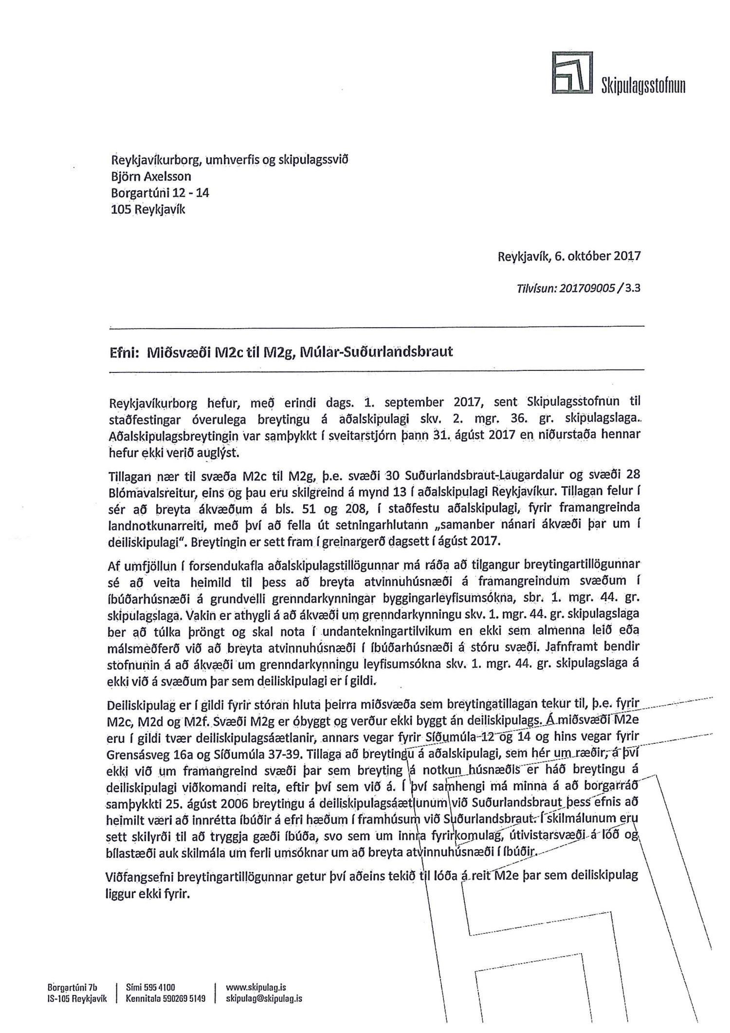 Lögð fram að tillaga umhverfis- og skipulagssviðs dags. í desember 2018 fyrir miðsvæði M2c-M2g, Múlar- Suðurlandsbraut, er varðar kröfu um gerð deiliskipulags við breytingu húsnæðis á svæði M2e.