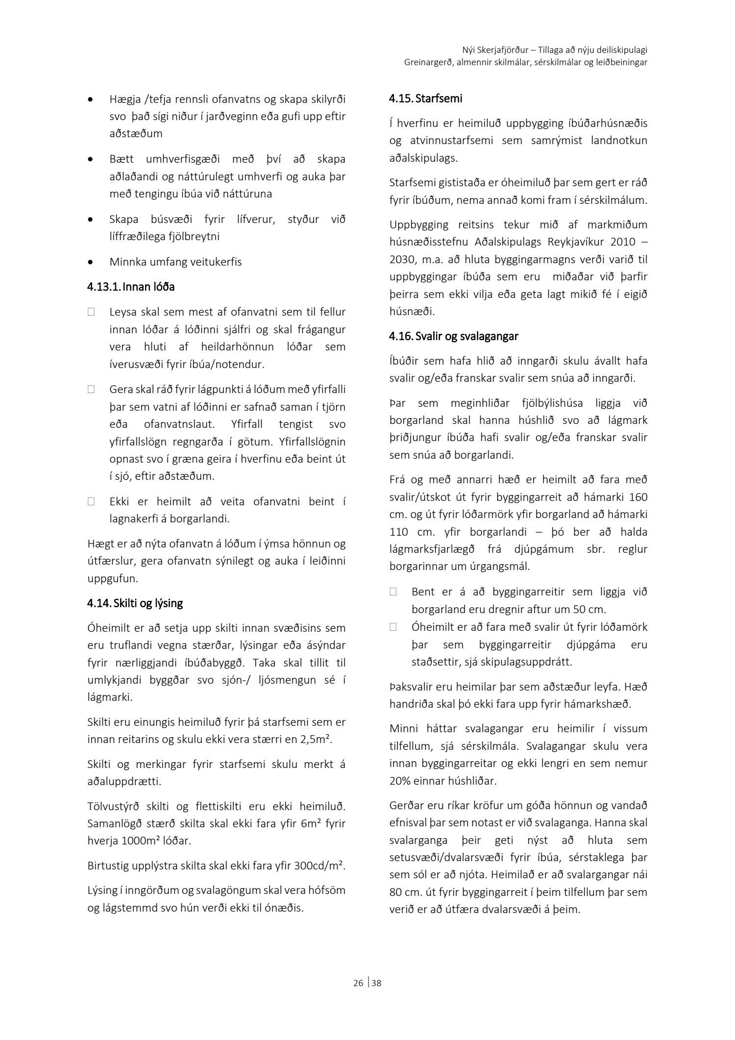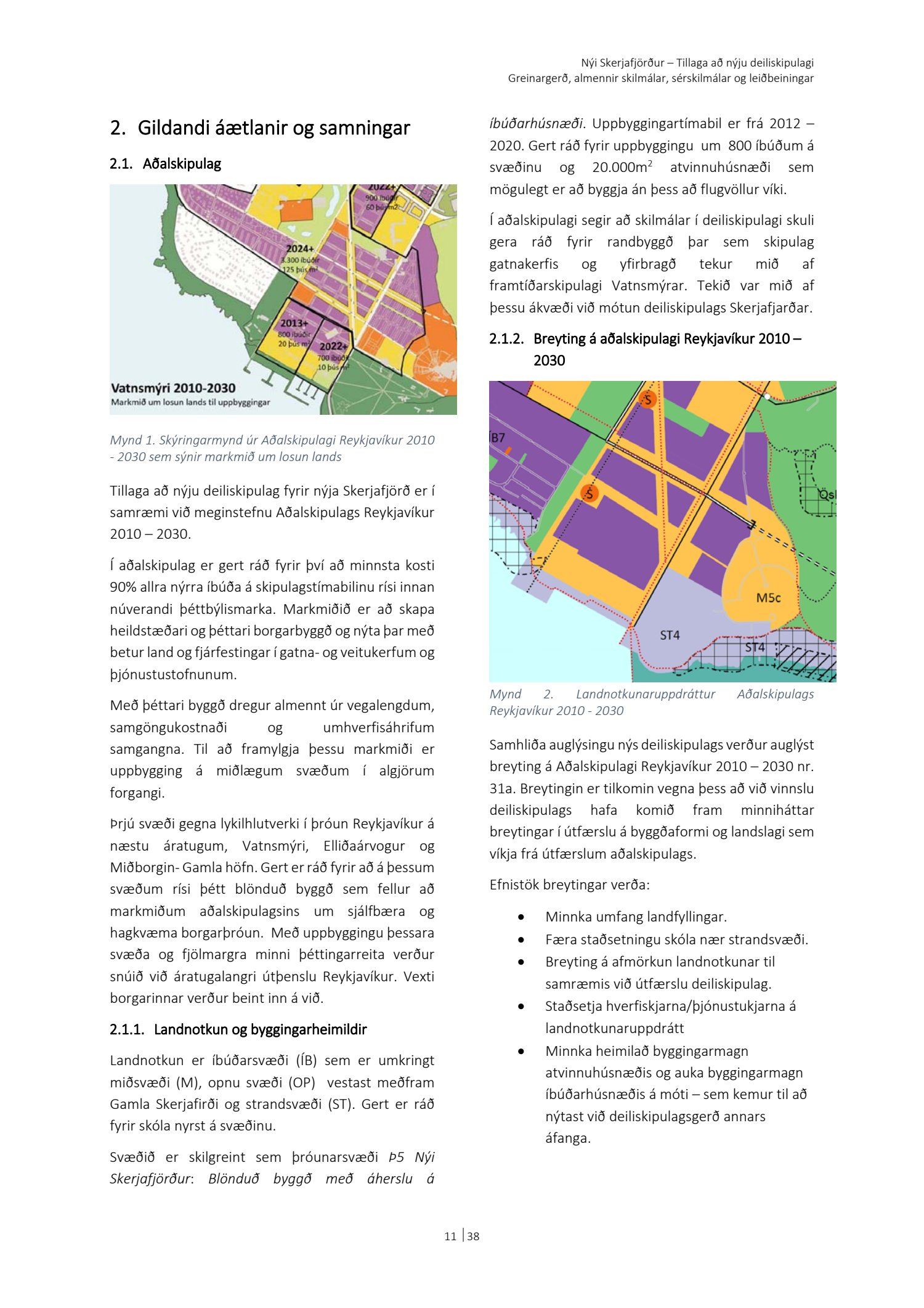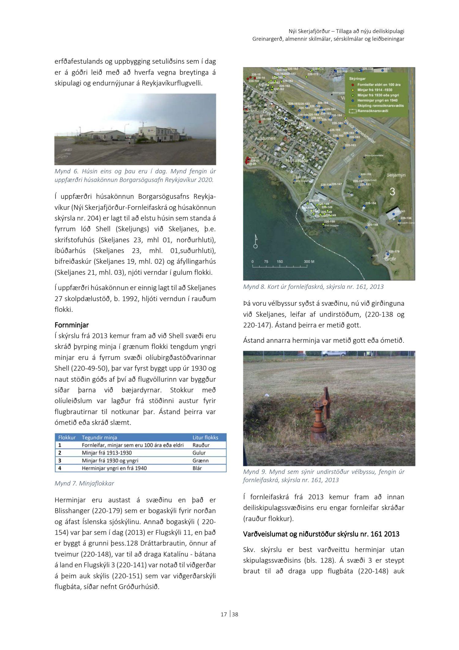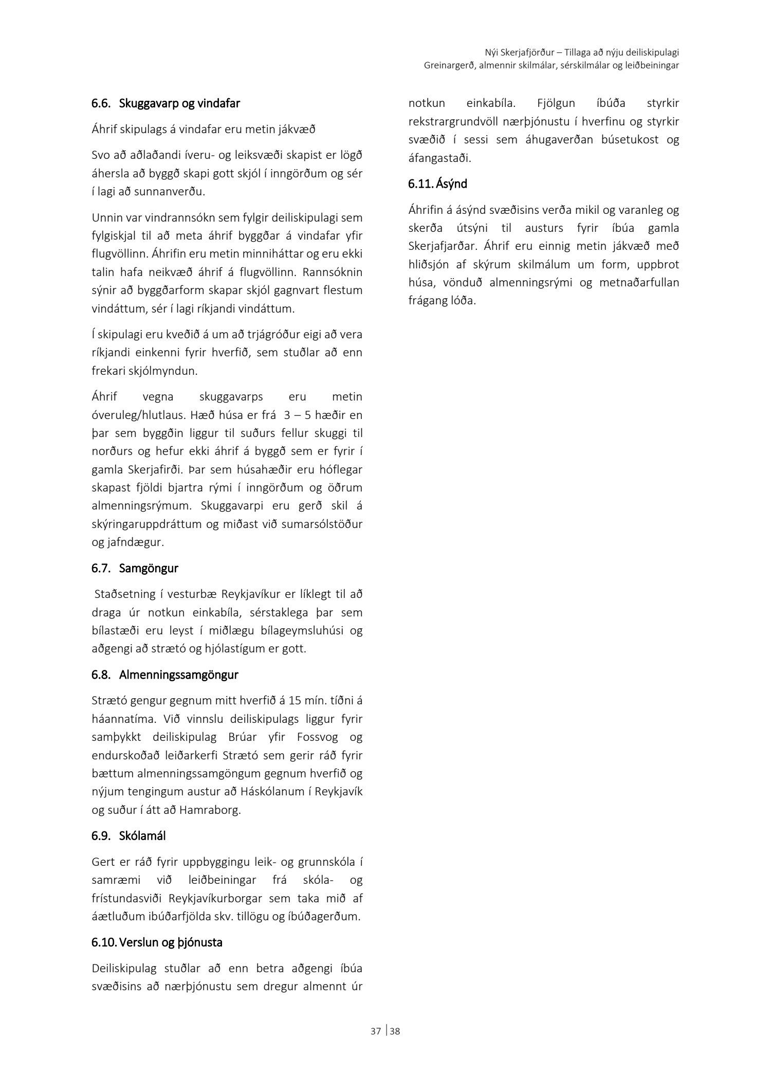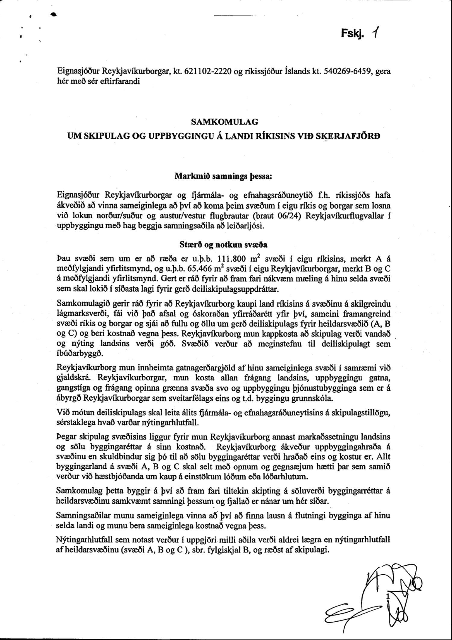 Lögð fram tillaga umhverfis- og skipulagssviðs, skipulagsfulltrúa, að nýju deiliskipulagi fyrir Nýja Skerjafjörð. Tillagan gerir ráð fyrir uppbyggingu um 700 íbúða, leikskóla, grunnskóla, bílageymsluhúsi, verslun, þjónustu og útivistarsvæðum. Tillagan gerir einnig ráð fyrir nýjum vegtengingum til austurs, suður fyrir Reykjavíkurflugvöll, sem er eingöngu ætluð almenningssamgöngum, gangandi og hjólandi vegfarendum. Einnig eru lagðir fram deiliskipulags-, skýringar- og skuggavarpsuppdr. ASK Arkitekta, EFLU og Landslags dags. 26. júní 2020, greinargerð og almennir skipulagsskilmálar dags. 26. júní 2020, sérskilmálar dags. 26. júní 2020, hönnunarleiðbeiningar dags. 26. júní 2020, skýrsla Minjasafns Reykjavíkur nr. 161 frá 2013 (byggðakönnun, fornleifaskrá og húsakönnun), drög að skýrslu Borgarsögusafns Reykjavíkur nr. 204 frá 2020 (fornleifaskrá og húsakönnun), fjórir undirritaðir samningar: samkomulega um skipulag og uppbygging á landi ríkisins við Skerjafjörð dags 1. mars 2013, samkomulag um endurbætur á aðstöðu fyrir farþega og þjónustuaðila á Reykjavíkurflugvelli dags. 19. apríl 2013, samkomulag um innanlandsflug dags. 25. október 2013 og kaupsamningur og afsal í framhaldi af formlegri lokun ríkisins á norður/suður og austur/vestur flugbrautar (braut (06/24) á Reykjavíkurflugvelli dags. 11. ágúst 2016. Jafnframt eru lögð fram ítargögn: skýrsla Eflu um jarðkönnun og mengunarrannsóknir í jarðvegi Skerjafjarðar dags. 29. janúar 2019, skýrsla Eflu um hljóðvist dags. 12. september 2019, samgöngumat Eflu dags. 26. júní 2020, skýrsla Eflu um vindgreiningu dags. 7. janúar 2020, minnisblað Eflu vindgreining - viðauki A dags. 16. júní 2020, minnisblað Eflu Vindgreining - viðauki B dags. 26. júní 2020 og minnisblað Eflu vegna færslu skipulagsmarka (áhrif færslu skipulagsmarka á umferð, hljóðvist og vindafar) dags. 26. júní 2020.