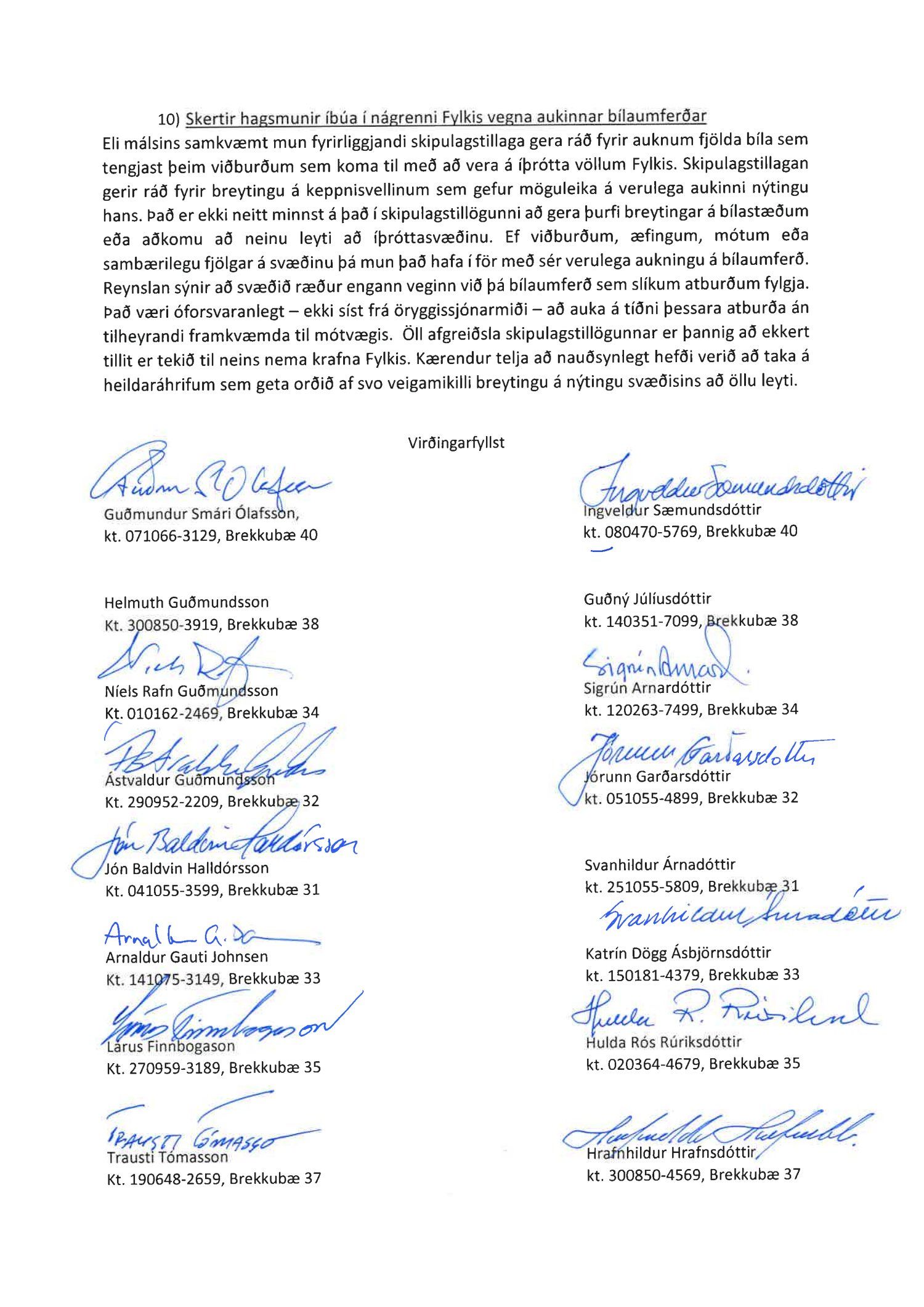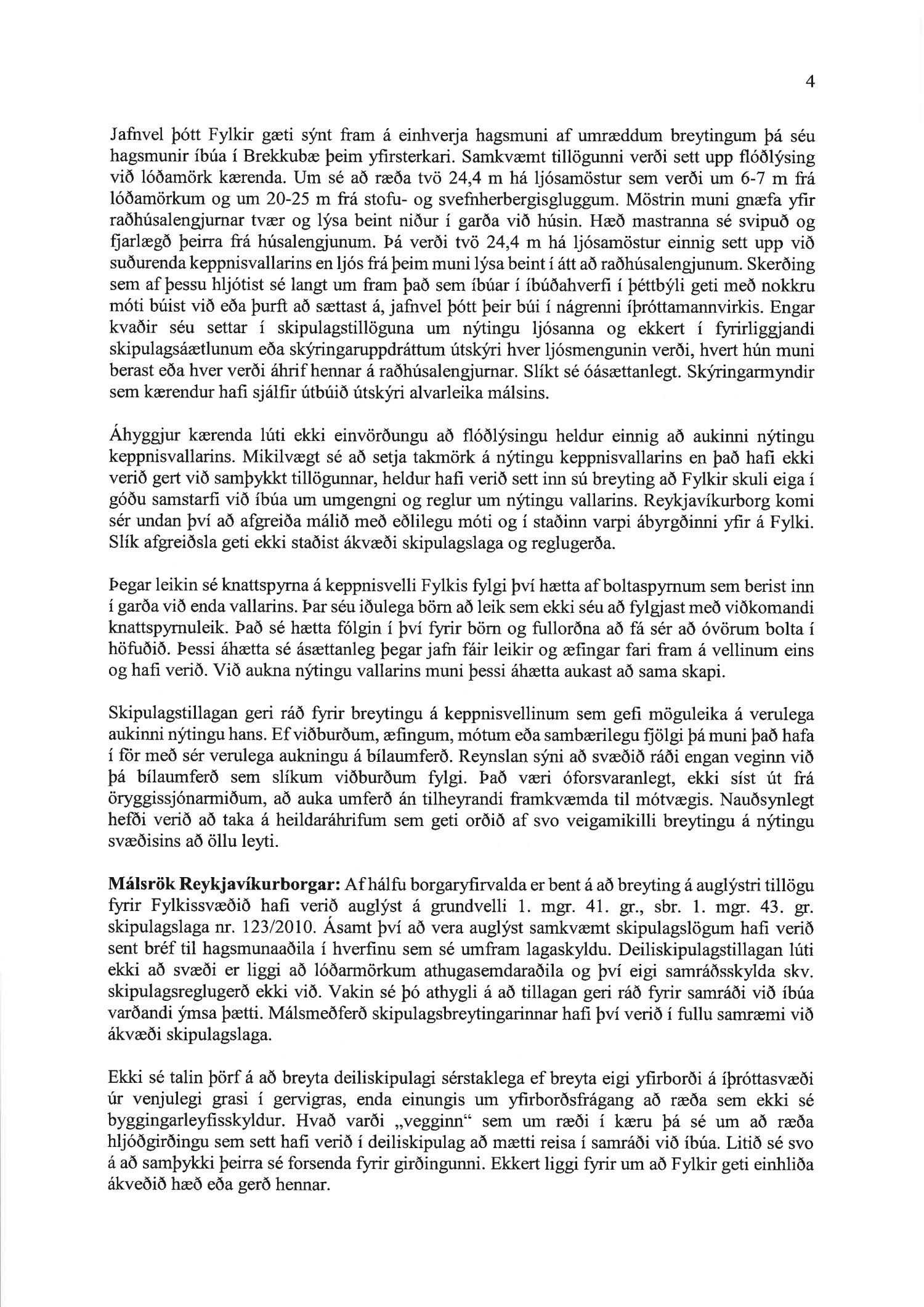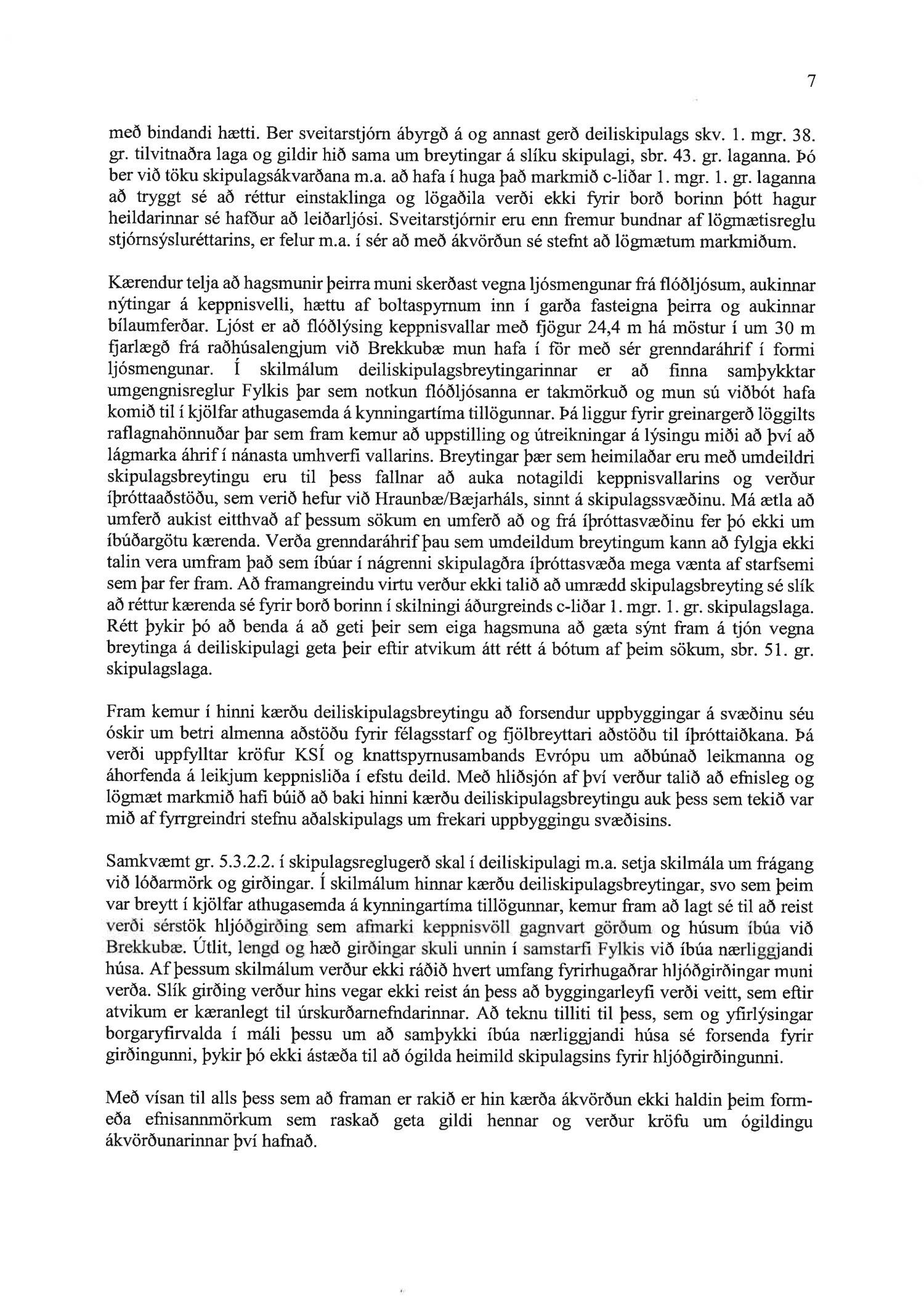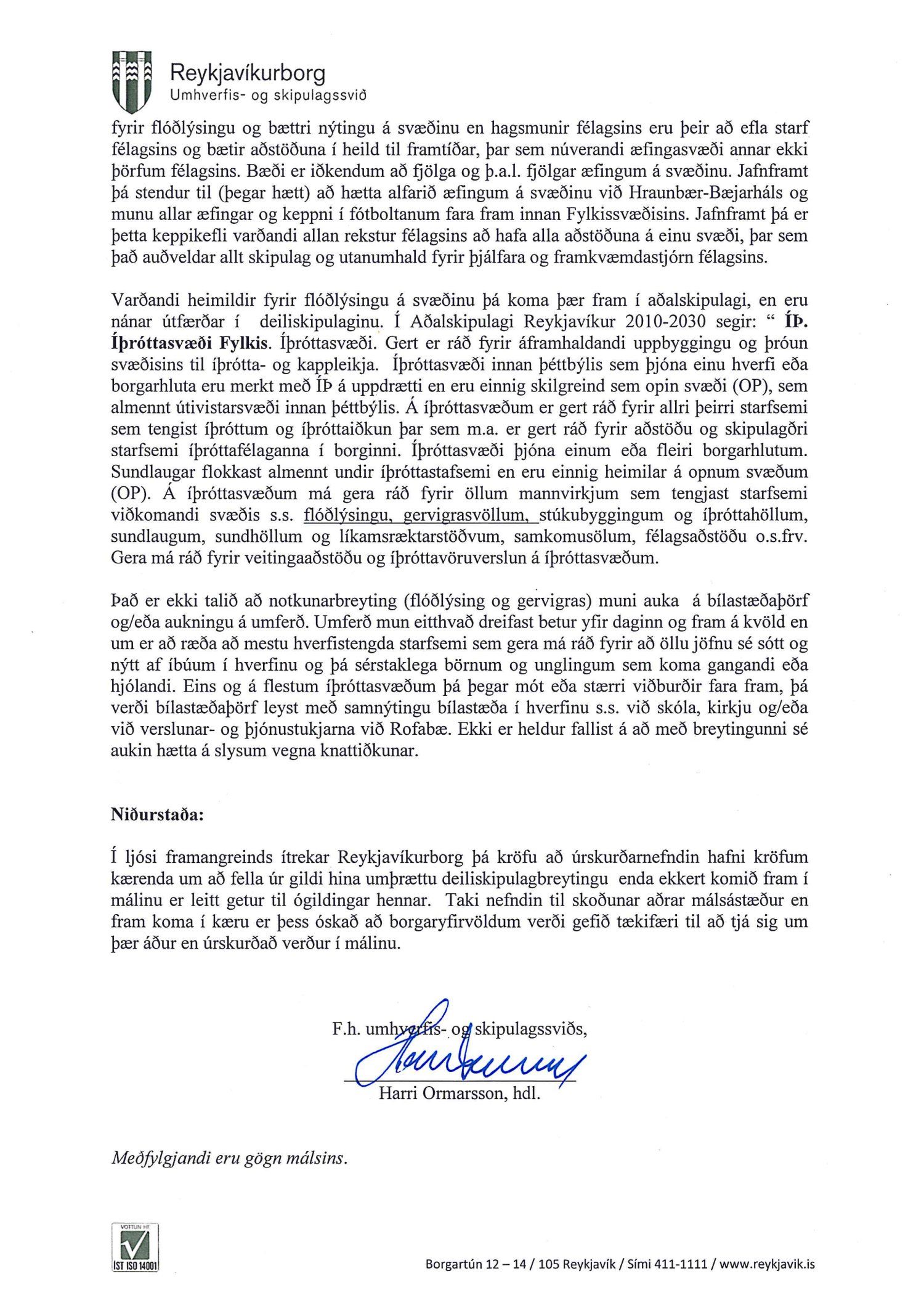 Hafnað er kröfu annarra kærenda um ógildingu ákvörðunar borgarráðs Reykjavíkur frá 26. október 2017 um að samþykkja breytingu á deiliskipulagi íþróttasvæðis Fylkis að Fylkisvegi 6.