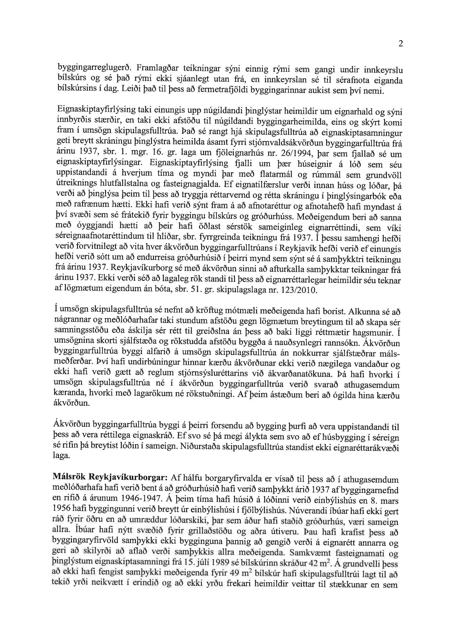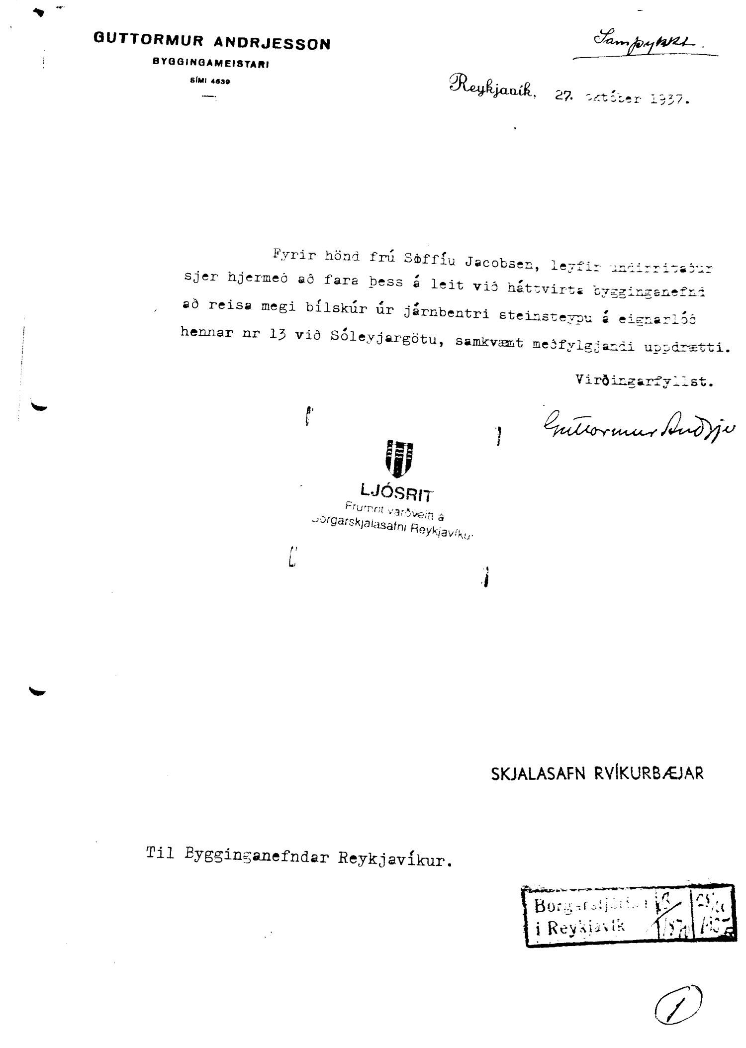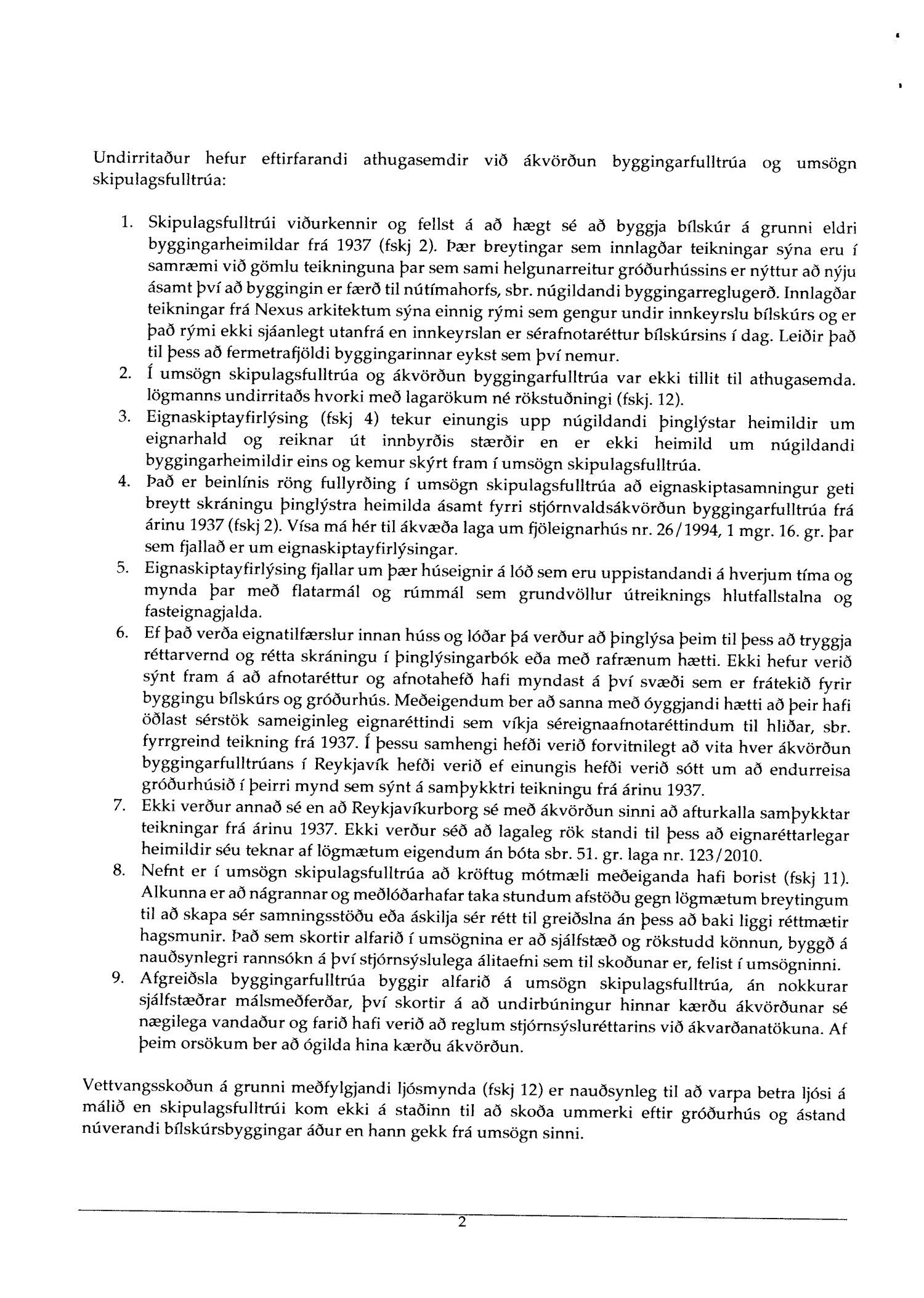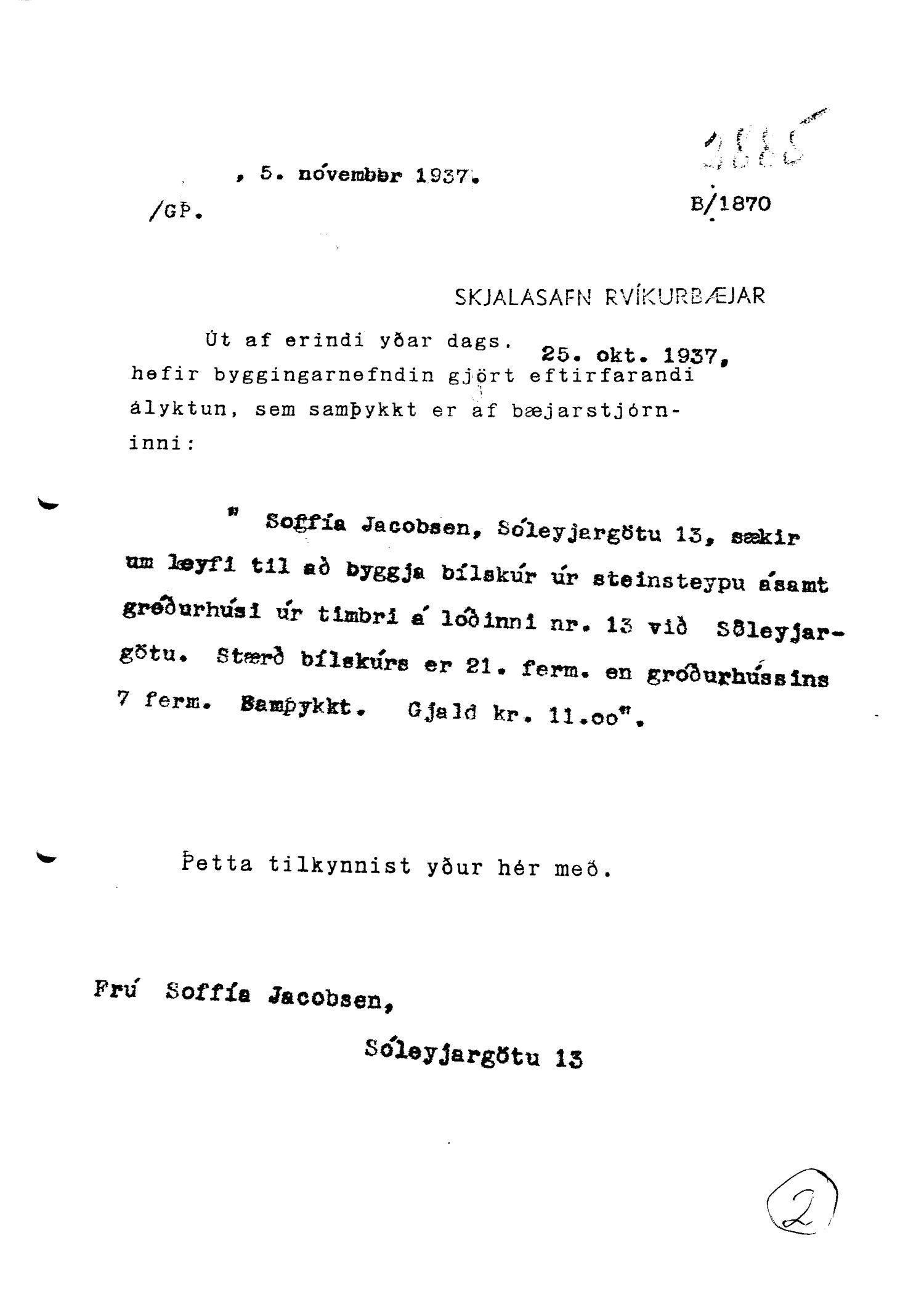 Lagt fram bréf umhverfis- og auðlindamála dags. 20. desember 2017 ásamt kæru dags. 20. desember 2017 þar sem kærð er synjun á umsókn um endurbyggingu á bílskúrsbyggingu við Sóleyjargötu 13. Einnig er lögð fram umsögn skrifstofu sviðsstjóra dags. 4. janúar 2018. Jafnframt er lagður fram úrskurður úrskurðarnefndar umhverfis- og auðlindamála frá 28. febrúar 2019. Úrskurðarorð: Hafnað er kröfu kæranda um ógildingu ákvörðunar byggingarfulltrúans í Reykjavík frá 21. nóvember 2017 um að synja umsókn um byggingarleyfi fyrir endurgerð bílskúrs að Sóleyjargötu 13.