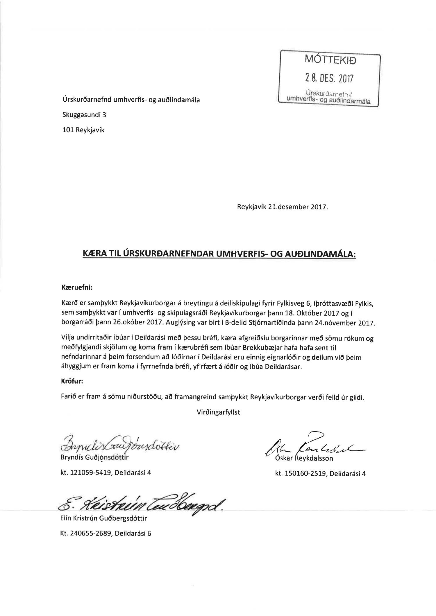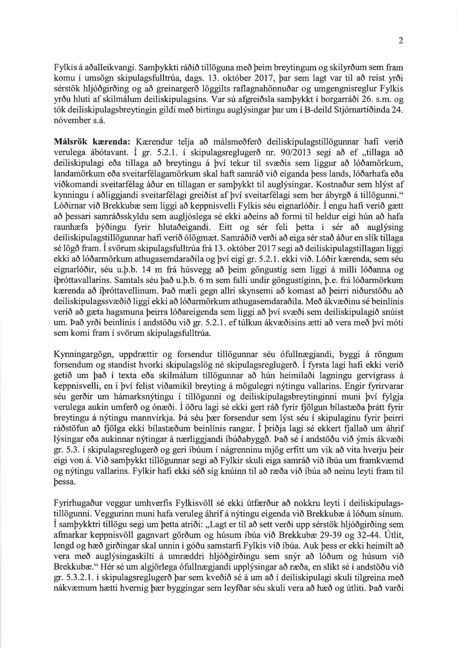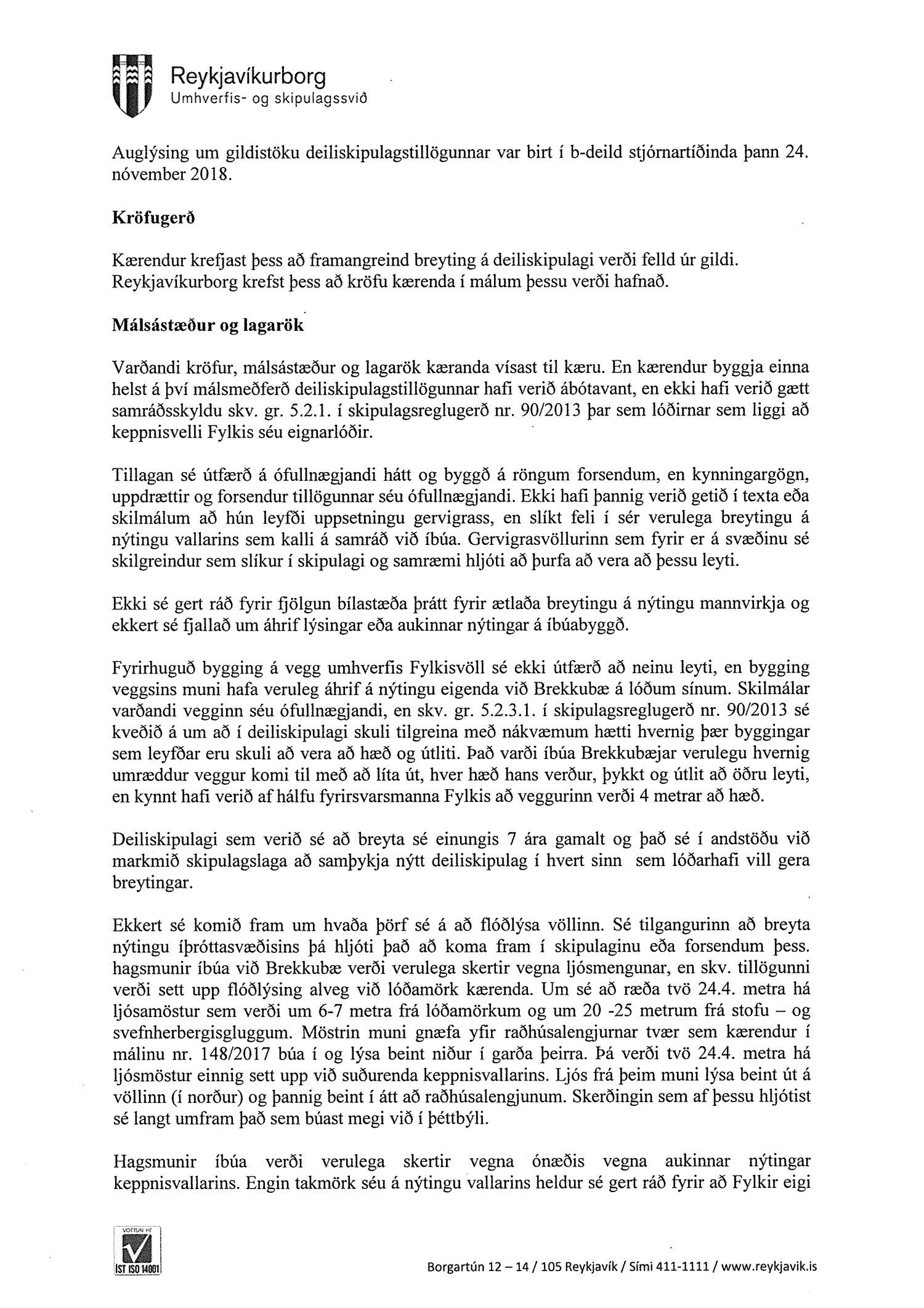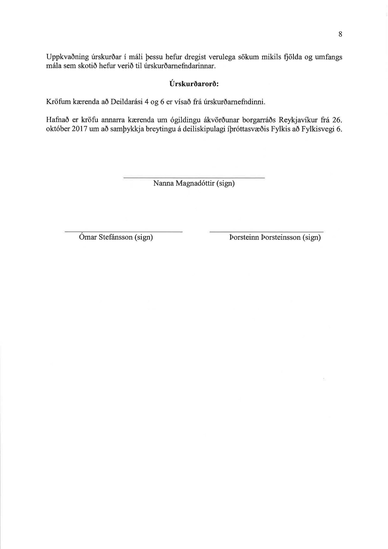 Hafnað er kröfu annarra kærenda um ógildingu ákvörðunar borgarráðs Reykjavíkur frá 26. október 2017 um að samþykkja breytingu á deiliskipulagi íþróttasvæðis Fylkis að Fylkisvegi 6.