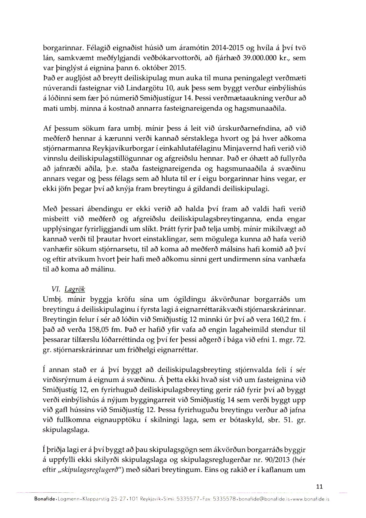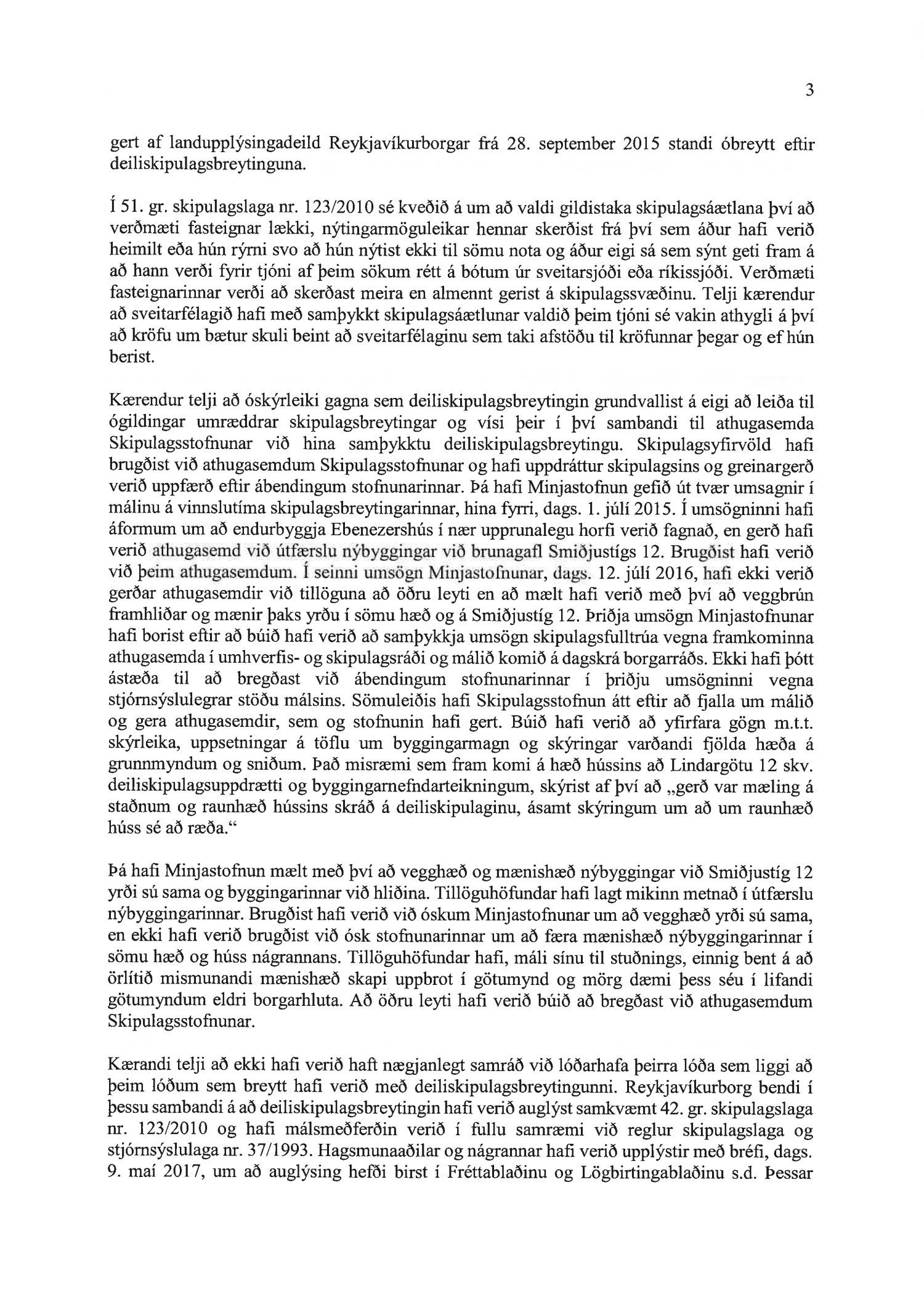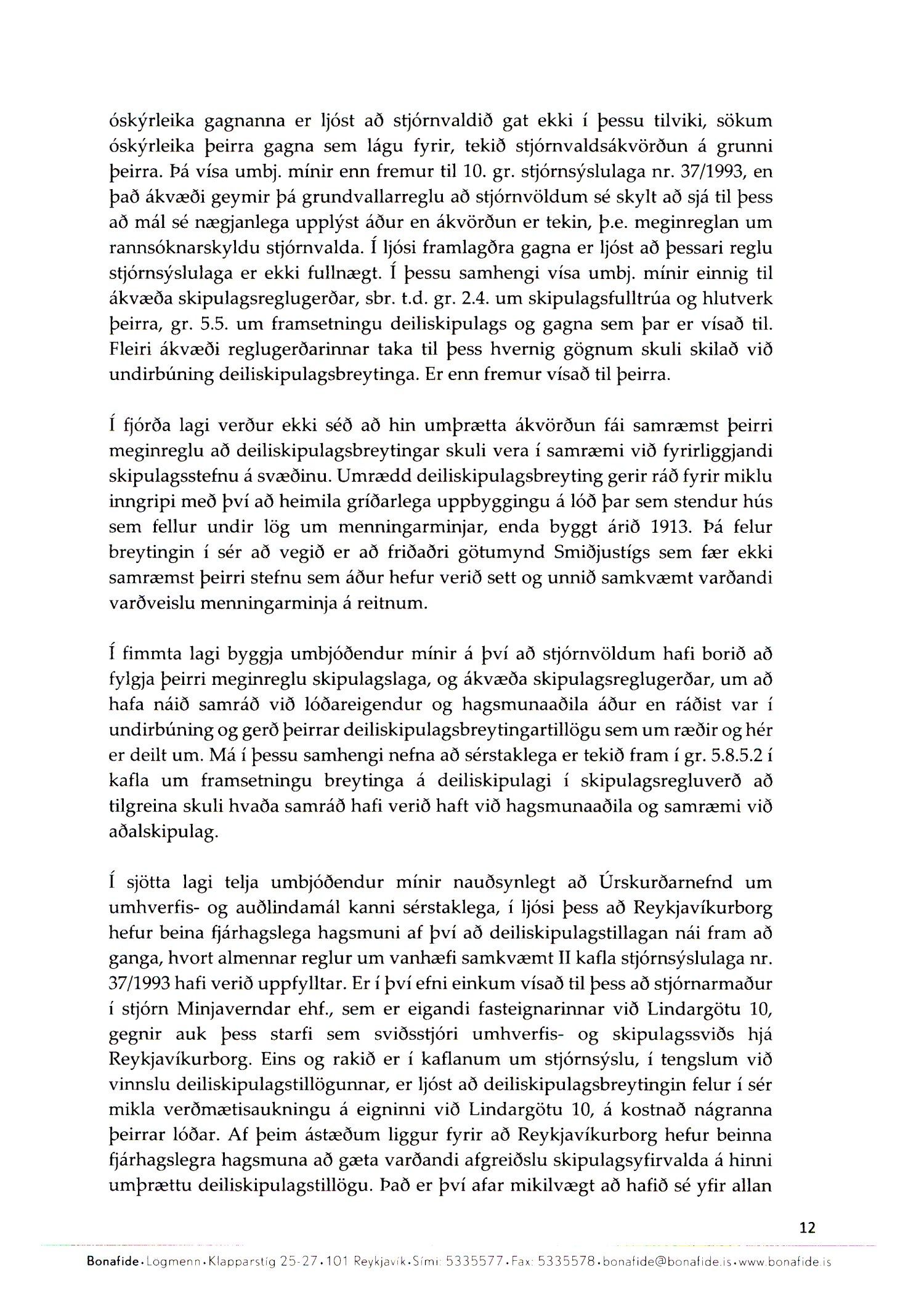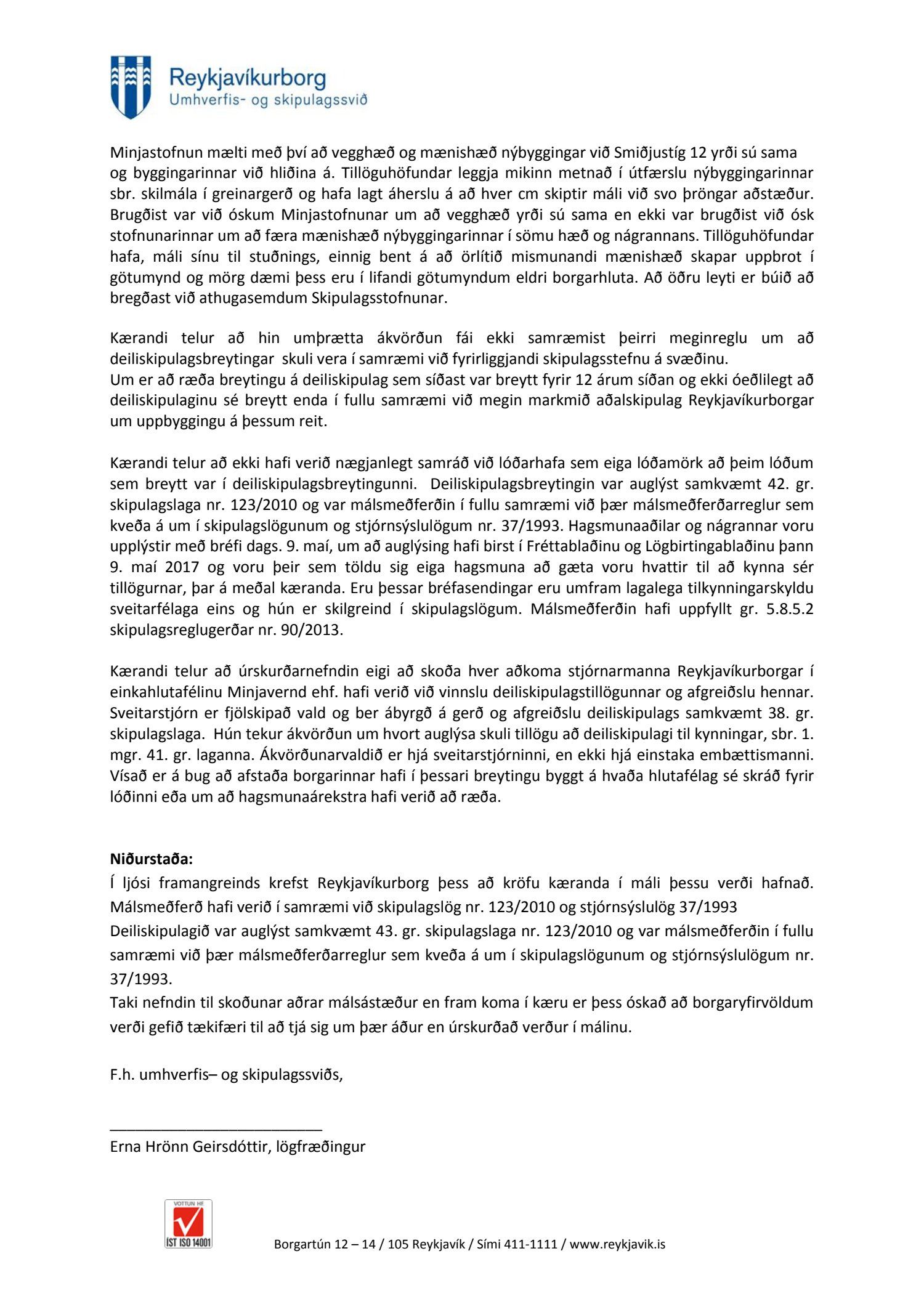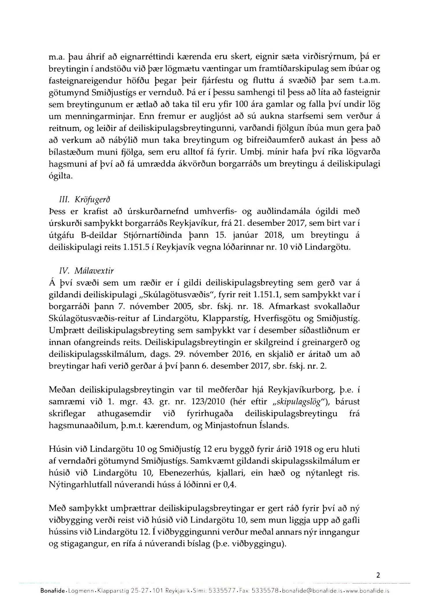 Lagt fram erindi frá úrskurðarnefnd umhverfis- og auðlindamála dags. 15. febrúar 2018 ásamt kæru dags. 14. febrúar 2018 þar sem kærð er samþykkt borgarráðs Reykjavíkur á breytingu á deiliskipulagi reits nr. 1.151.5. er varðar lóðina nr. 10 við Lindargötu. Einnig er lögð fram umsögn skrifstofu sviðsstjóra dags. 11. maí 2018. Jafnframt er lagður fram úrskurður úrskurðarnefndar umhverfis- og auðlindamála frá 9. maí 2019. Úrskurðarorð: Hafnað er kröfu kærenda um ógildingu á ákvörðun borgarráðs Reykjavíkur frá 21. desember 2017 um breytingu á deiliskipulagi Skúlagötusvæðis vegna staðgreinireits 1.151.5 fyrir lóðina nr. 10 við Lindargötu.