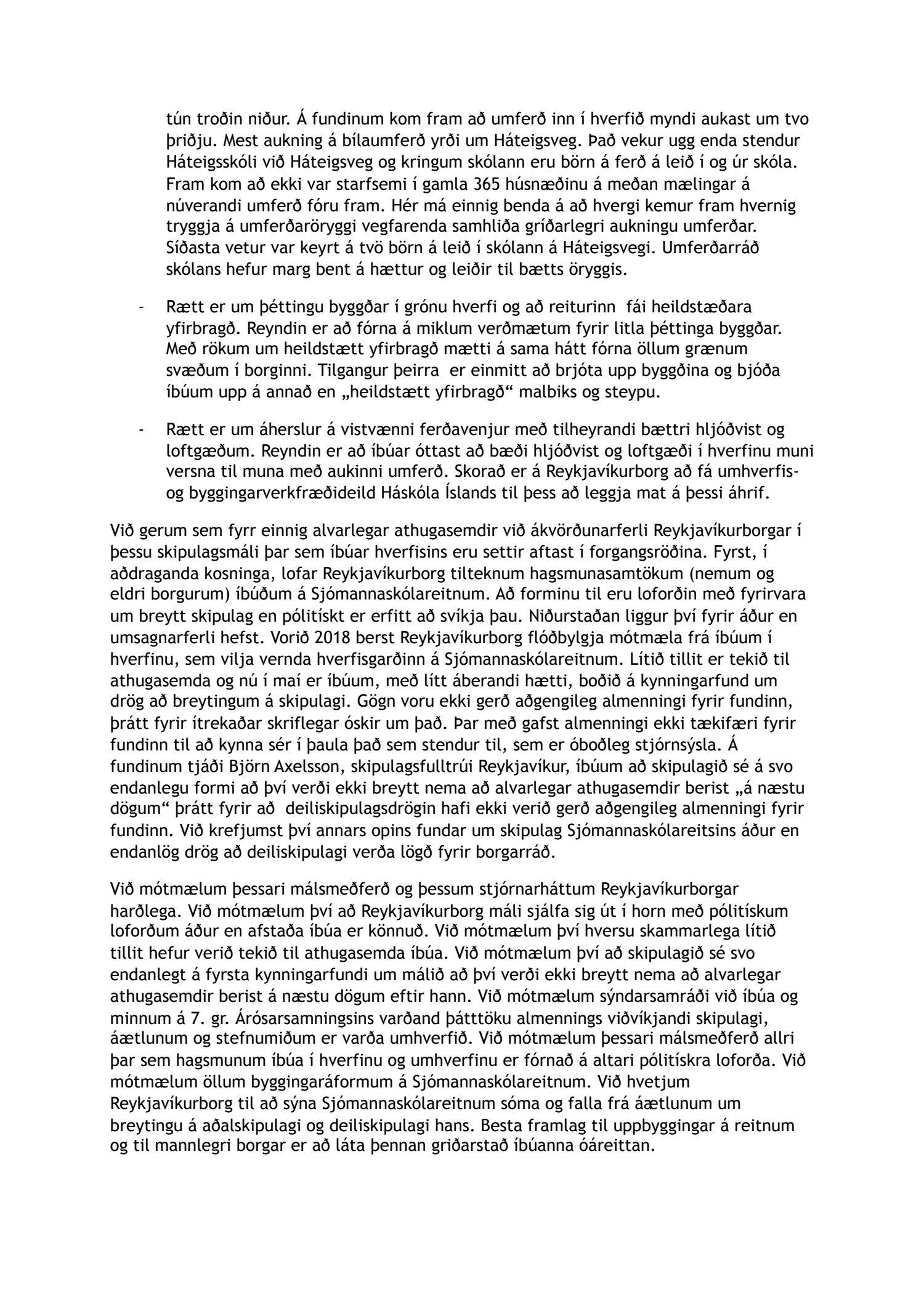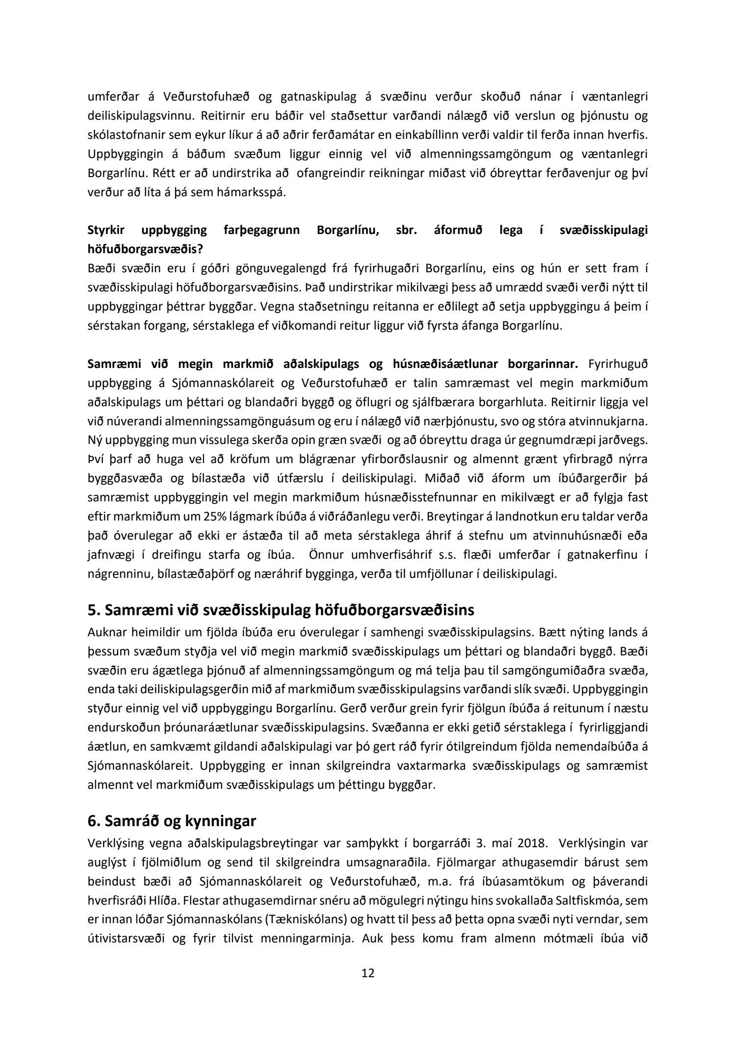 Reykjavíkurborg og ríkið gerðu nýverið með sér samkomulag um endurskipulagningu svæða sem hafa verið á forsjá ríkisins með það að markmiði að fjölga íbúðum, þá sérstaklega fyrir ungt fólk, námsmenn, fyrstu kaupendur og aldraða. Sjómannaskólareiturinn er eitt þessara svæða. Við vinnslu deiliskipulags fyrir reitinn hefur verið tekið mið af þeim athugasemdum sem borist hafa. Breytingar fela m.a. í sér að vatnsgeymar og stakkstæði eru fest í sessi sem græn svæði sem njóta hverfisverndar. Haft hefur verið að leiðarljósi að nýbyggingar falli vel að núverandi byggð og hefur byggingamagn verið minnkað frá fyrri tillögu í samræmi við athugasemdir nágranna. Hæð húsa verður enn fremur einungis um 2-4 hæðir og mun Sjómannaskólinn því áfram njóta sín sem hæsta bygging svæðisins. Nýtingarhlutfall (byggingarmagn á flatarmál lands) á reitnum verður áfram talsvert lægra en á nálægum reitum, svosem reitir með íbúabyggð við Vatnsholt, Háteigsveg, Skipholt og Rauðarárholt. Lega svæðisins er hagstæð hvað varðar virka ferðamáta. Borgarlína verður í göngufjarlægð auk deilibílaþjónustu og þétts nets hjólastíga.