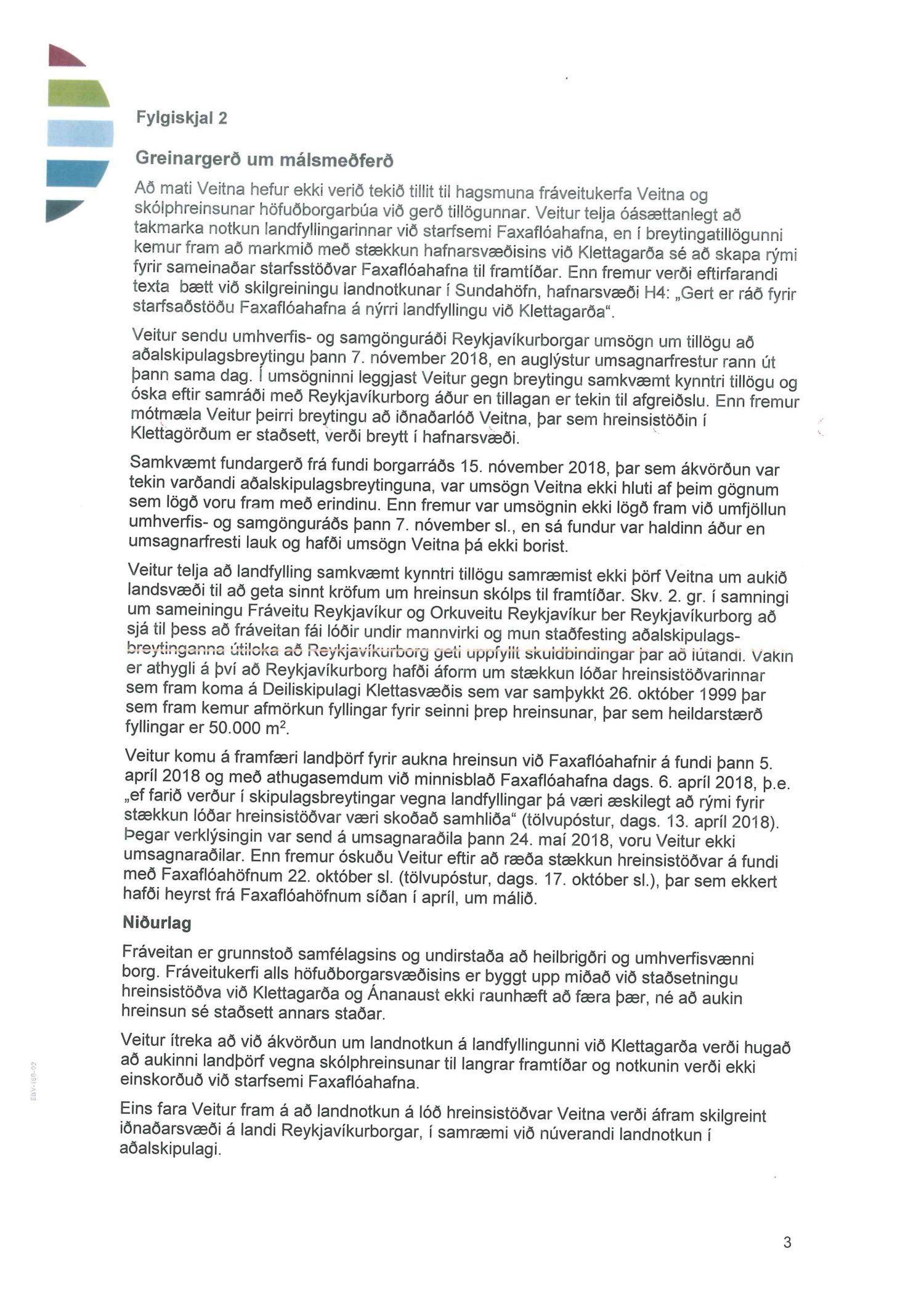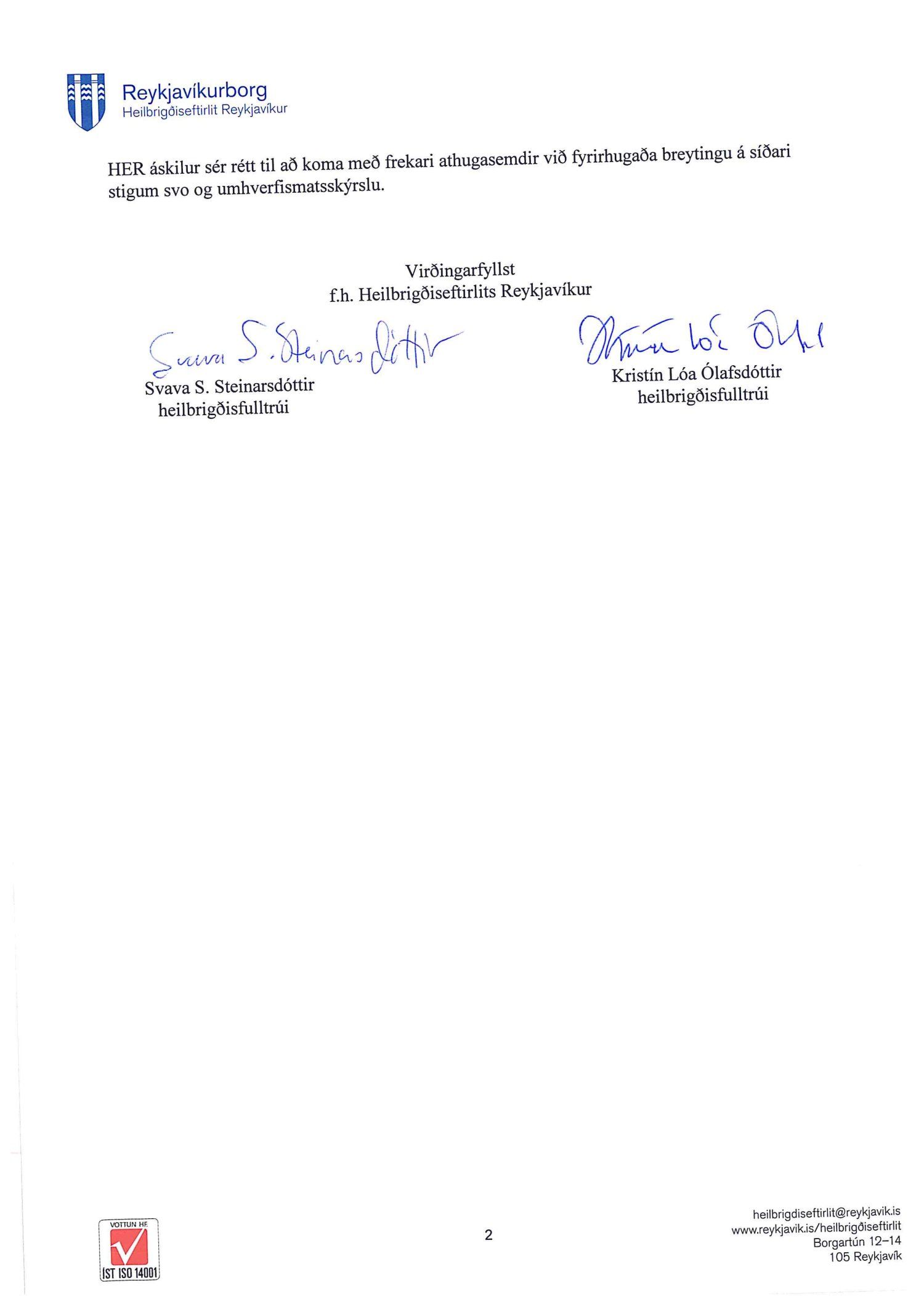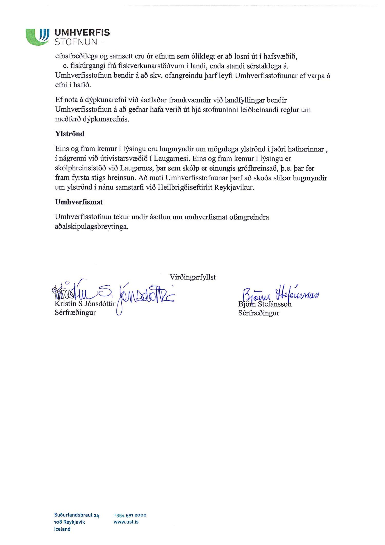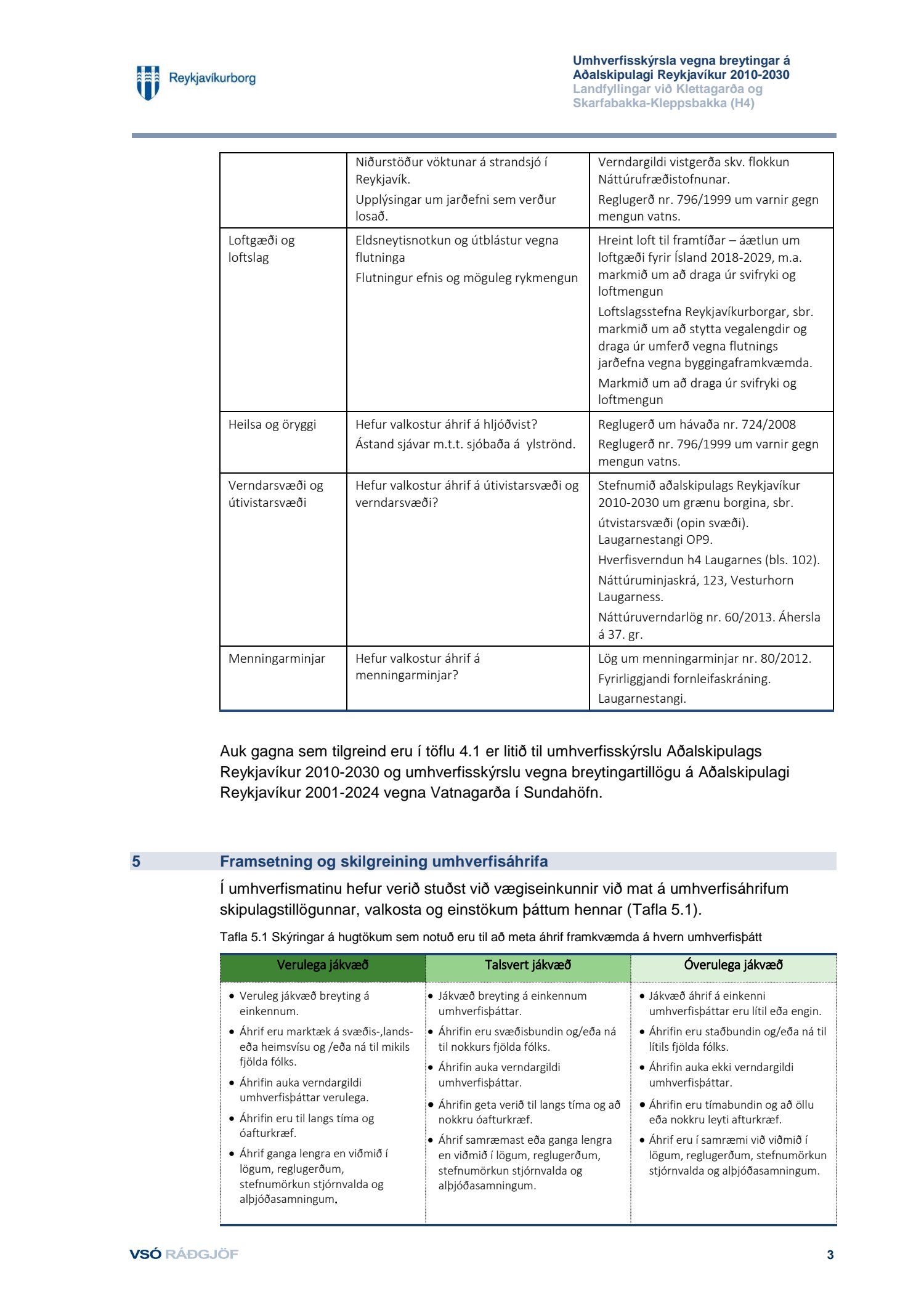 dags. 1. febrúar 2019 og Umhverfisstofnun dags. 31. janúar 2019. Einnig er lögð fram tillaga umhverfis- og skipulagssviðs dags 18. febrúar 2019, umhverfisskýrsla VSÓ ráðgjafar dags. í september 2018 síðast uppf. 14. febrúar 2019 og umsögn umhverfis- og skipulagssviðs, deildarstjóra aðalskipulags Reykjavíkur, dags. 18. febrúar 2019.