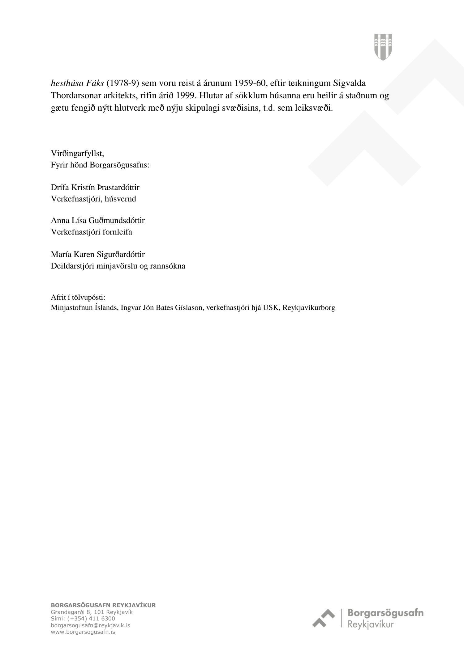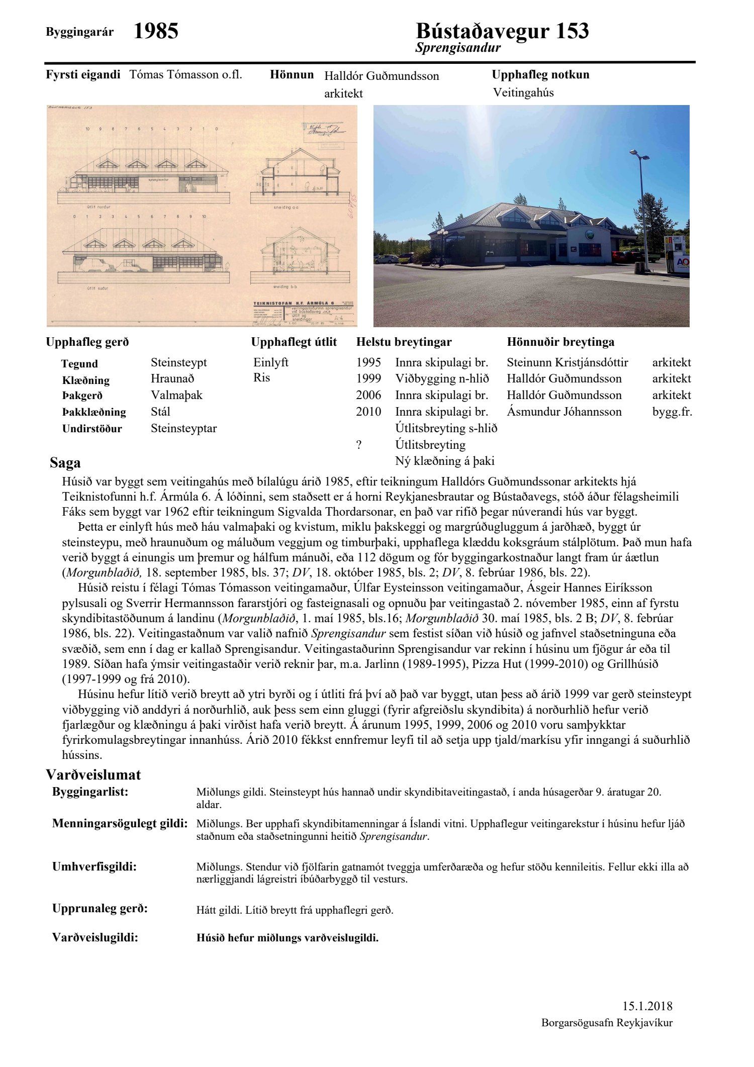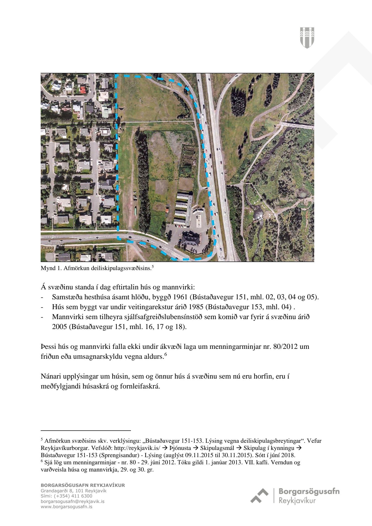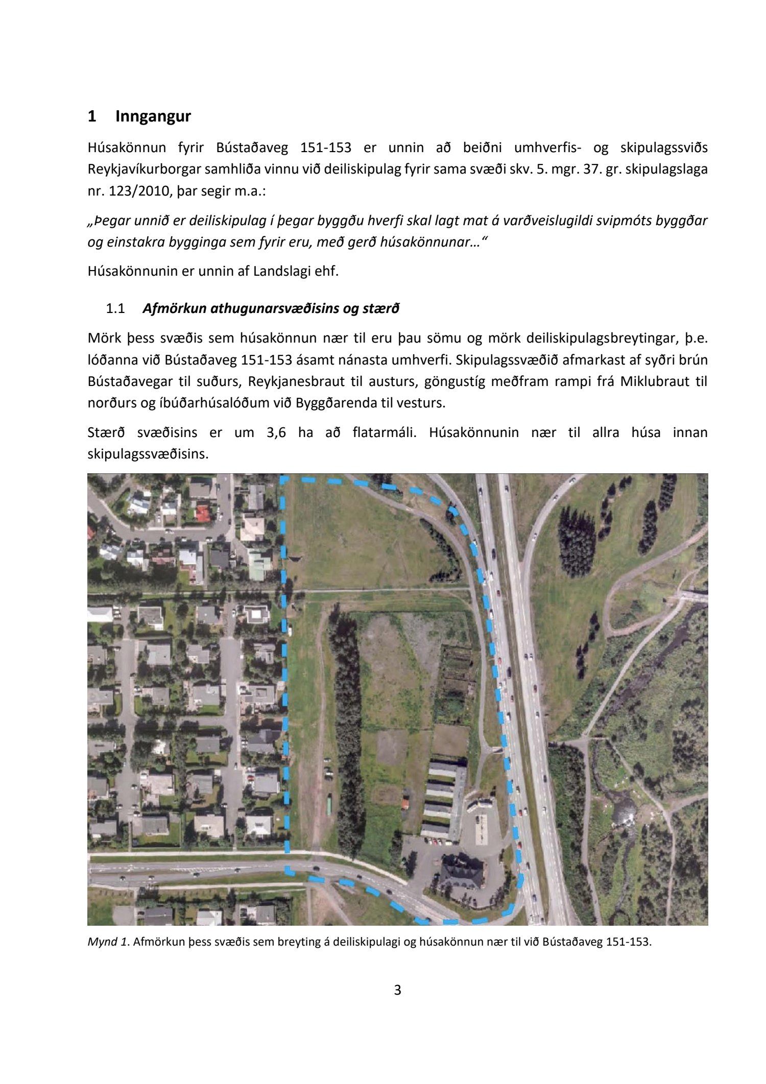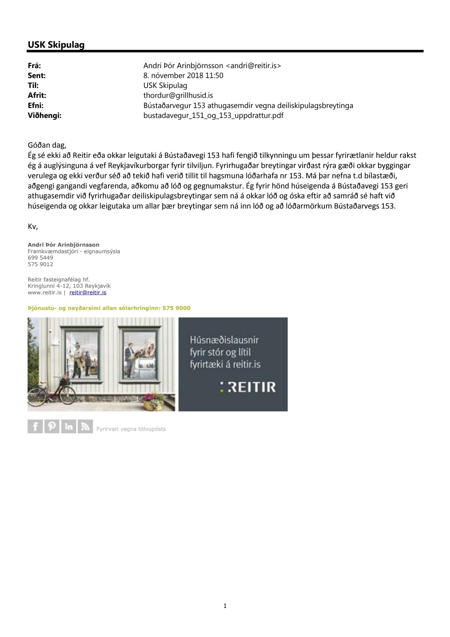 dags. 1. október 2018, br. 18. janúar 2019. Vegna aðkomu frá Bústaðavegi breyttist útfærsla Bústaðavegar og var m.a. gert ráð fyrir umferðareyjum til að stýra umferð og bæta umferðaflæði um fyrirhuguð gatnamót. Einnig er lögð fram húsakönnun Landslags dags. 15. maí 2018, umsögn Borgarsögusafns Reykjavíkur dags. 30. maí 2018, bréf Minjastofnunar Íslands dags. 5. júní 2018 og bréf Vegagerðarinnar dags. 28. september 2018. Einnig eru lögð fram Húsaskrá og varðveislumat Formleifaskrá Borgarsögusafni dags. 28. september 2018. Tillagan var auglýst frá 22. október 2018 til og með 3. desember 2018. Eftirtaldir aðilar sendu athugasemdir: Andri Þór Arinbjörnsson f.h. Reita - verslun ehf. dags. 8. nóvember 2018. Einnig er lögð fram umsögn skipulagsfulltrúa dags. 21. janúar 2019.
