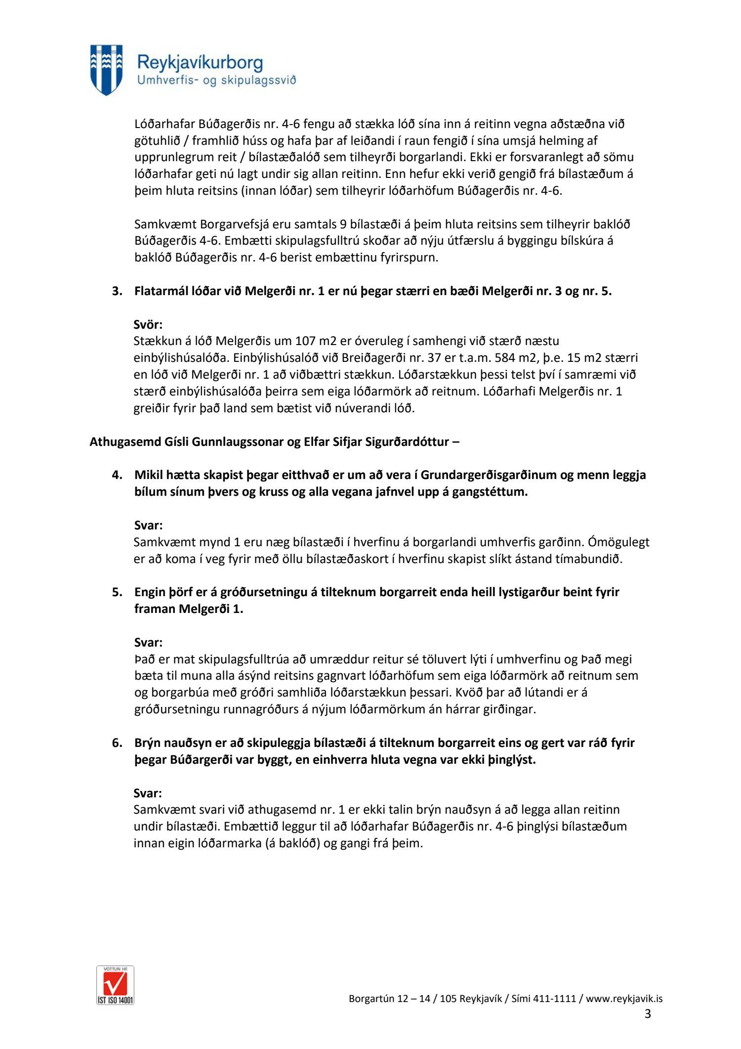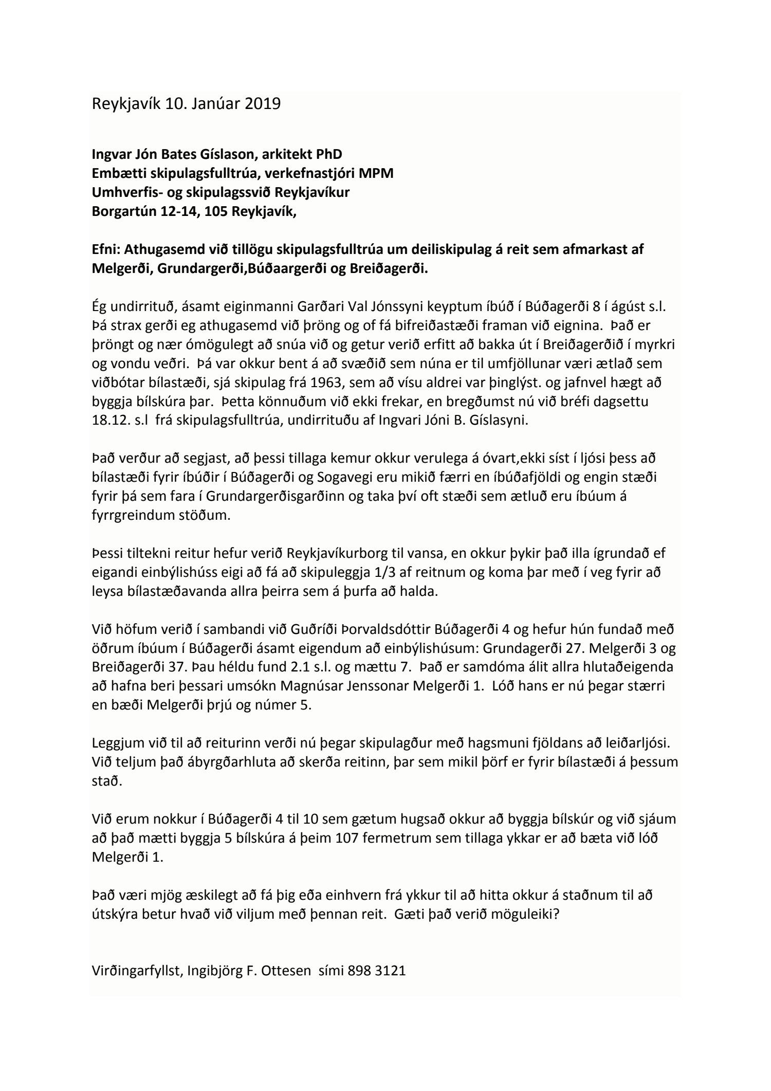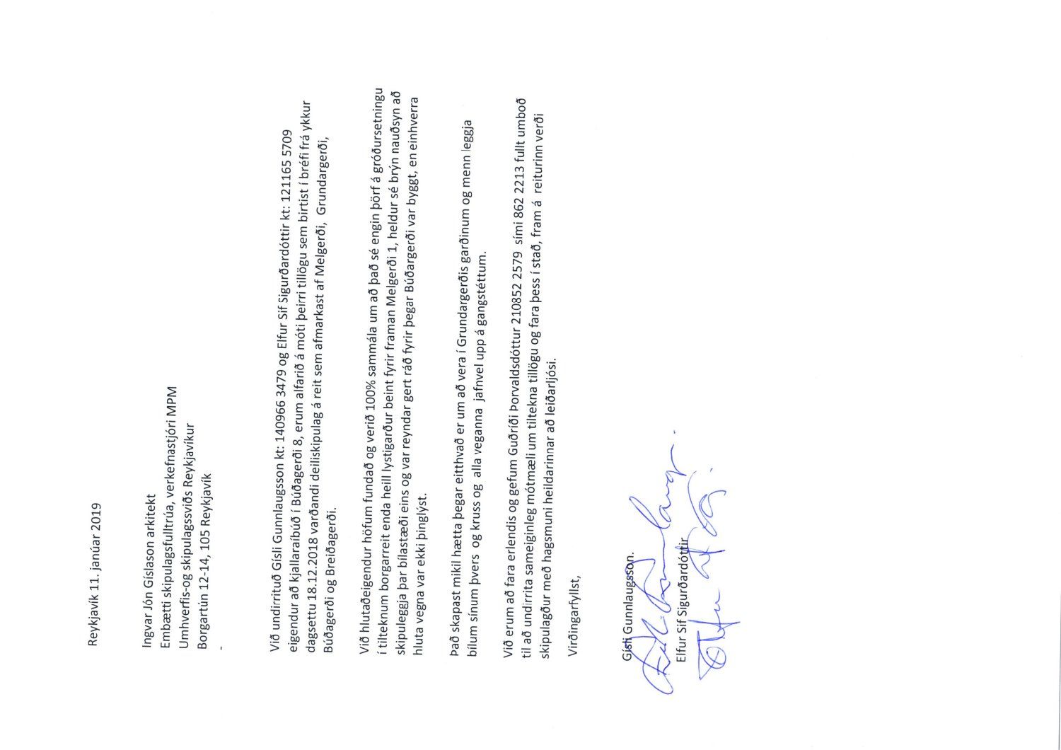 Að lokinni grenndarkynningu er lögð fram að nýju umsókn Magnúsar Jenssonar dags. 21. maí 2018 ásamt tillögu að breyttum lóðarmörkum Melgerði 1. Í tillögunni felst stækkun lóðarinnar nr. 1 við Melgerði til norðausturs yfir borgarland, samkvæmt uppdr. Magnúsar Jenssonar dags. 21. maí 2018, leiðr. 7.desember 2018. Tillagan var grenndarkynnt frá 21. desember 2018 til og með 21. janúar 2019. Eftirtaldir sendu athugasemdir: Ingibjörg F. Ottesen dags. 10. janúar 2019, Gísli Gunnlaugsson og Elfur Sif Sigurðardóttir dags. 11. janúar 2019, Guðríður Þorvaldsdóttir dags. 15. janúar 2019 og 21 aðili að Búðagerði dags. 15. janúar 2019. Einnig er lögð fram umsögn skipulagsfulltrúa dags. 18. mars 2019.