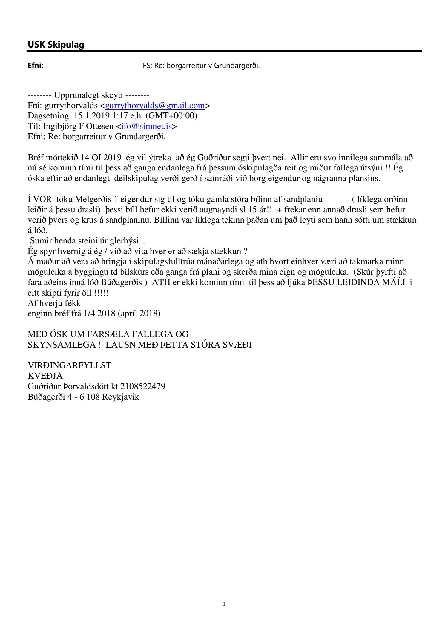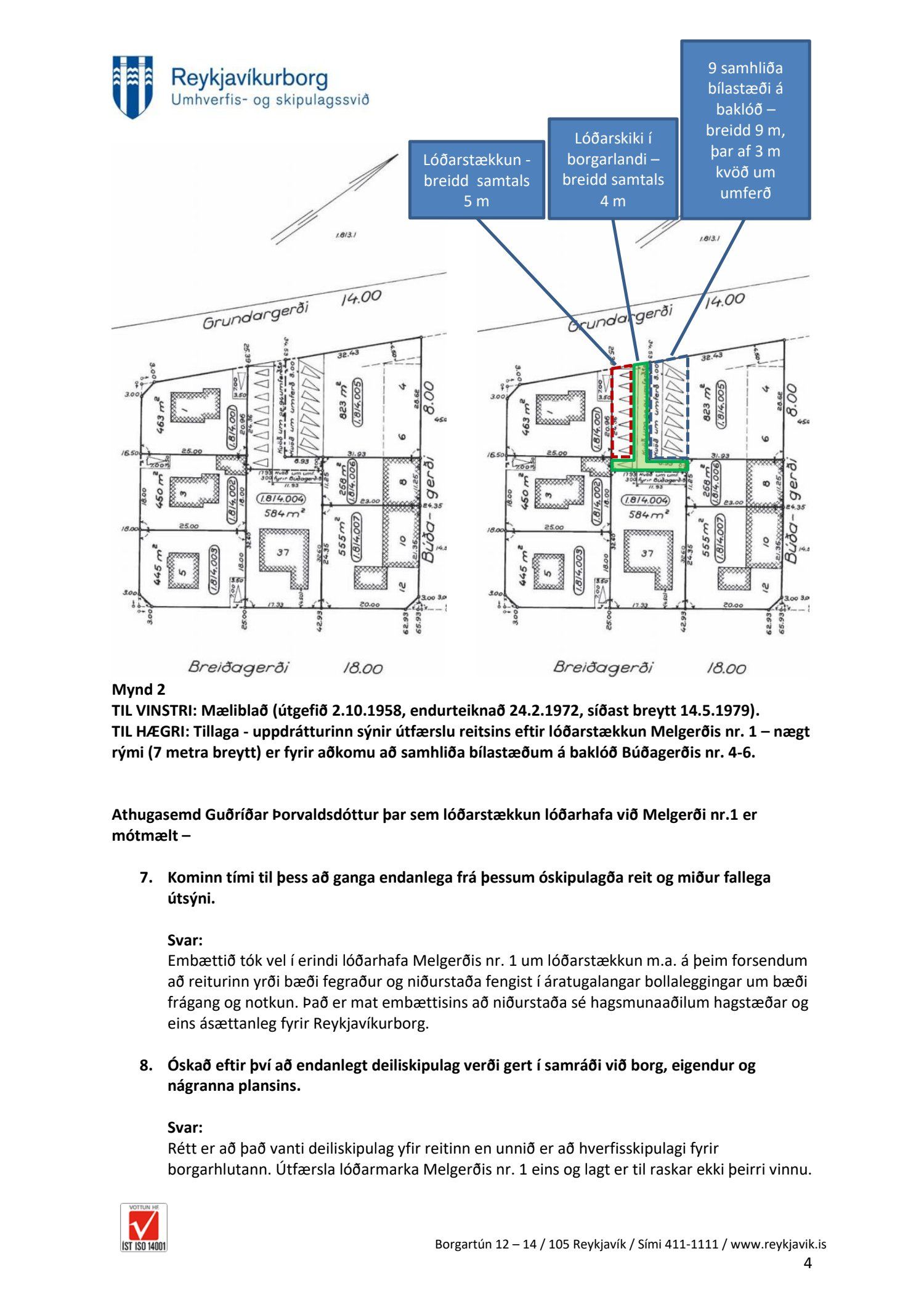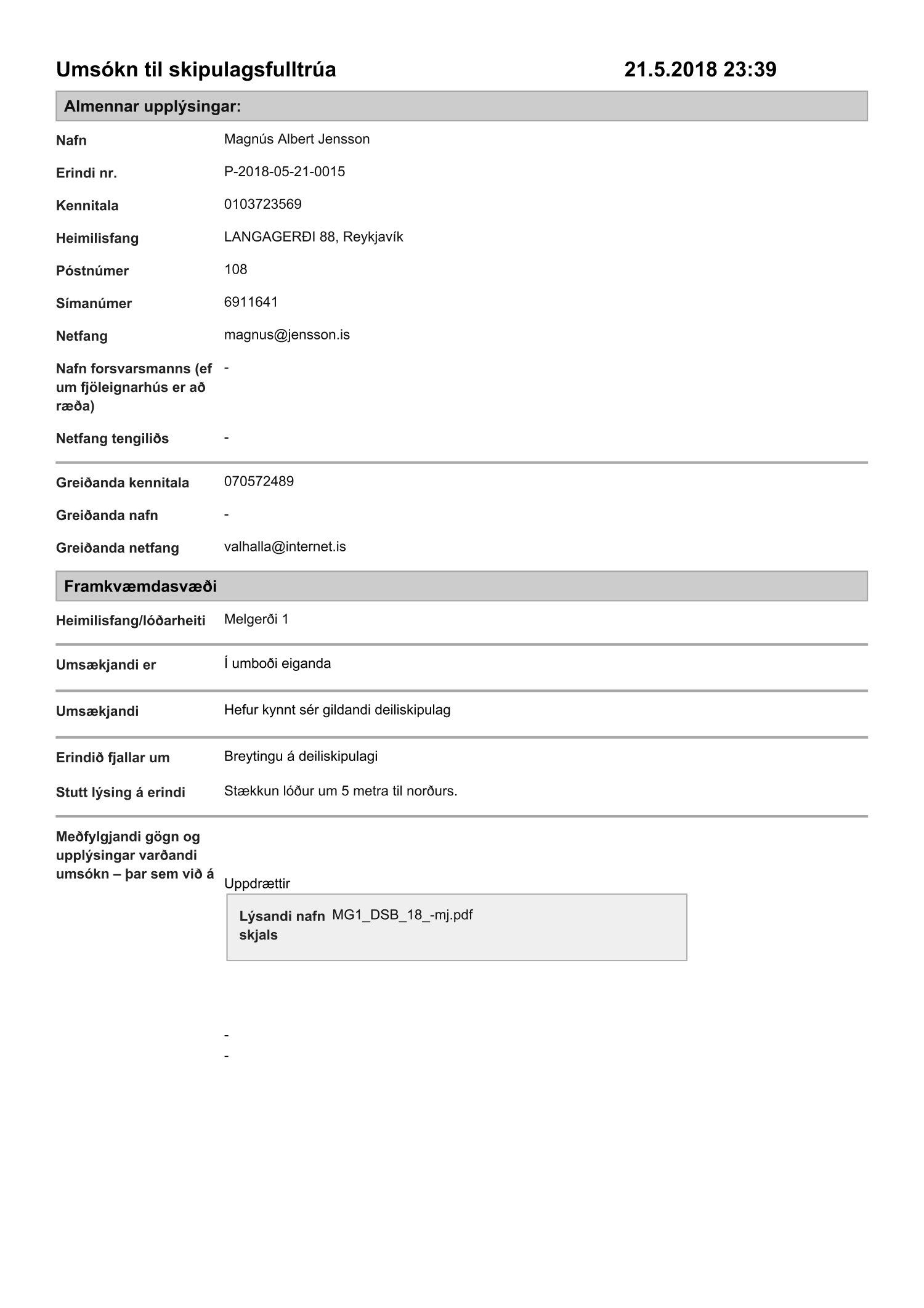 Að lokinni grenndarkynningu er lögð fram að nýju umsókn Magnúsar Jenssonar dags. 21. maí 2018 ásamt tillögu að breyttum lóðarmörkum Melgerði 1. Í tillögunni felst stækkun lóðarinnar nr. 1 við Melgerði til norðausturs yfir borgarland, samkvæmt uppdr. Magnúsar Jenssonar dags. 21. maí 2018, leiðr. 7.desember 2018. Tillagan var grenndarkynnt frá 21. desember 2018 til og með 21. janúar 2019. Eftirtaldir sendu athugasemdir: Ingibjörg F. Ottesen dags. 10. janúar 2019, Gísli Gunnlaugsson og Elfur Sif Sigurðardóttir dags. 11. janúar 2019, Guðríður Þorvaldsdóttir dags. 15. janúar 2019 og 21 aðili að Búðagerði dags. 15. janúar 2019. Einnig er lögð fram umsögn skipulagsfulltrúa dags. 18. mars 2019.