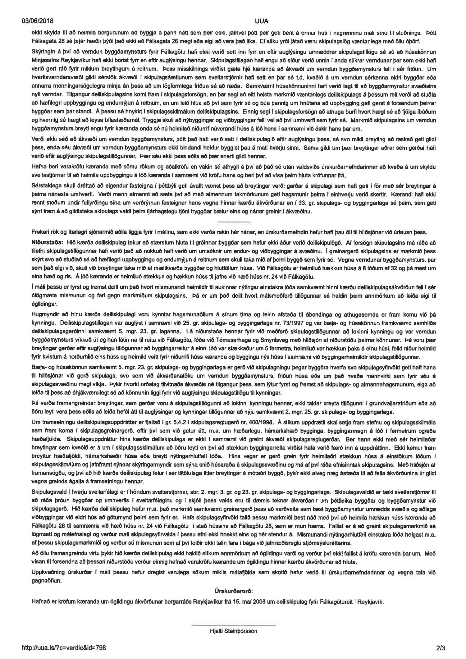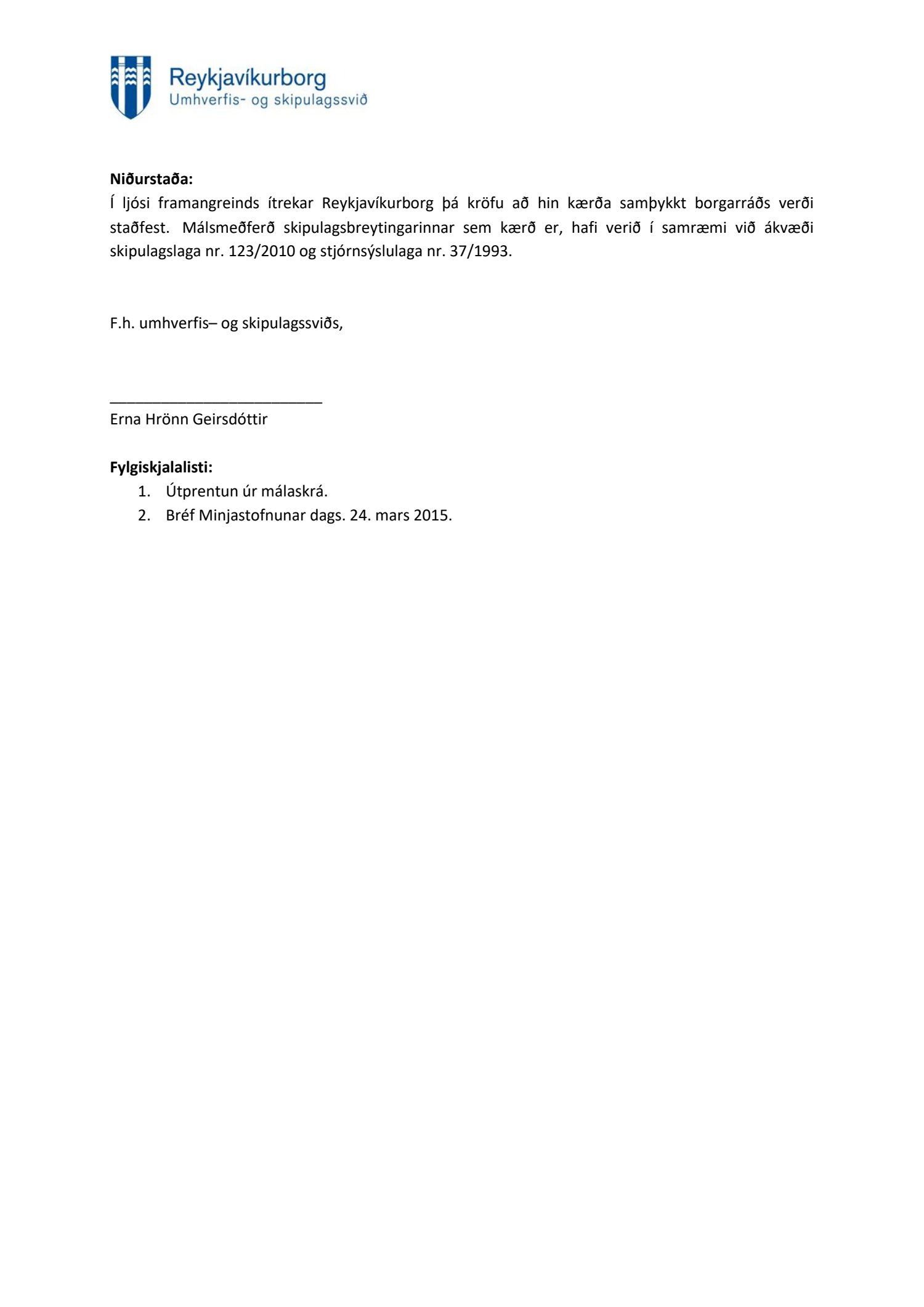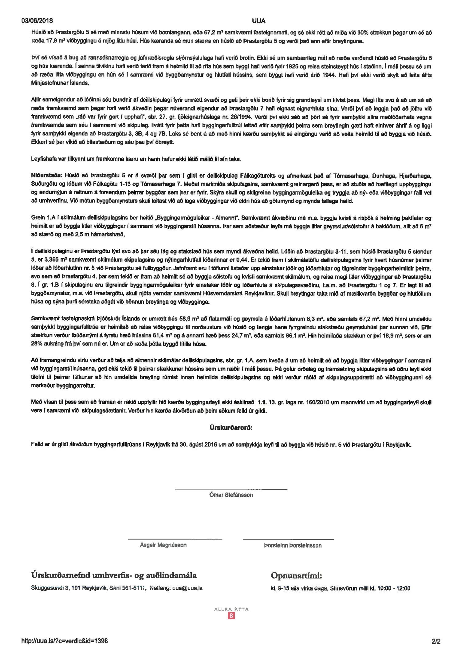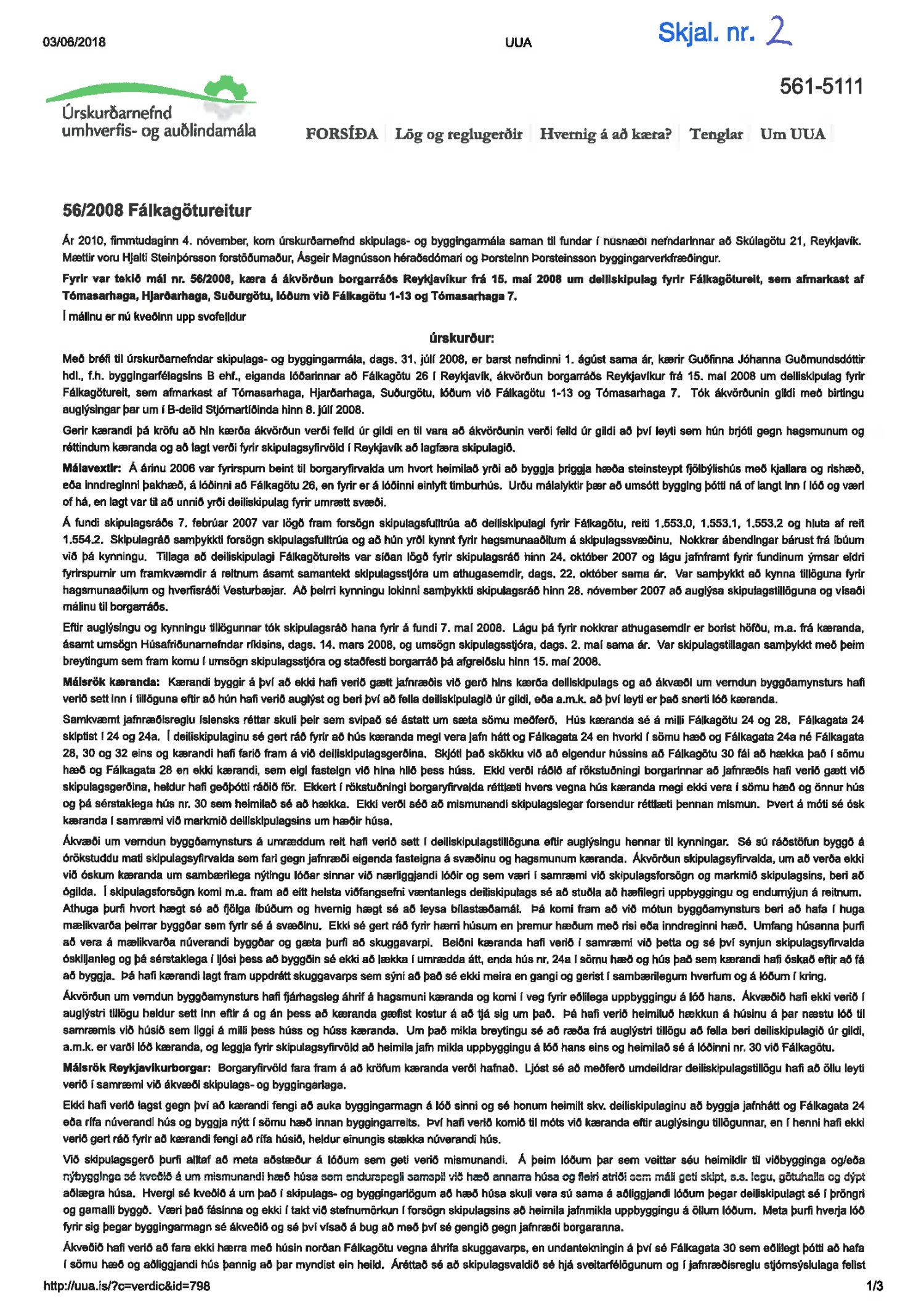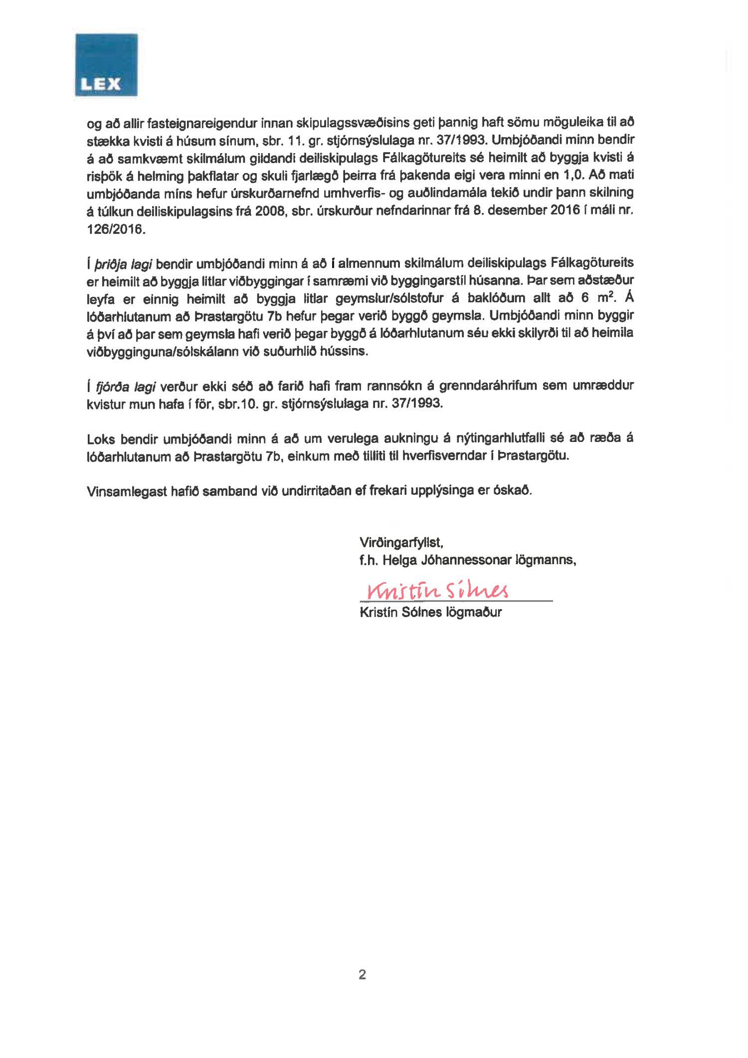 Lagt fram erindi úrskurðarnefndar umhverfis- og auðlindamála dags. 14. júní 2018 ásamt kæru dags. 14. júní 2018 þar sem kærð er samþykkt umhverfis- og skipulagsráðs frá 16. maí 2018 á breytingu á skilmálum deiliskipulags Fálkagötureist vegna lóðar nr. 7b við Þrastargötu. Einnig er lögð fram umsögn skrifstofu sviðsstjóra dags. 7. júlí 2018. Jafnframt er lagður fram úrskurður úrskurðarnefndar umhverfis- og auðlindamála frá 9. maí 2019.