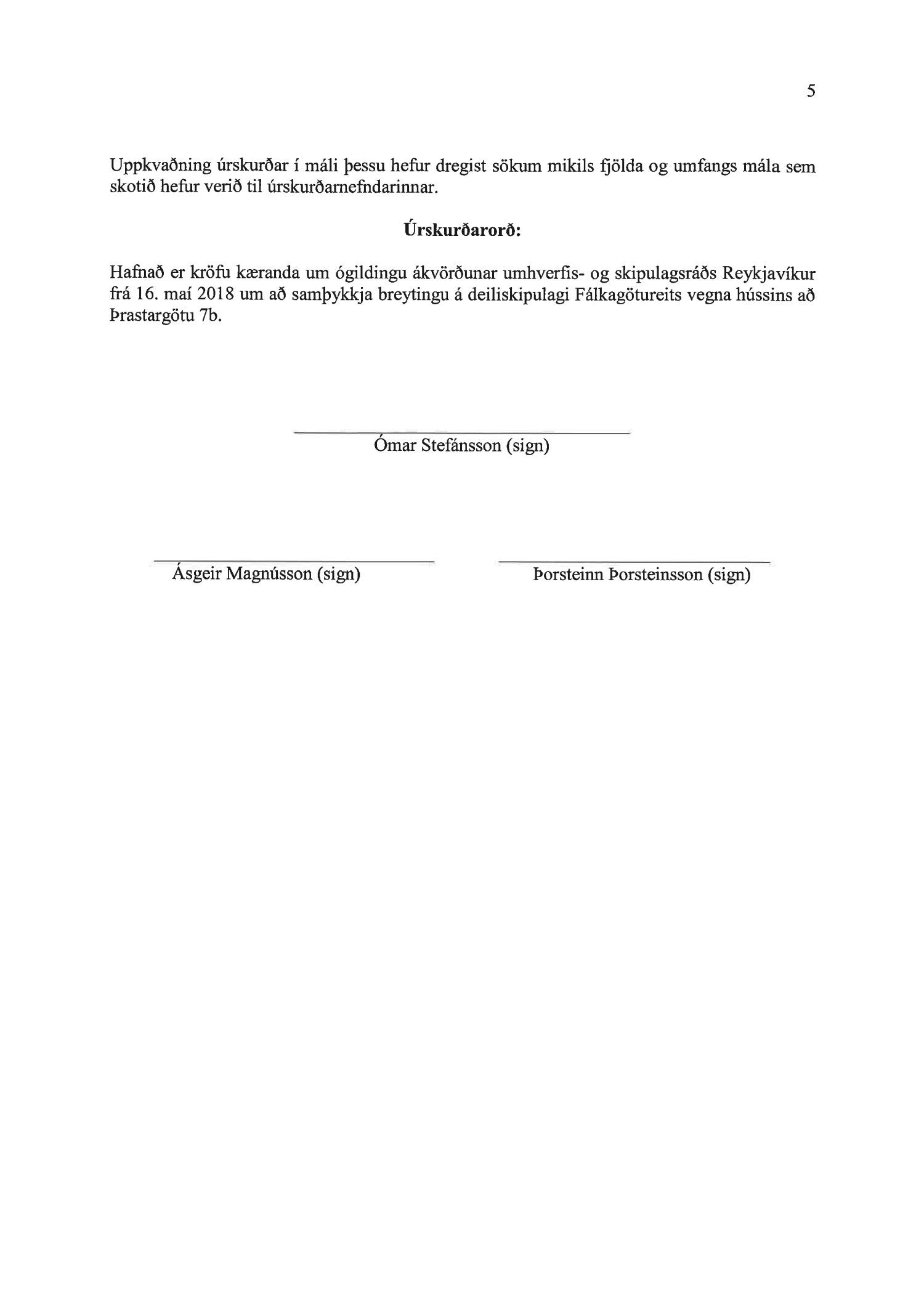 Úrskurðarorð: Hafnað er kröfu kæranda um ógildingu ákvörðunar umhverfis- og skipulagsráðs Reykjavíkur frá 16. maí 2018 um að samþykkja breytingu á deiliskipulagi Fálkagötureits vegna hússins að Þrastargötu 7b