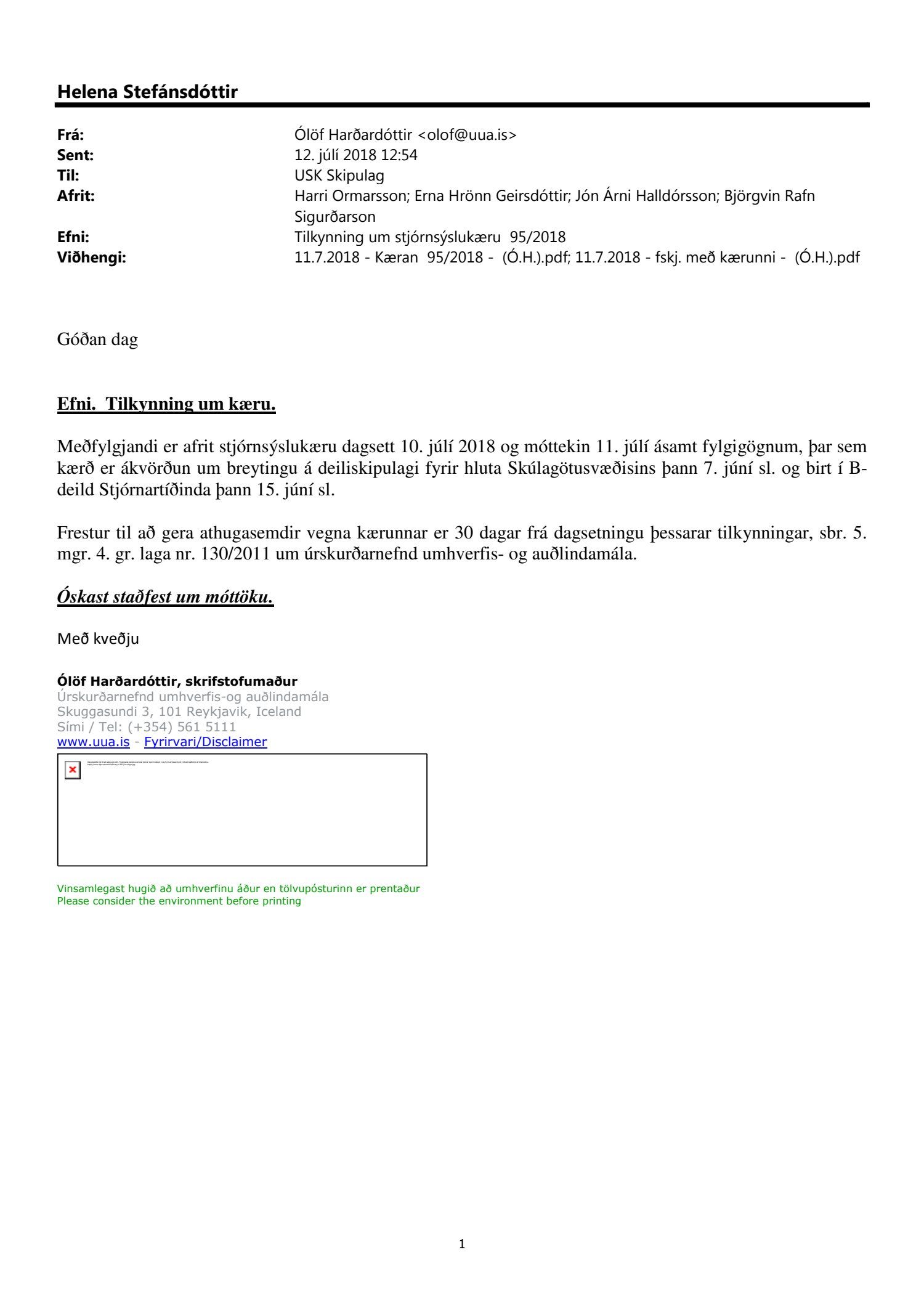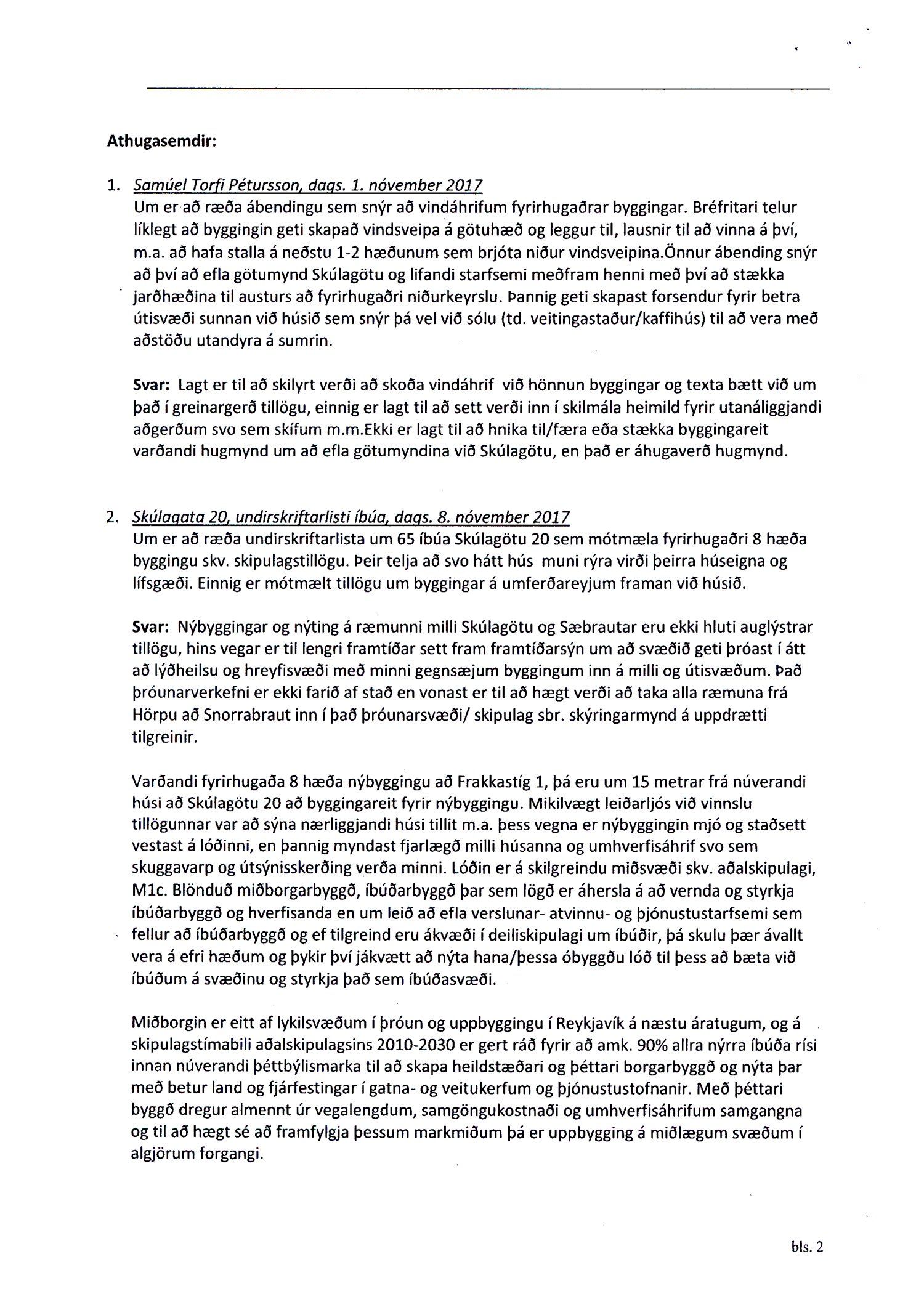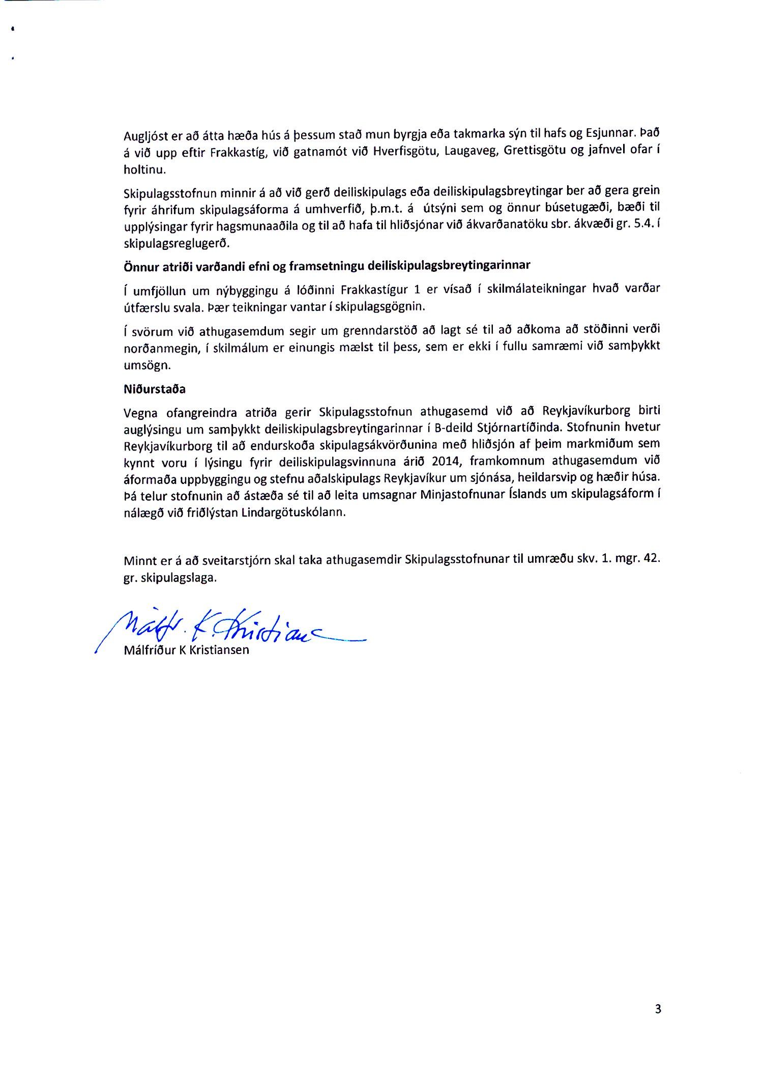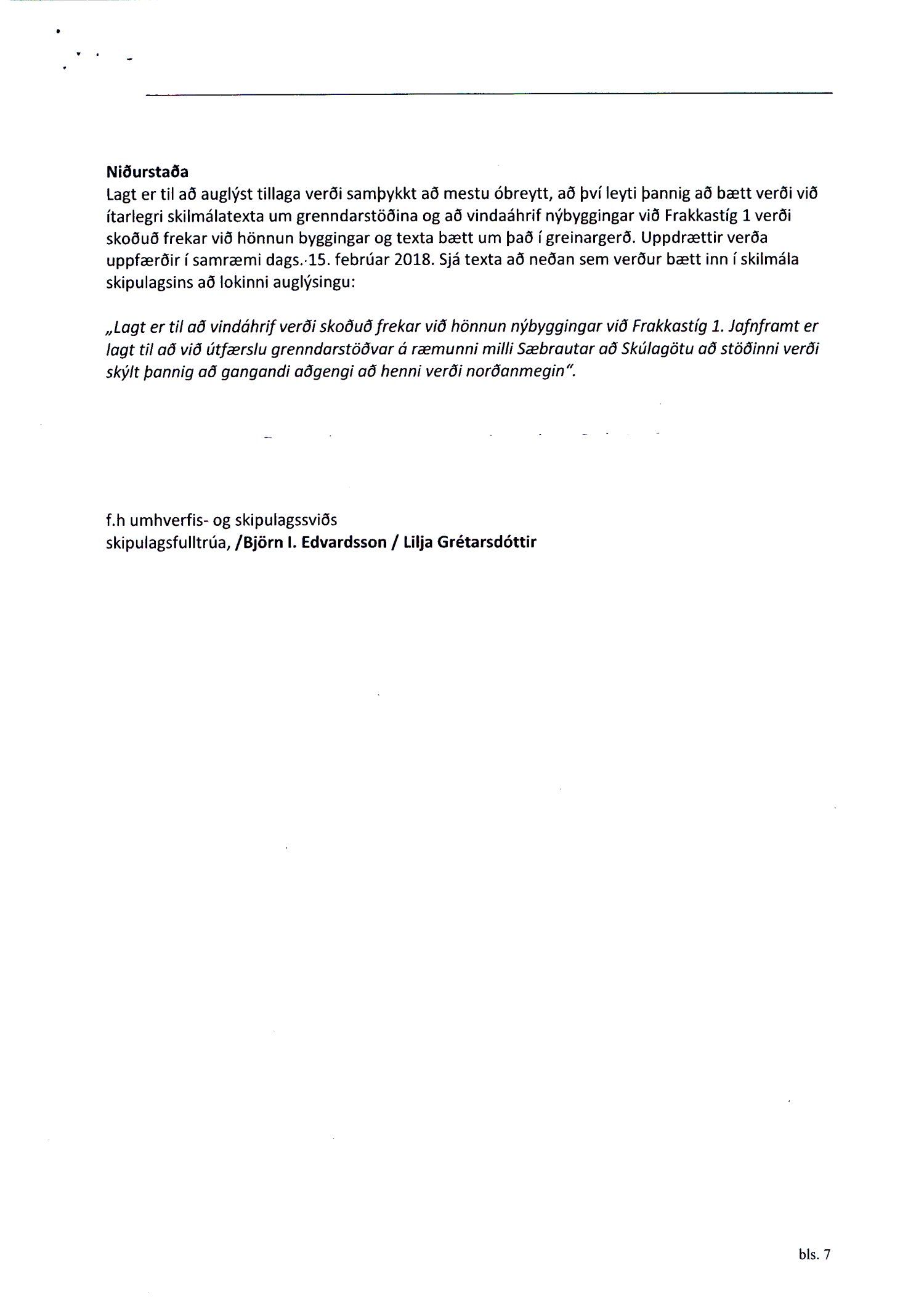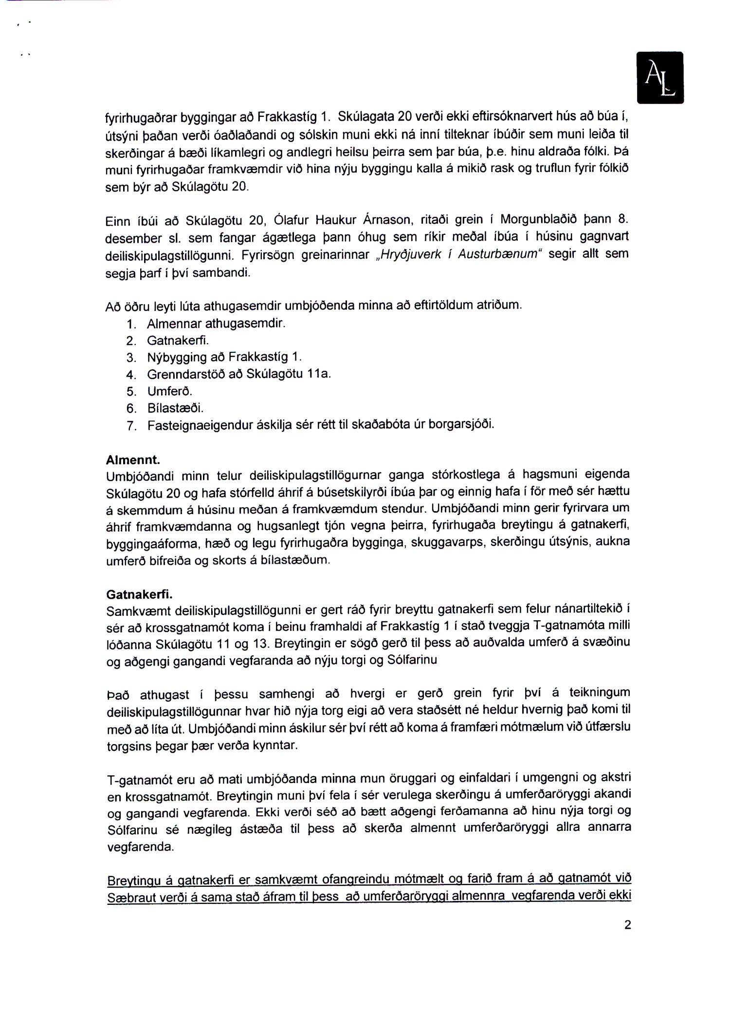 Lagt fram erindi úrskurðarnefndar umhverfis- og auðlindamála dags. 12. júlí 2018 ásamt kæru dags. 10. júlí 2018 þar sem kærð er ákvörðun um breytingu á deiliskipulagi fyrir hluta Skúlagötusvæðis, auglýst í B-deild Stjórnartíðinda 15. júní 2018. Einnig er lögð fram umsögn skipulagsfulltrúa dags. 30. ágúst 2018. Jafnframt er lagður fram úrskurður úrskurðarnefndar umhverfis- og auðlindamála frá 19. júlí 2019. Úrskurðarorð: Felld er úr gildi ákvörðun borgarráðs Reykjavíkurborgar frá 7. júní 2018 um að samþykkja breytingu á deiliskipulagi fyrir hluta Skúlagötusvæðis, að því er varðar fyrirhugaða byggingu að Frakkastíg 1.