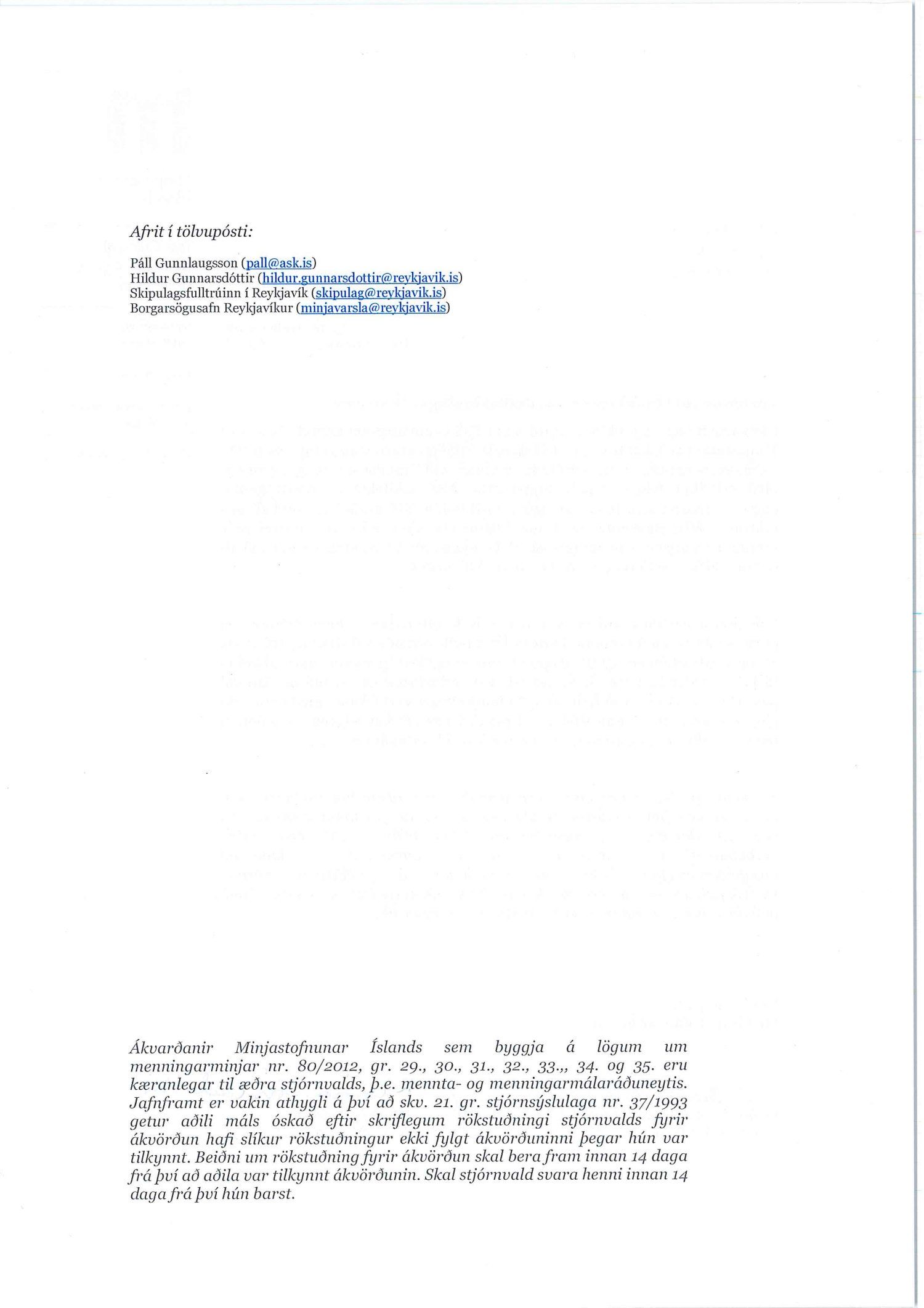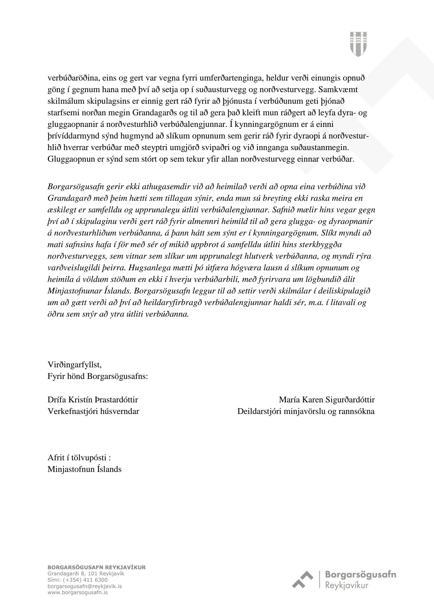dags. 18. ágúst 2018. Einnig er lögð fram umsögn Minjastofnunar Íslands dags. 11. september 2018 og 13. nóvember 2018. Erindinu var vísað til meðferðar hjá verkefnisstjóra og er nú lagt fram að nýju ásamt umsögn Borgarsögusafns Reykjavíkur dags. 3. desember 2018, umsögn samgöngustjóra dags. 18. desember 2018 og umsögn Minjastofnunar Íslands dags. 18. desember 2018. Einnig er lögð fram umsögn skipulagsfulltrúa dags. 4. janúar 2019.