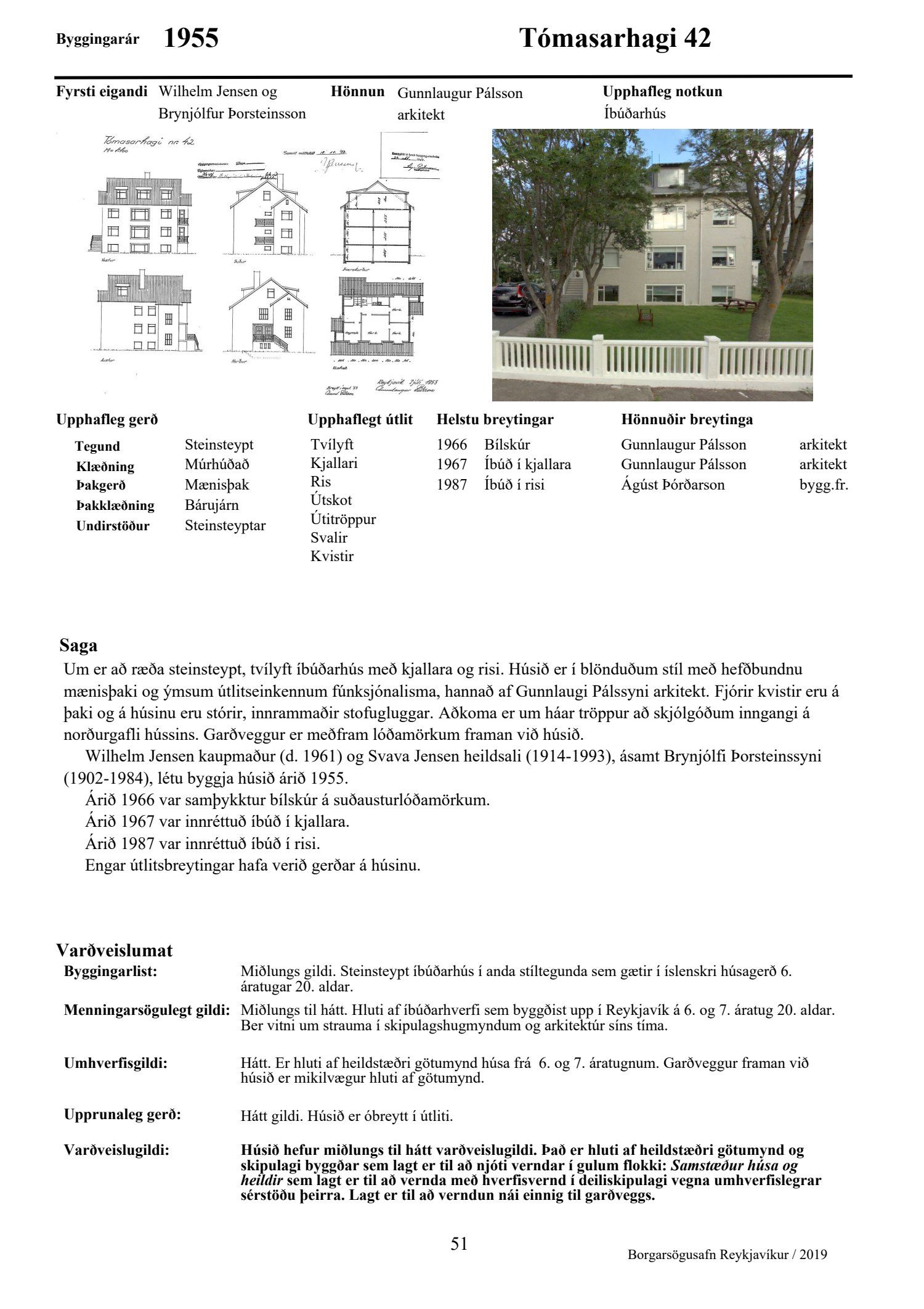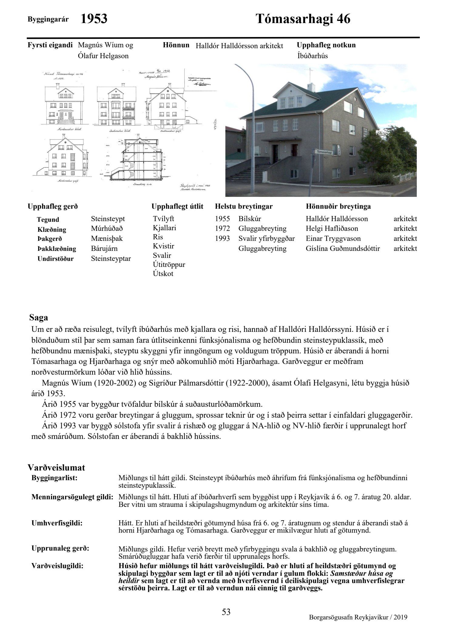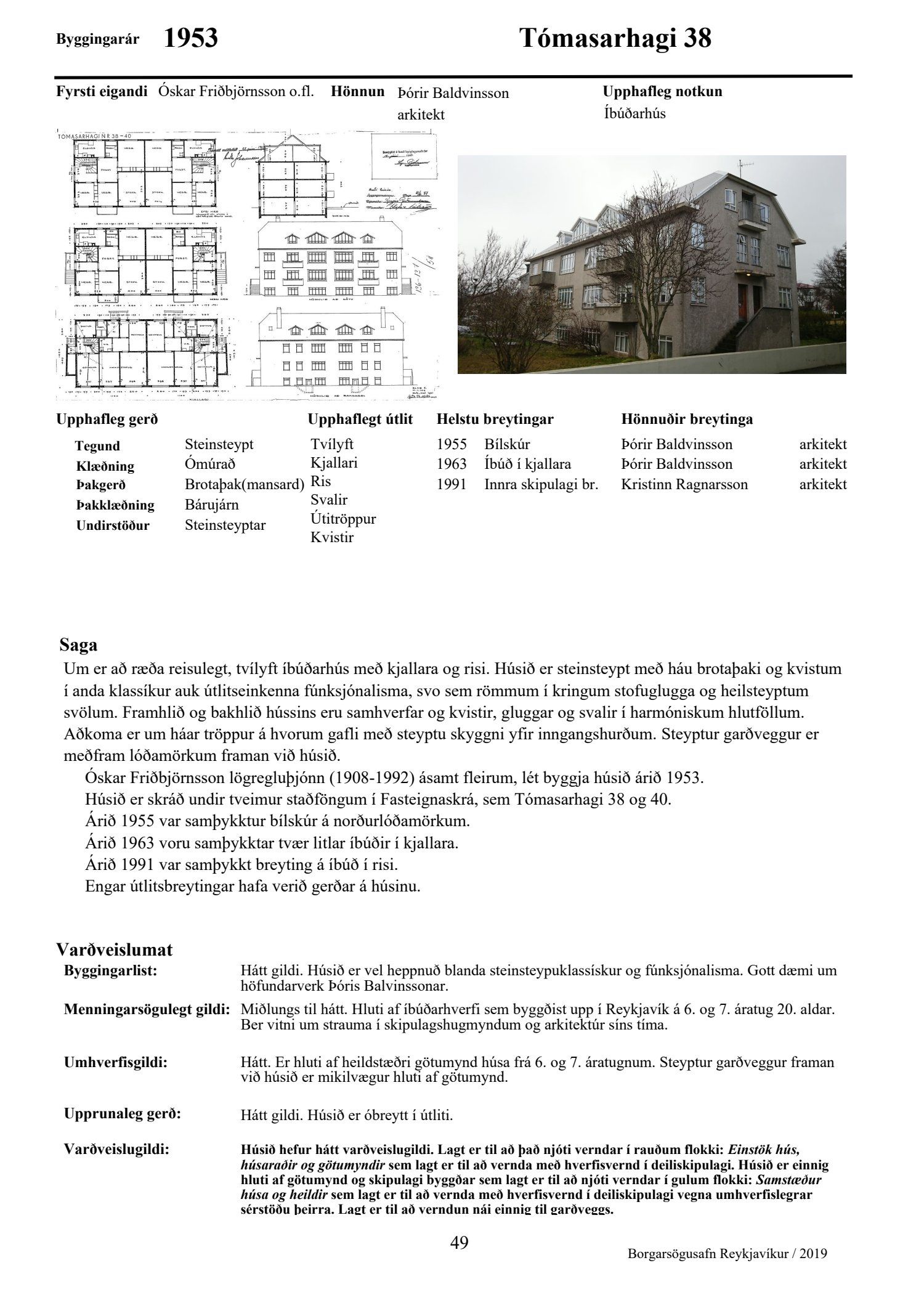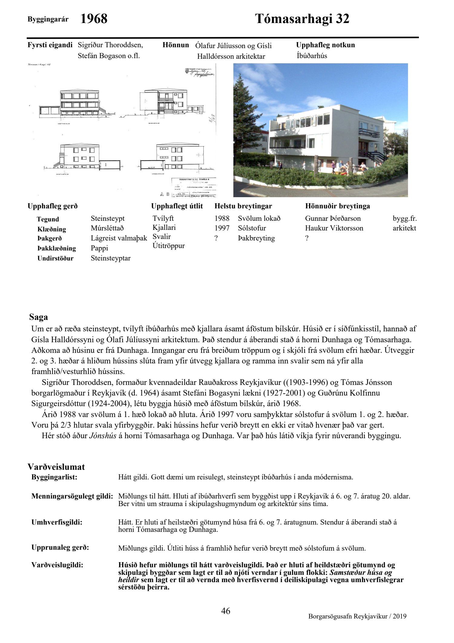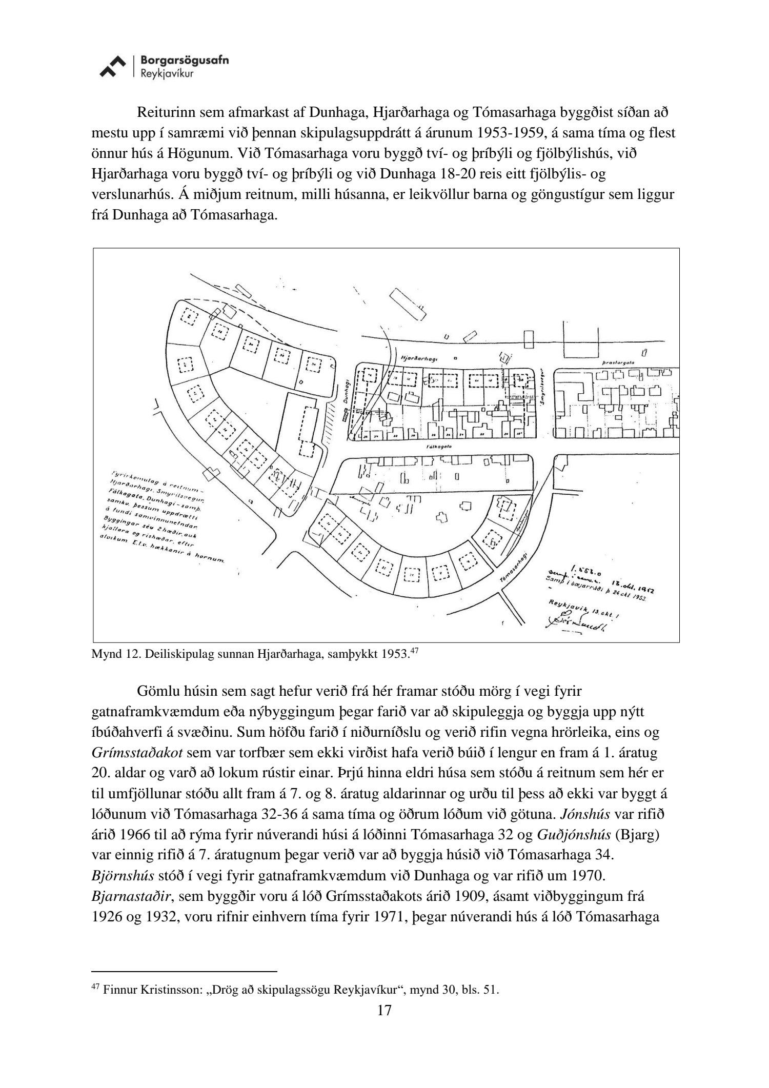 dags. 1. október 2018, leiðr. 8. febrúar 2019. Jafnframt er lögð fram drög að húsakönnun Borgarsögusafns Reykjavíkur. Tillagan var auglýst frá 26. febrúar 2019 til og með 9. apríl 2019. Eftirtaldir aðilar sendu inn athugasemdir: Sigurður Á Þráinsson og Sólveig K Jónsdóttir, Hjarðarhaga 27, dags 1.febrúar, Athugasemdir og undirskriftir 23 aðila að Tómasarhaga 32, Arnargötu 14, Dunhaga 19,21 og 23, Fálkagötu 25, 27 og 34, dags. 7. febrúar 2019, Athugasemdir og undirskriftir 5 aðila að Tómasarhaga 32,34,35,37 og 39, Athugasemdir og undirskriftir frá íbúum og eigendum Hjarðarhaga 27, dags 7. febrúar, Áslaug Árnadóttir f.h. Árna Kolbeinssonar, Tómasarhaga 34, dags. 7. febrúar 2019, Einar Ólafsson, Tómasarhaga 32, dags. 8. febrúar 2019,
