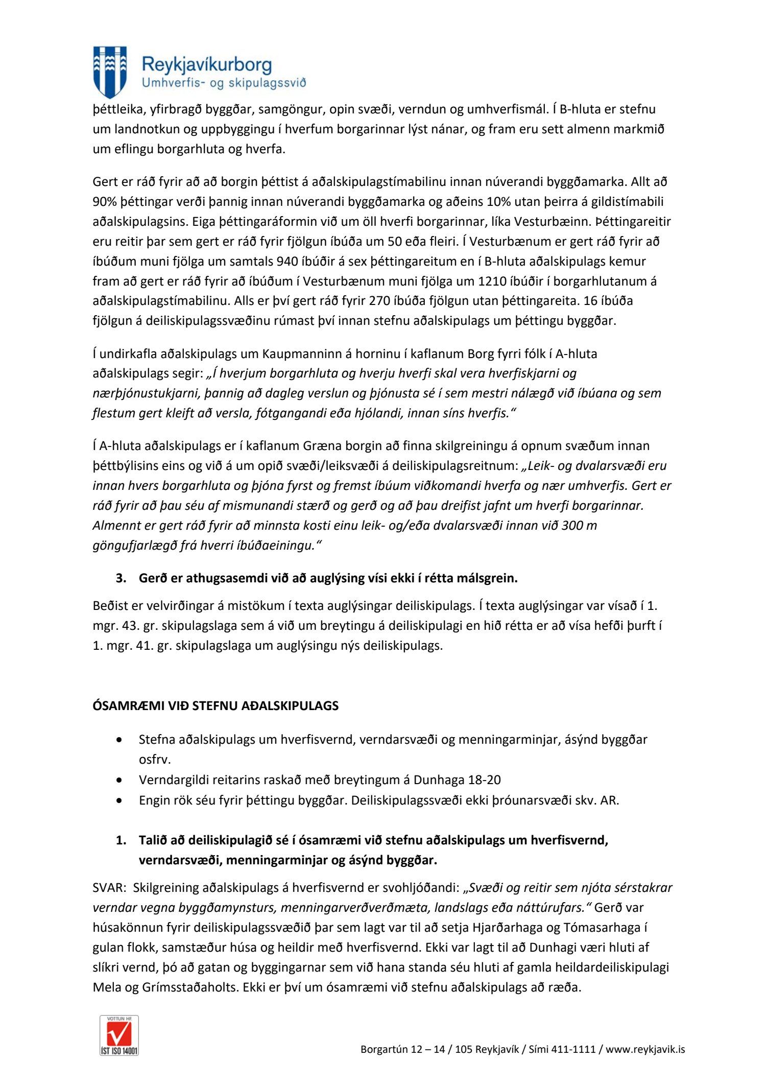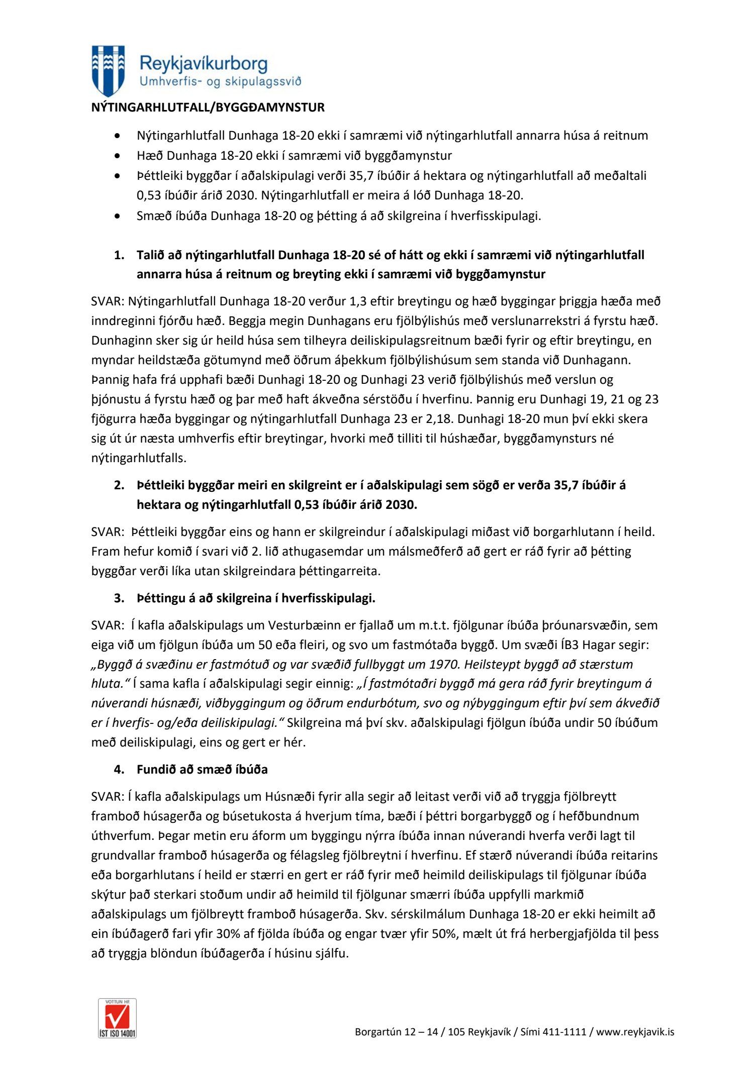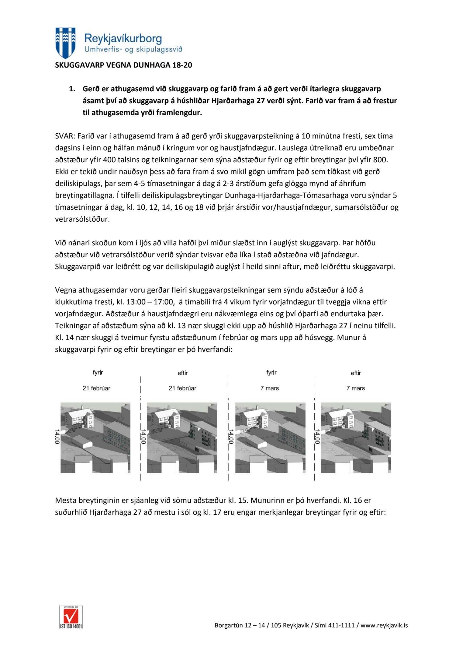dags. 2. október 2018 um nýtt deiliskipulag fyrir svæði sem afmarkast af Dunhaga 18-20, Hjarðarhaga 27-33 og Tómasarhaga 32-46. Í tillögunni felst m.a. niðurrif og uppbygging á lóð nr. 18-20 við Dunhaga auk bílskúrsheimilda á tveimur lóðum, samkvæmt deiliskipulagsuppdr.