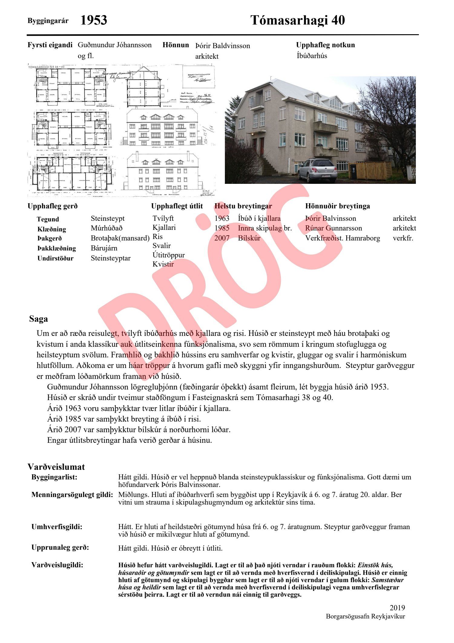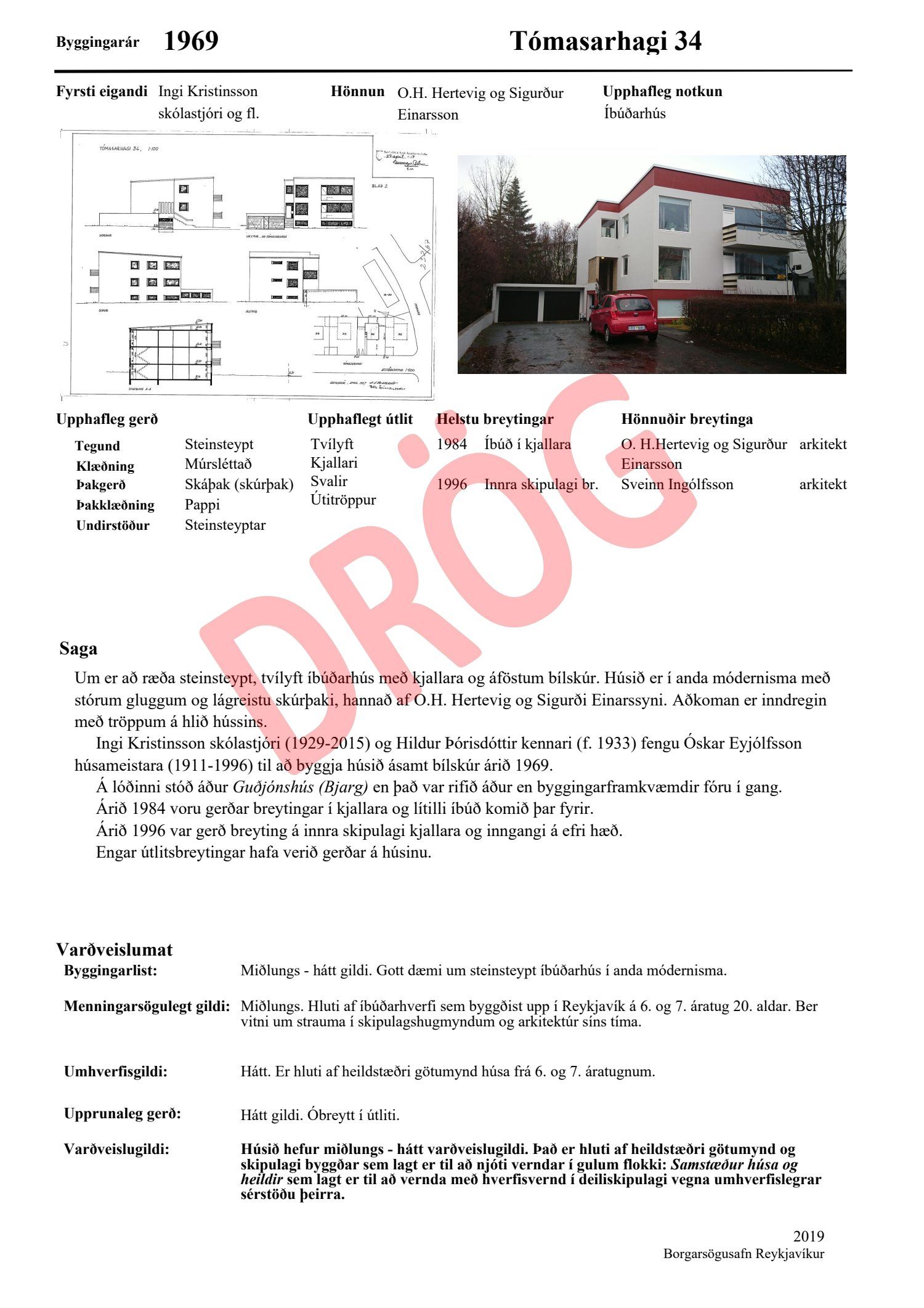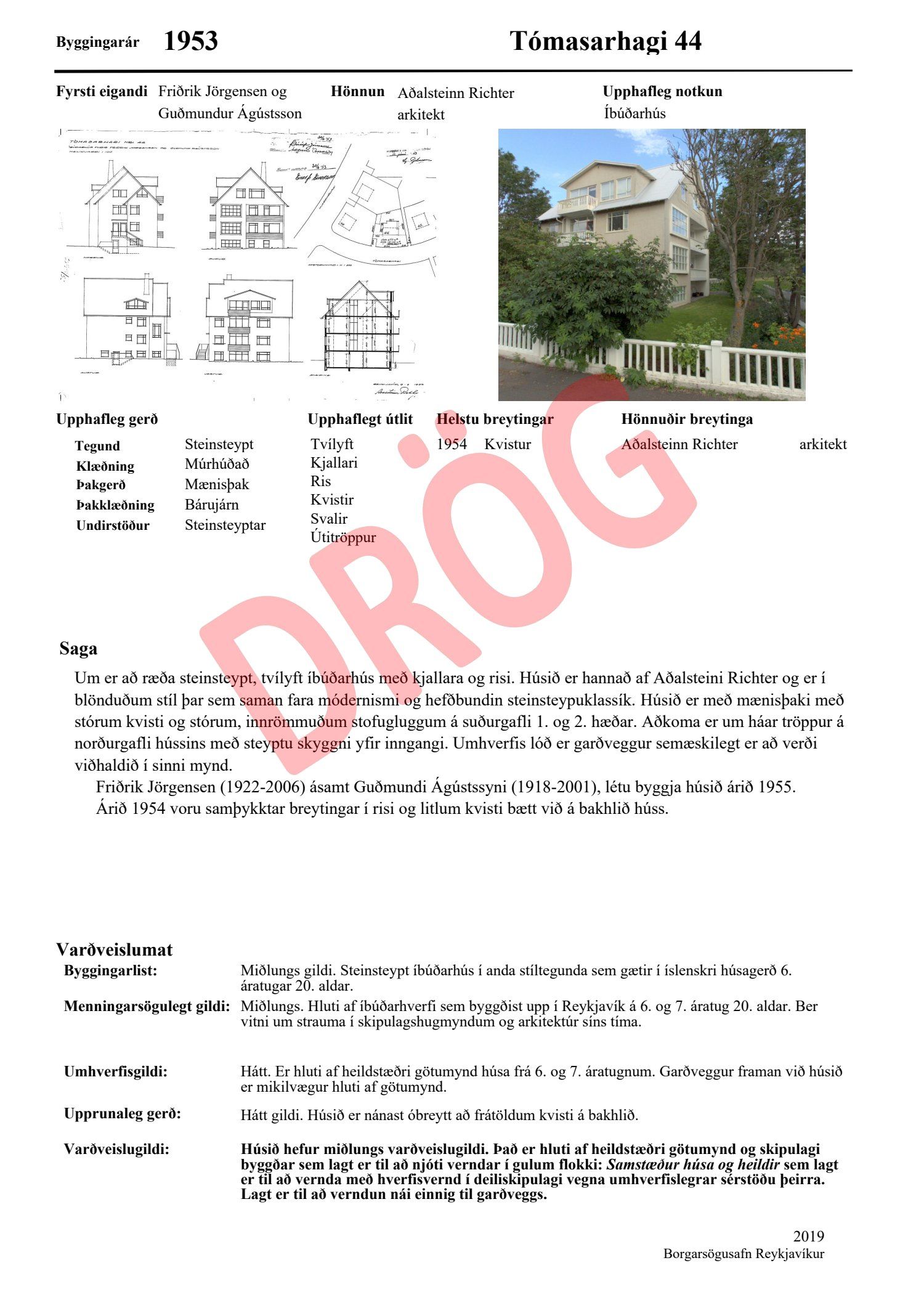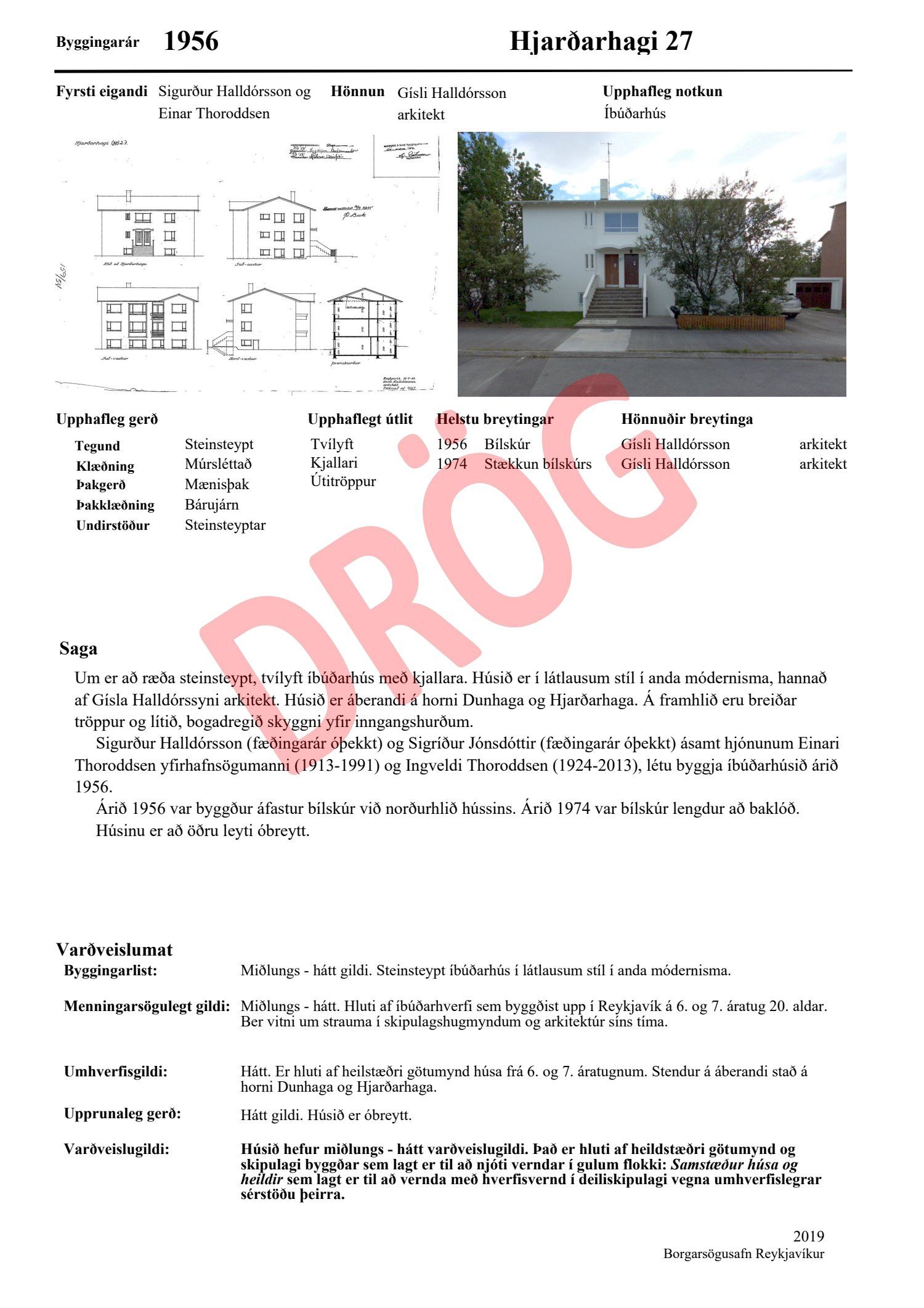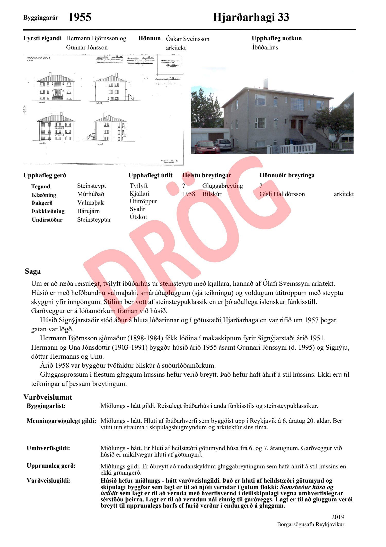 dags. 1. október 2018, leiðr. 8. febrúar 2019. Jafnframt er lögð fram drög að húsakönnun Borgarsögusafns Reykjavíkur.