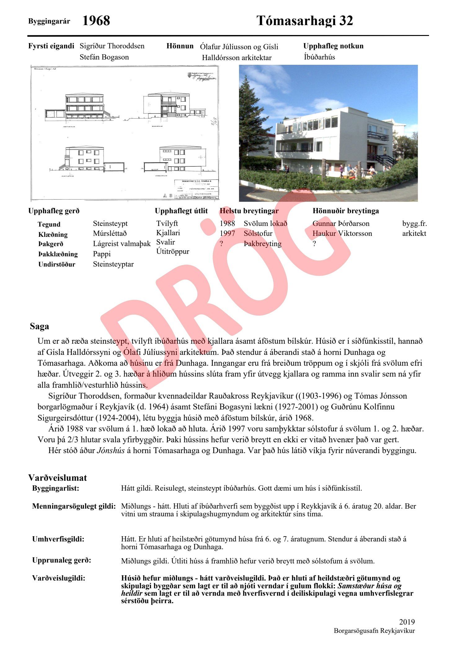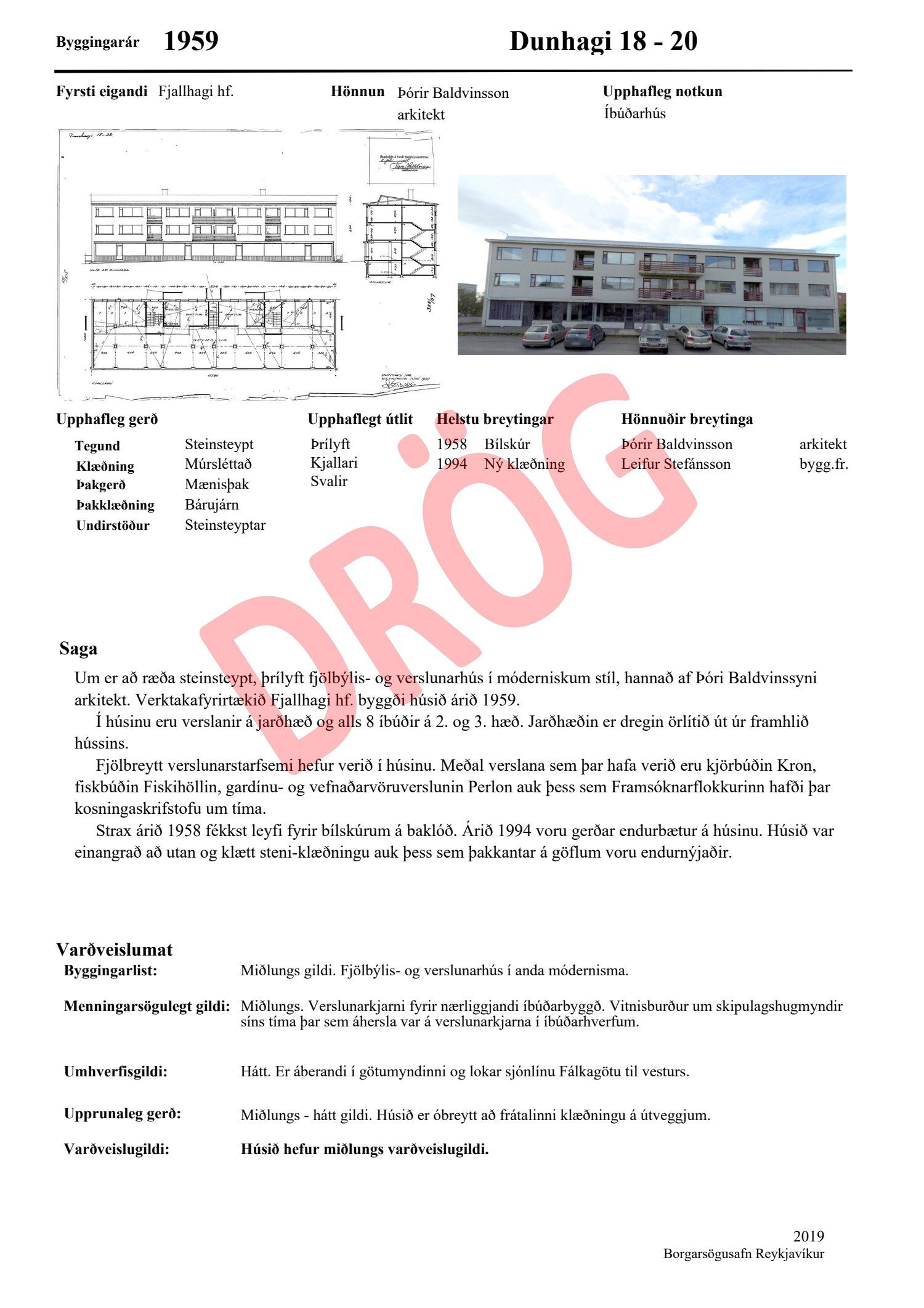 dags. 2. október 2018 um nýtt deiliskipulag fyrir svæði sem afmarkast af Dunhaga 18-20, Hjarðarhaga 27-33 og Tómasarhaga 32-46. Í tillögunni felst m.a. niðurrif og uppbygging á lóð nr. 18-20 við Dunhaga auk bílskúrsheimilda á tveimur lóðum, samkvæmt deiliskipulagsuppdr.