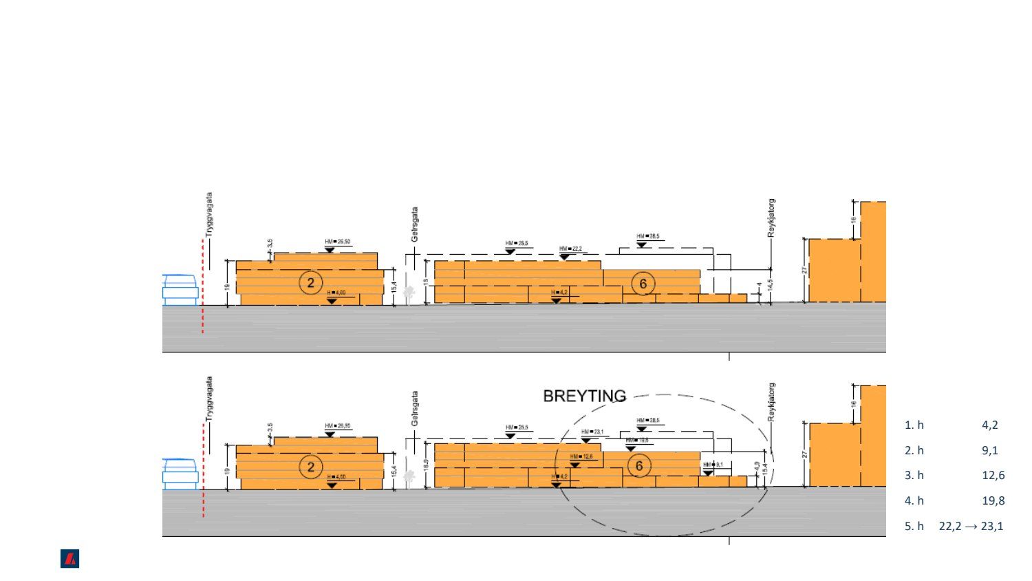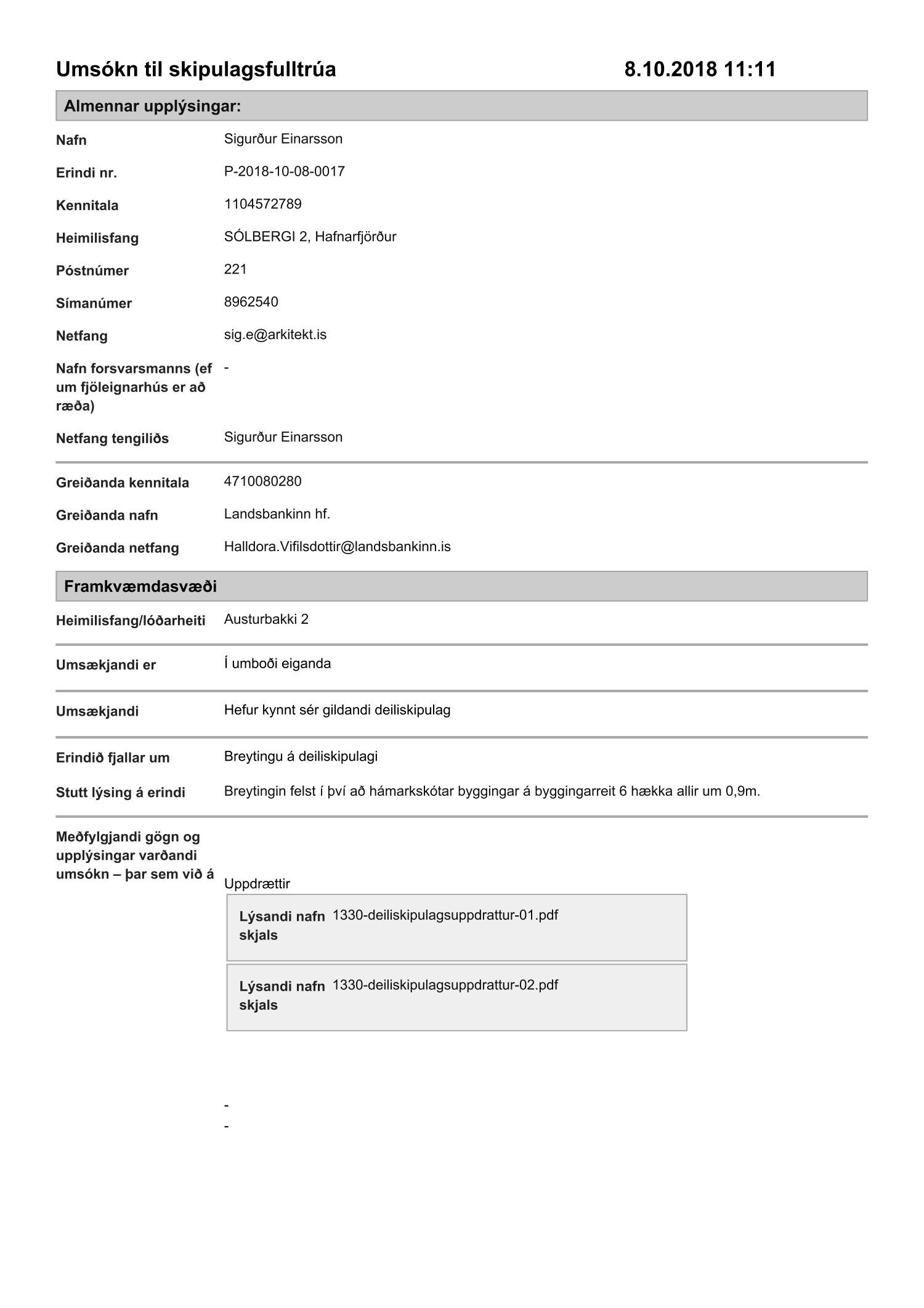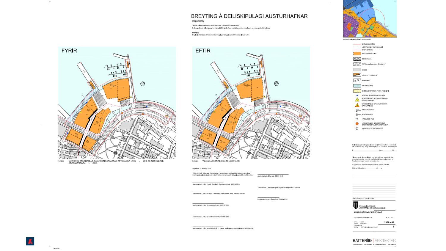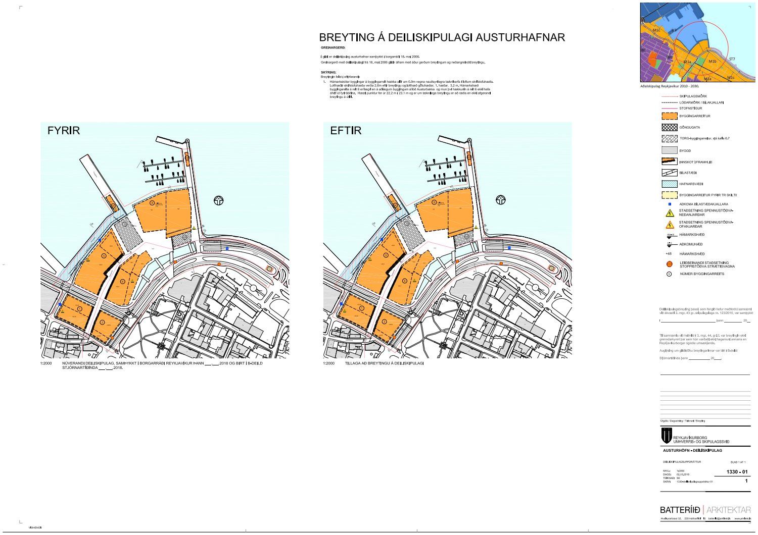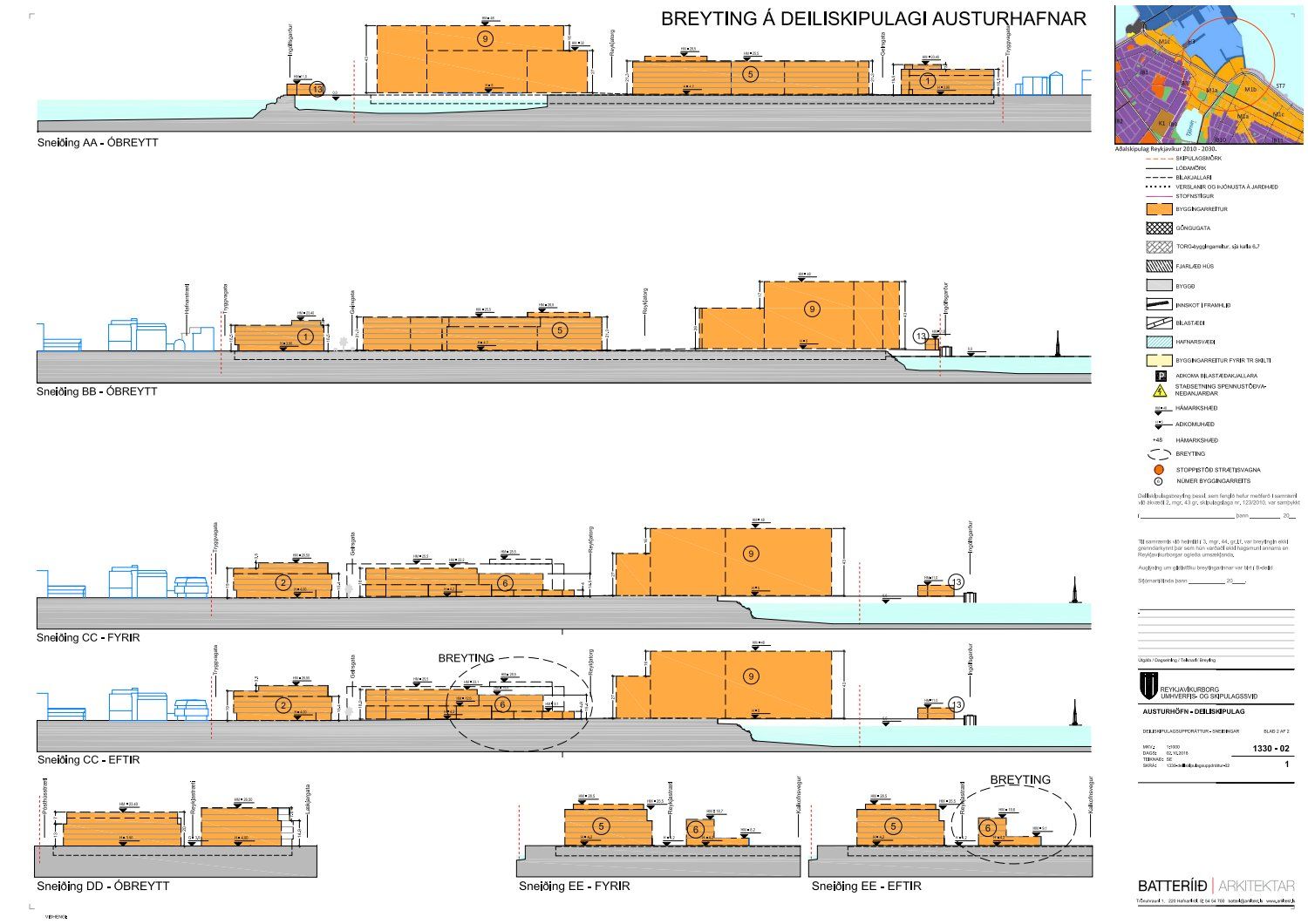 Á embættisafgreiðslufundi skipulagsfulltrúa 19. október 2018 var lögð fram umsókn Sigurðar Einarssonar dags. 8. október 2018 varðandi breytingu á deiliskipulagi Austurhafnar vegna lóðarinnar nr. 2 við Austurbakka. Í breytingunni felst að hámarkskvótar byggingar á byggingarreit 6 hækka allir um 0,9 m., samkvæmt uppdr.