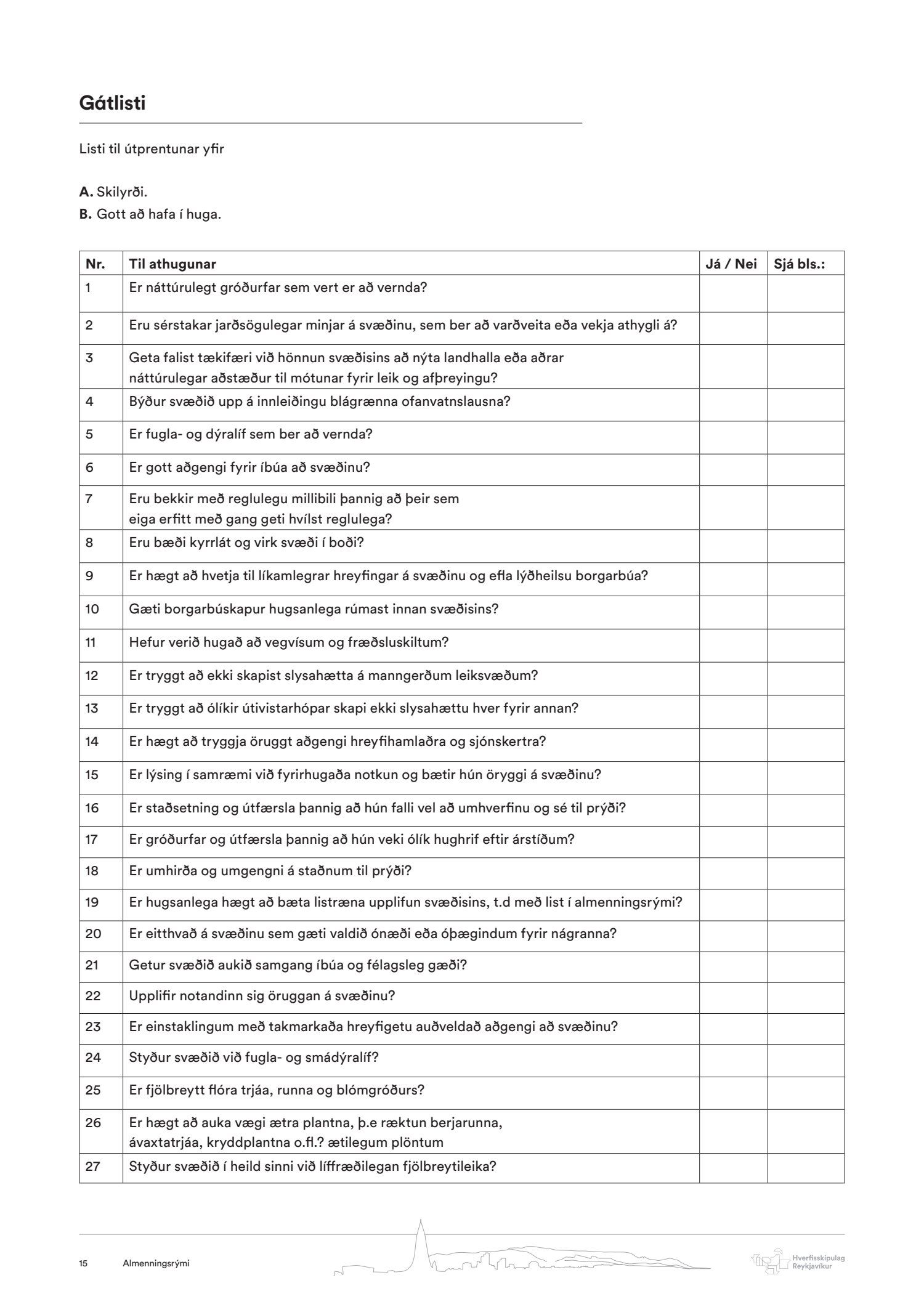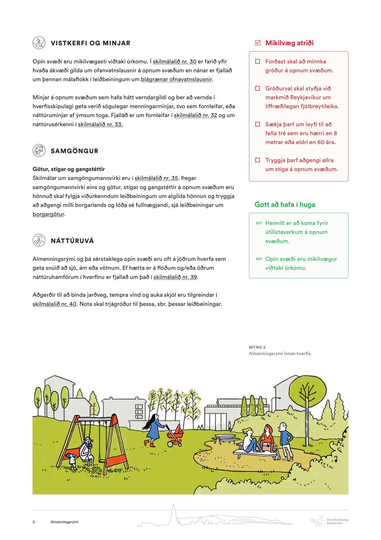 Hverfisskipulag, leiðeiningar - Almenningsrými
